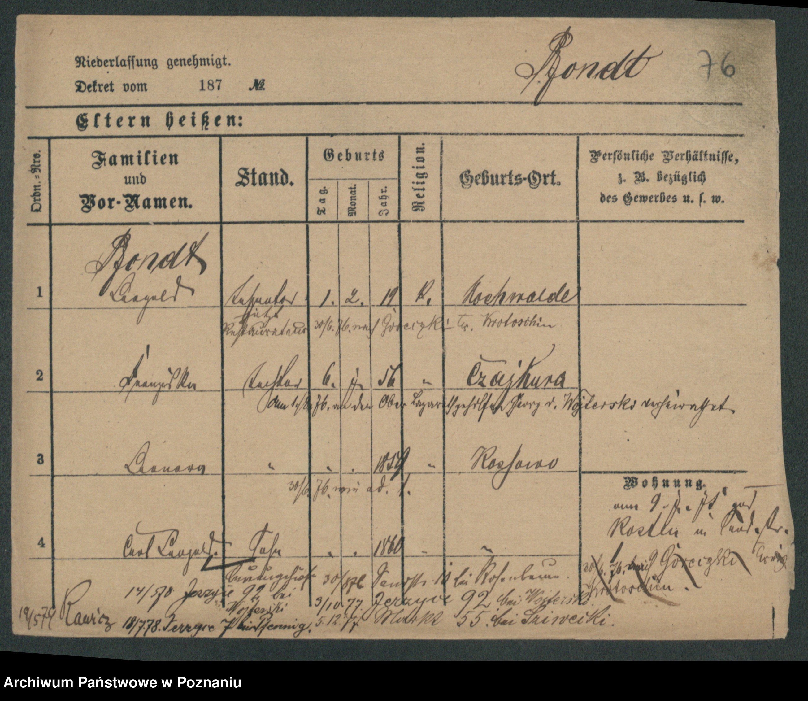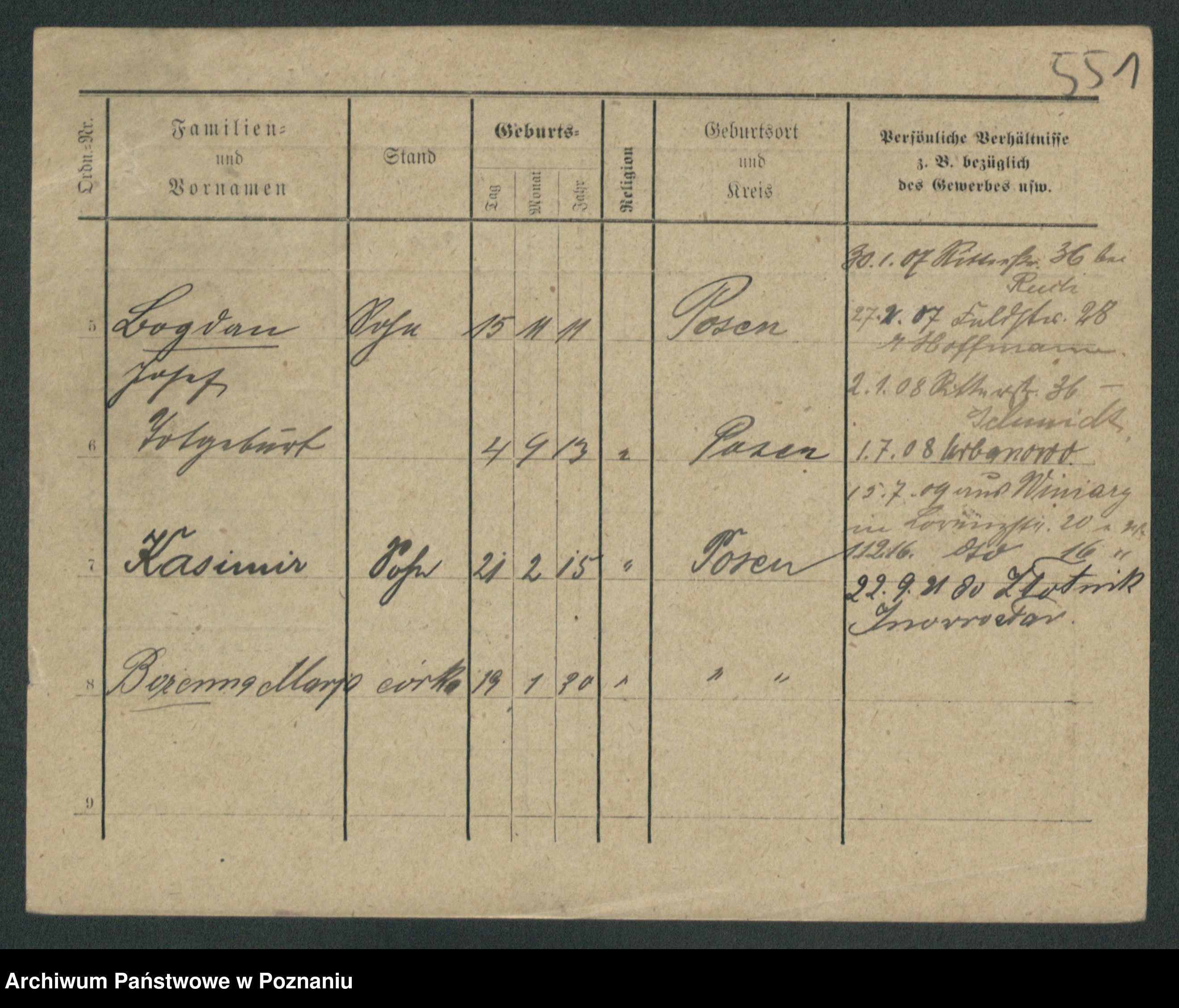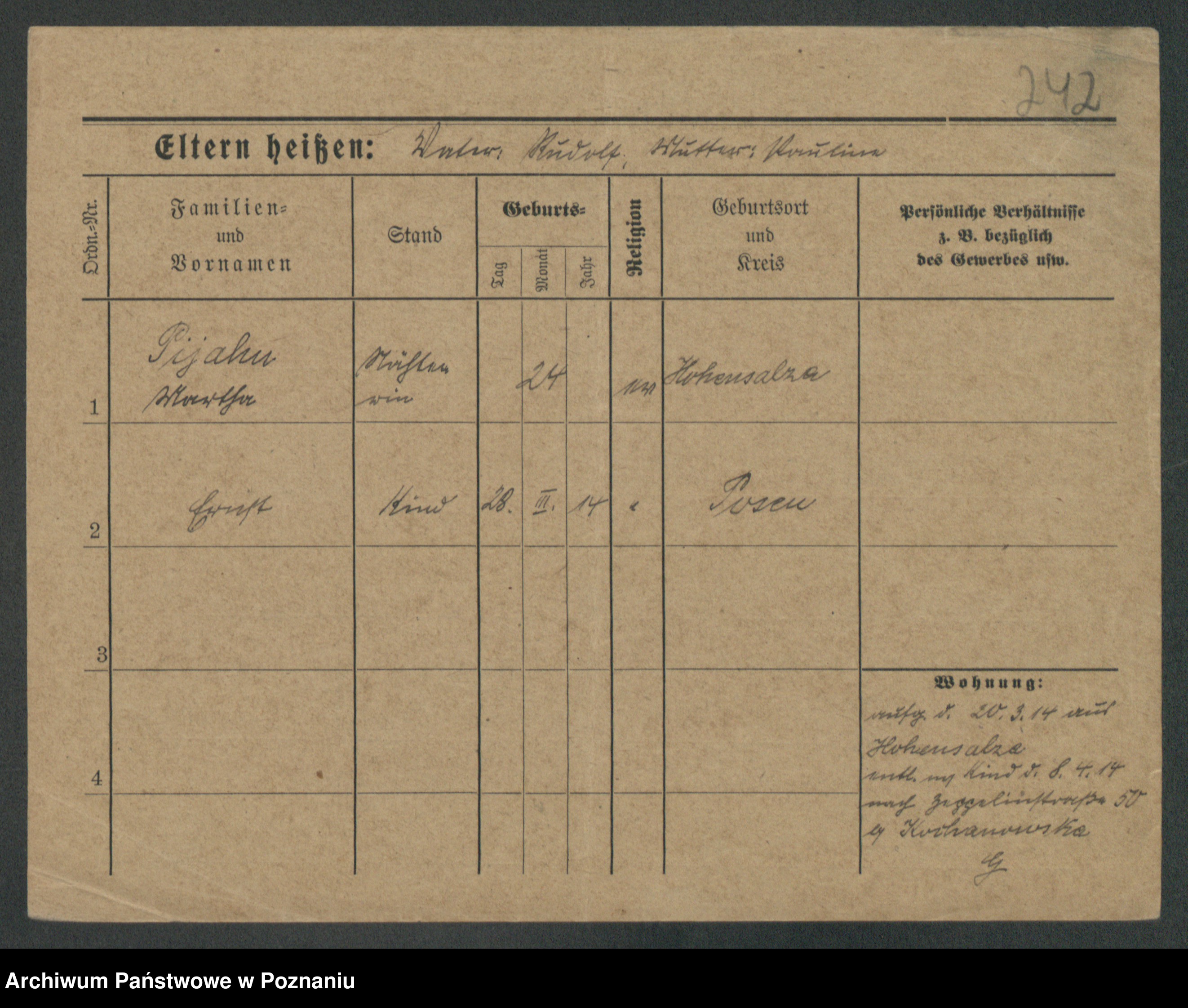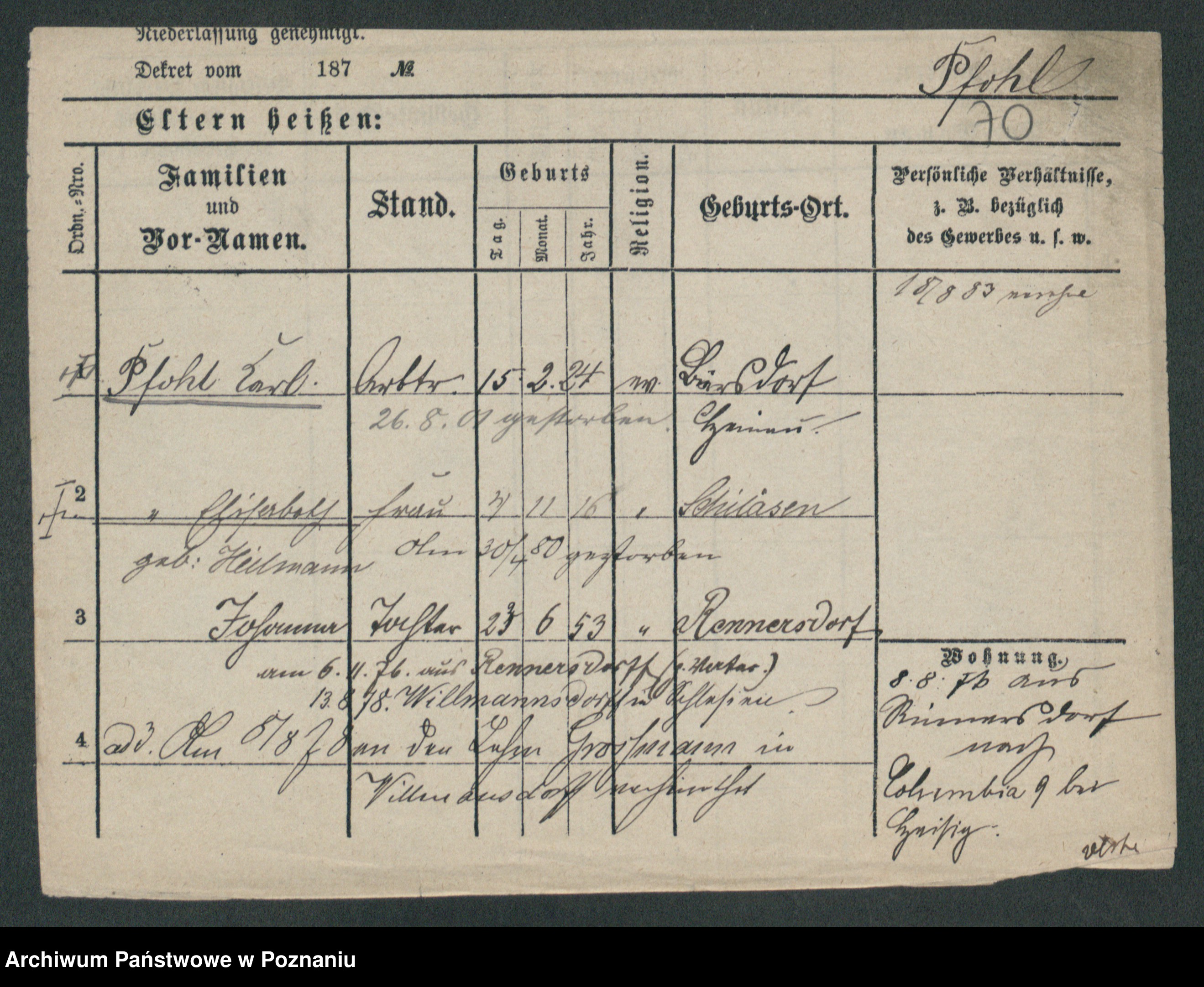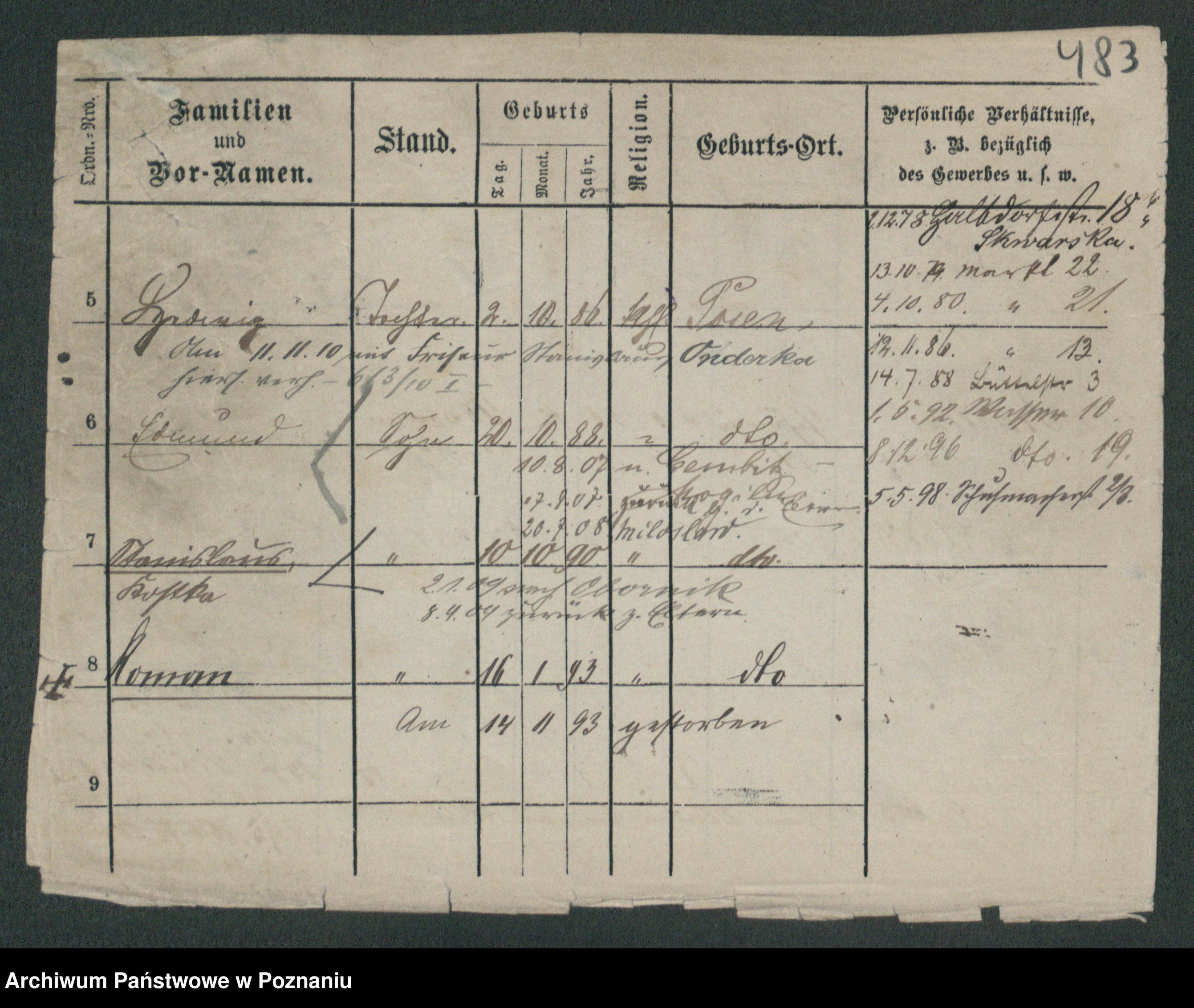 Podgląd karty osobowej dostępny jest po kliknięciu na nazwisko lub ikonkę karty. Można dokonywać powiększenia (ikony na górze) lub przechodzić między kolejnymi skanami (strzałki po bokach).
