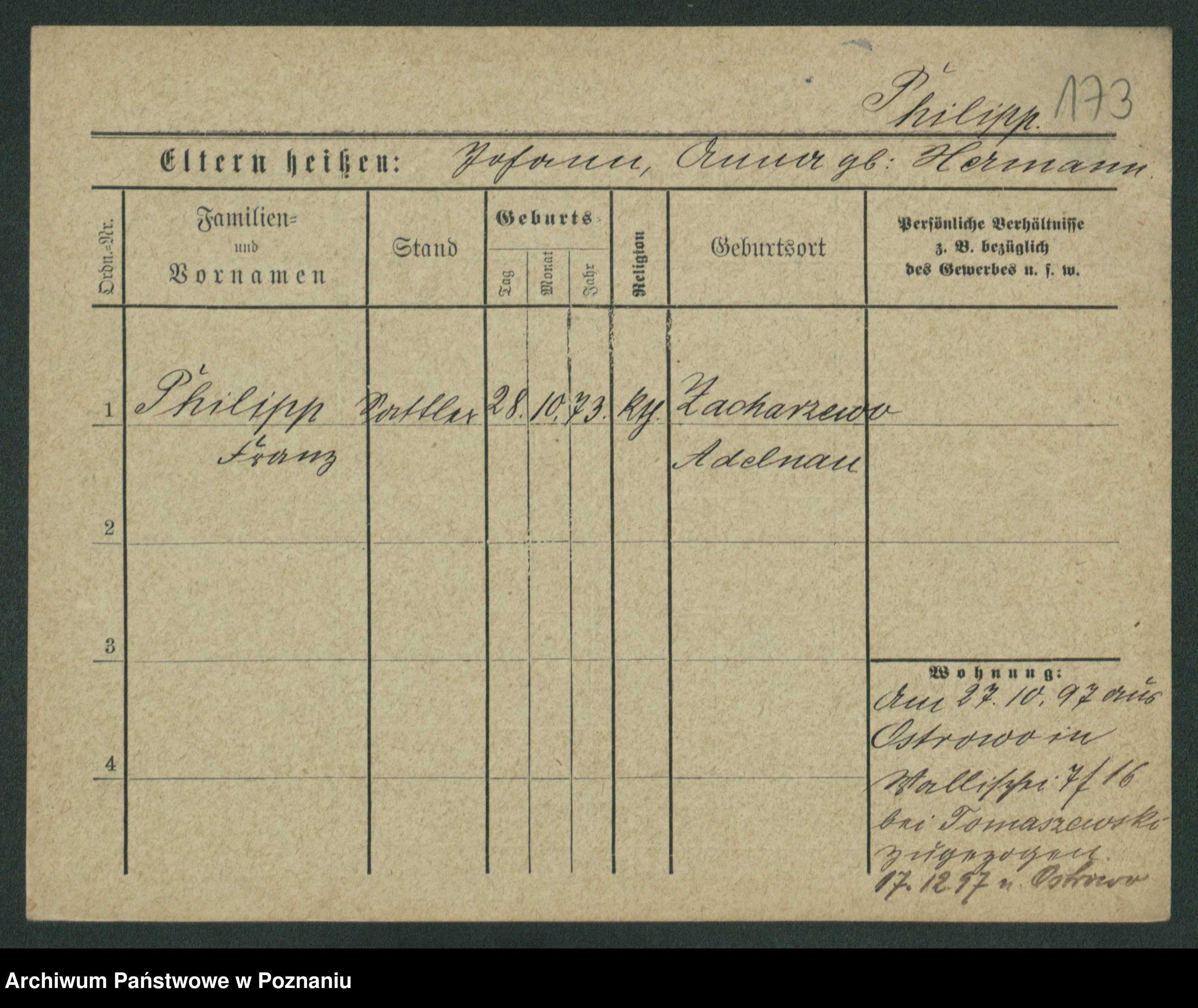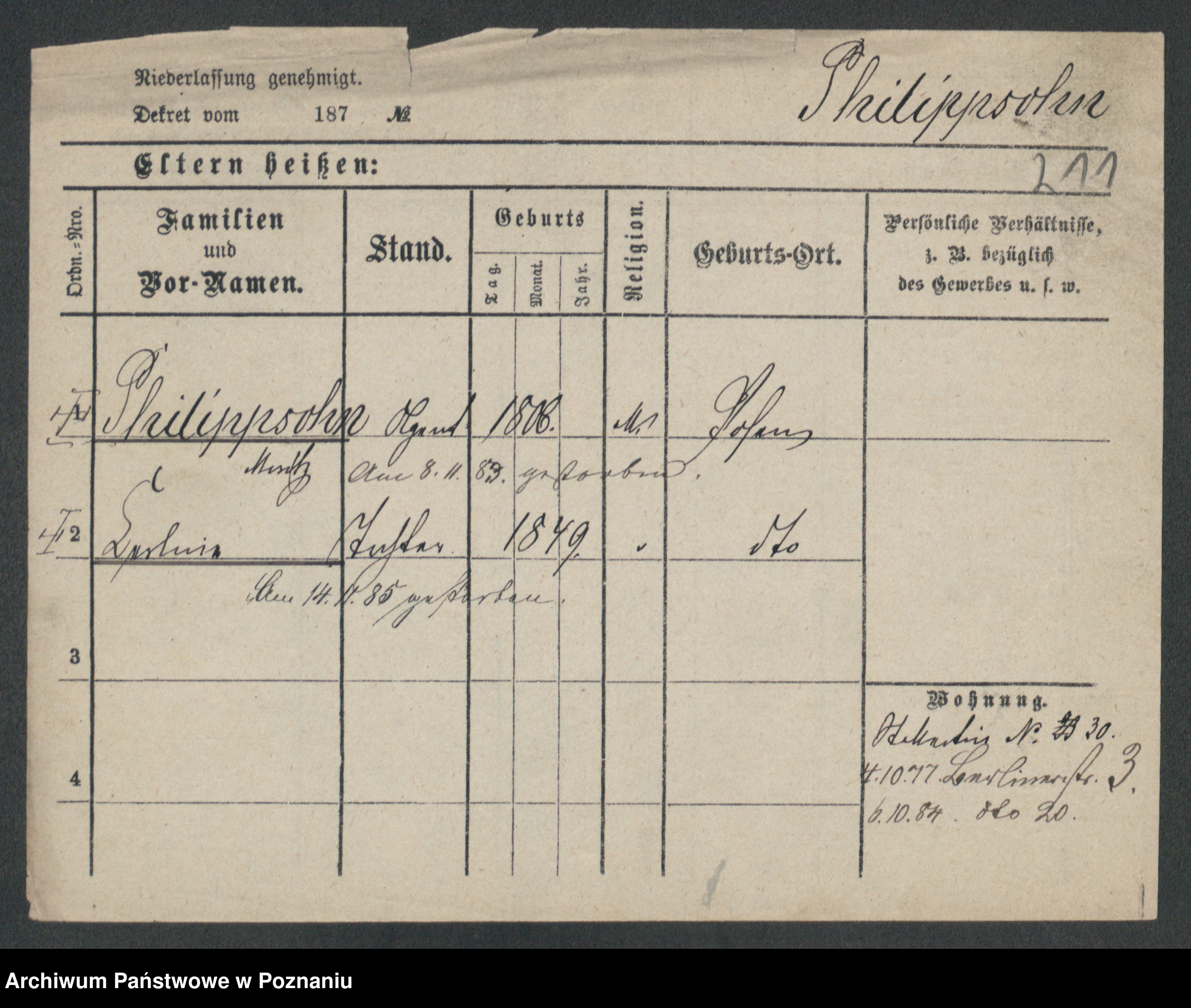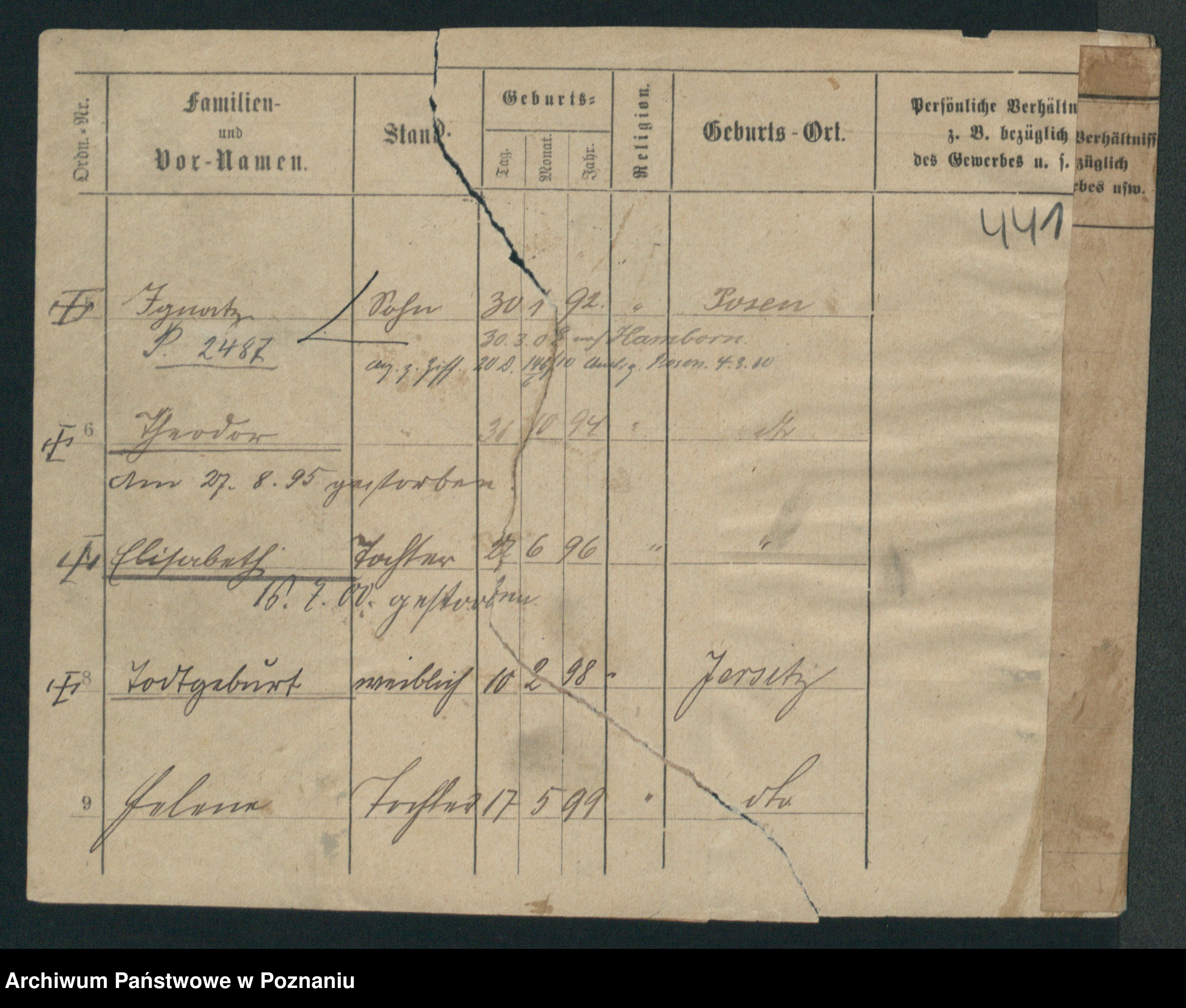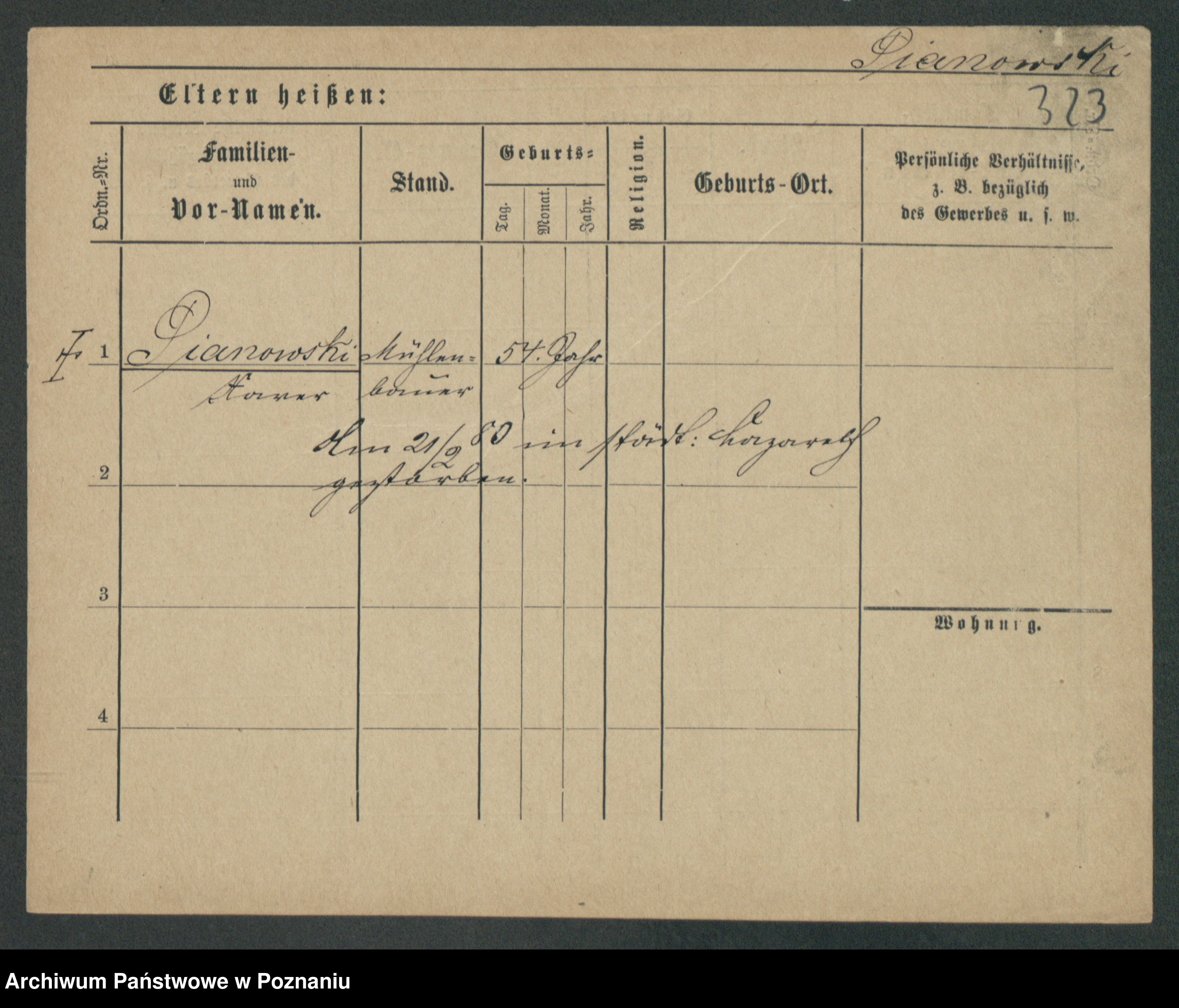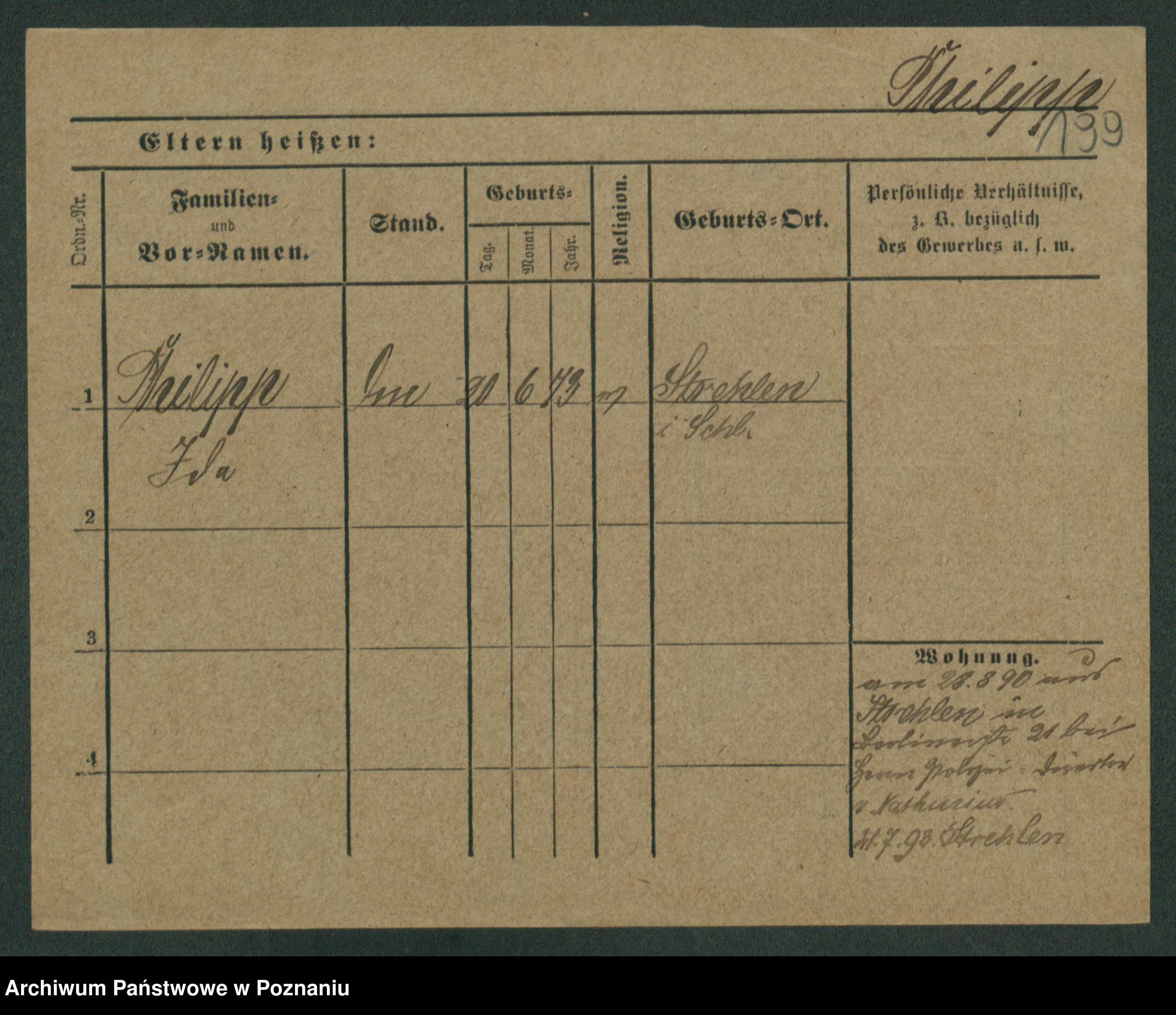 Podgląd karty osobowej dostępny jest po kliknięciu na nazwisko lub ikonkę karty. Można dokonywać powiększenia (ikony na górze) lub przechodzić między kolejnymi skanami (strzałki po bokach).