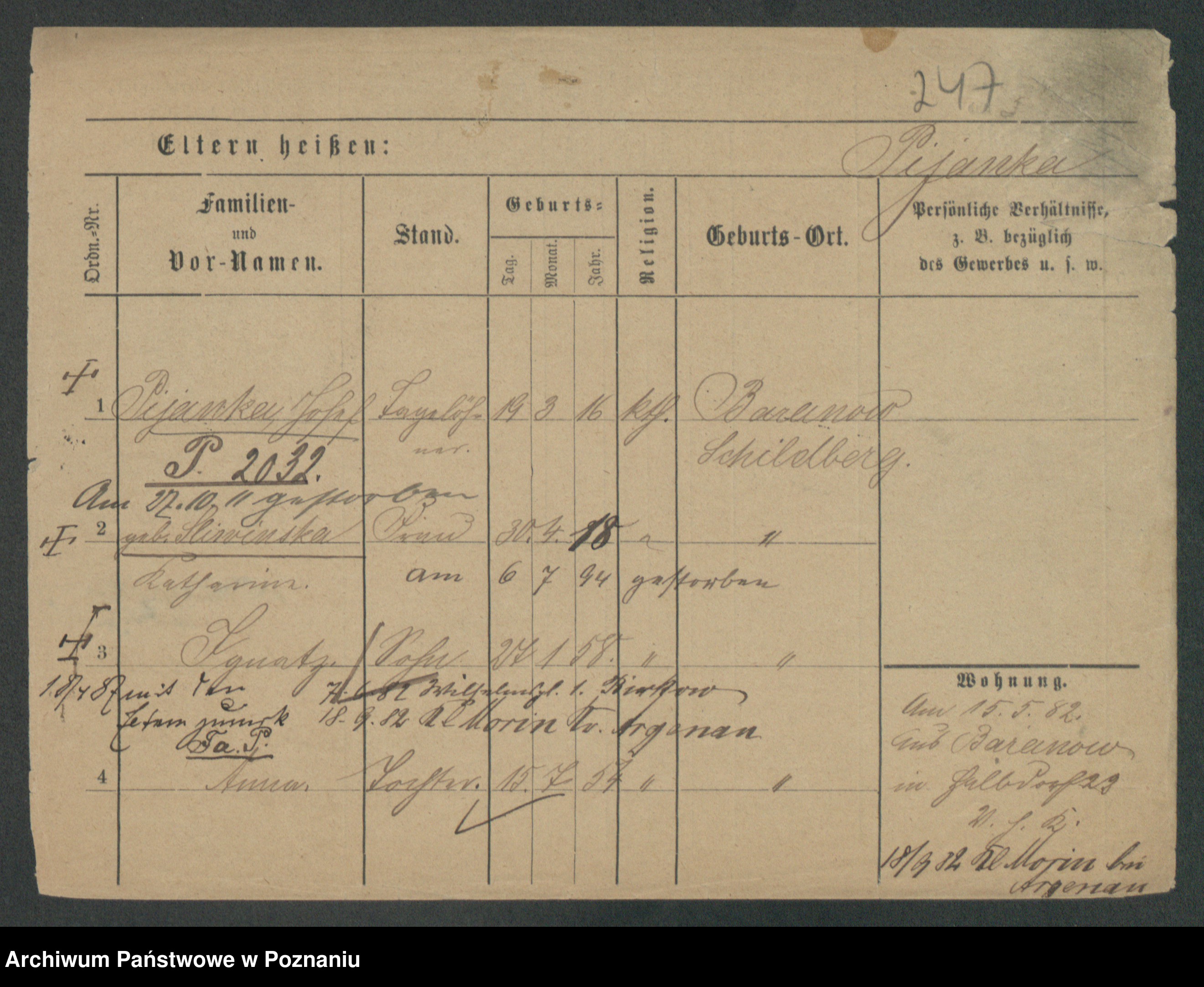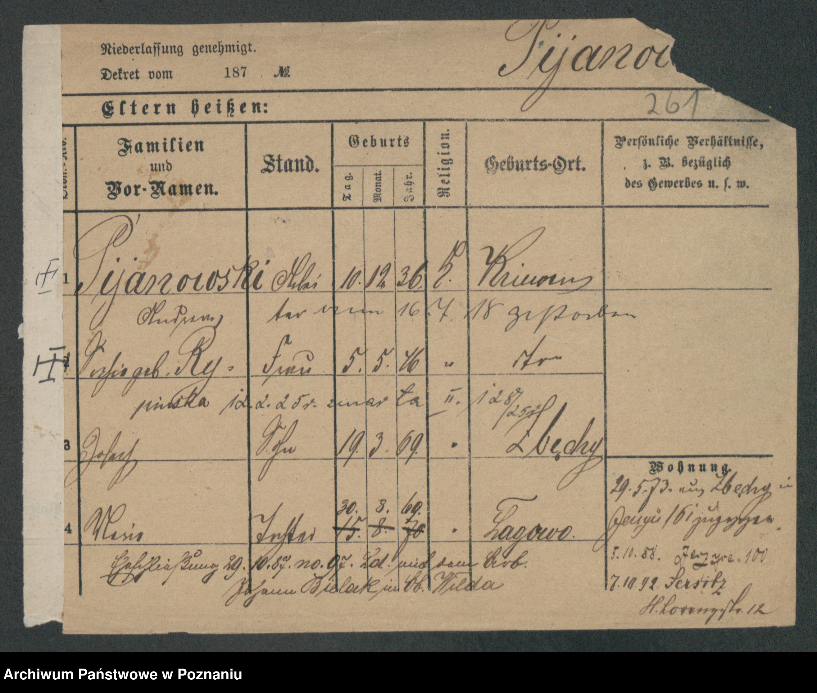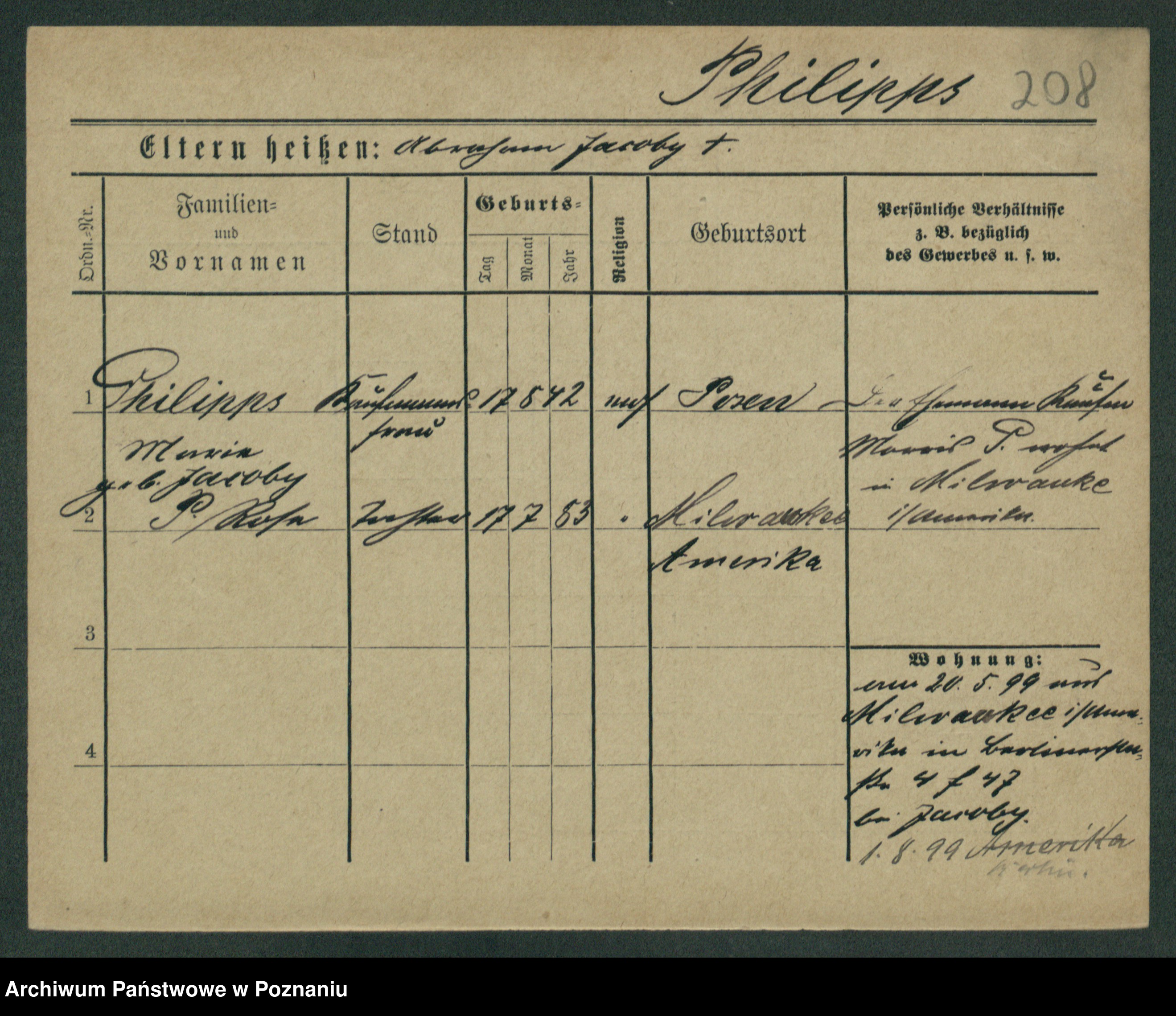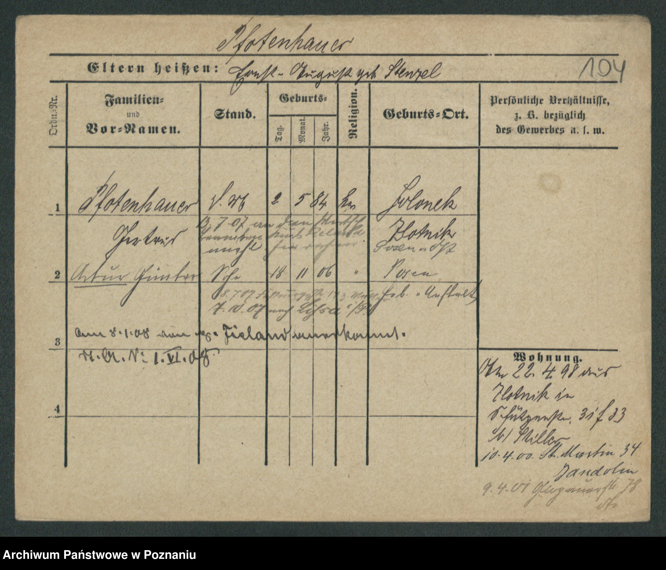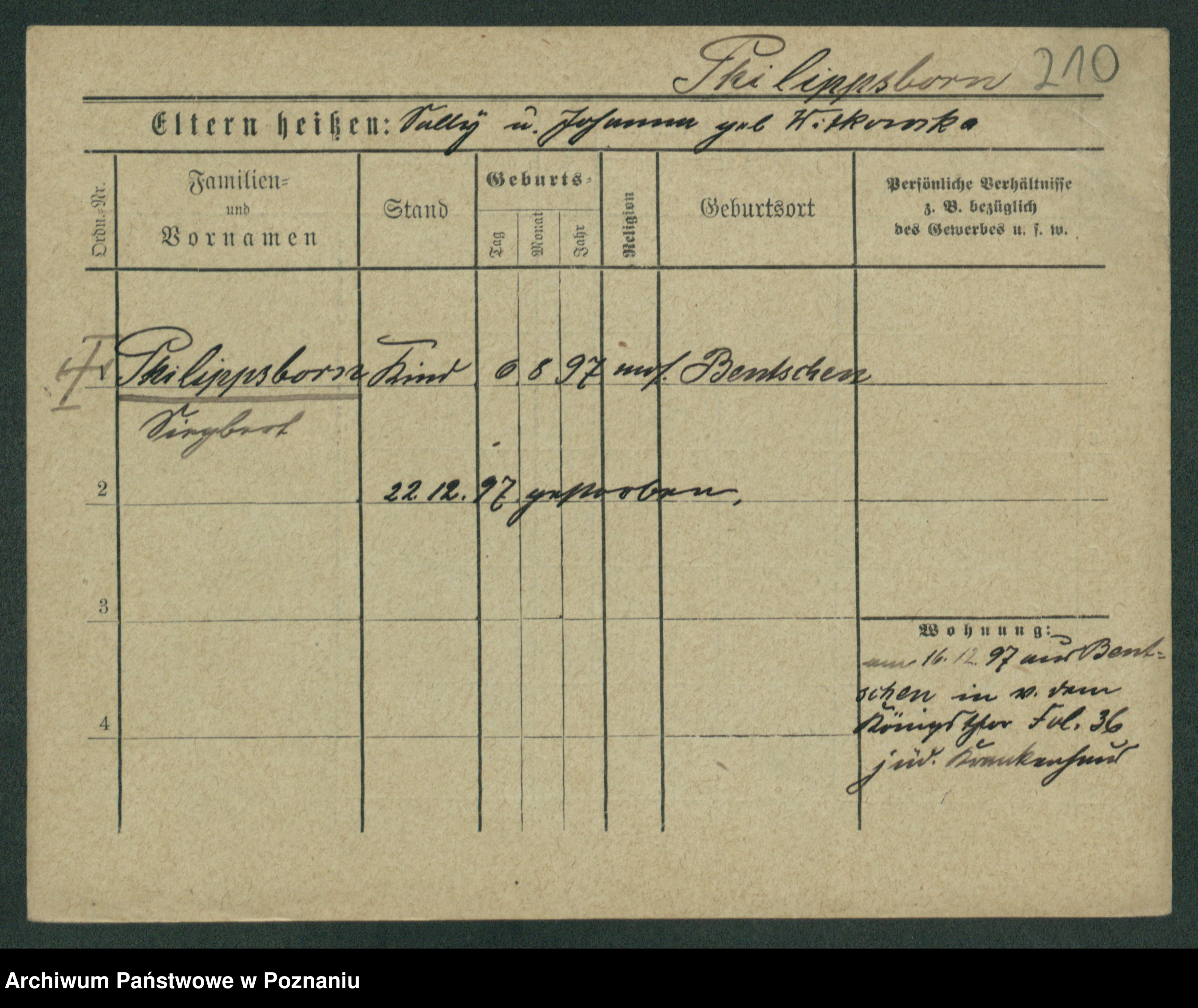 Podgląd karty osobowej dostępny jest po kliknięciu na nazwisko lub ikonkę karty. Można dokonywać powiększenia (ikony na górze) lub przechodzić między kolejnymi skanami (strzałki po bokach).