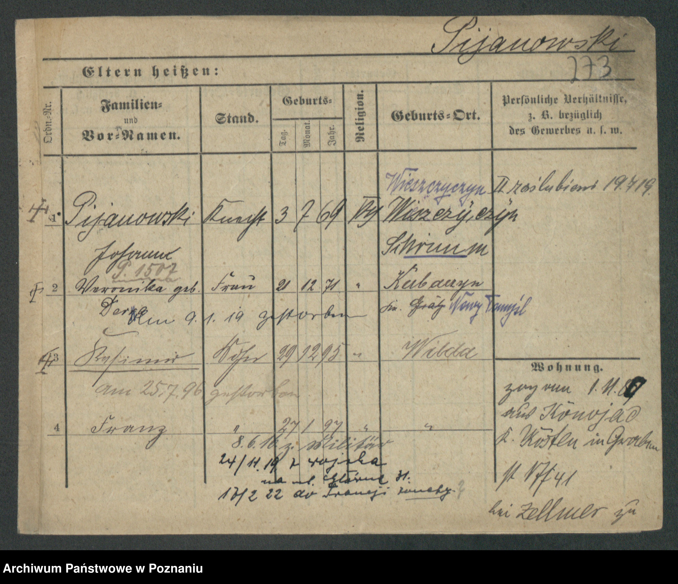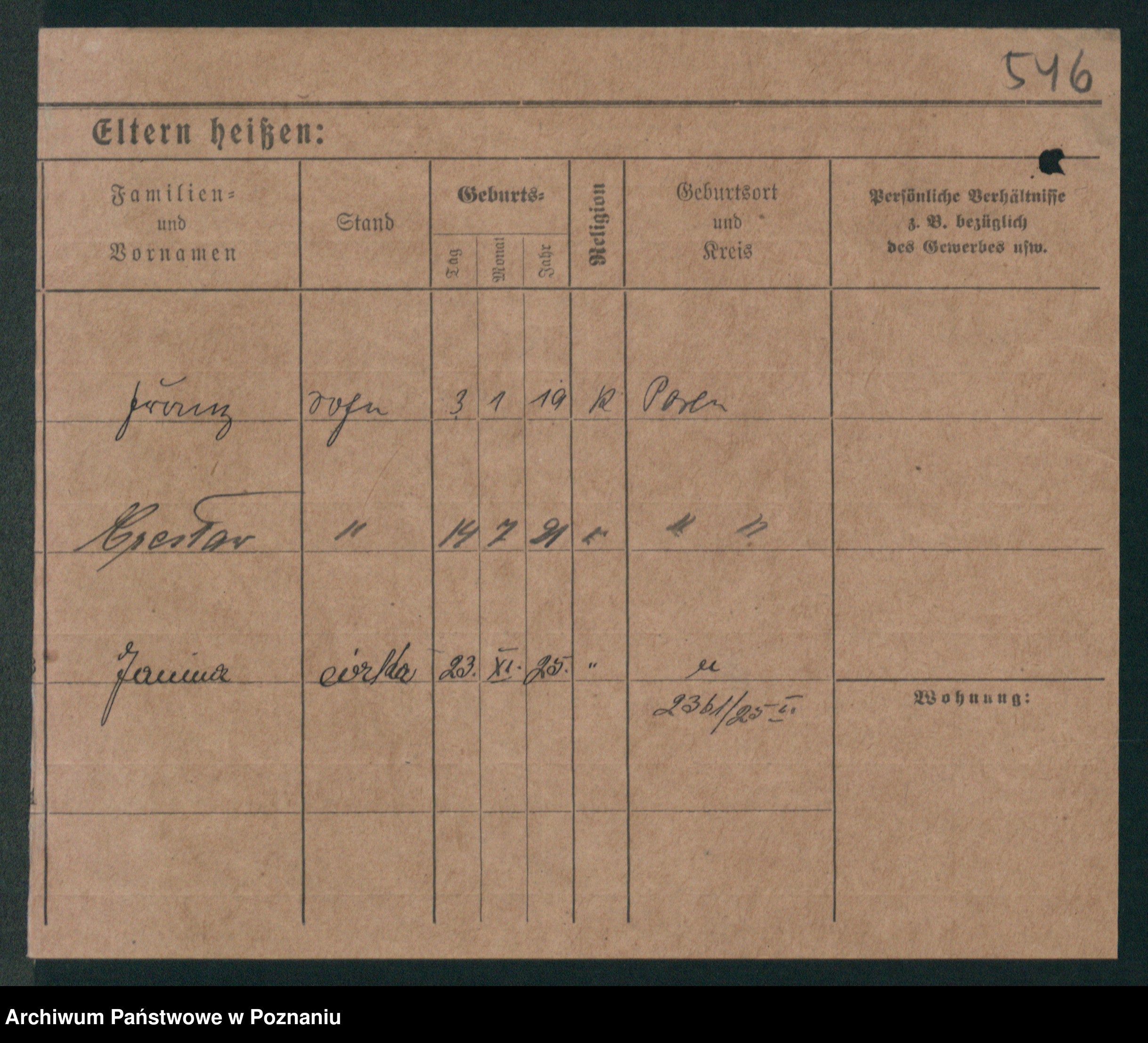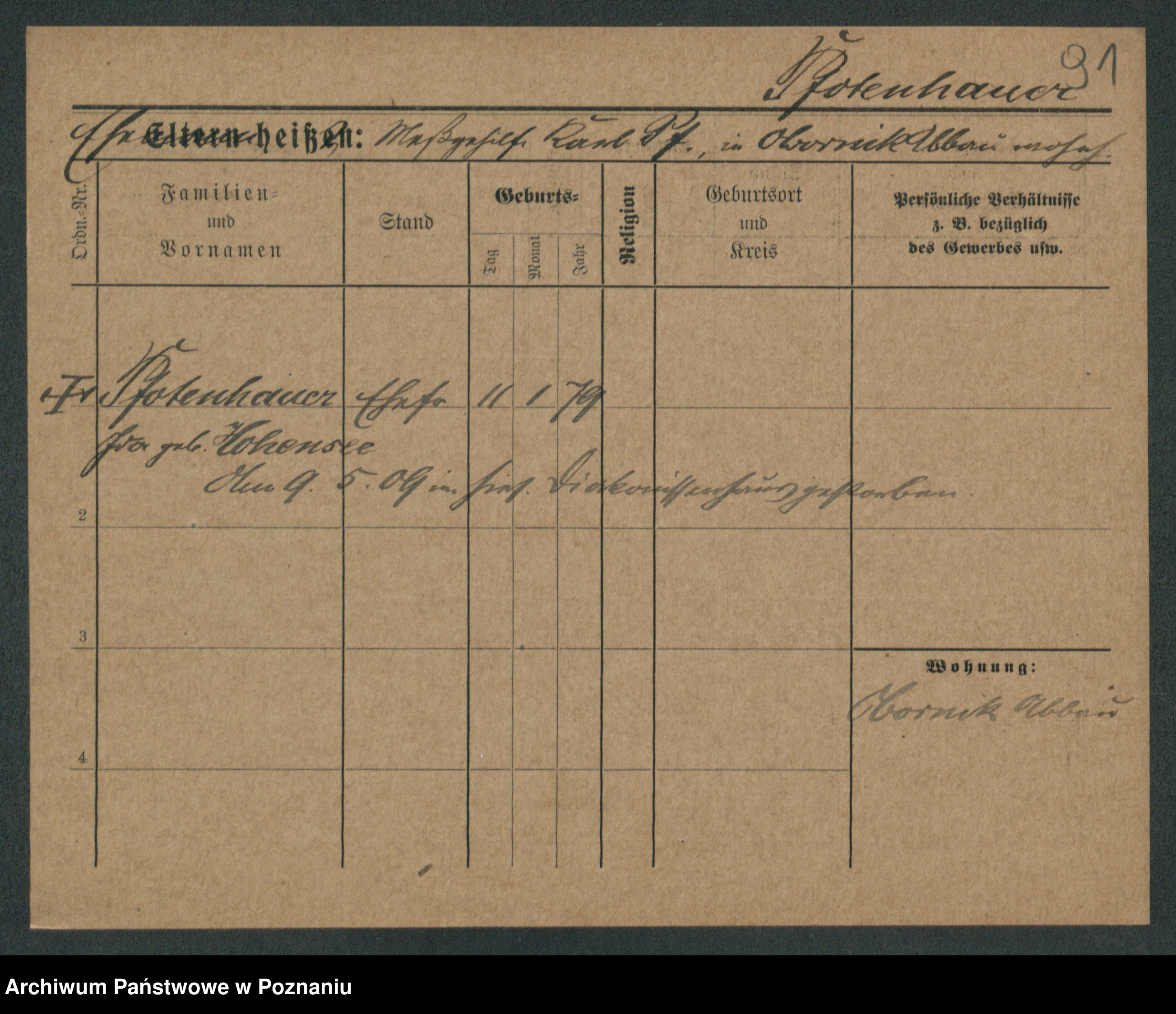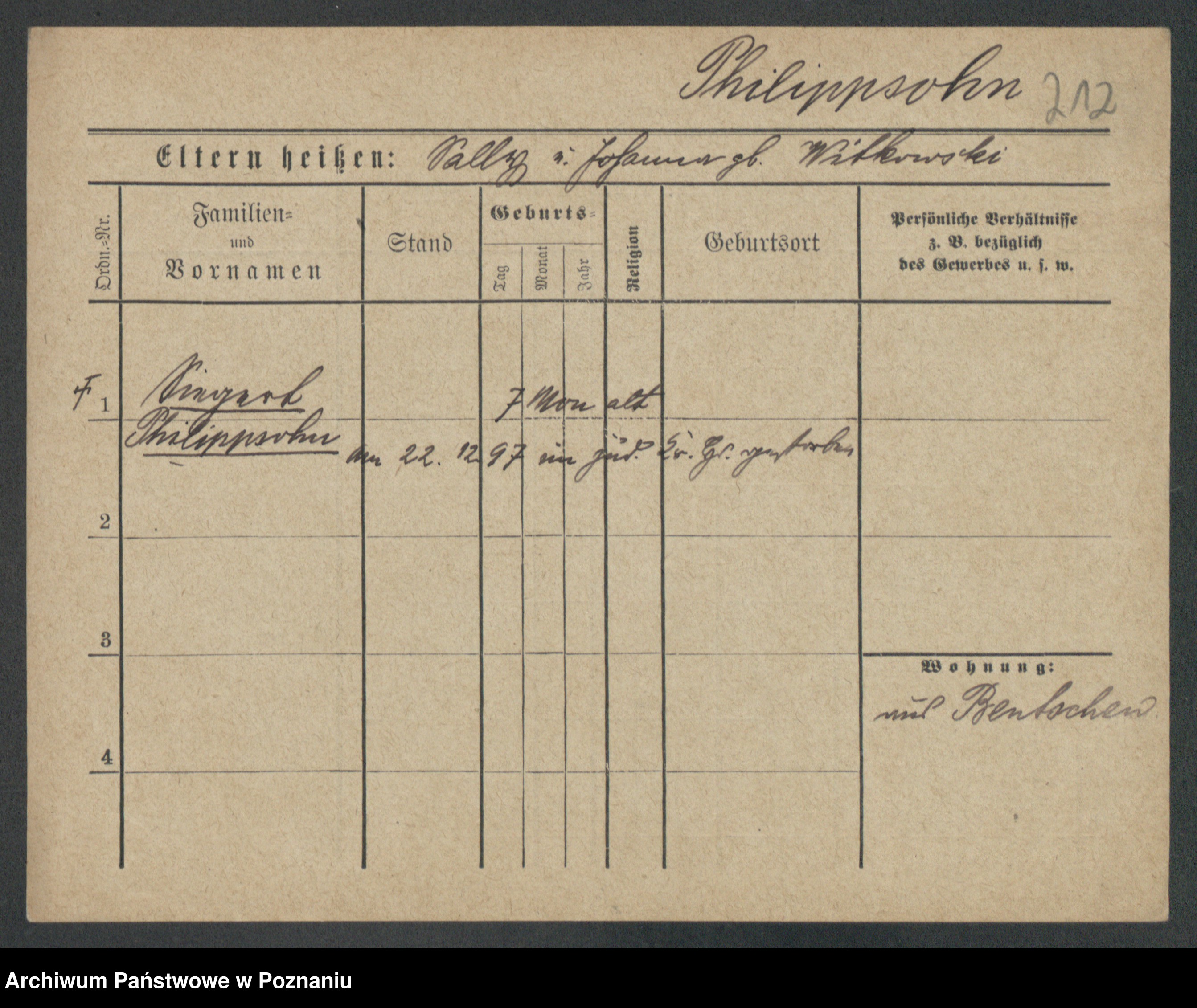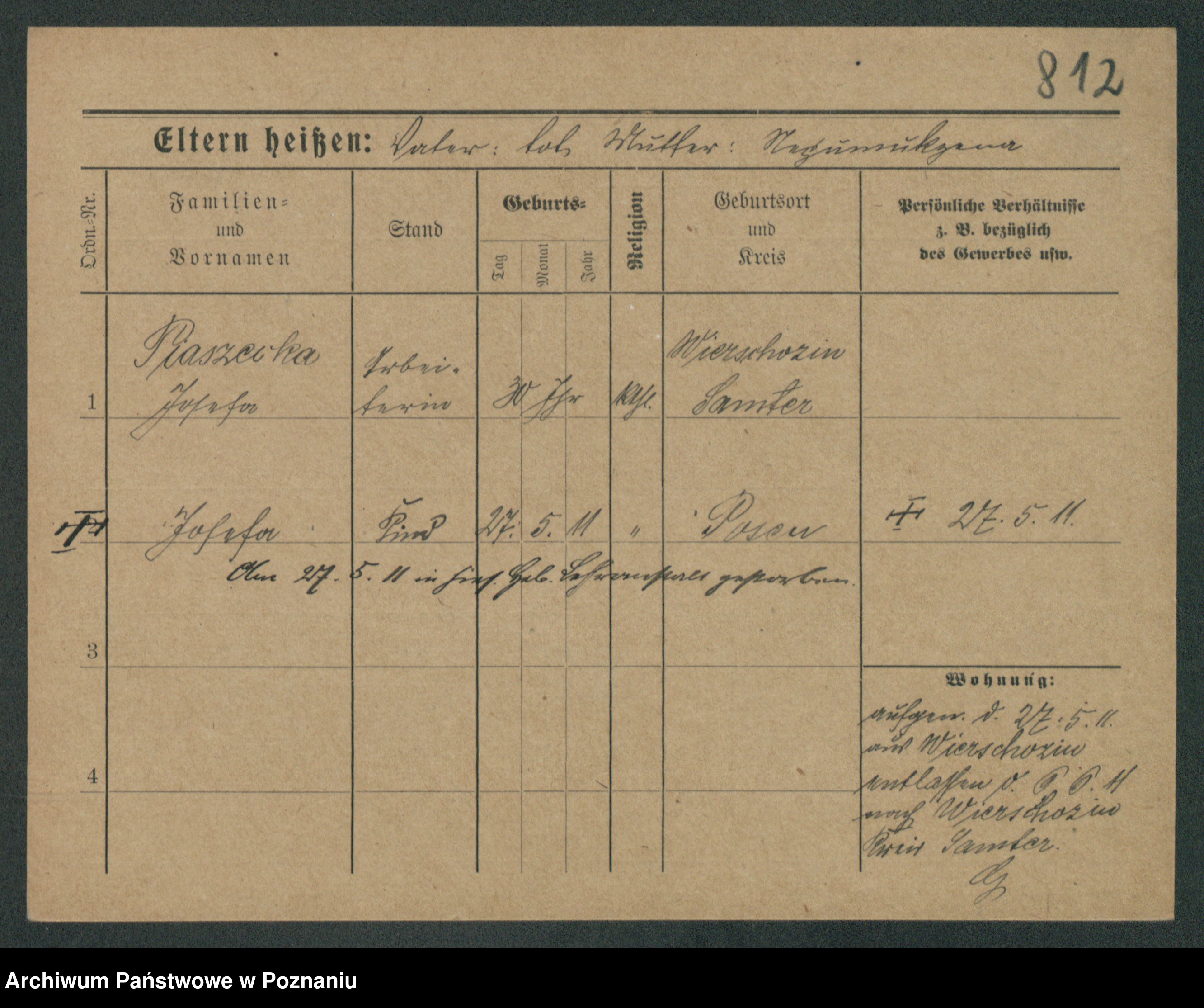 Podgląd karty osobowej dostępny jest po kliknięciu na nazwisko lub ikonkę karty. Można dokonywać powiększenia (ikony na górze) lub przechodzić między kolejnymi skanami (strzałki po bokach).