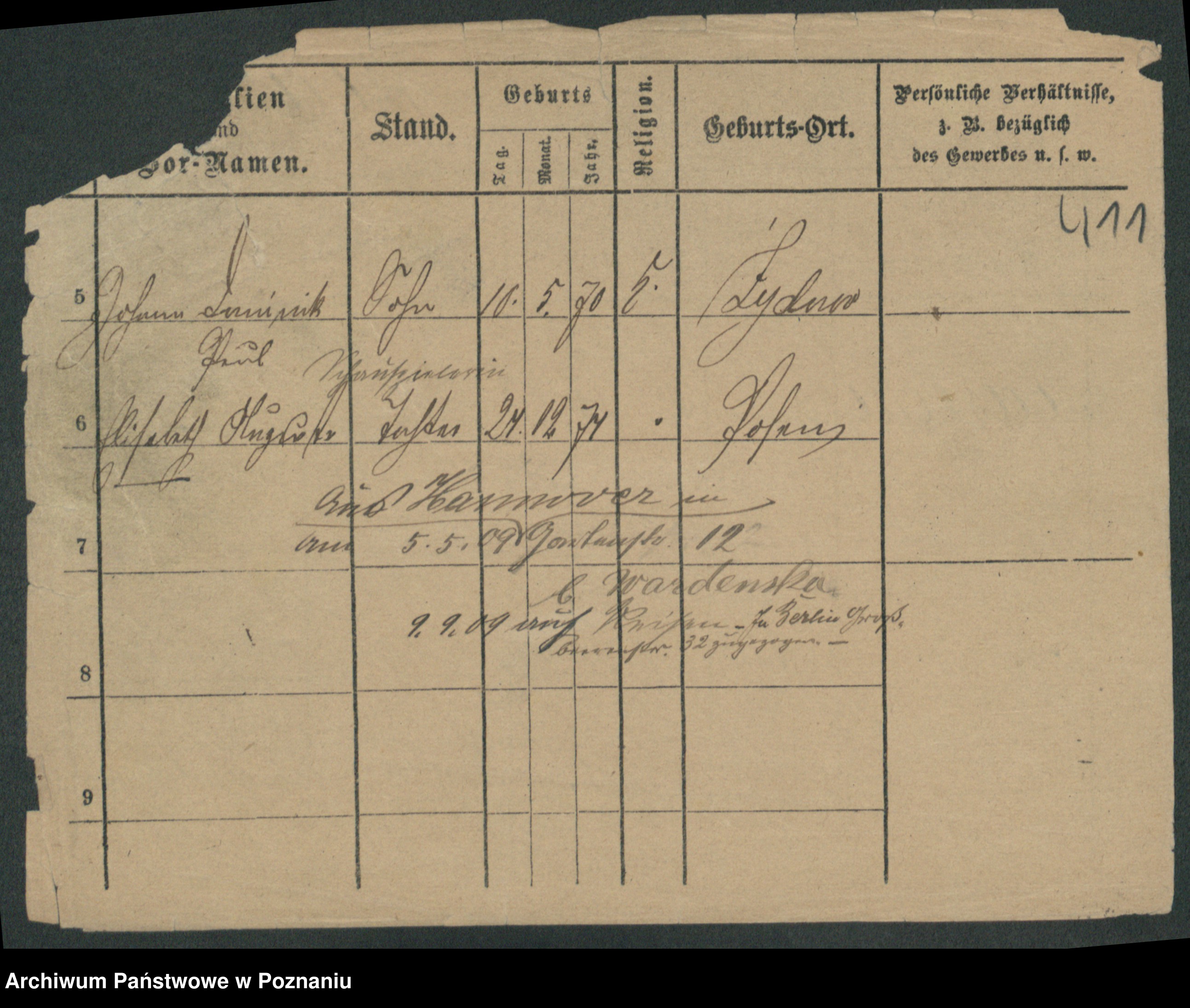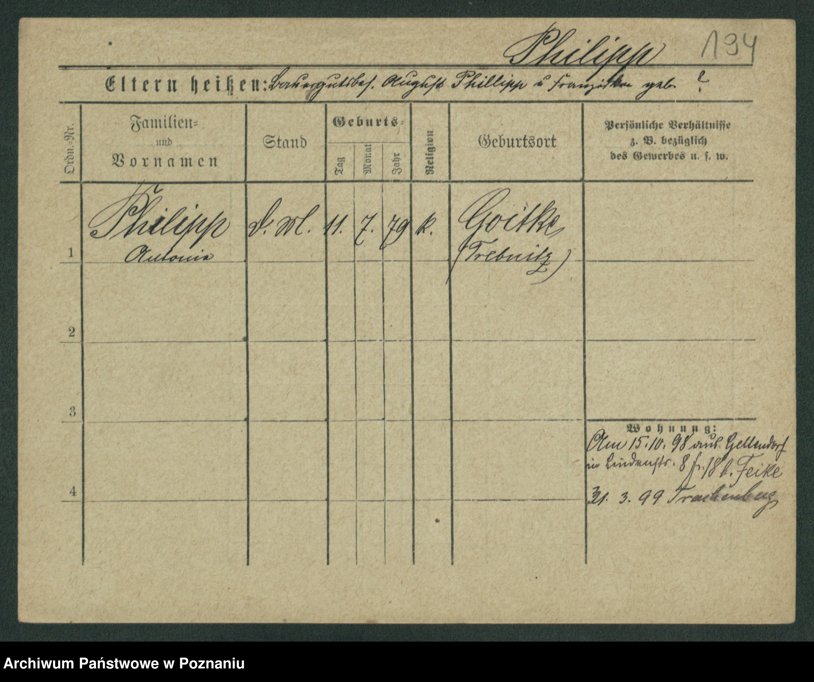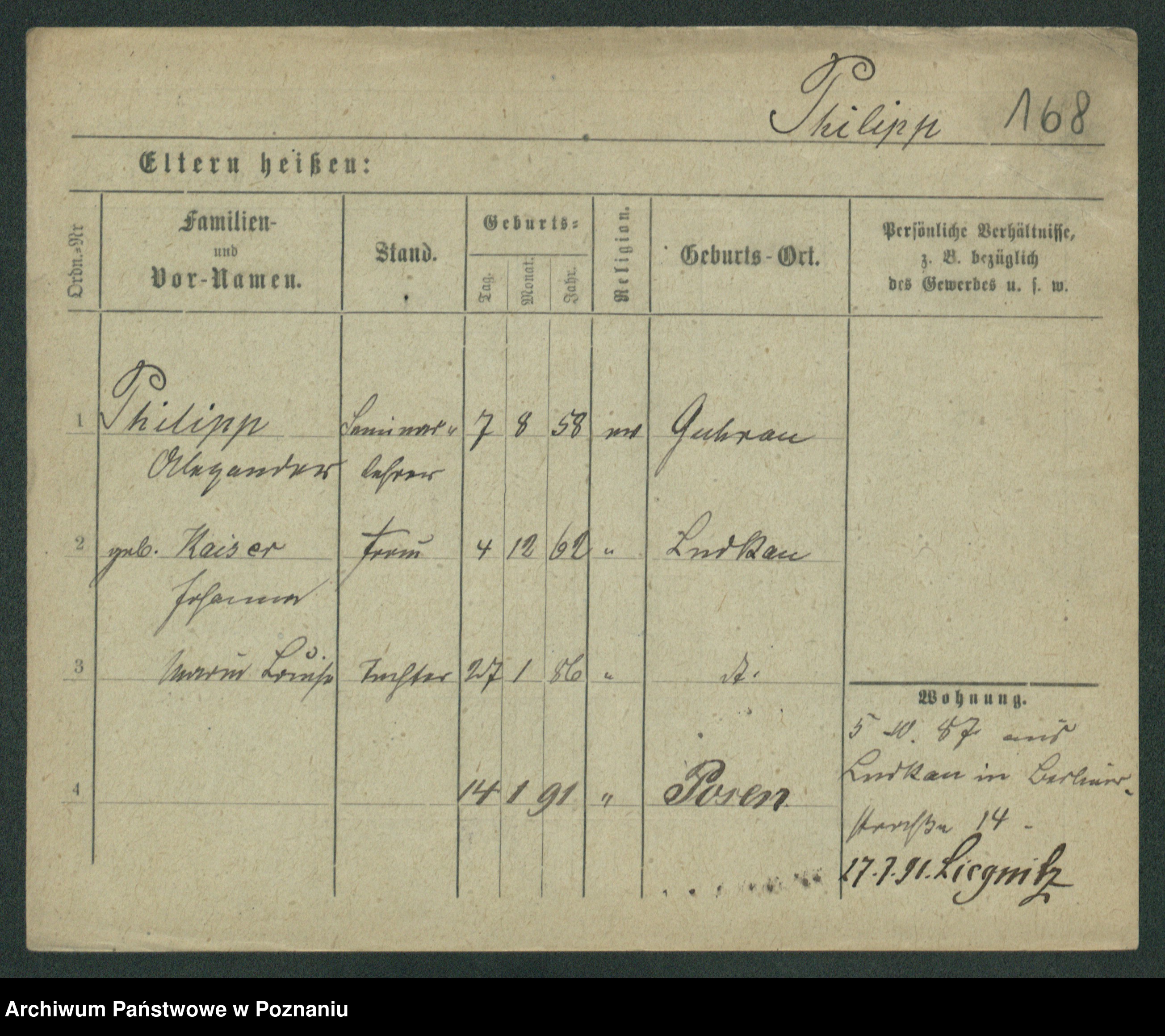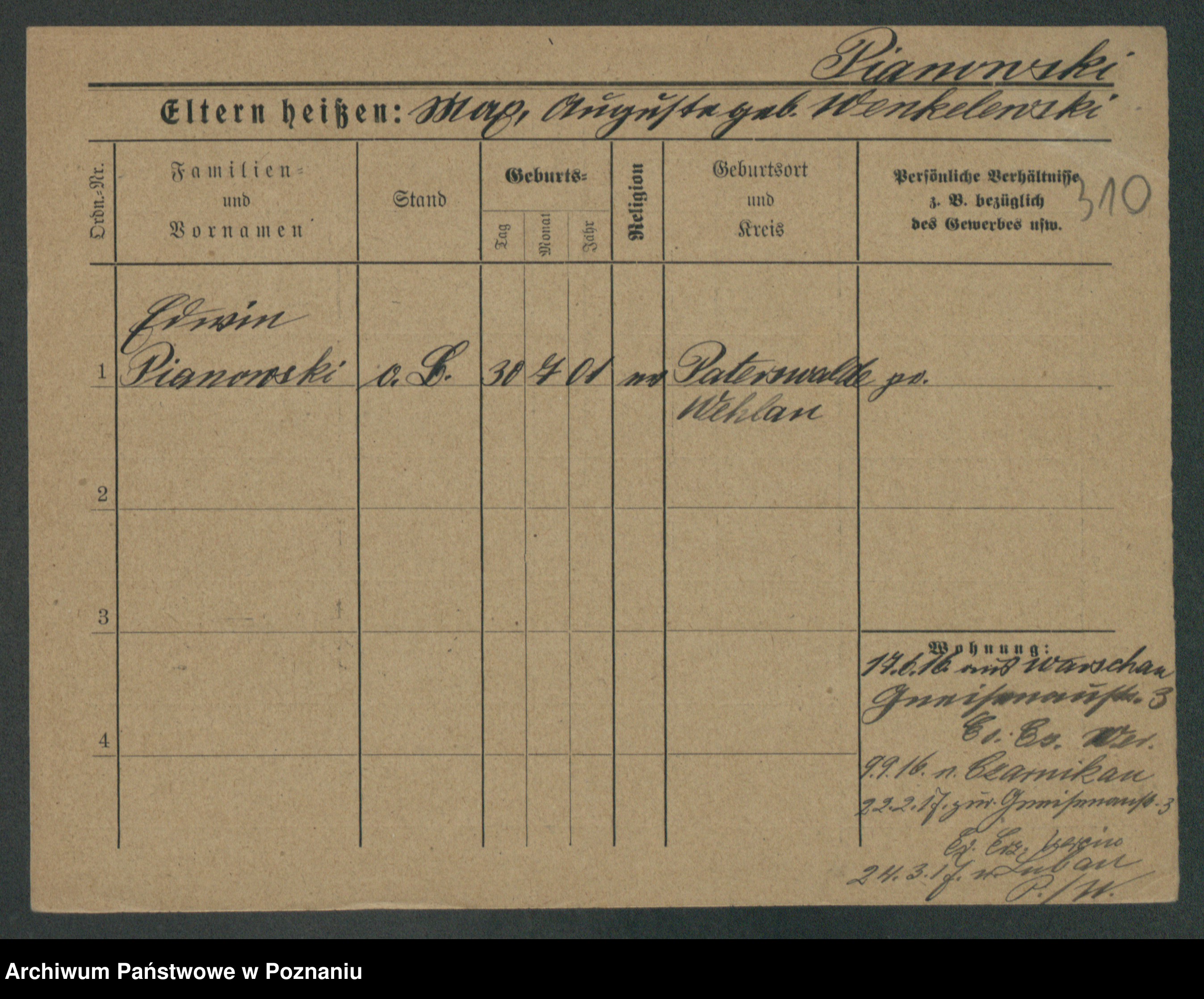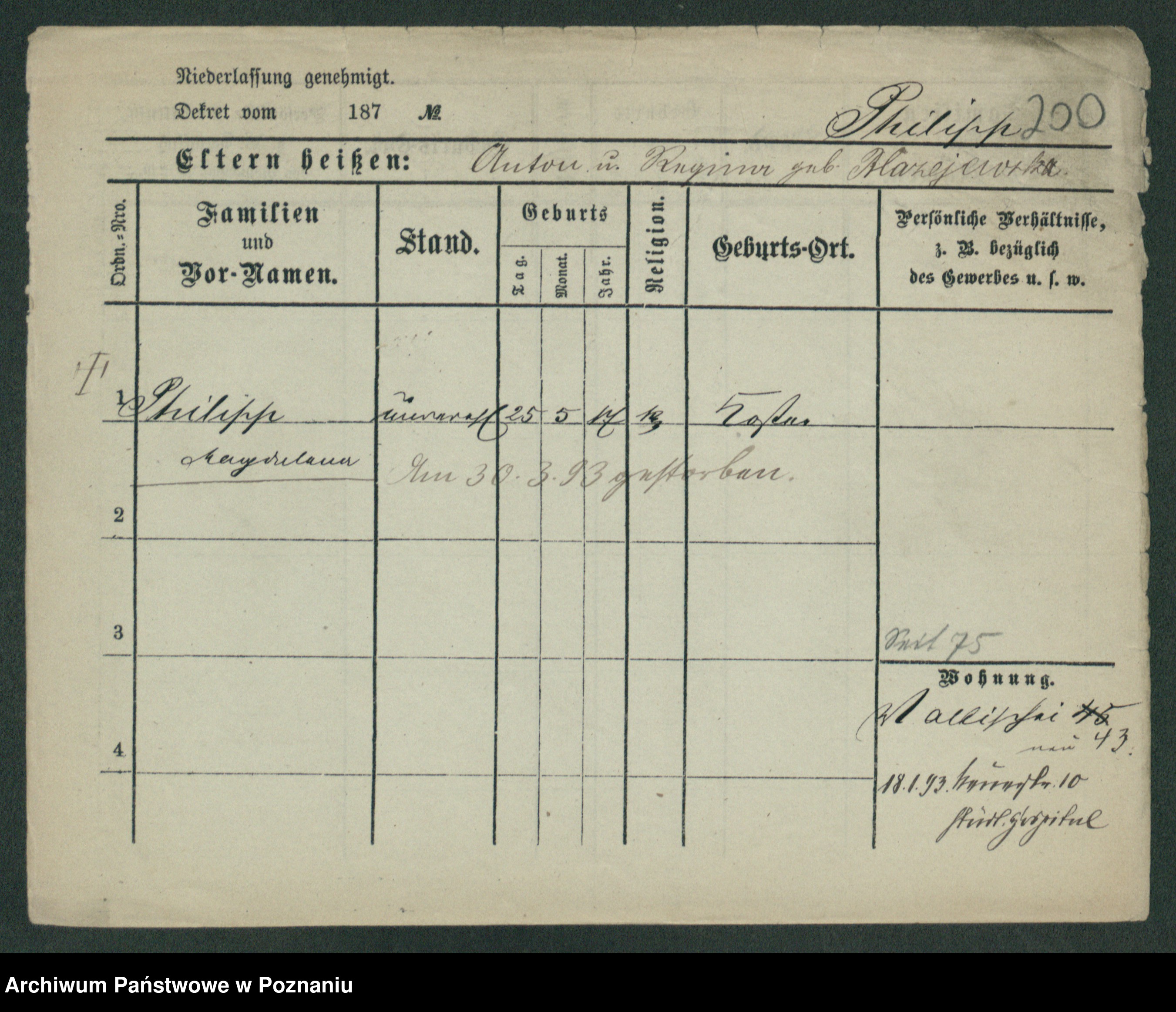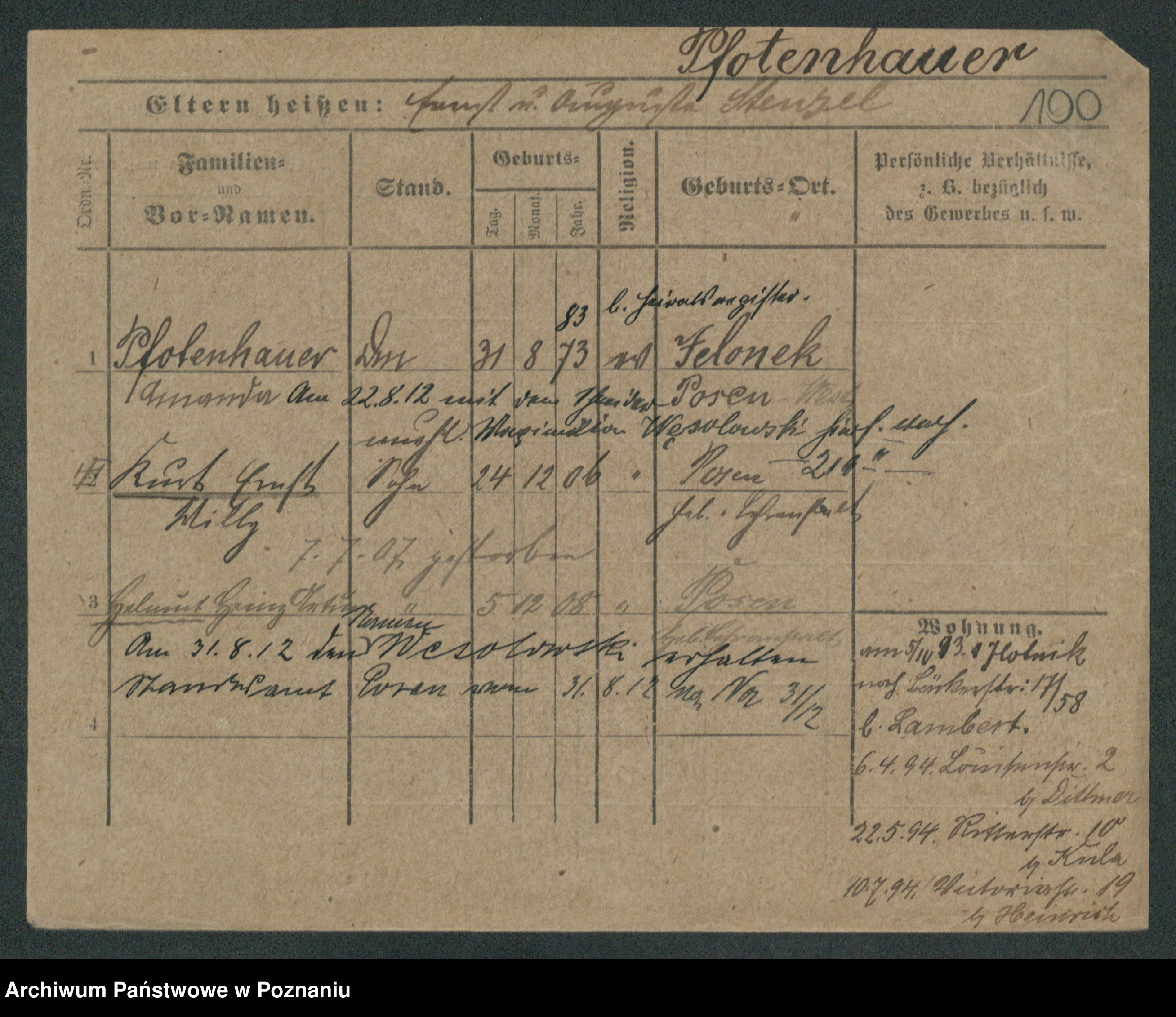 Podgląd karty osobowej dostępny jest po kliknięciu na nazwisko lub ikonkę karty. Można dokonywać powiększenia (ikony na górze) lub przechodzić między kolejnymi skanami (strzałki po bokach).