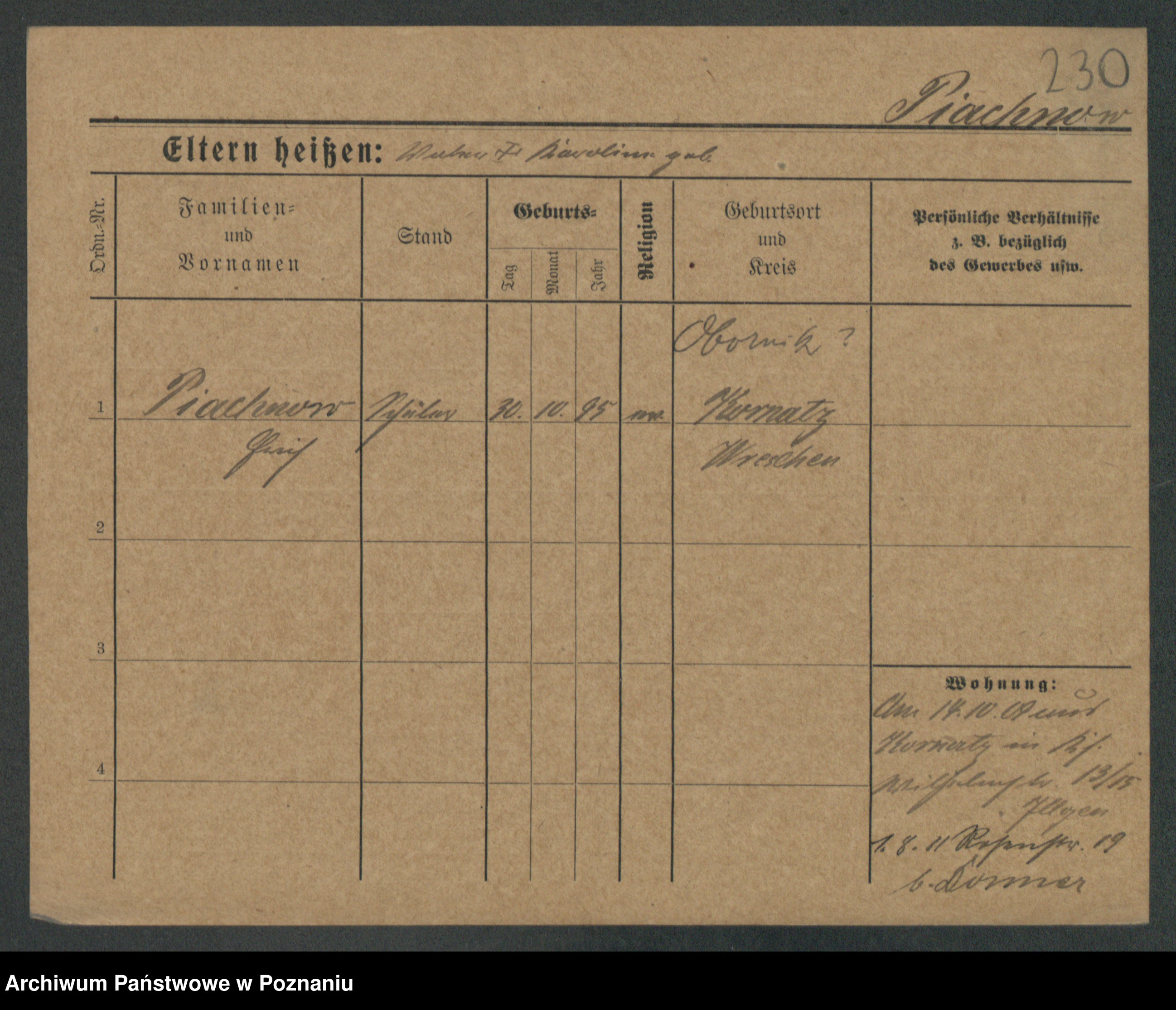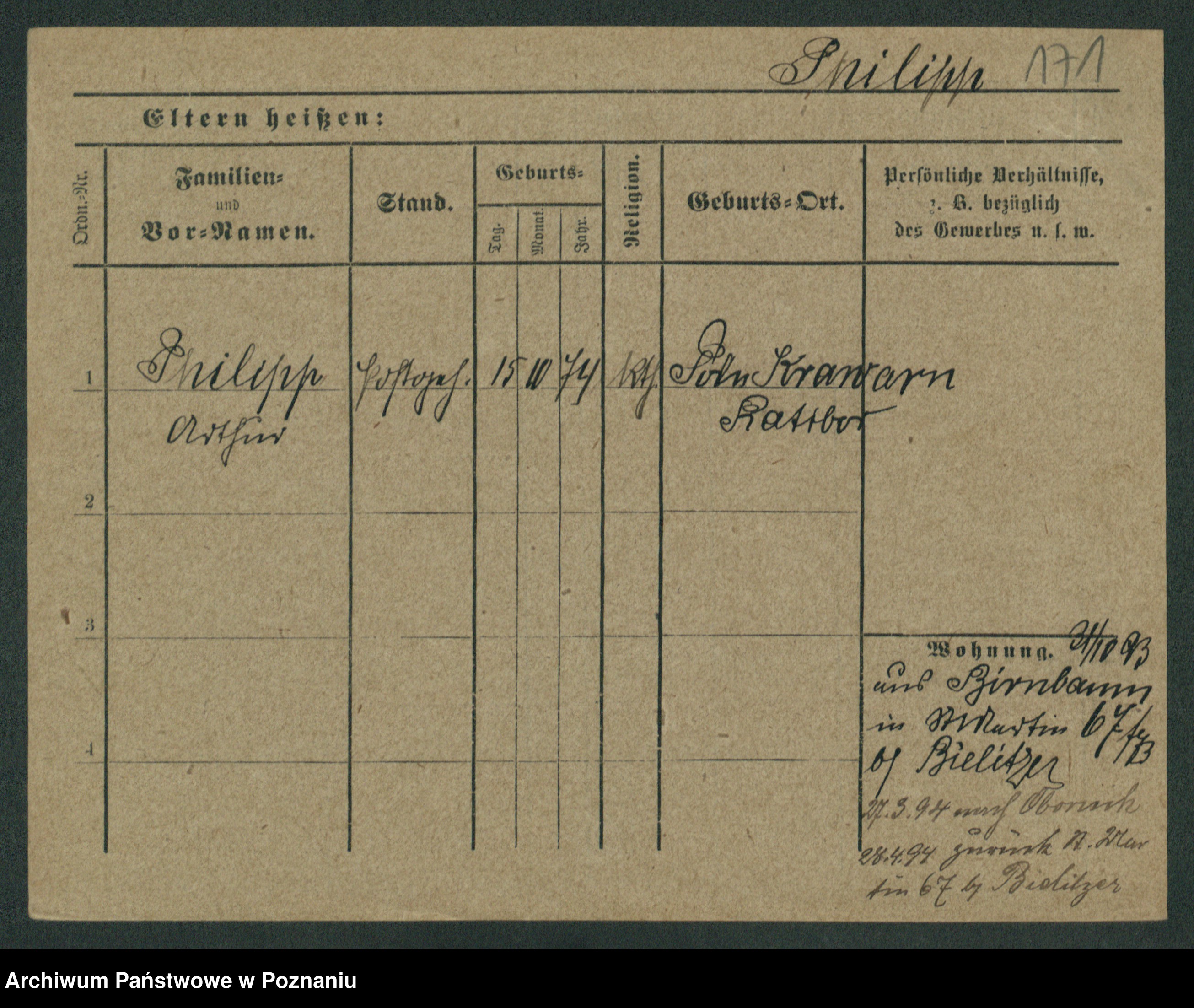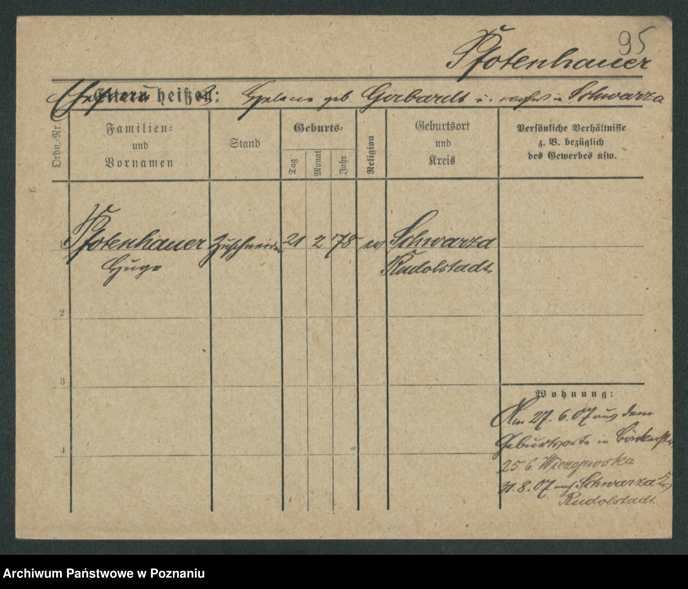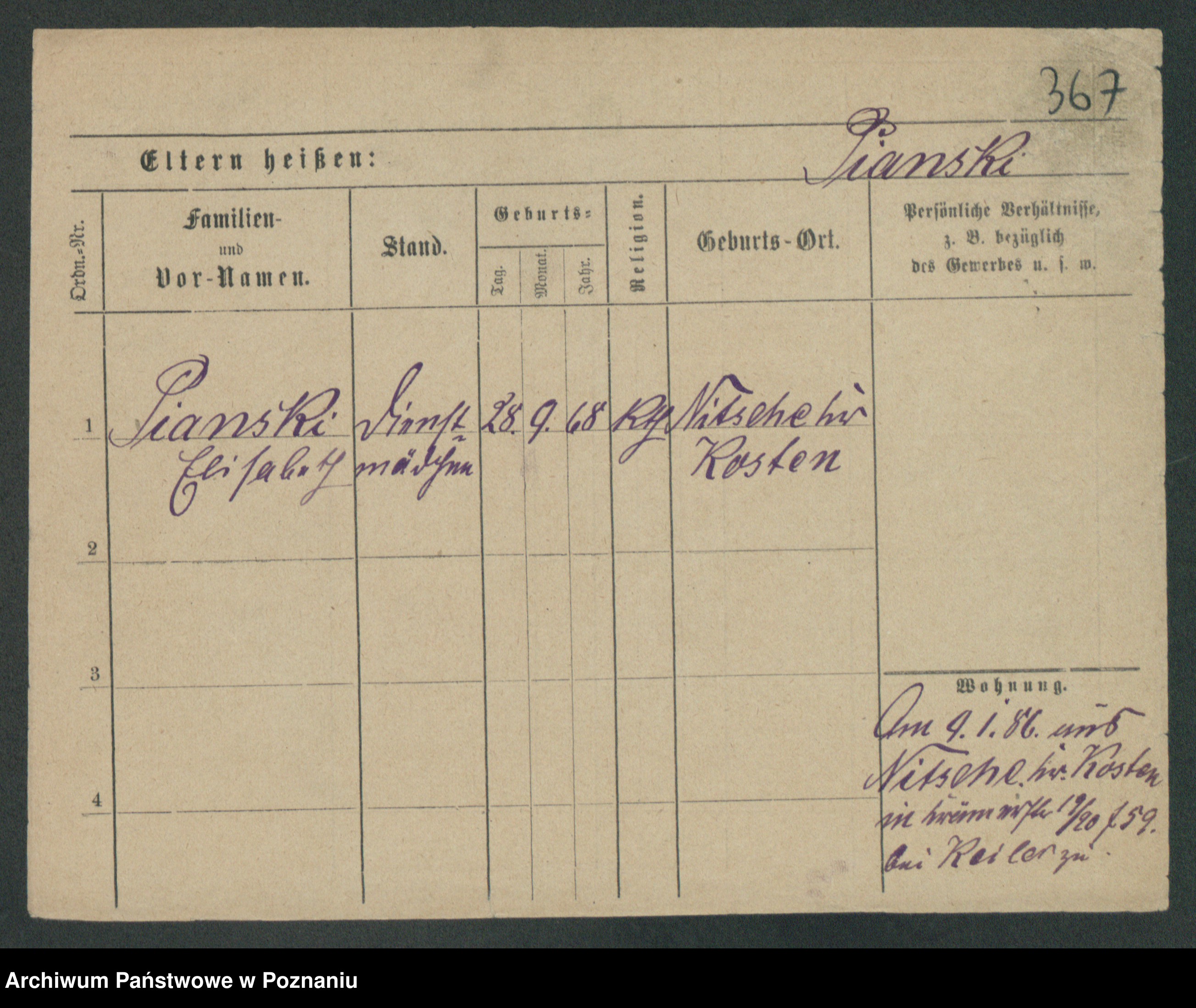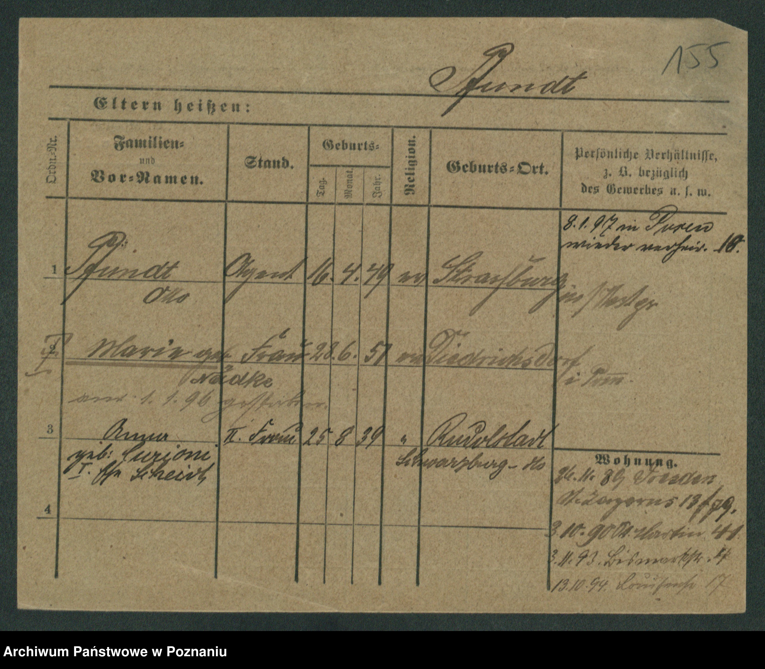 Podgląd karty osobowej dostępny jest po kliknięciu na nazwisko lub ikonkę karty. Można dokonywać powiększenia (ikony na górze) lub przechodzić między kolejnymi skanami (strzałki po bokach).