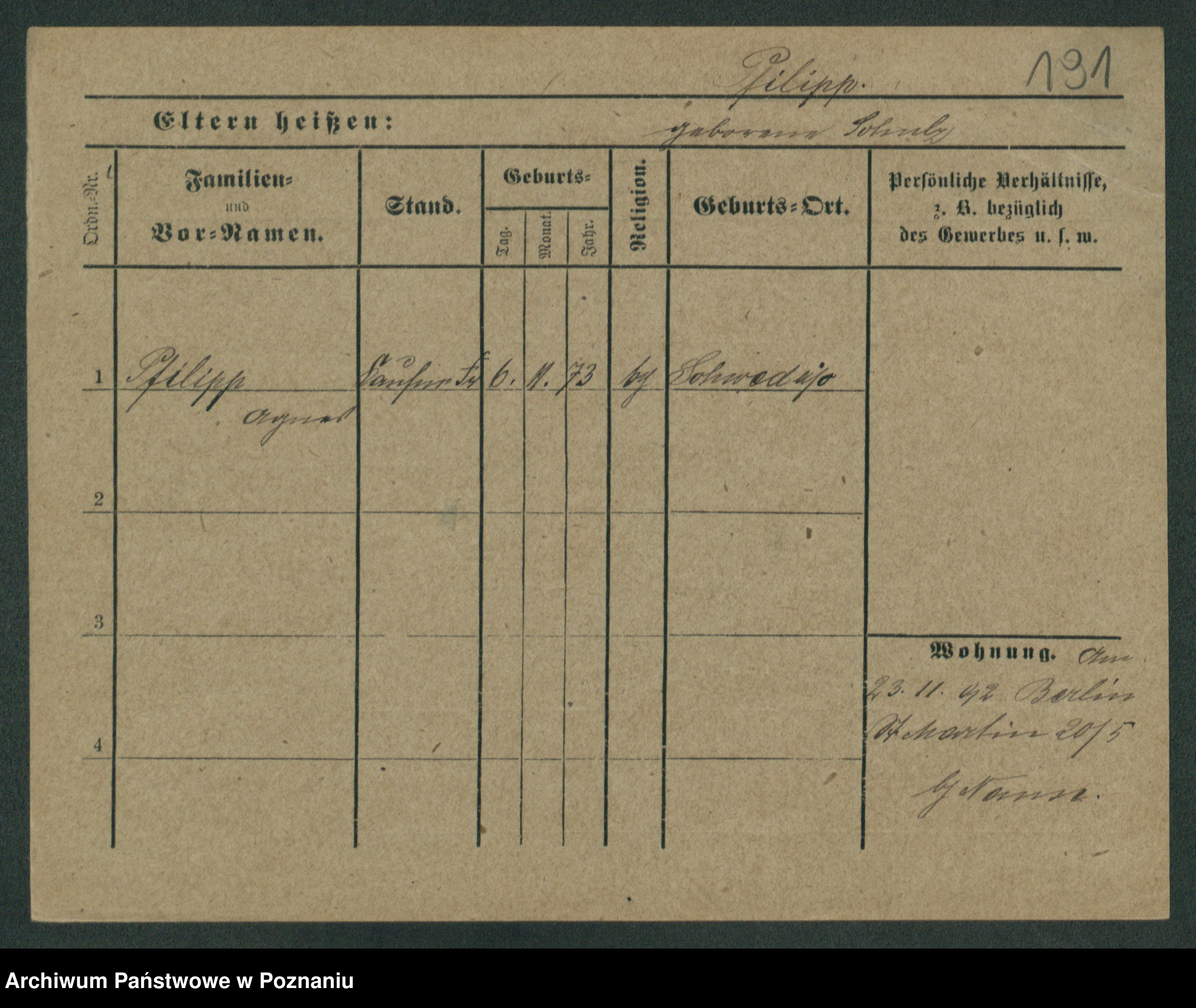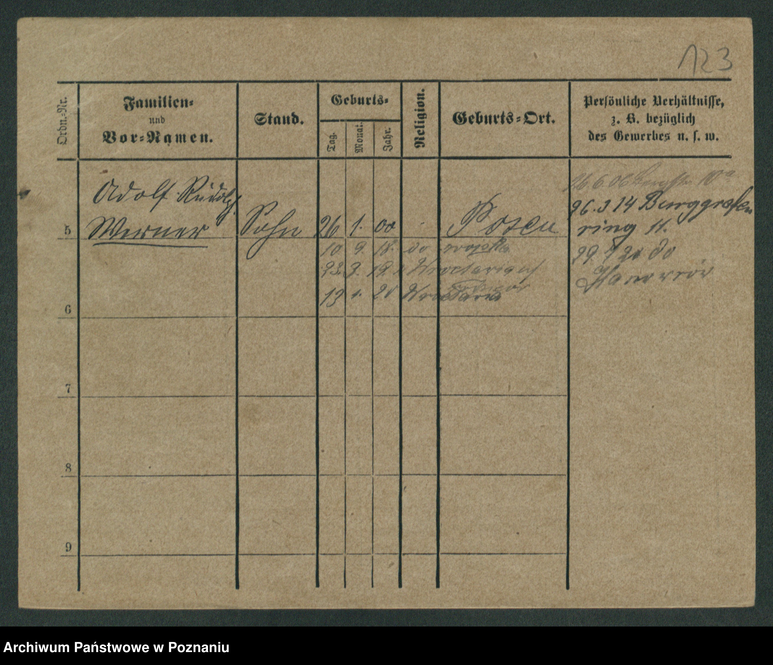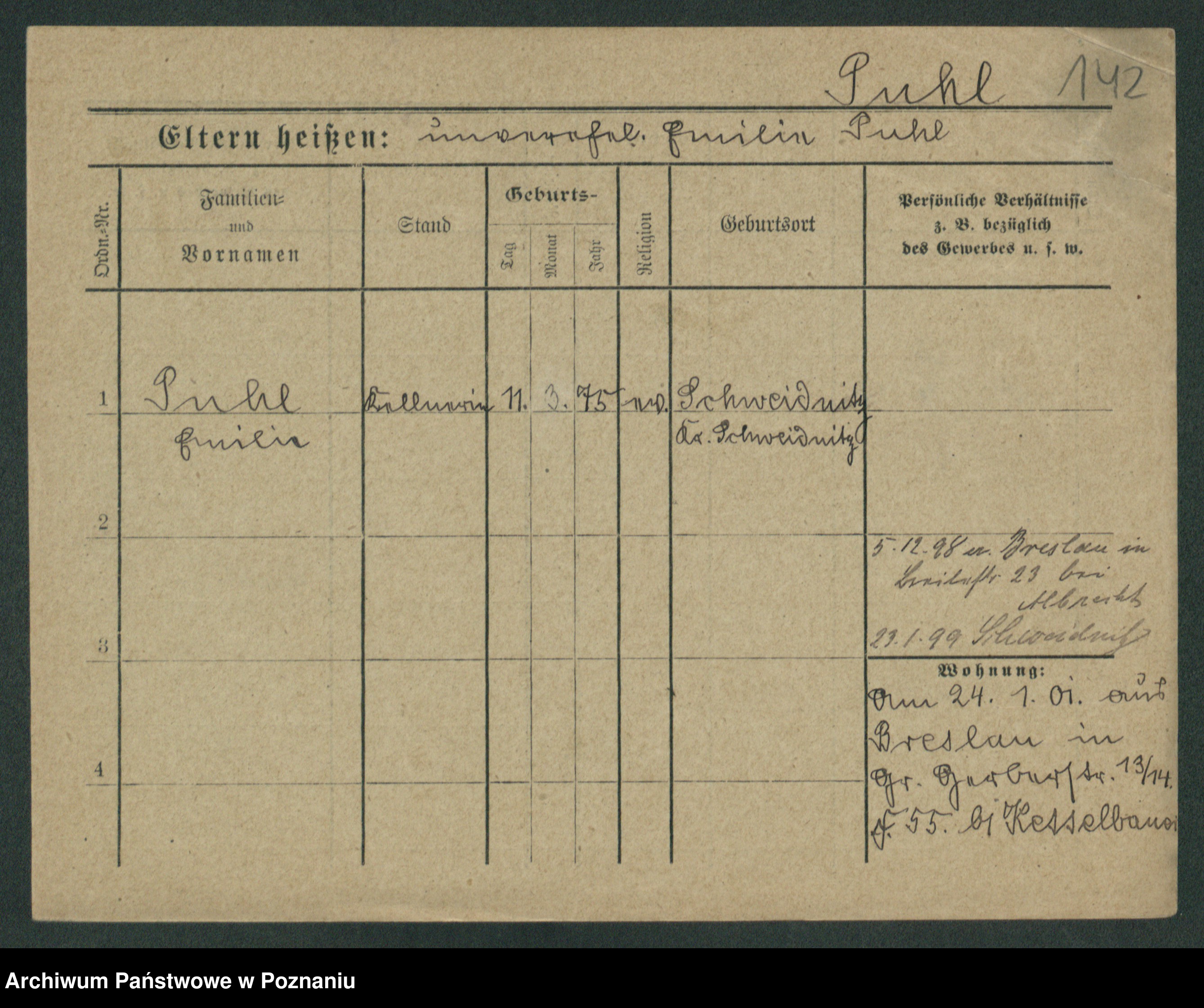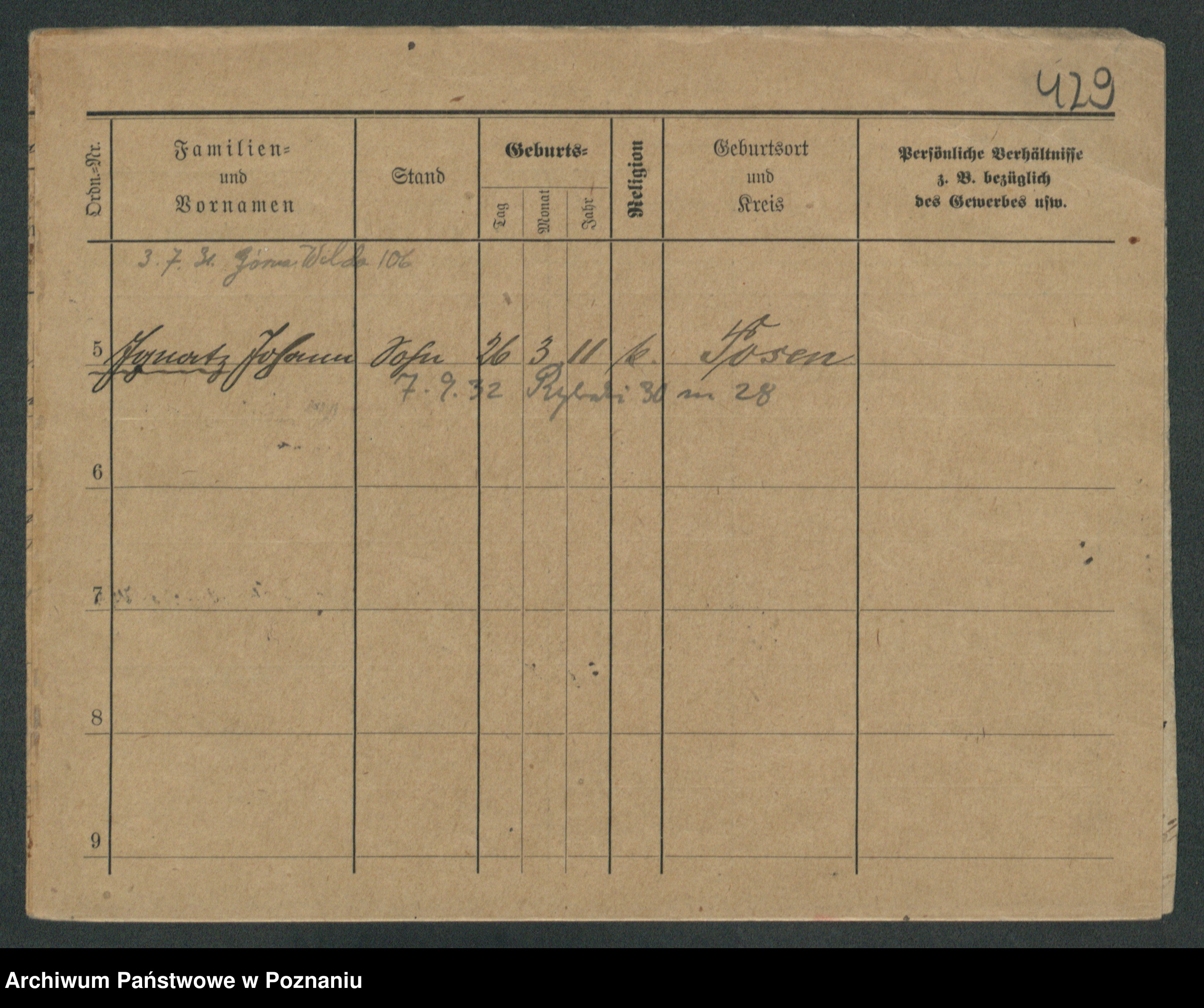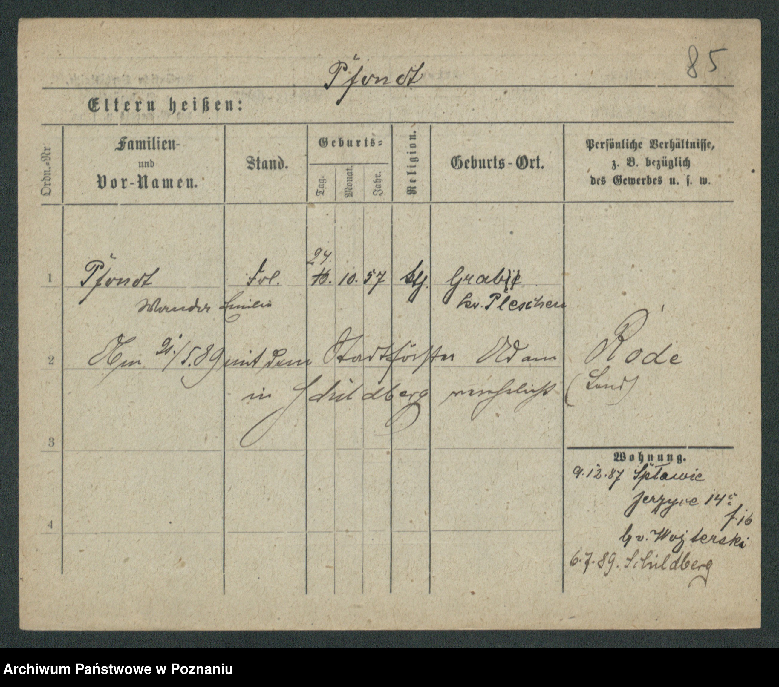 Podgląd karty osobowej dostępny jest po kliknięciu na nazwisko lub ikonkę karty. Można dokonywać powiększenia (ikony na górze) lub przechodzić między kolejnymi skanami (strzałki po bokach).