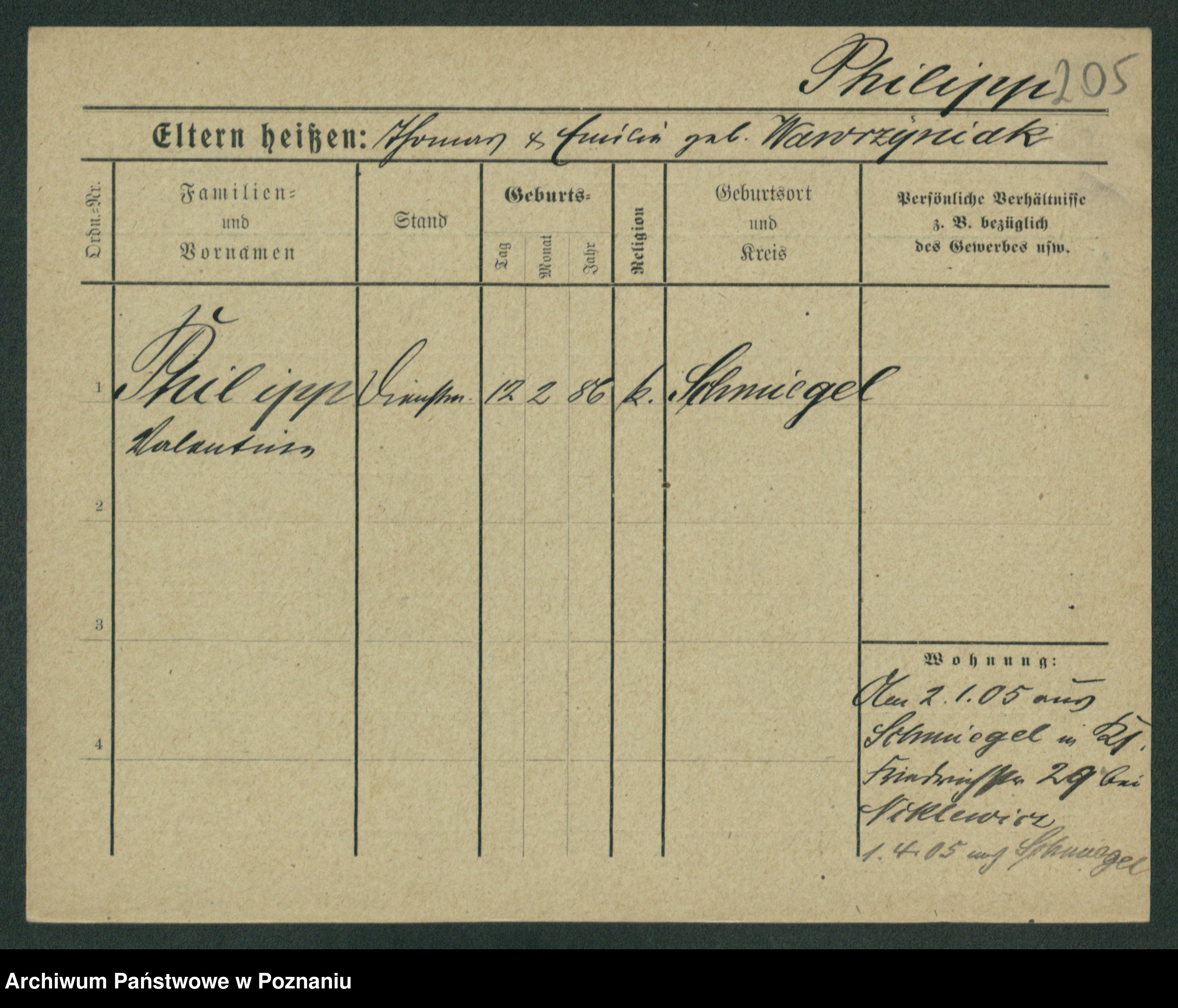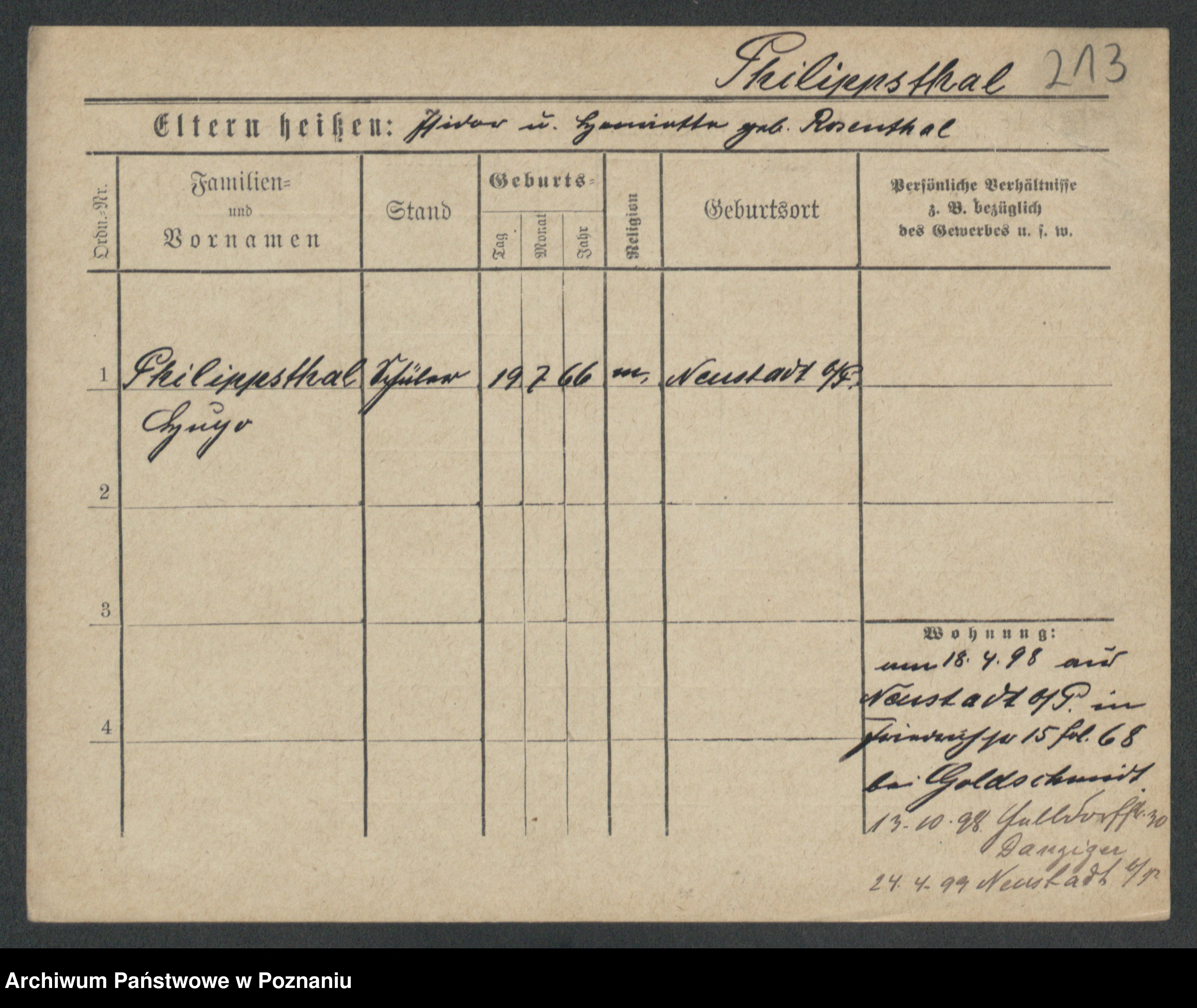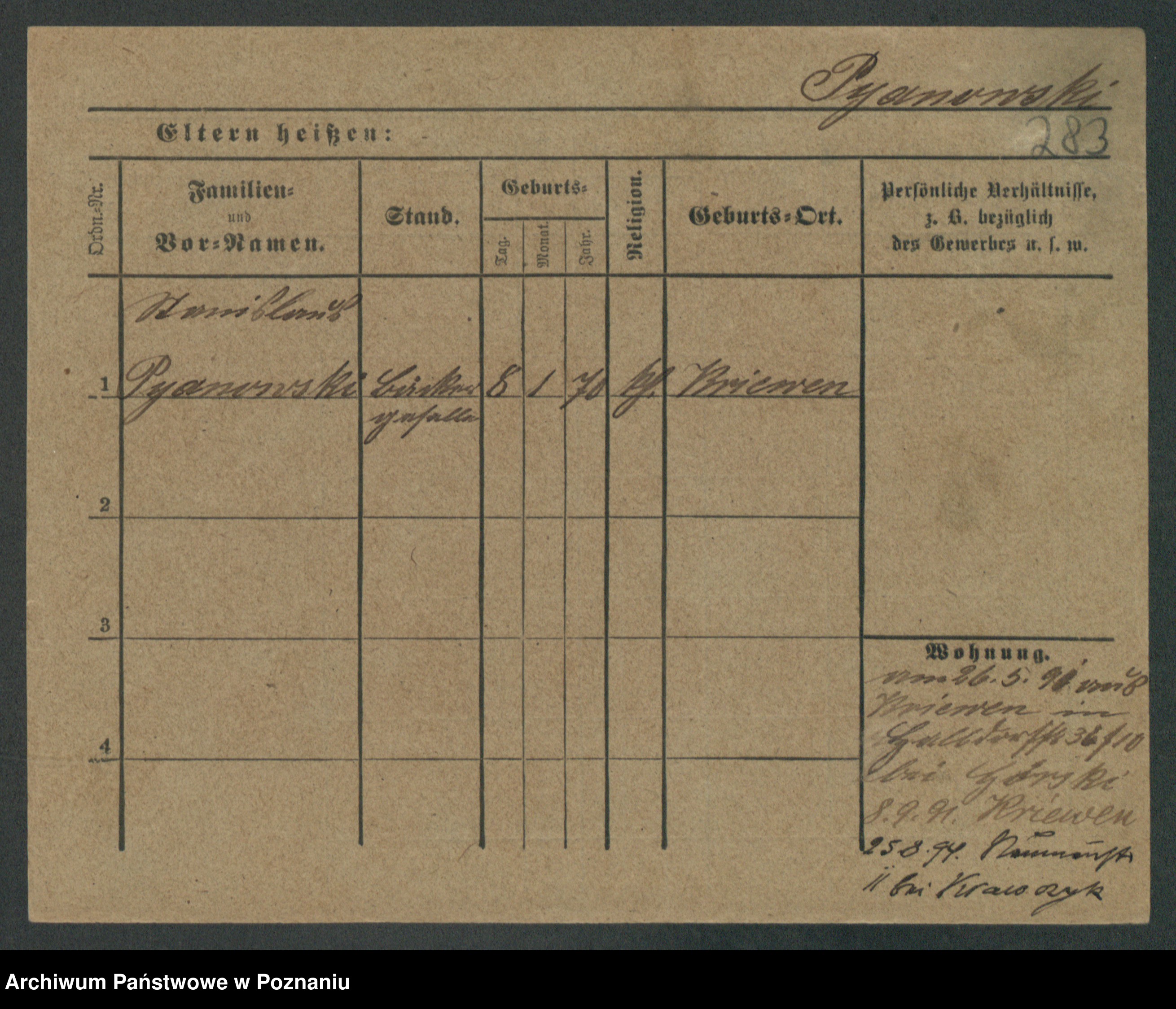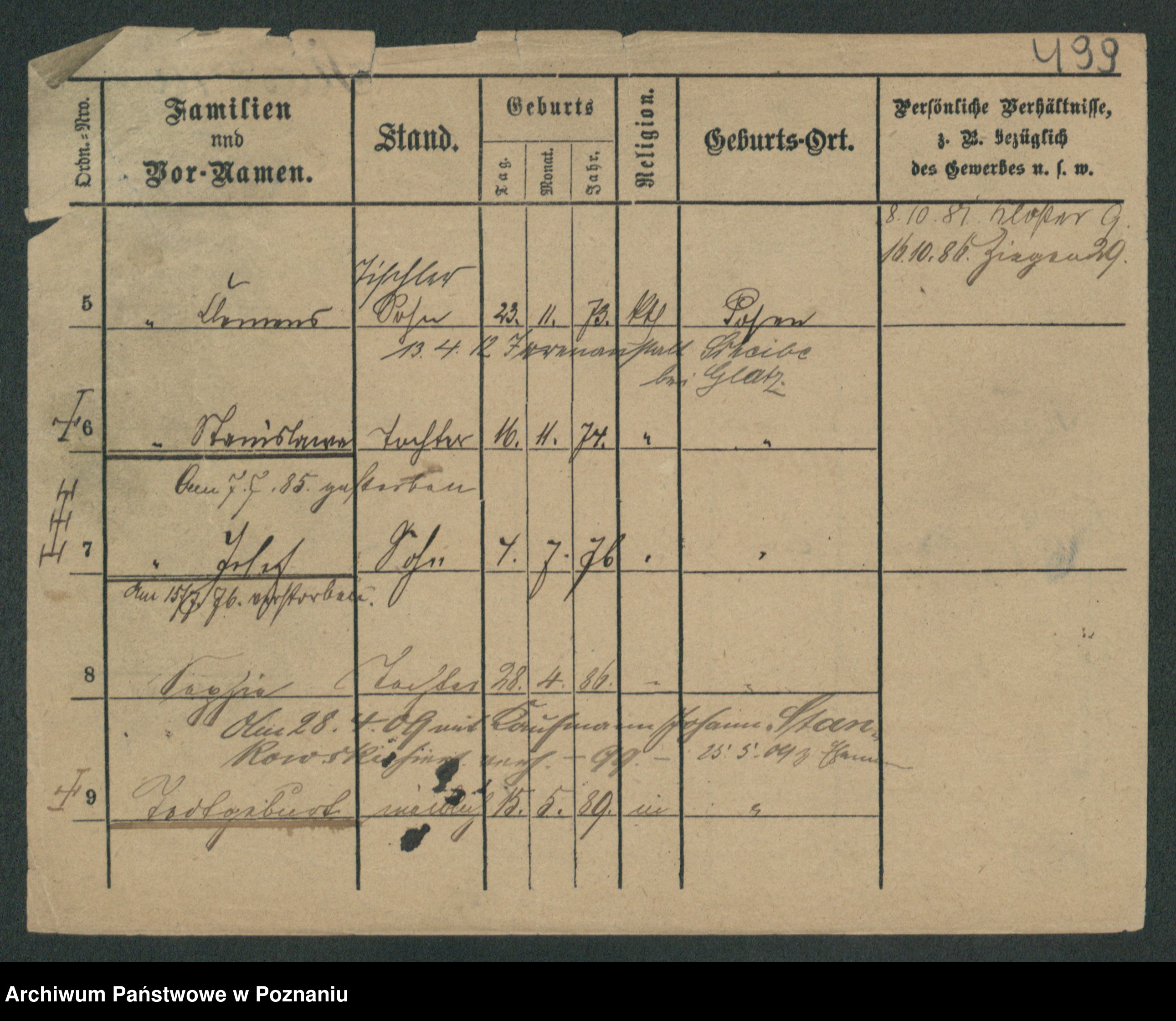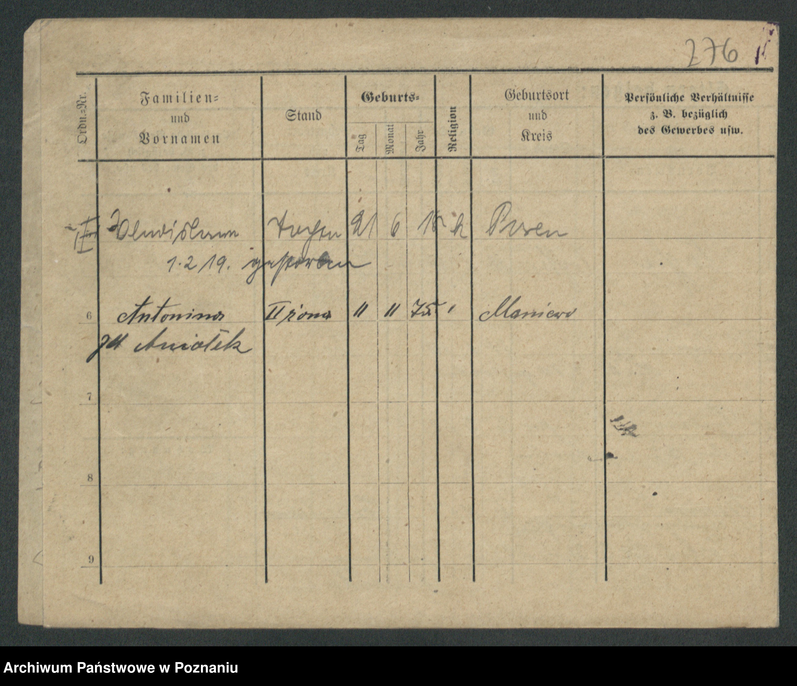 Podgląd karty osobowej dostępny jest po kliknięciu na nazwisko lub ikonkę karty. Można dokonywać powiększenia (ikony na górze) lub przechodzić między kolejnymi skanami (strzałki po bokach).