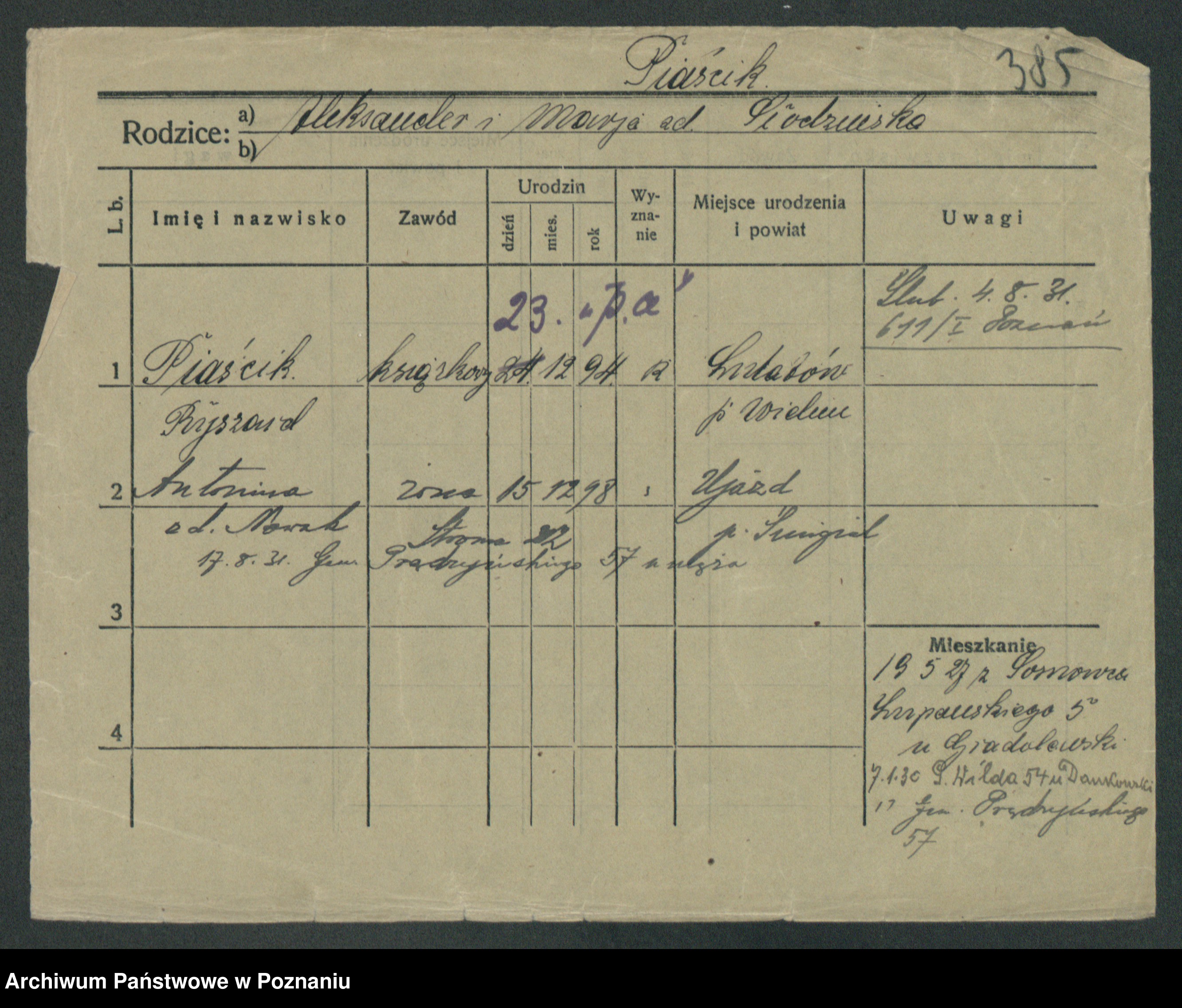 Piasecka, Kazimierz Zbigniew