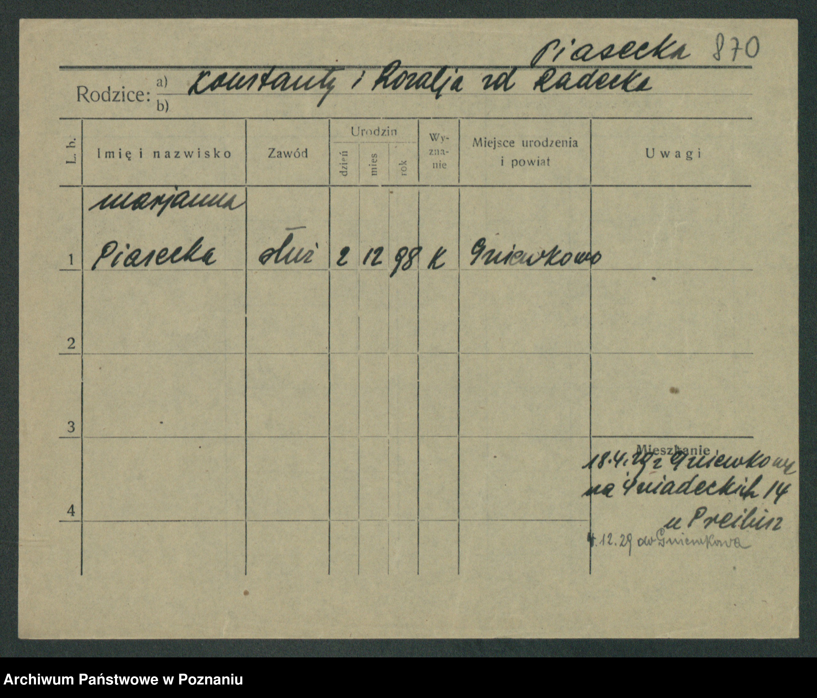 Piazecka, Marjanna