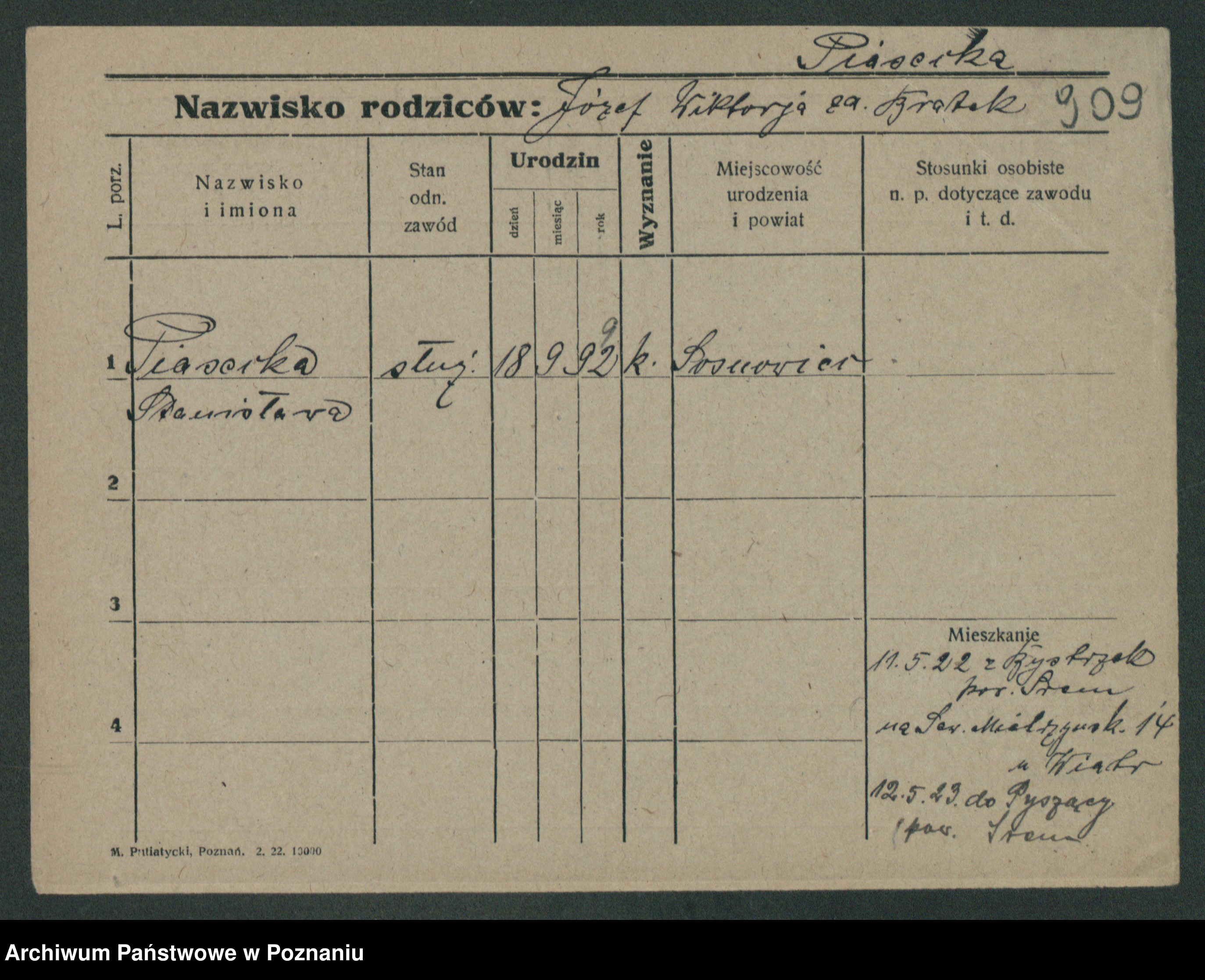 karta: 909
