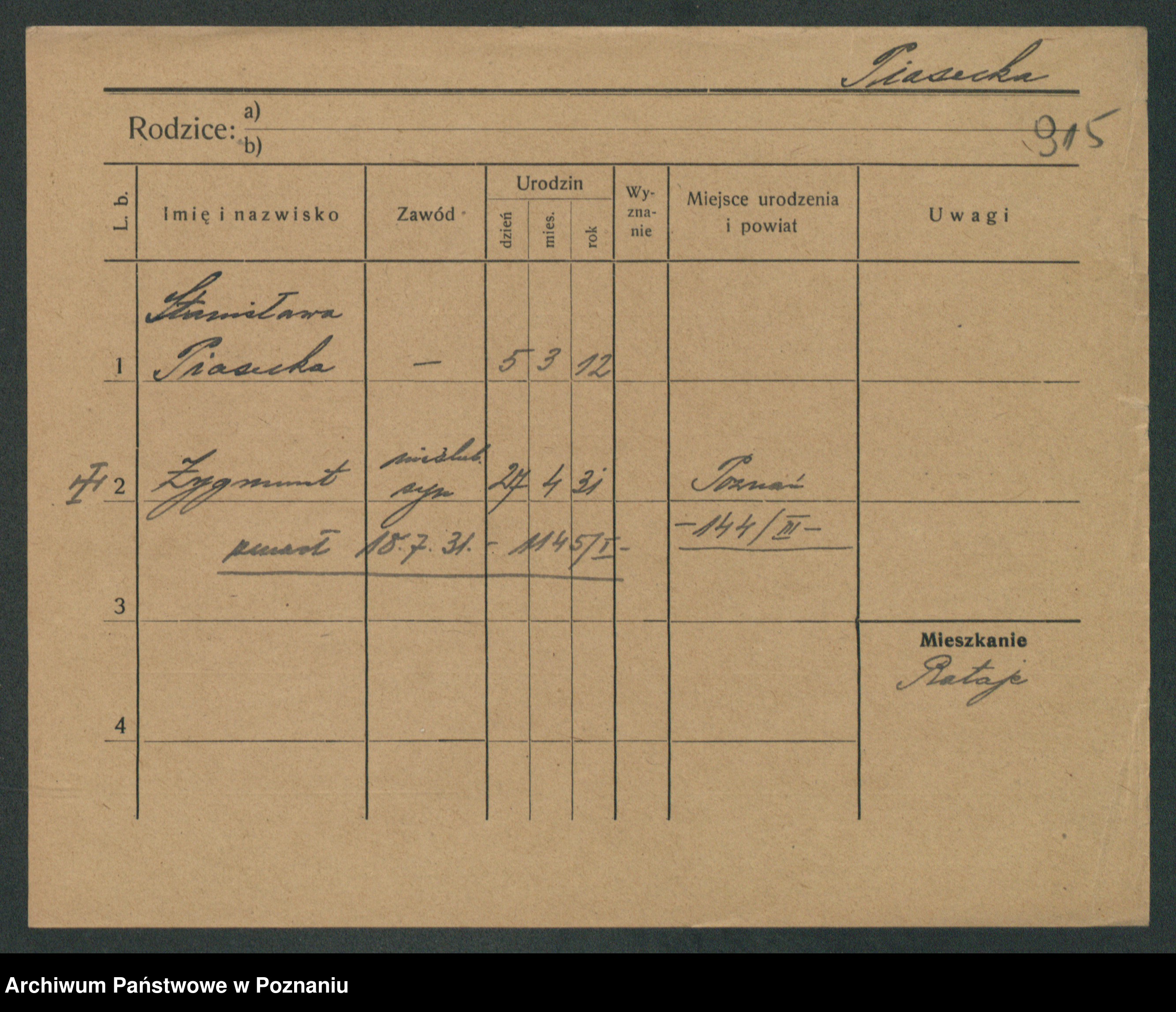 Piasecka, Zygmunt