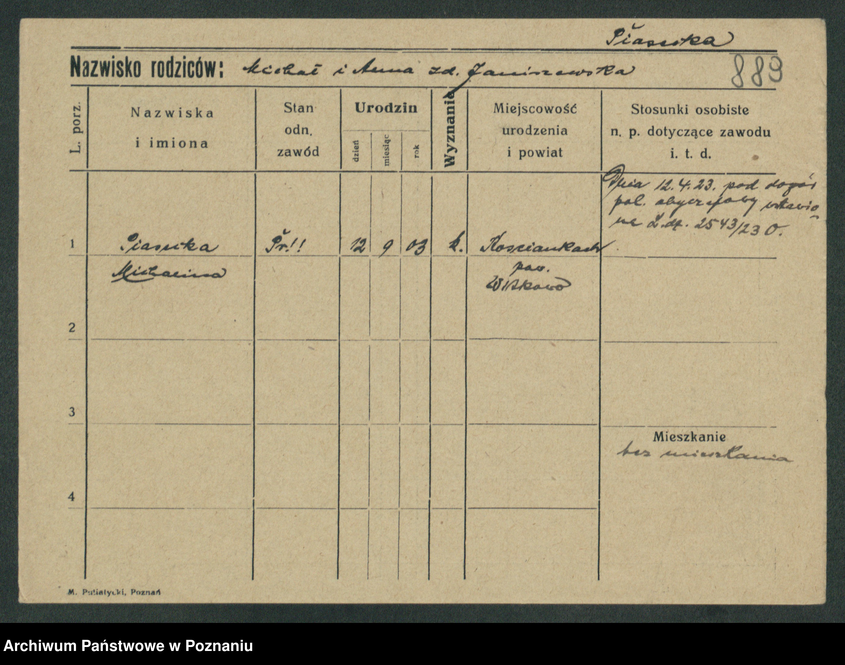 karta: 889