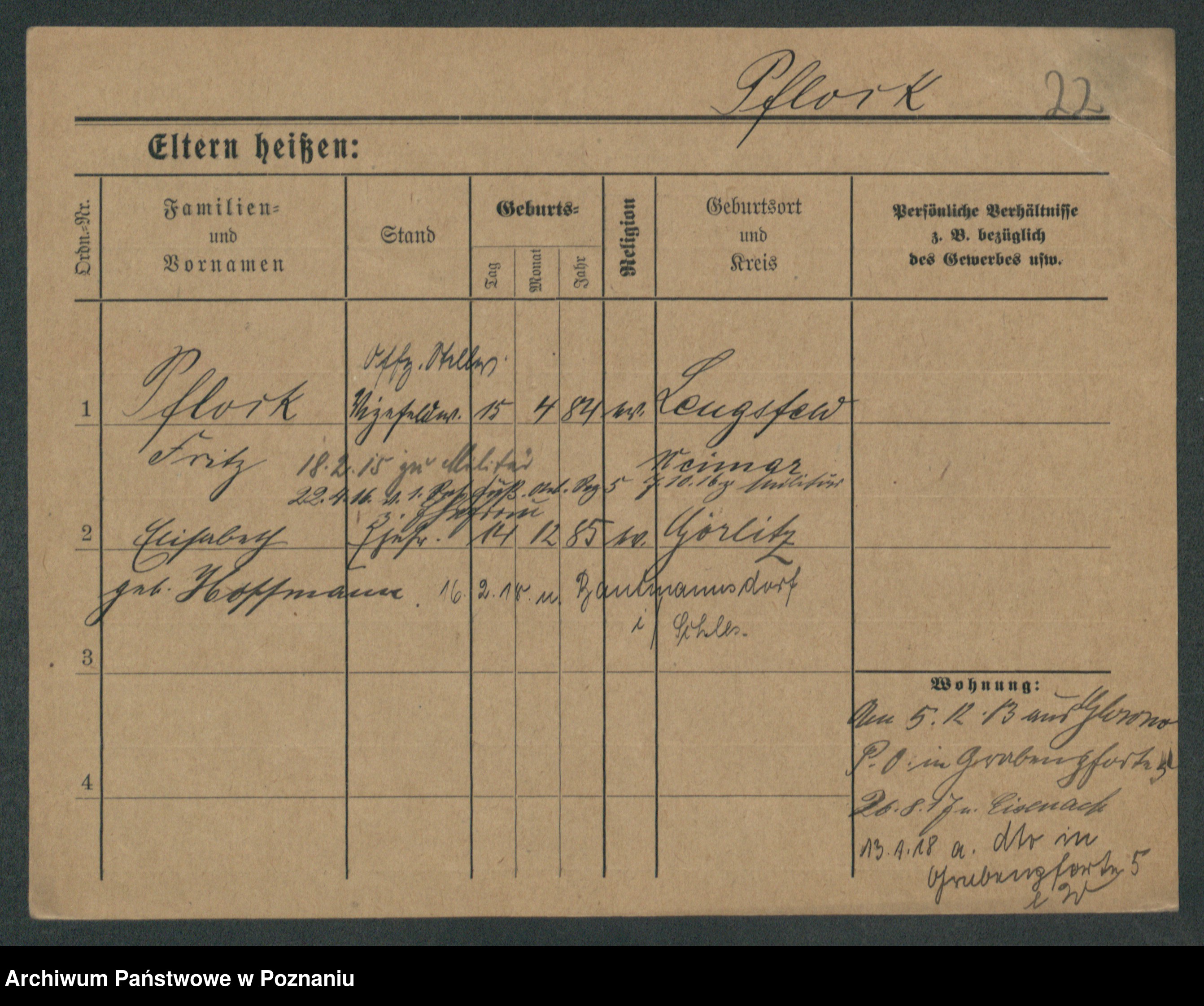 Pflock z.d. Hoffmann, Elisabeth
