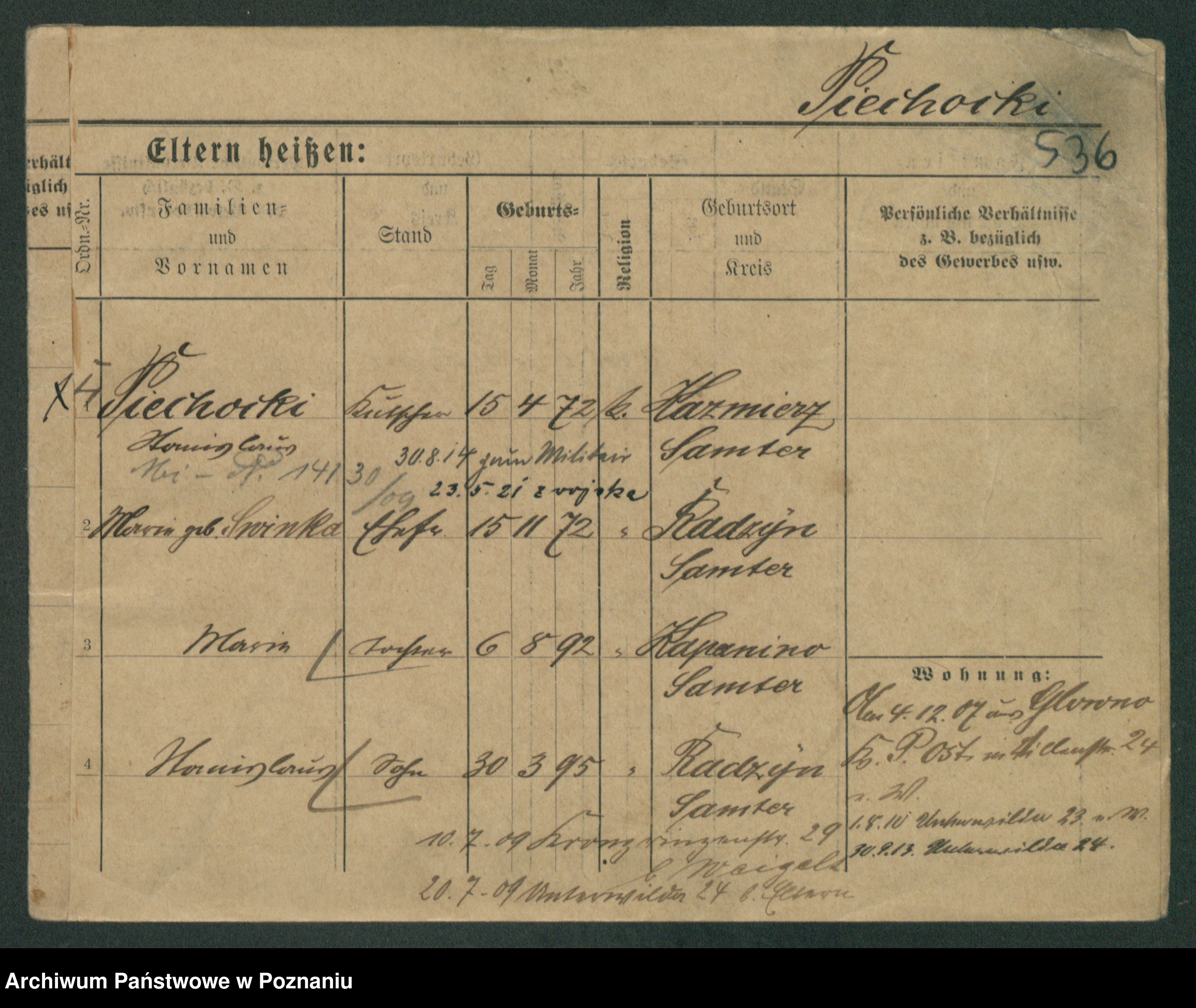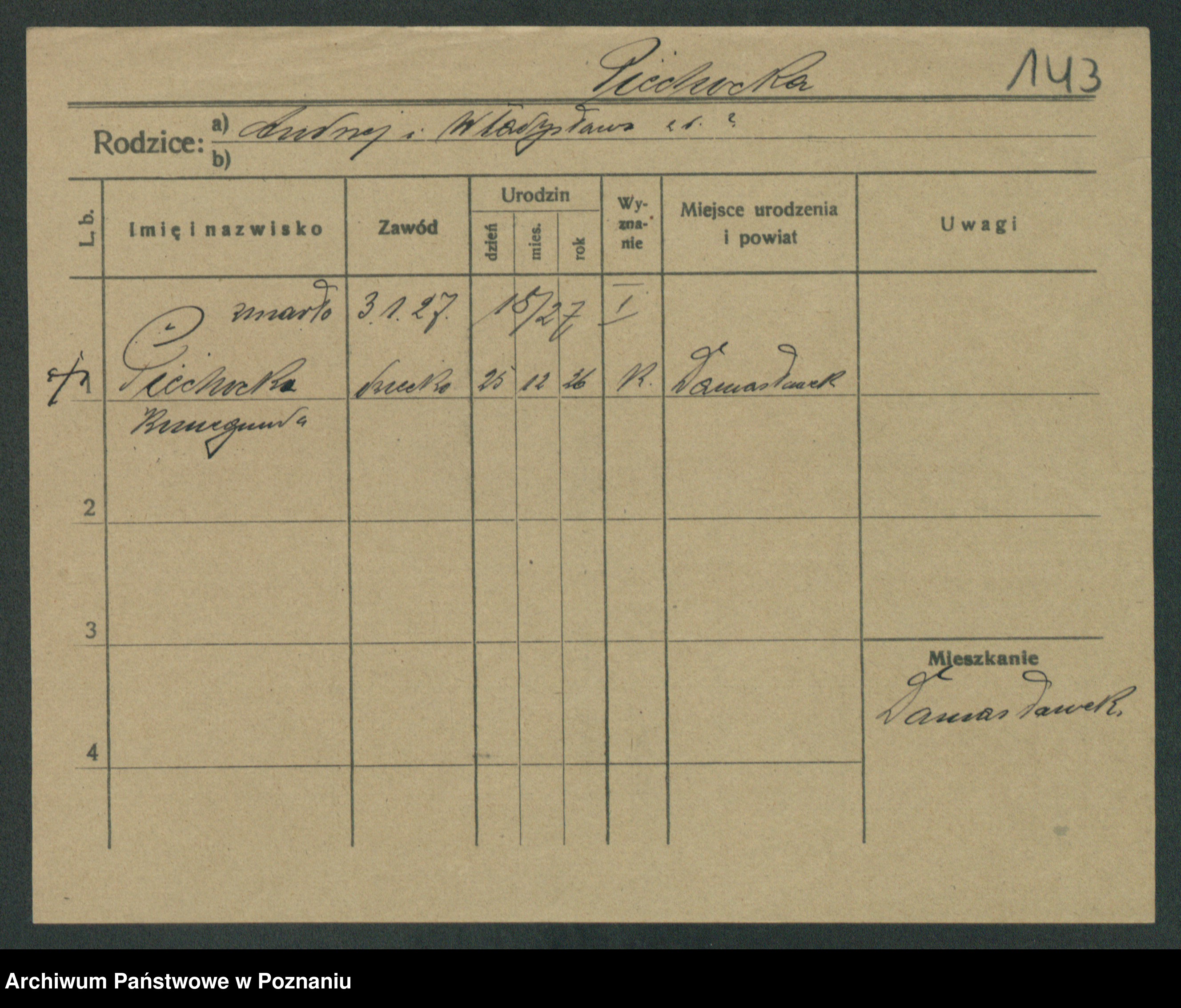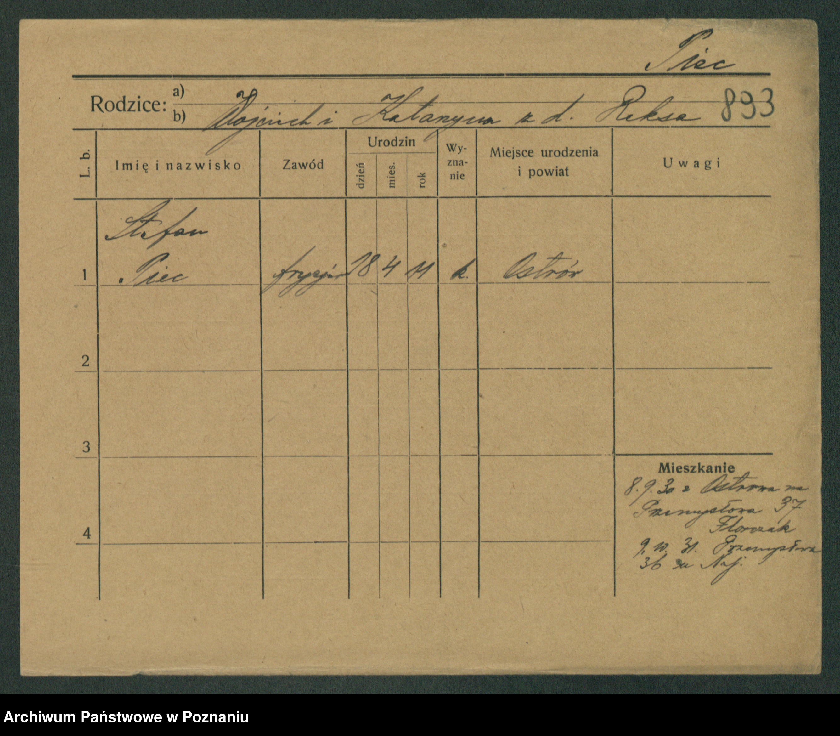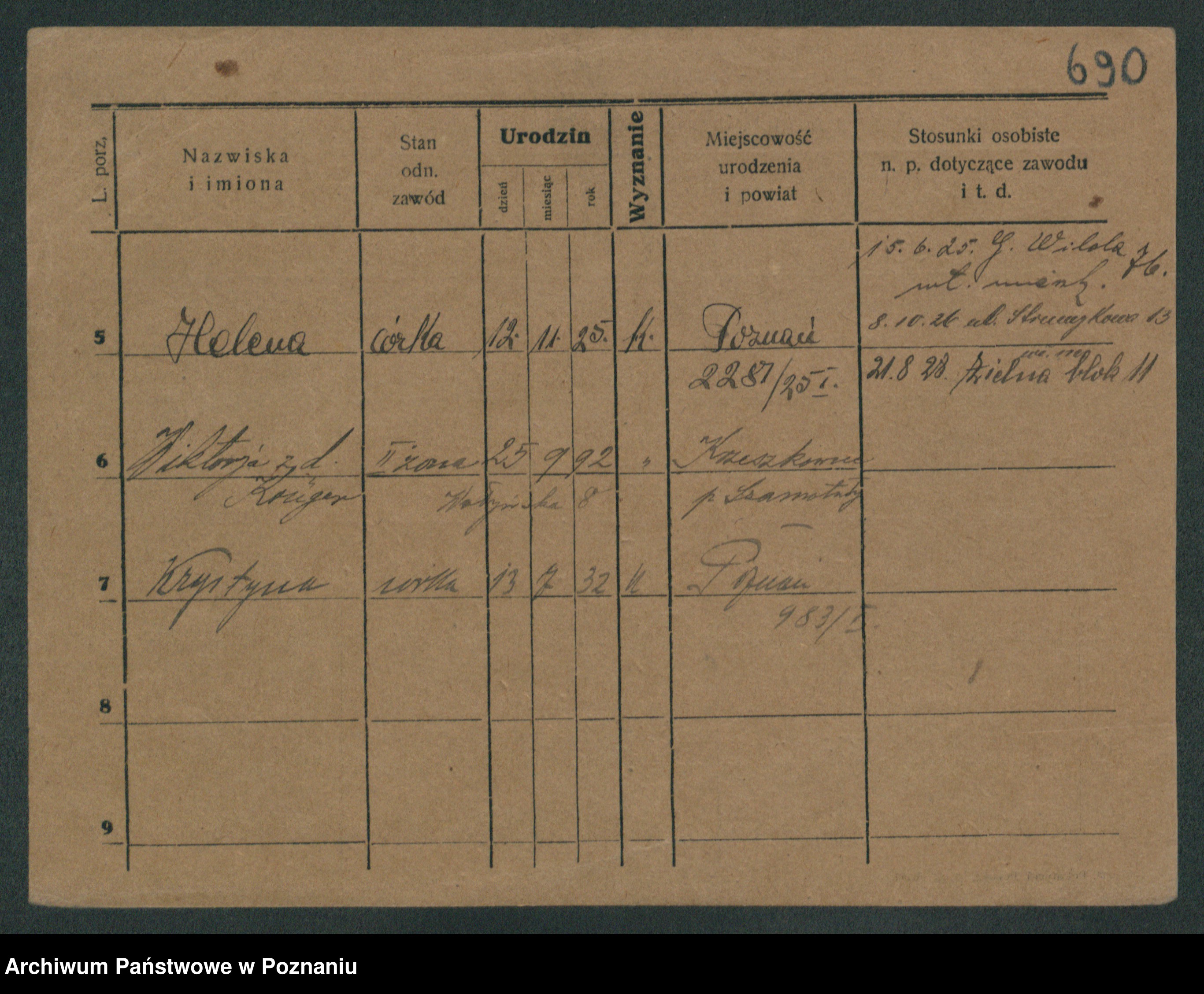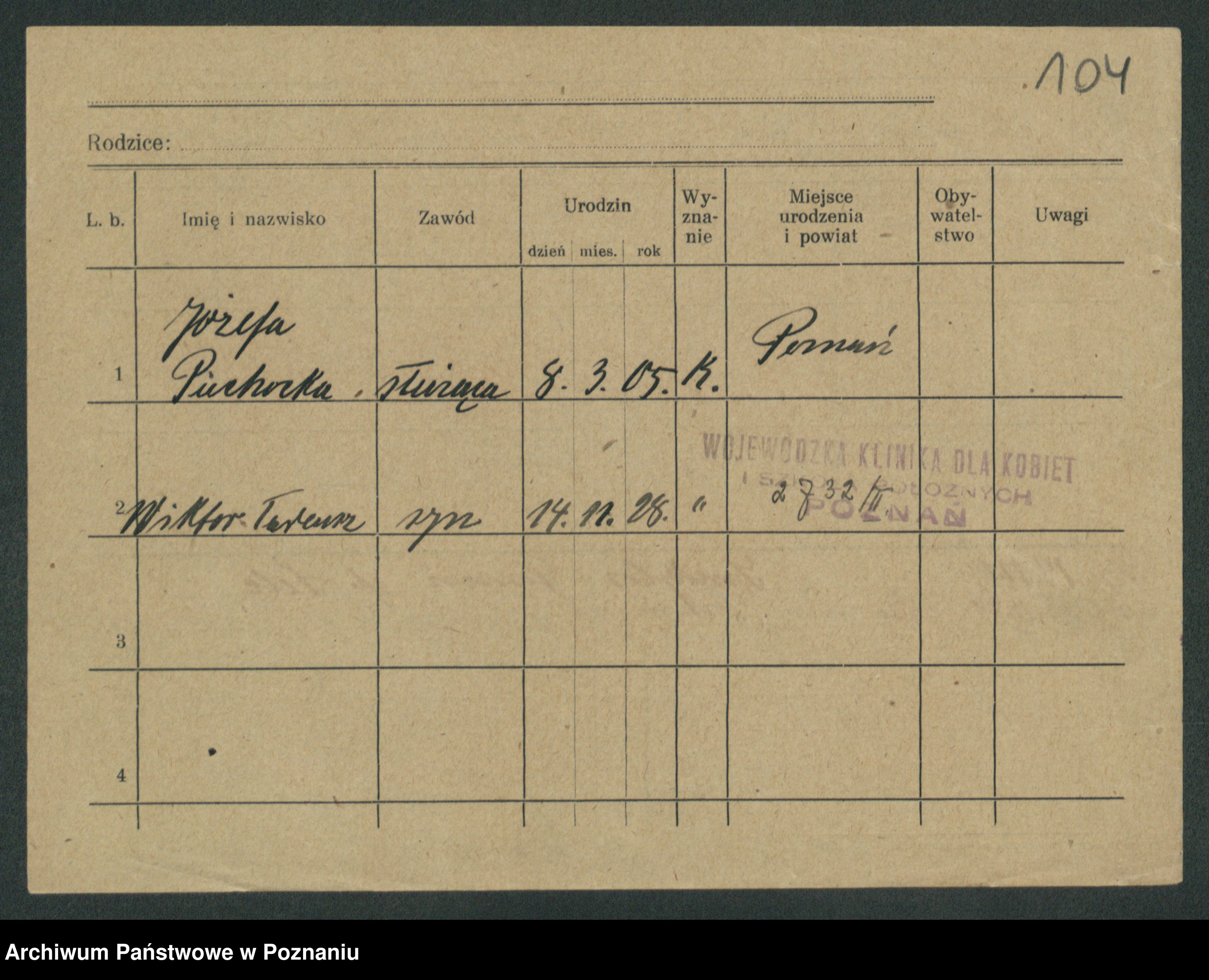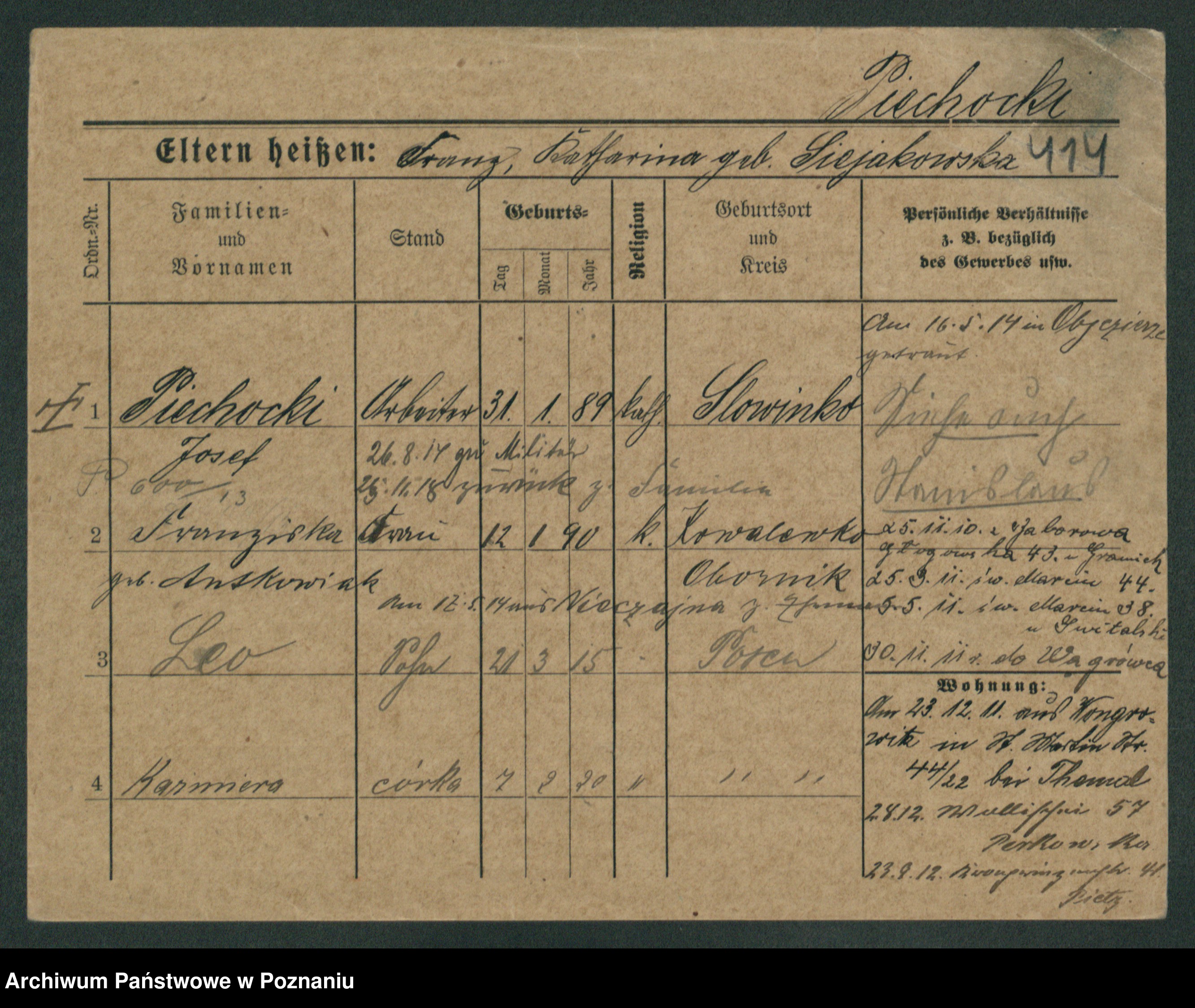 Podgląd karty osobowej dostępny jest po kliknięciu na nazwisko lub ikonkę karty. Można dokonywać powiększenia (ikony na górze) lub przechodzić między kolejnymi skanami (strzałki po bokach).
