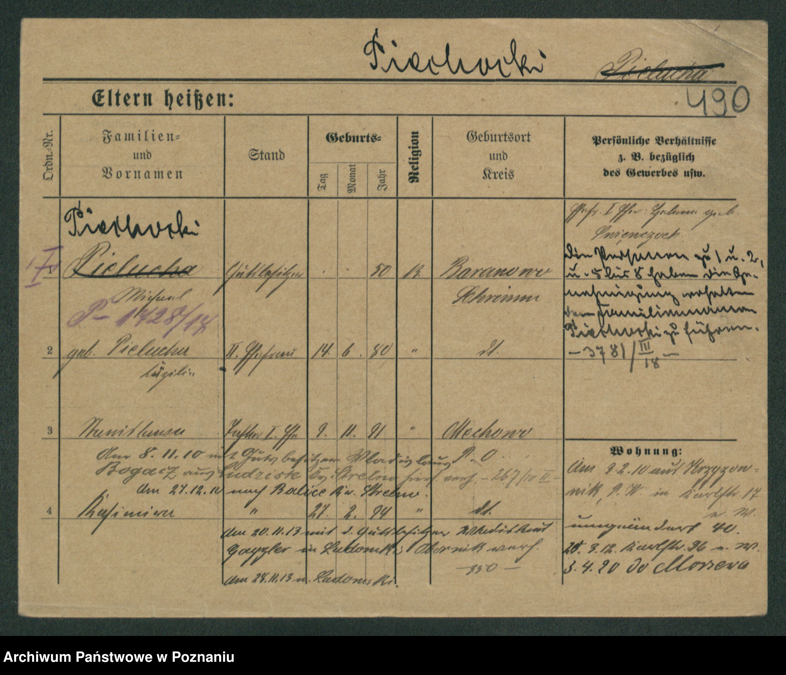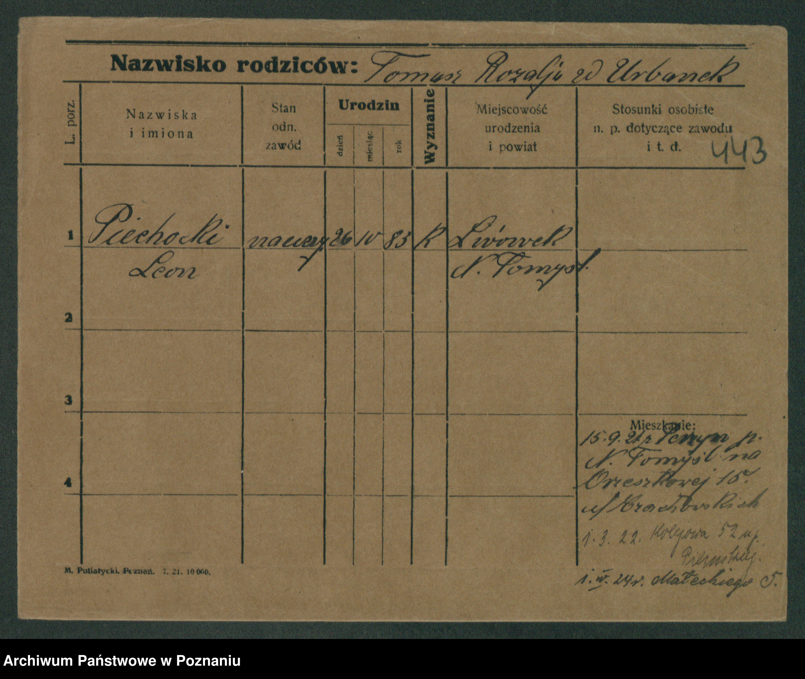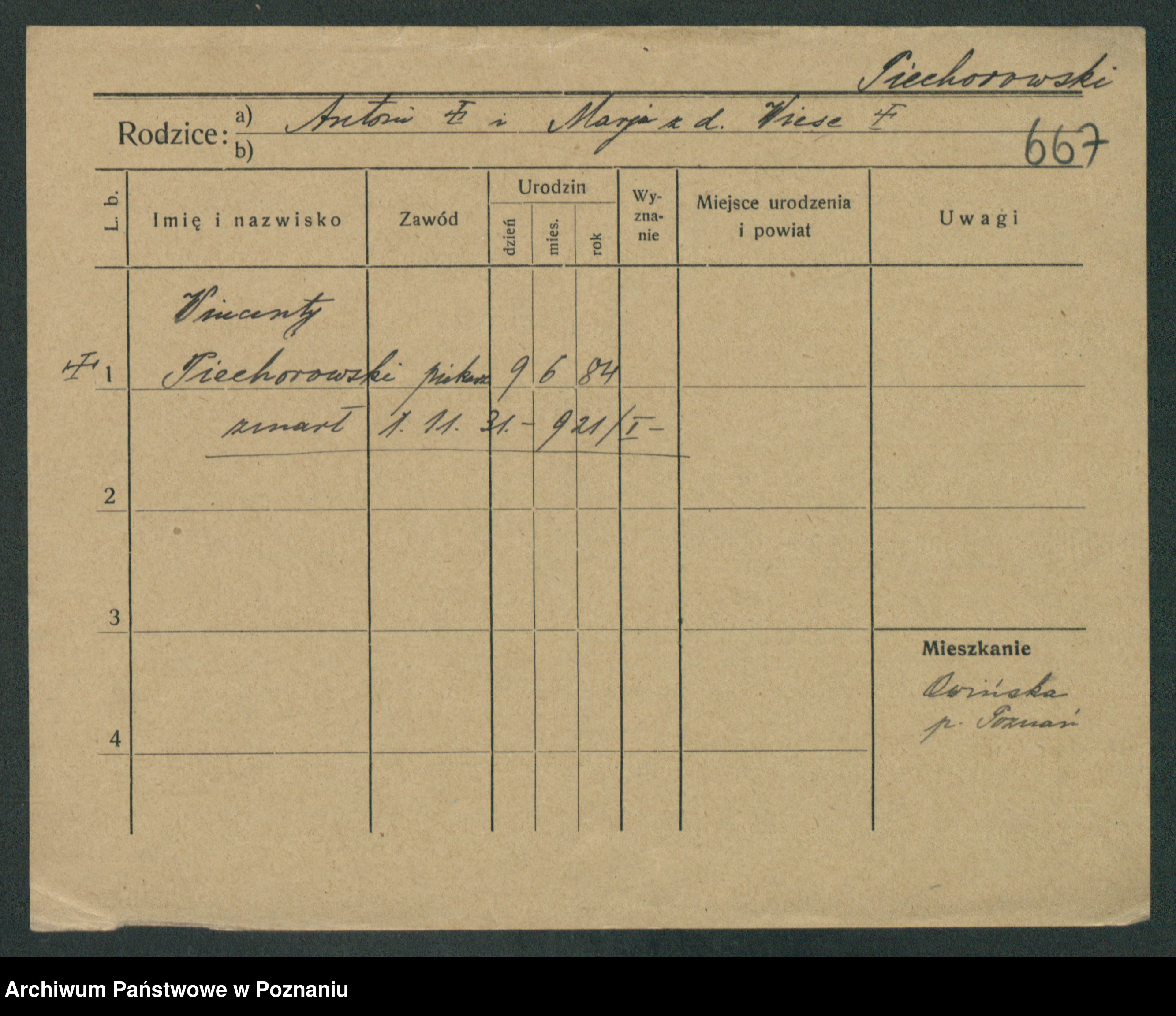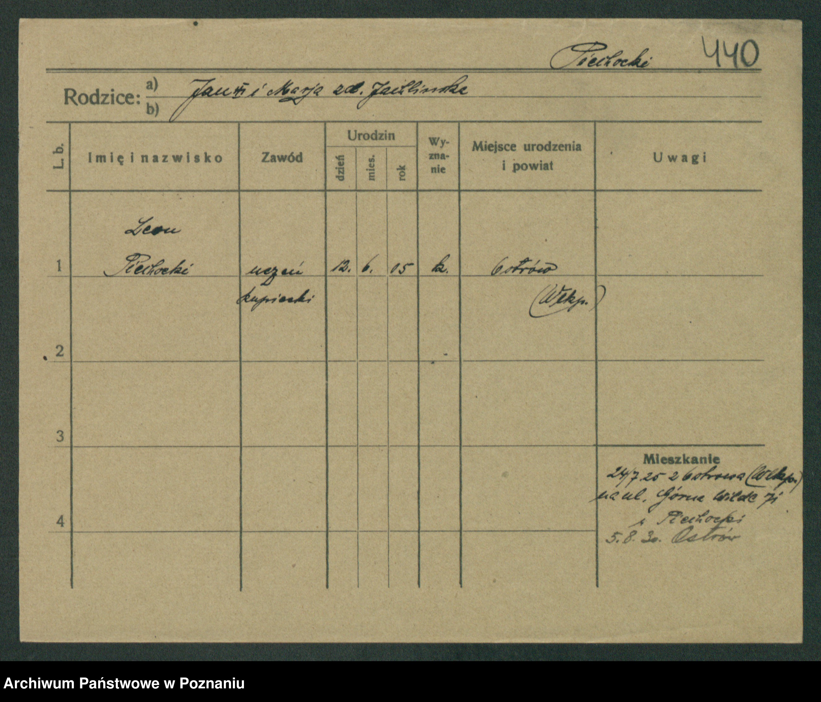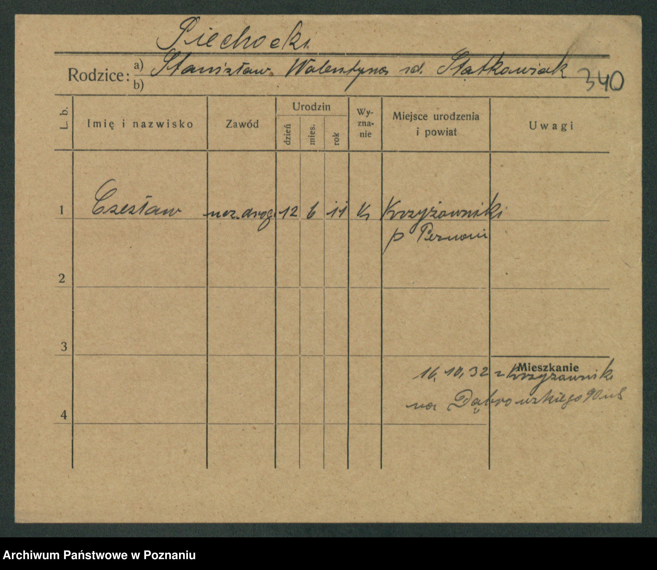 Podgląd karty osobowej dostępny jest po kliknięciu na nazwisko lub ikonkę karty. Można dokonywać powiększenia (ikony na górze) lub przechodzić między kolejnymi skanami (strzałki po bokach).