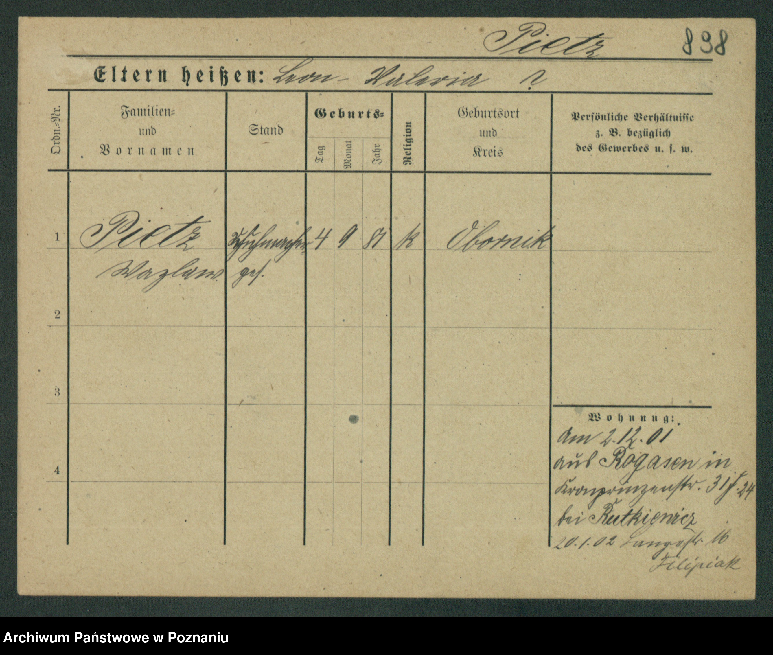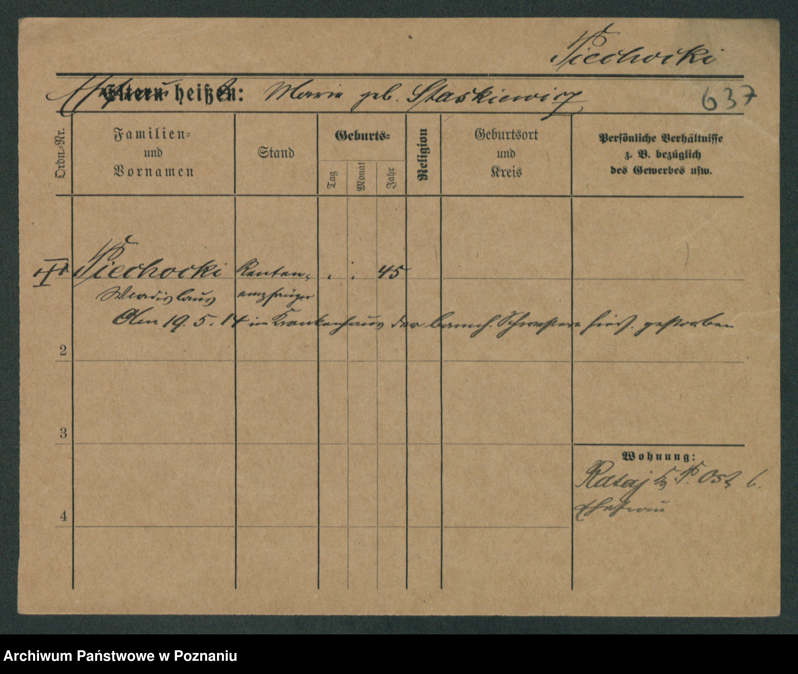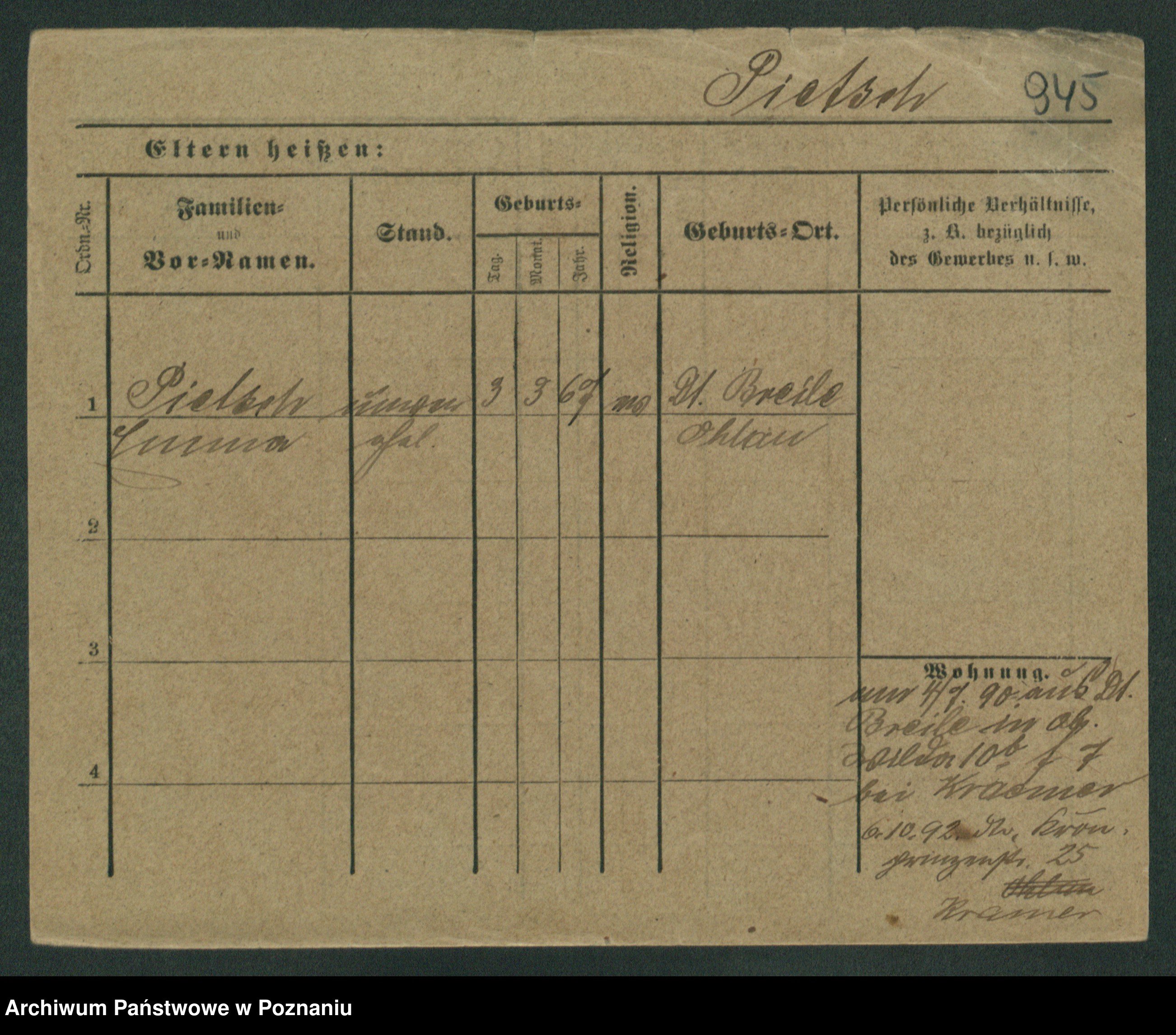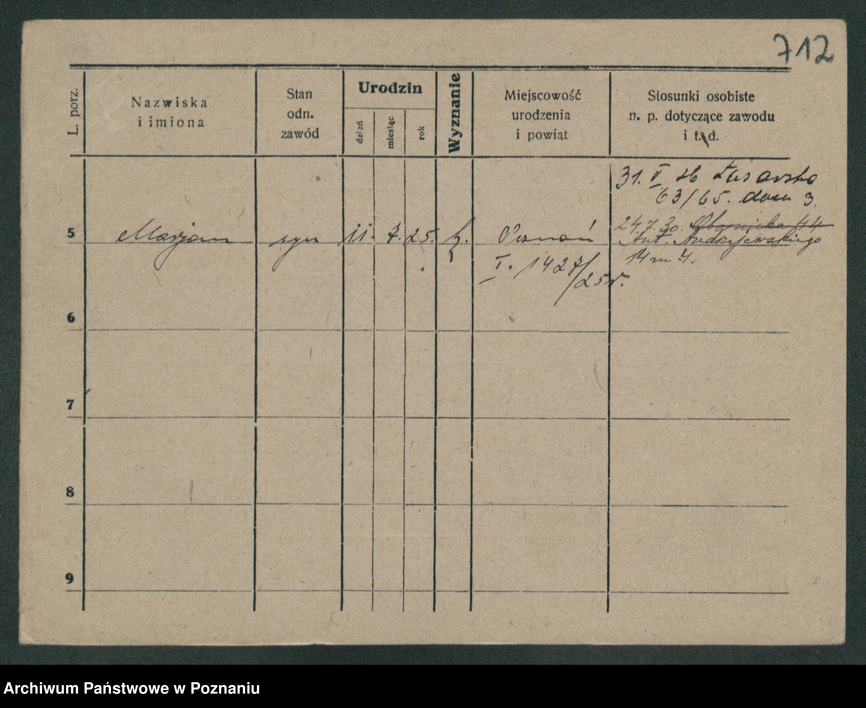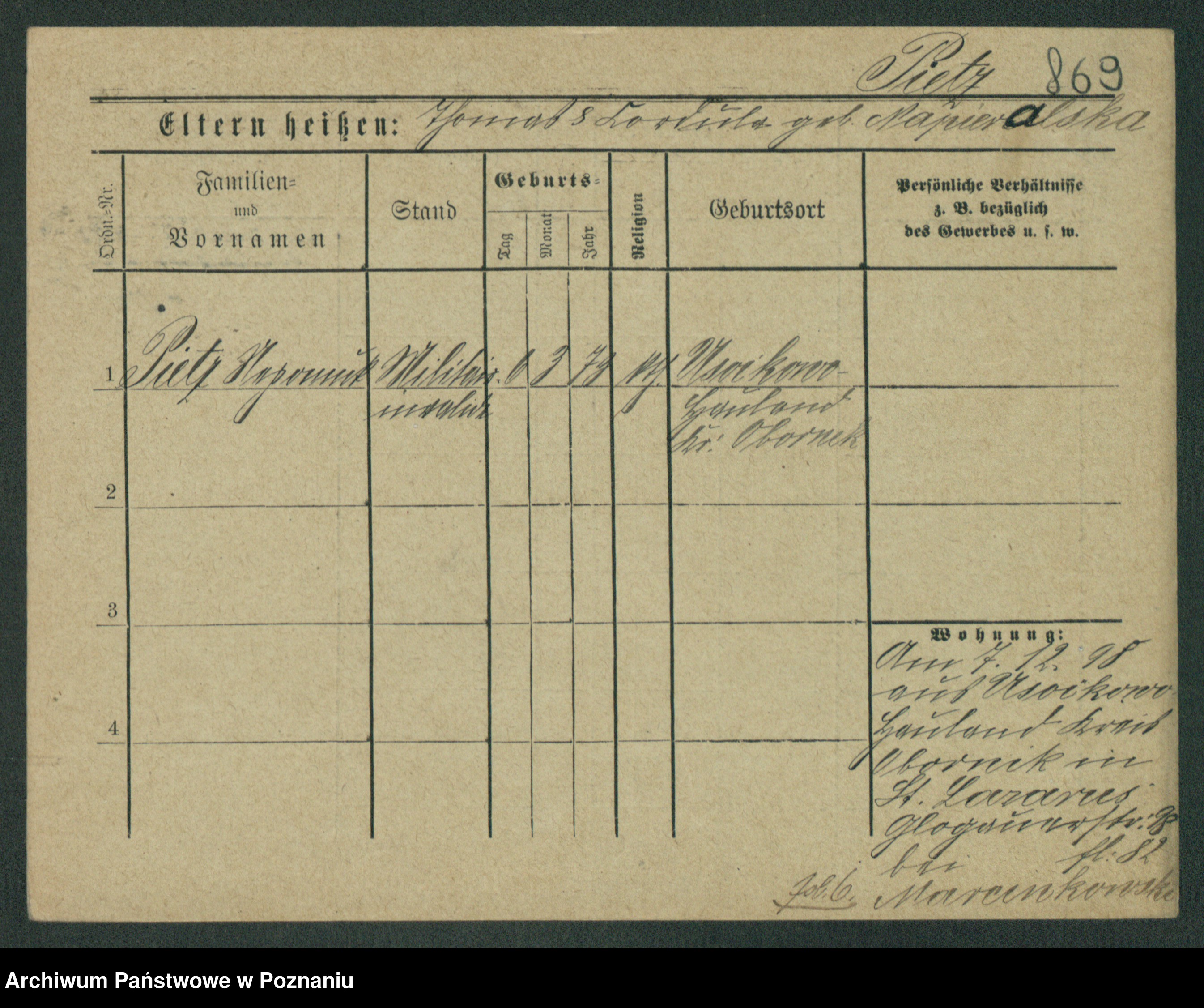 Podgląd karty osobowej dostępny jest po kliknięciu na nazwisko lub ikonkę karty. Można dokonywać powiększenia (ikony na górze) lub przechodzić między kolejnymi skanami (strzałki po bokach).