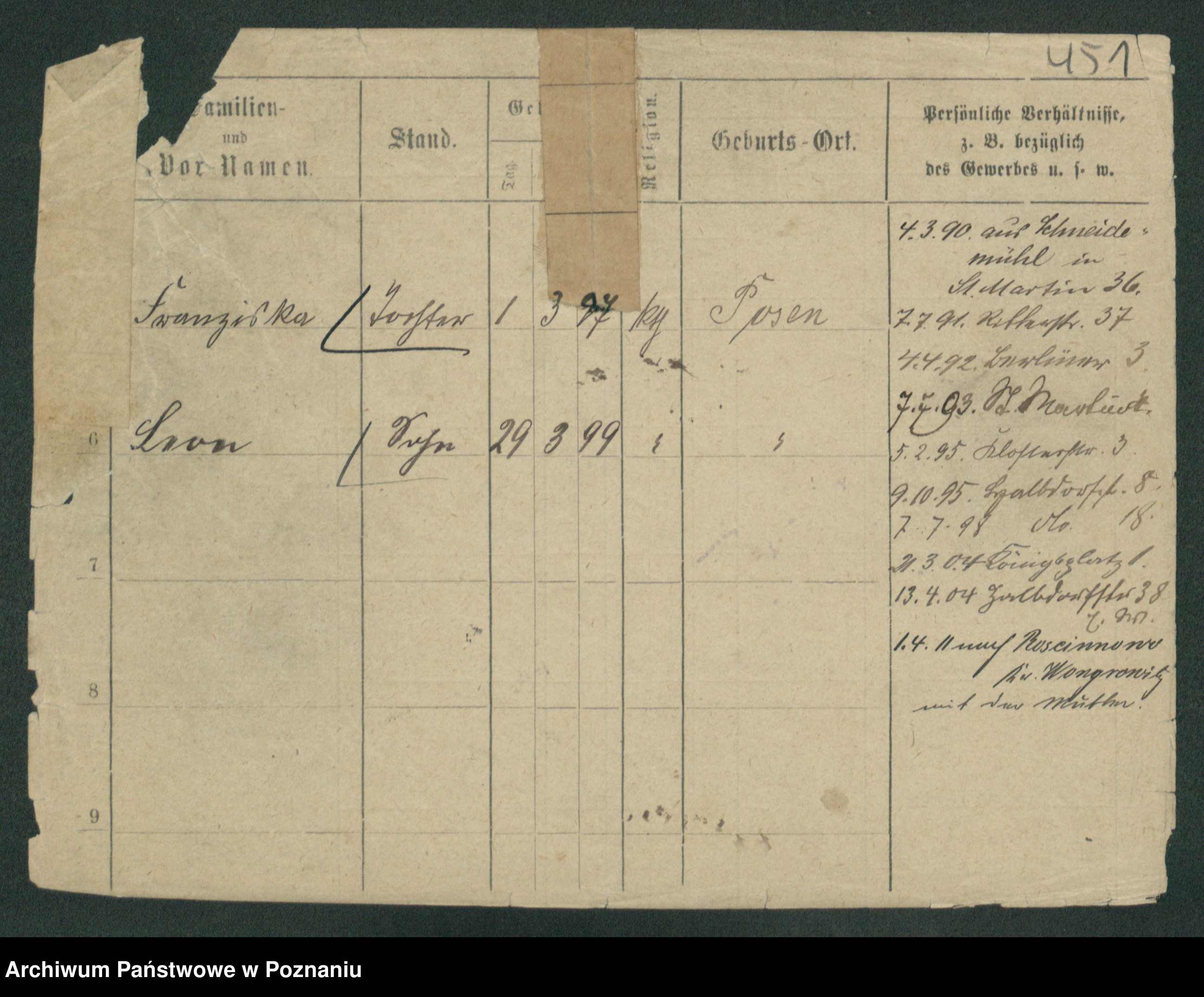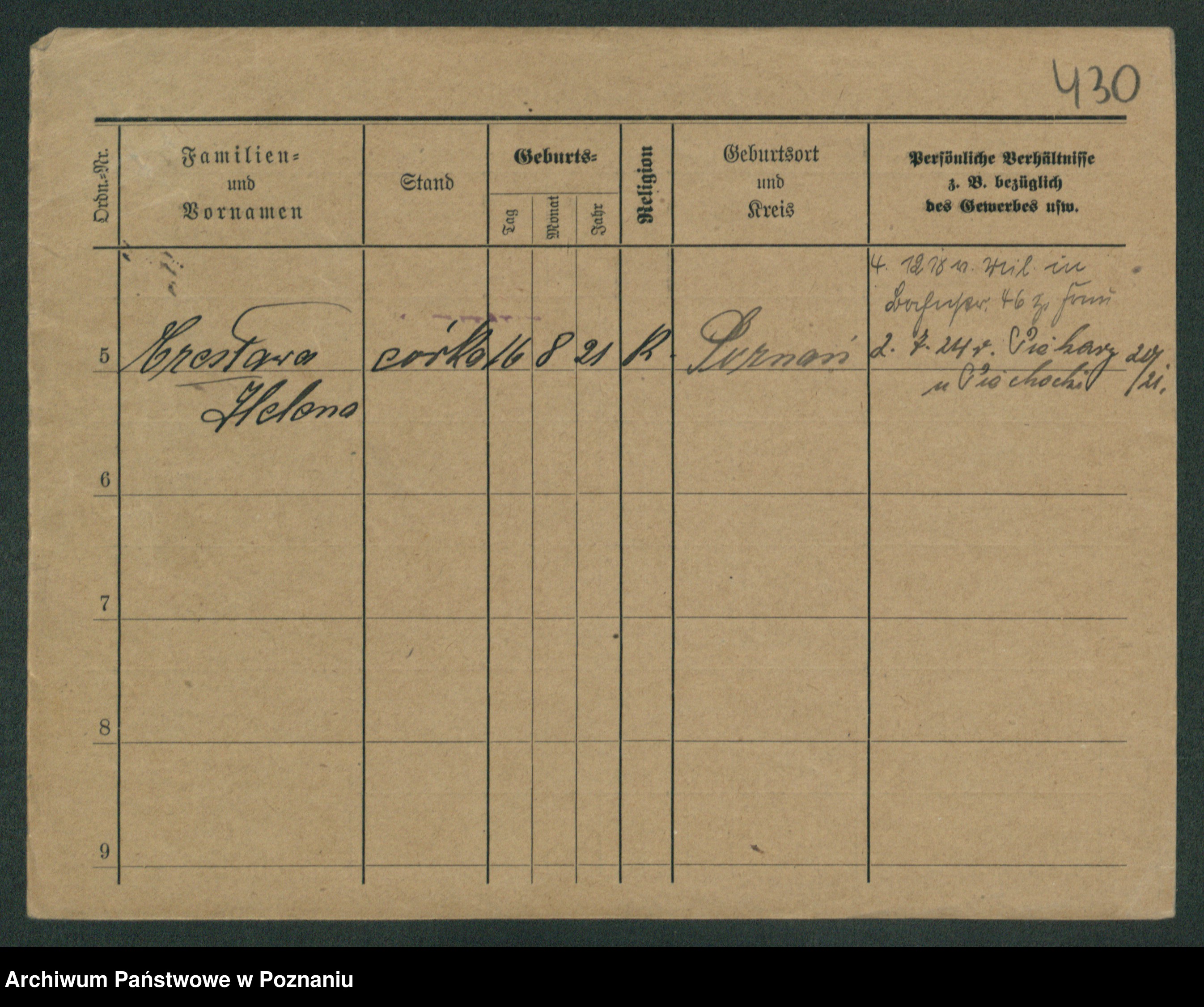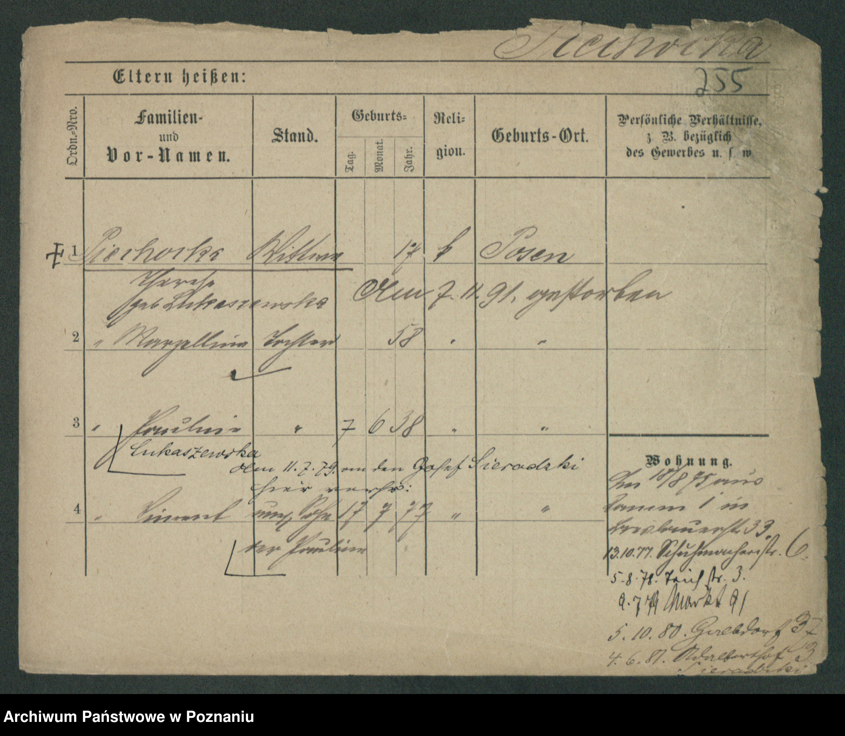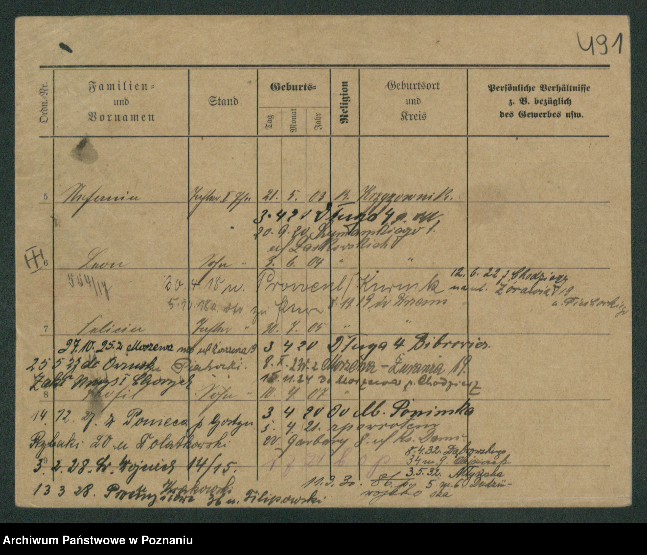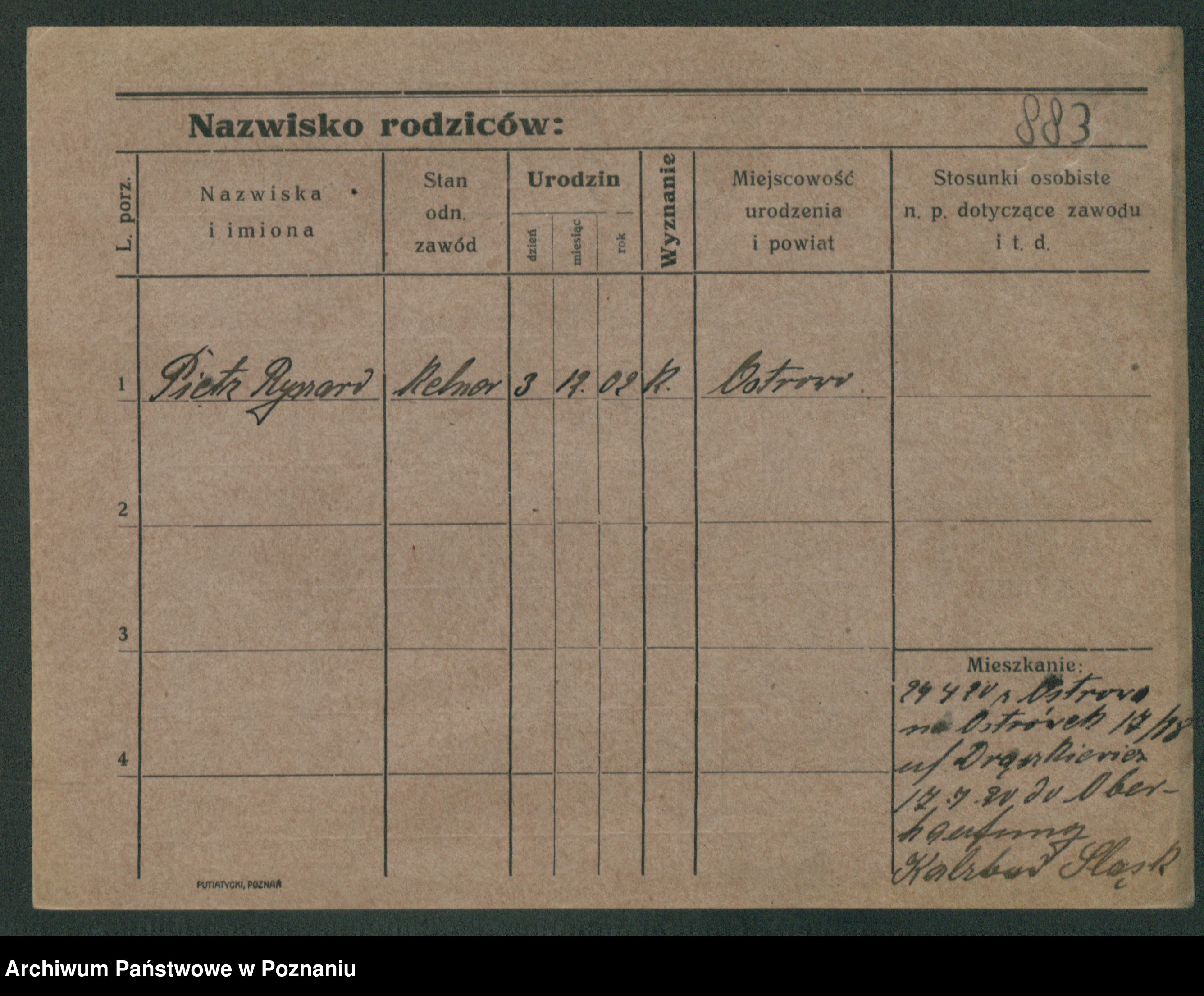 Podgląd karty osobowej dostępny jest po kliknięciu na nazwisko lub ikonkę karty. Można dokonywać powiększenia (ikony na górze) lub przechodzić między kolejnymi skanami (strzałki po bokach).