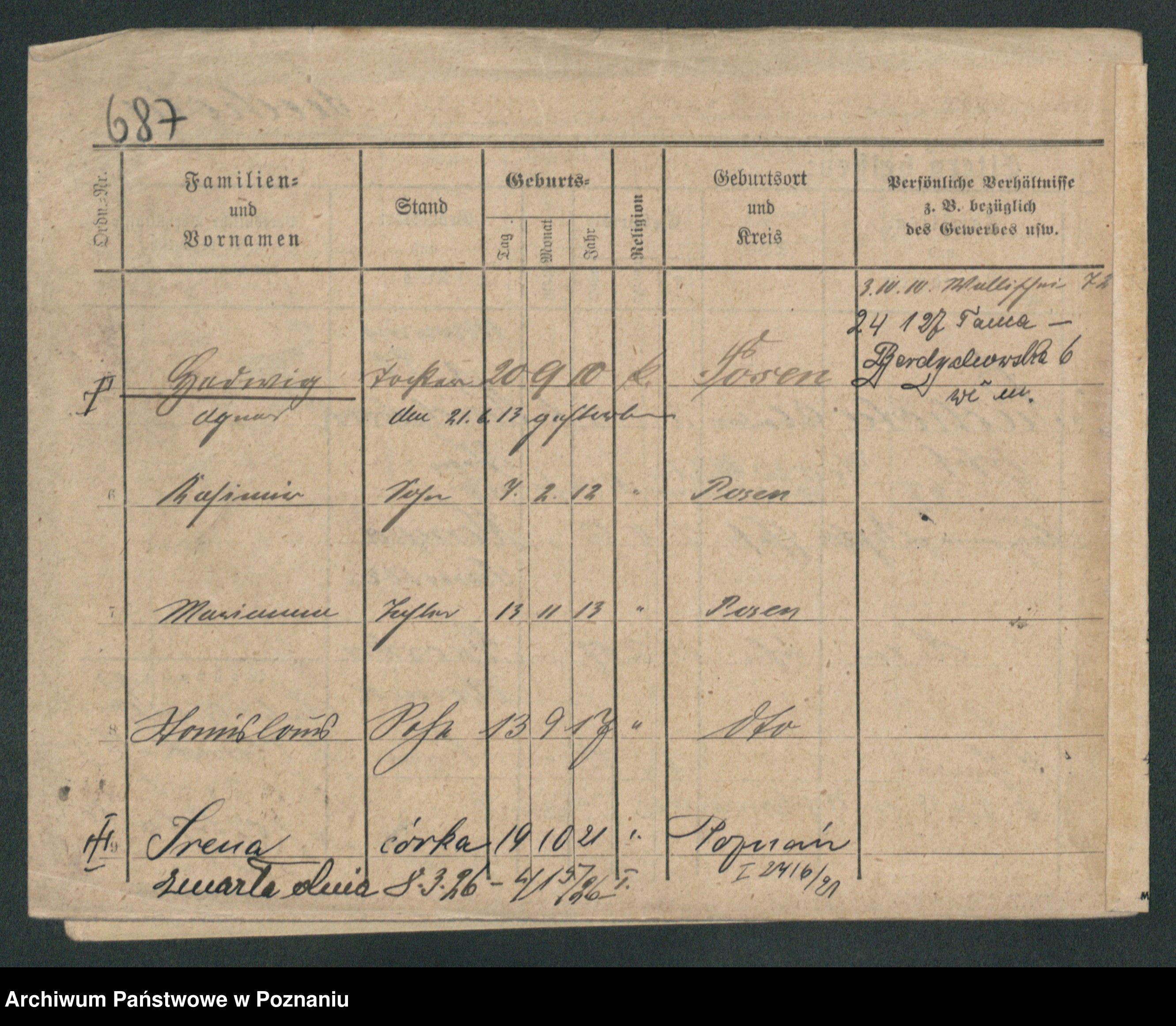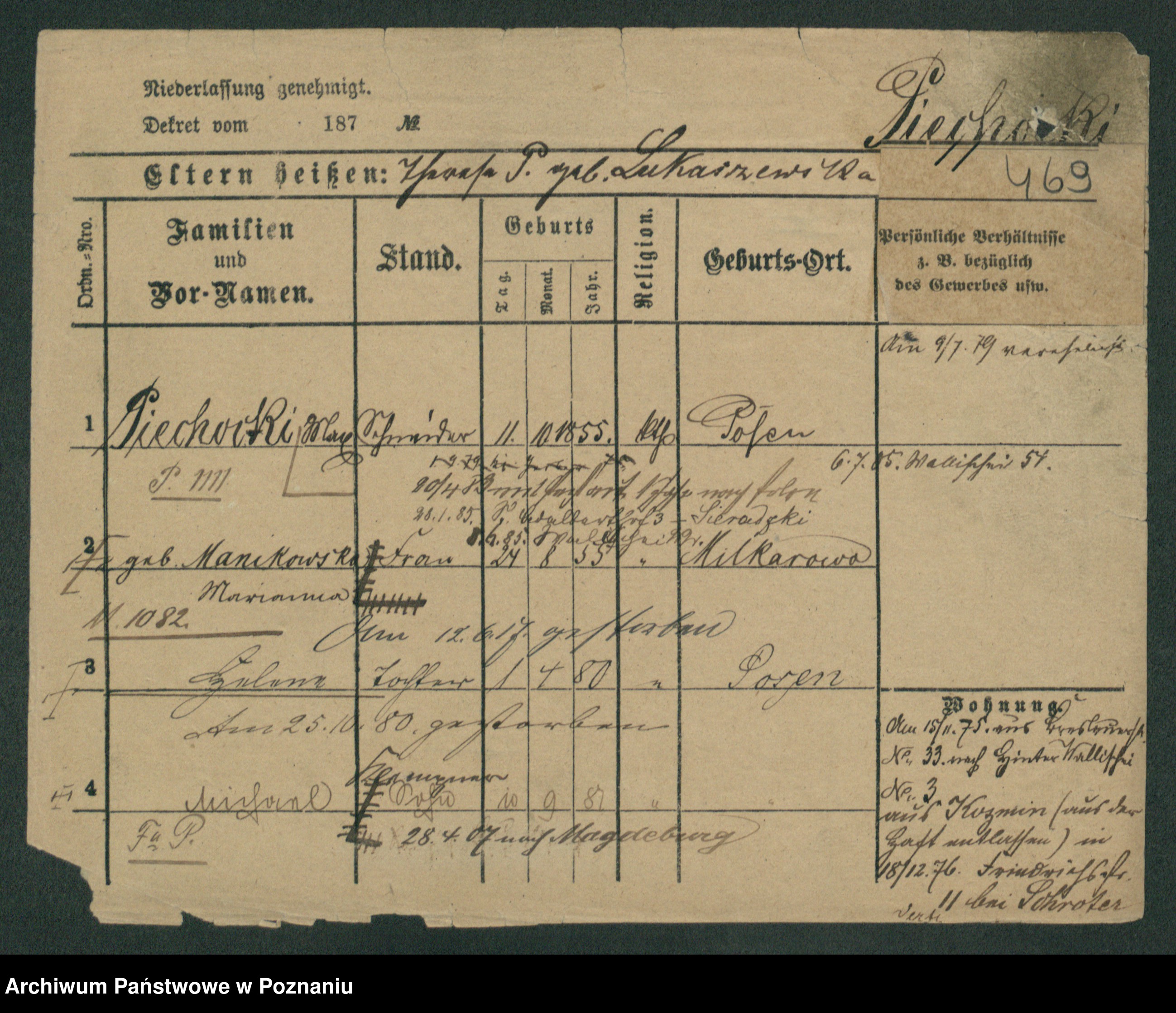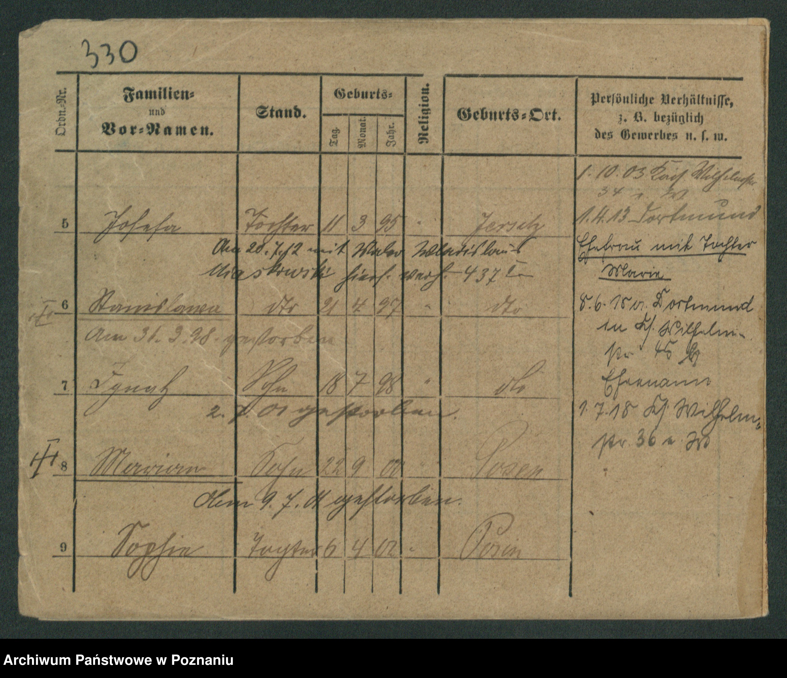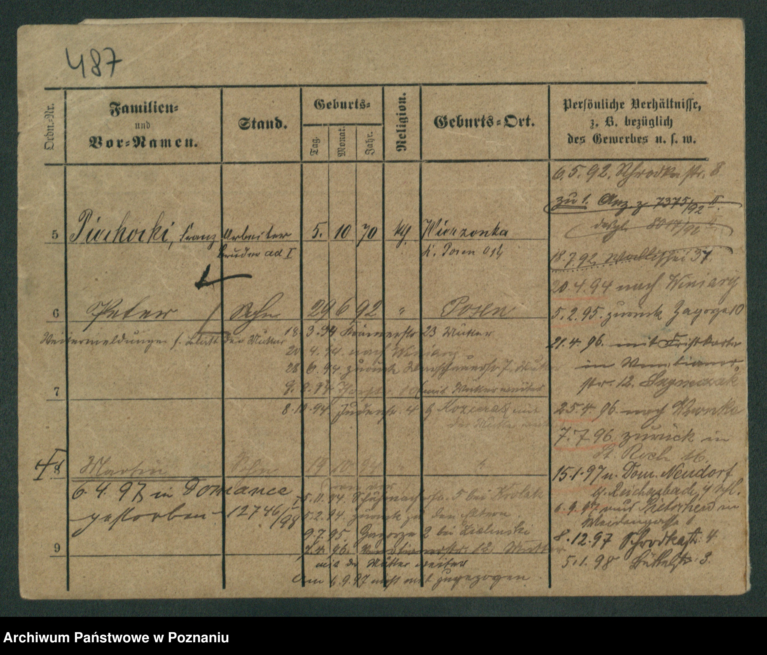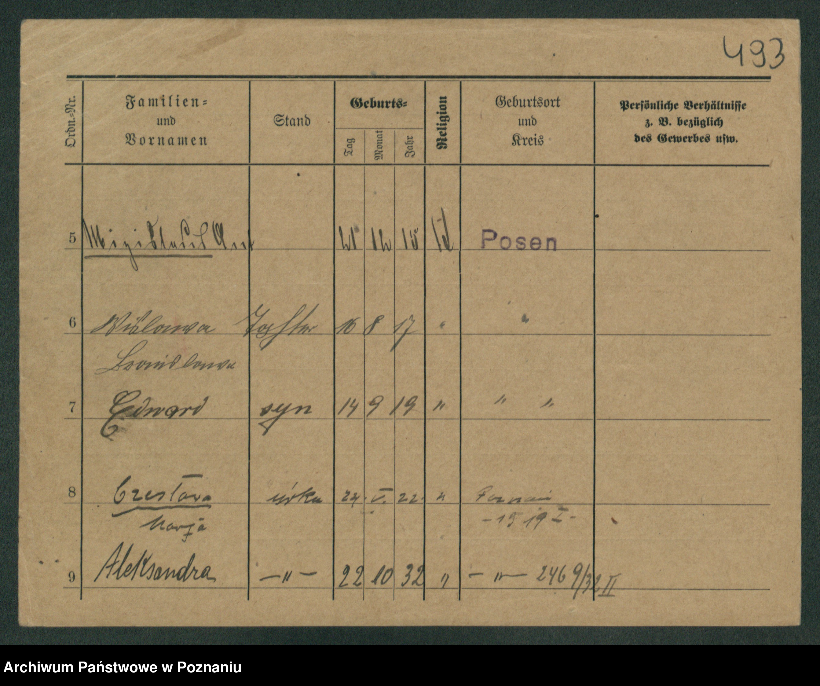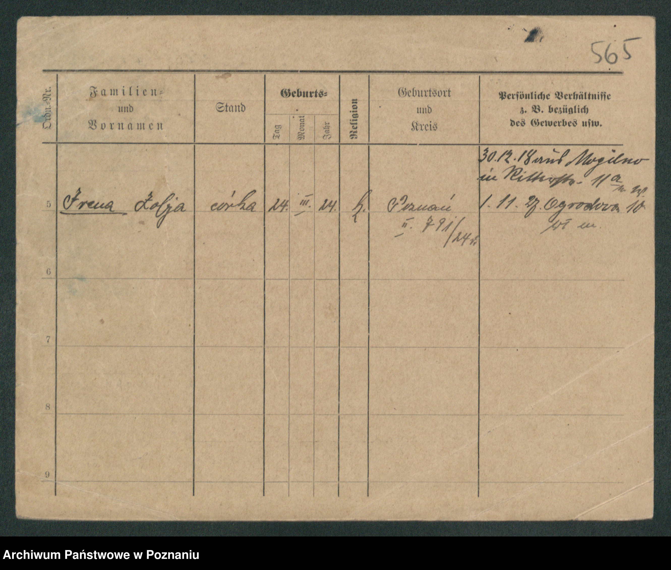 Podgląd karty osobowej dostępny jest po kliknięciu na nazwisko lub ikonkę karty. Można dokonywać powiększenia (ikony na górze) lub przechodzić między kolejnymi skanami (strzałki po bokach).