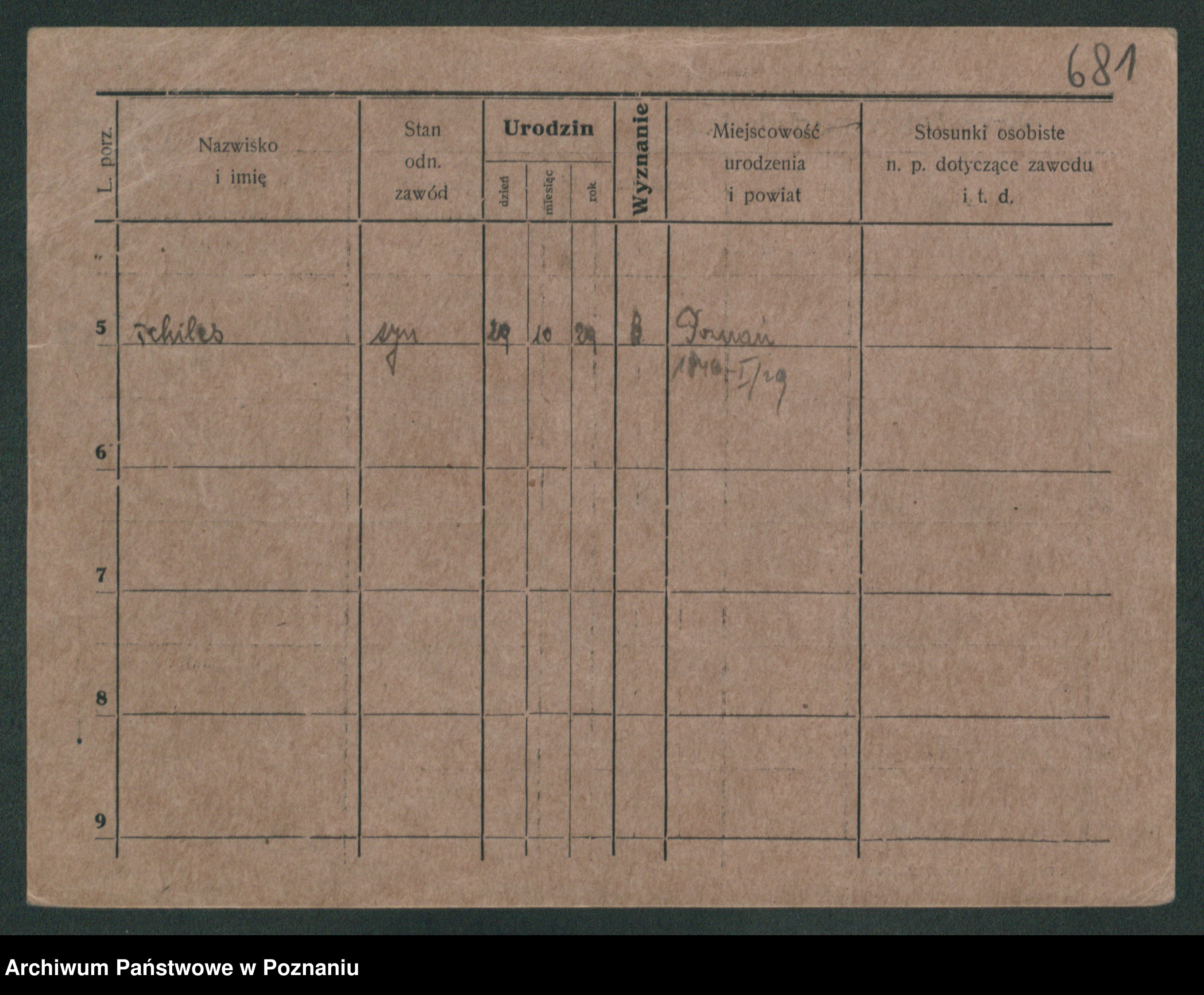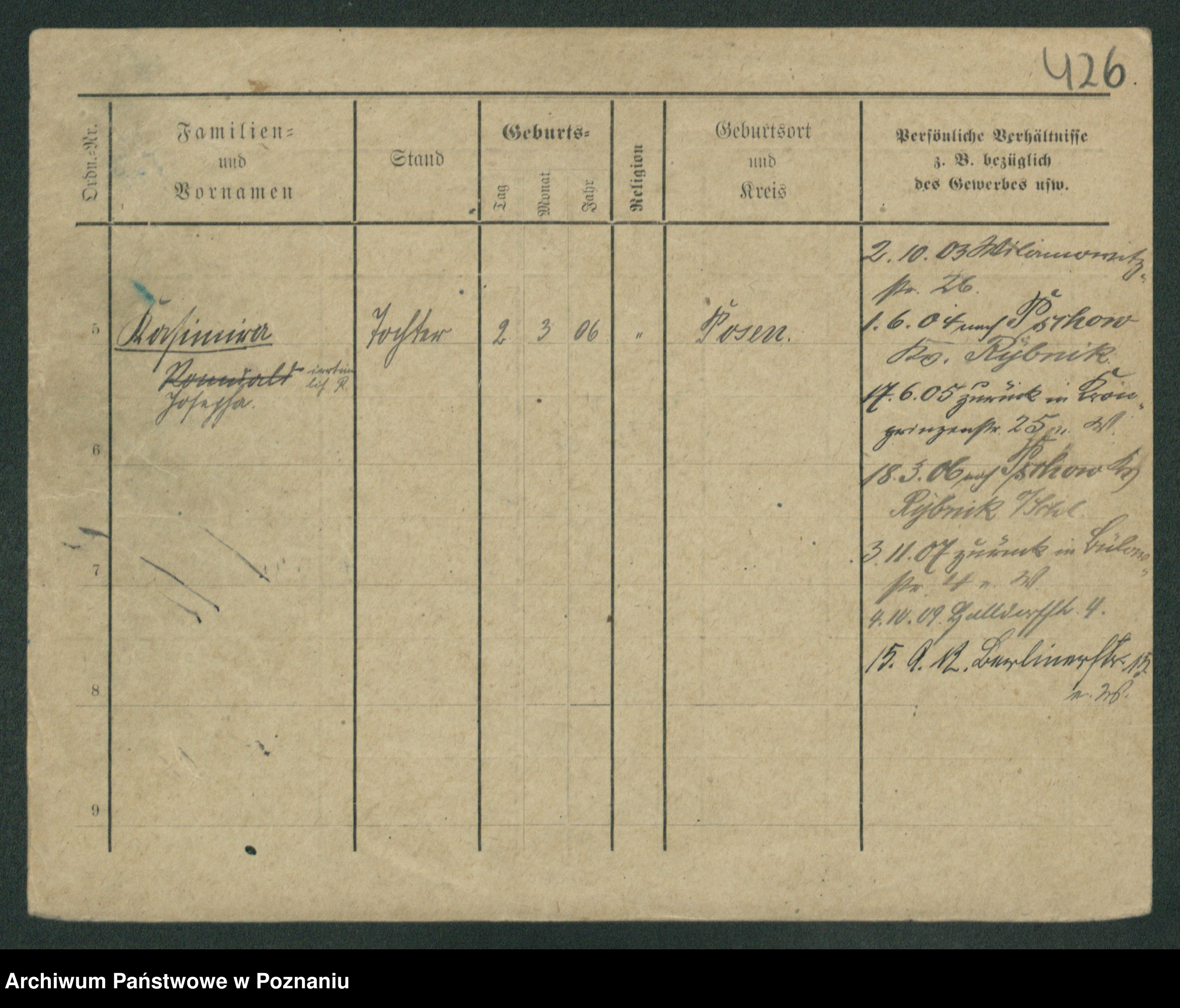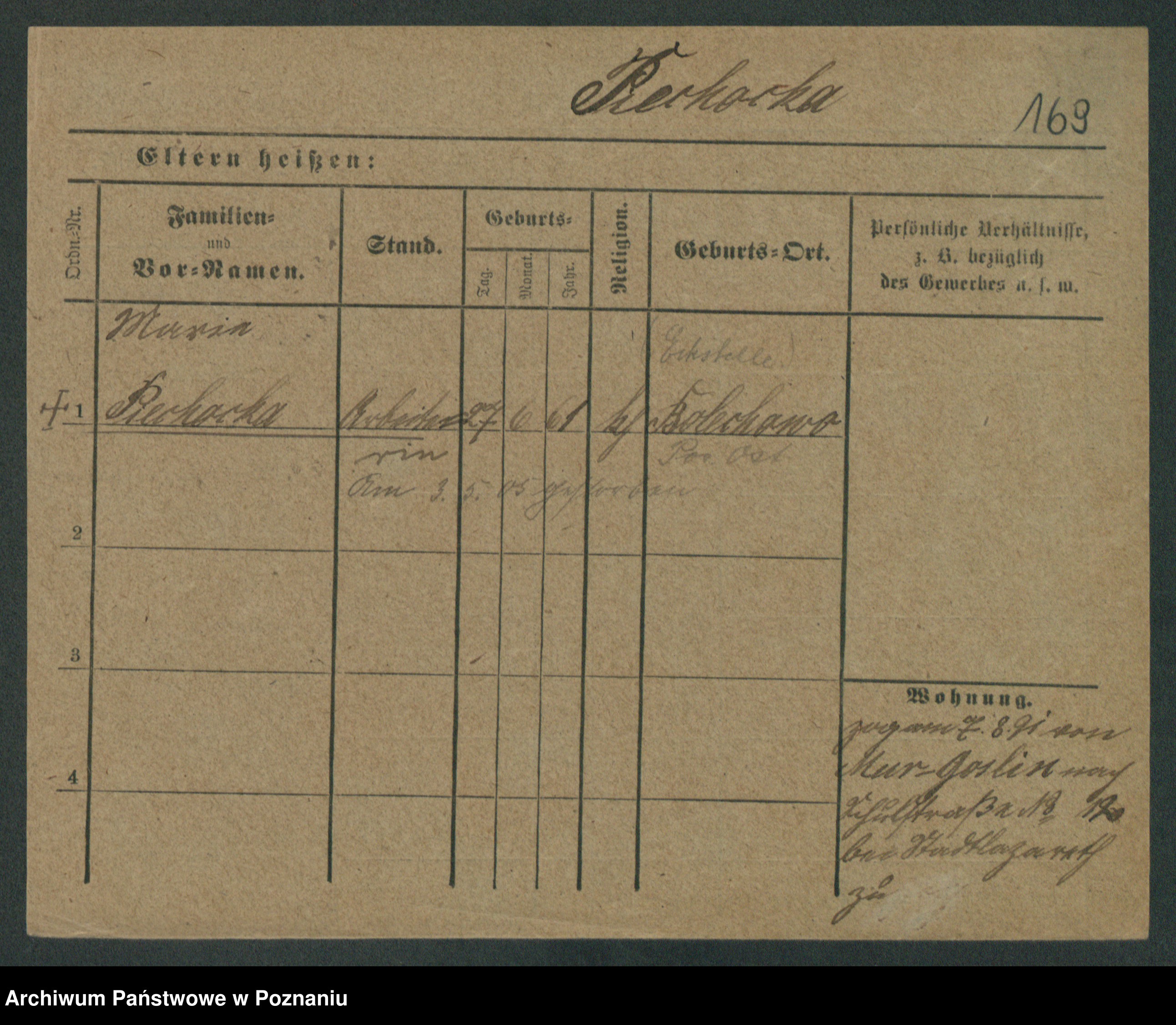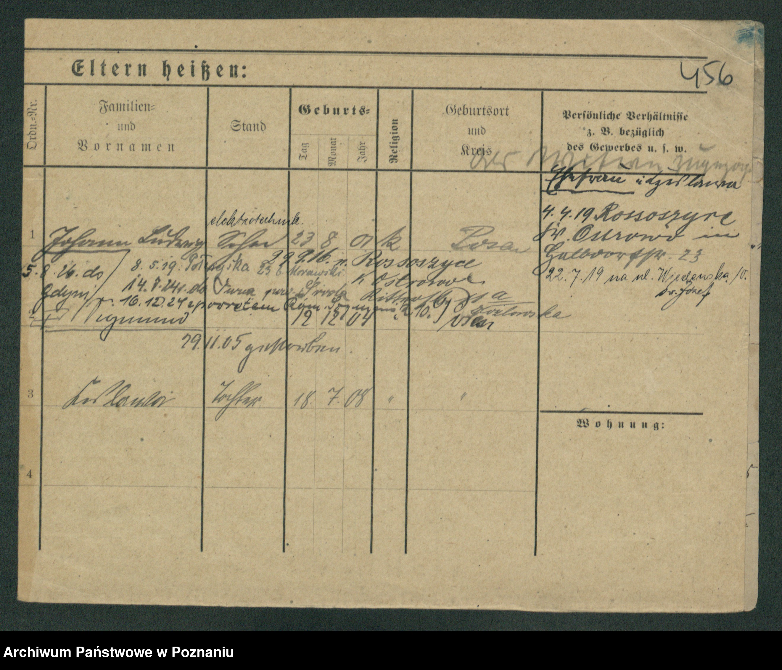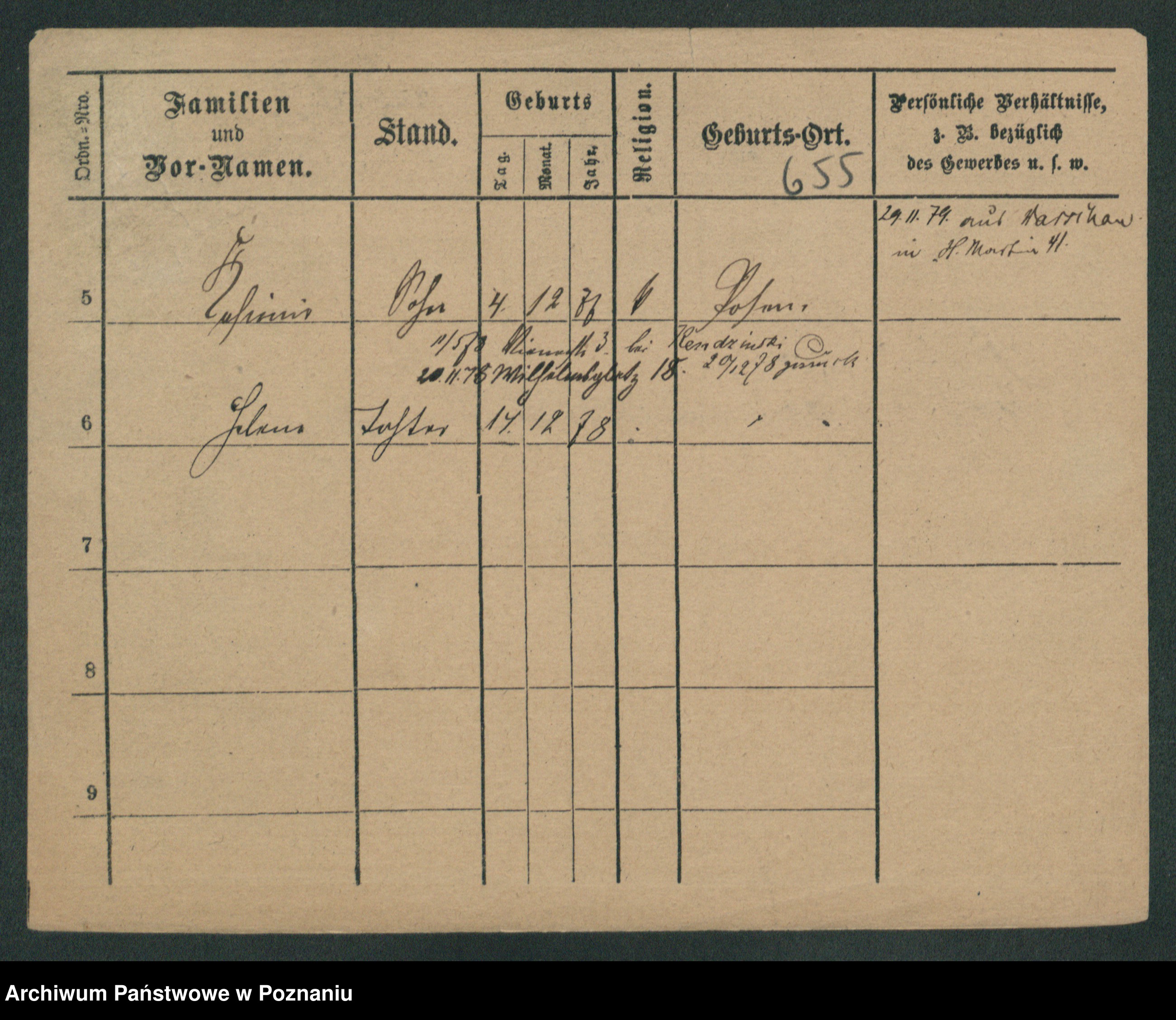 Podgląd karty osobowej dostępny jest po kliknięciu na nazwisko lub ikonkę karty. Można dokonywać powiększenia (ikony na górze) lub przechodzić między kolejnymi skanami (strzałki po bokach).