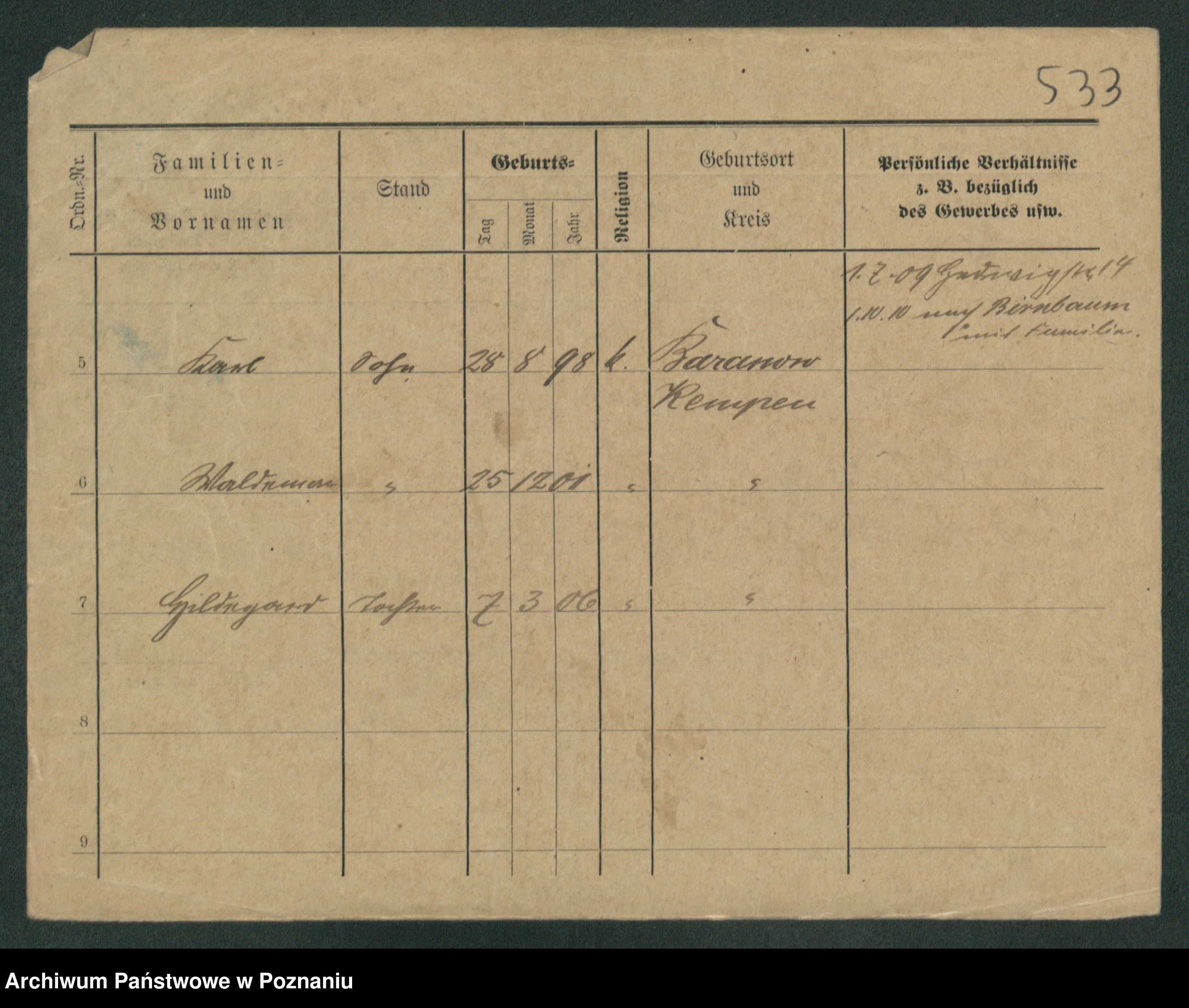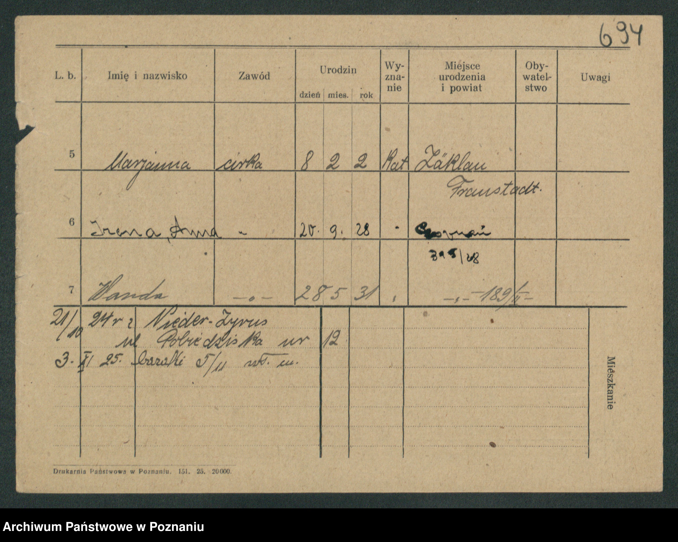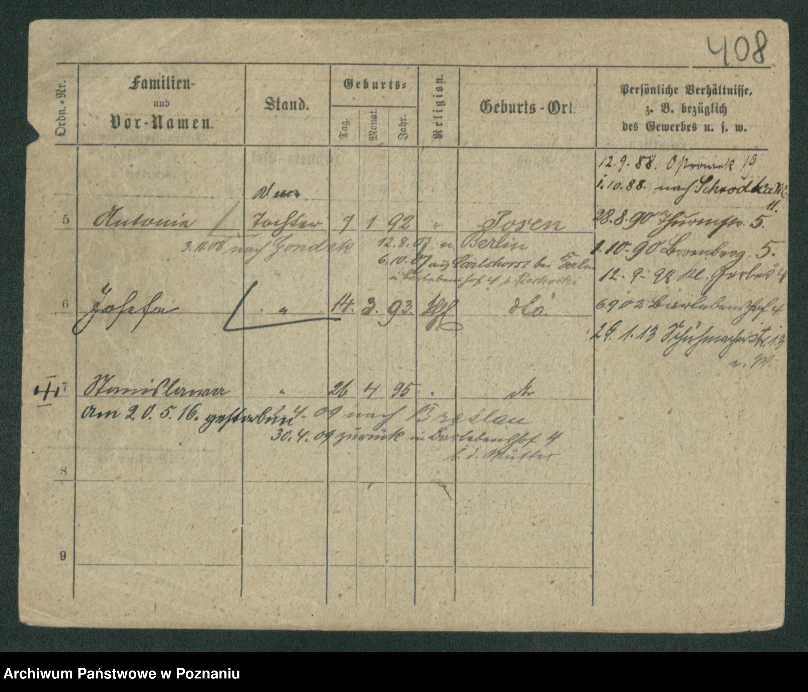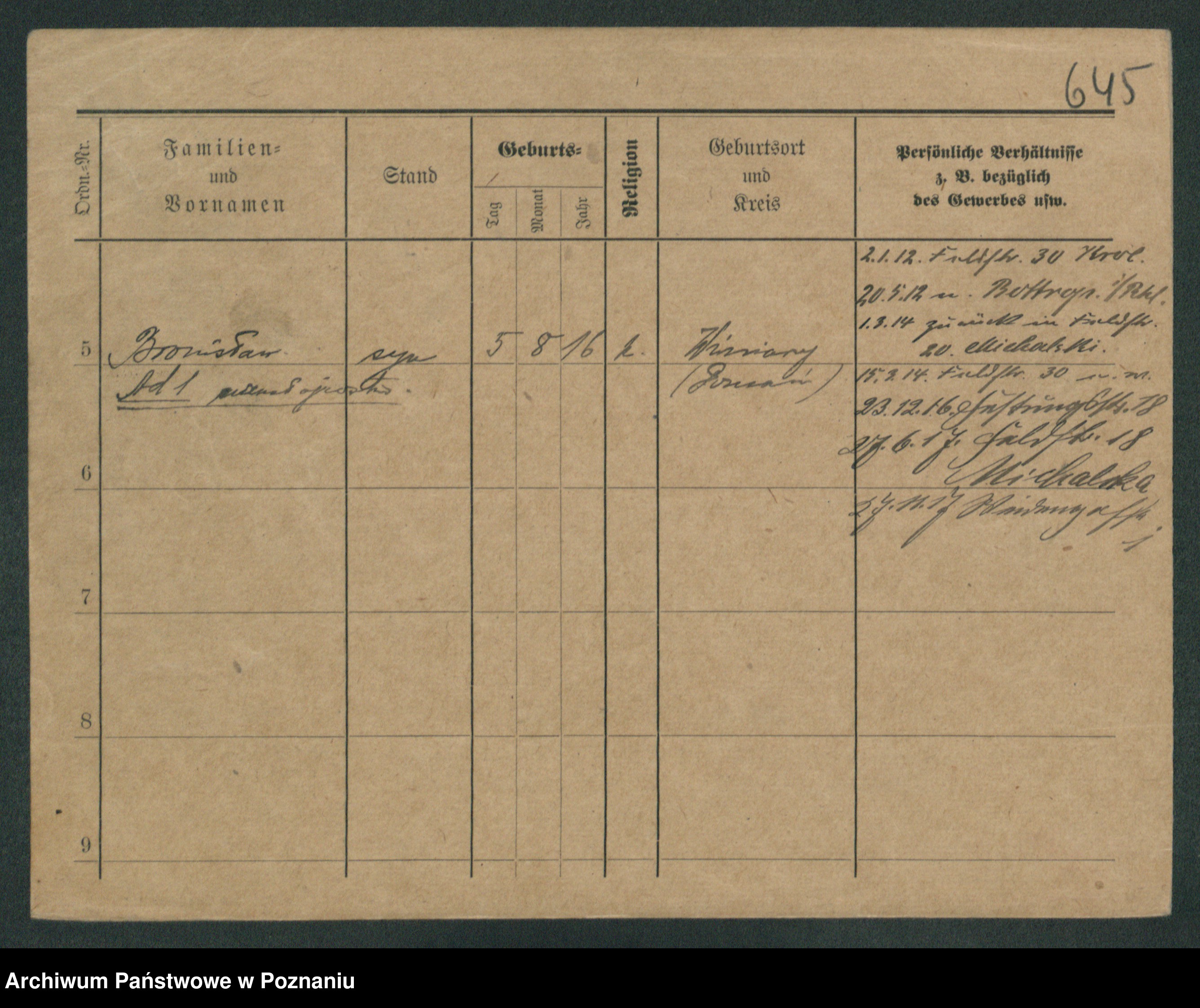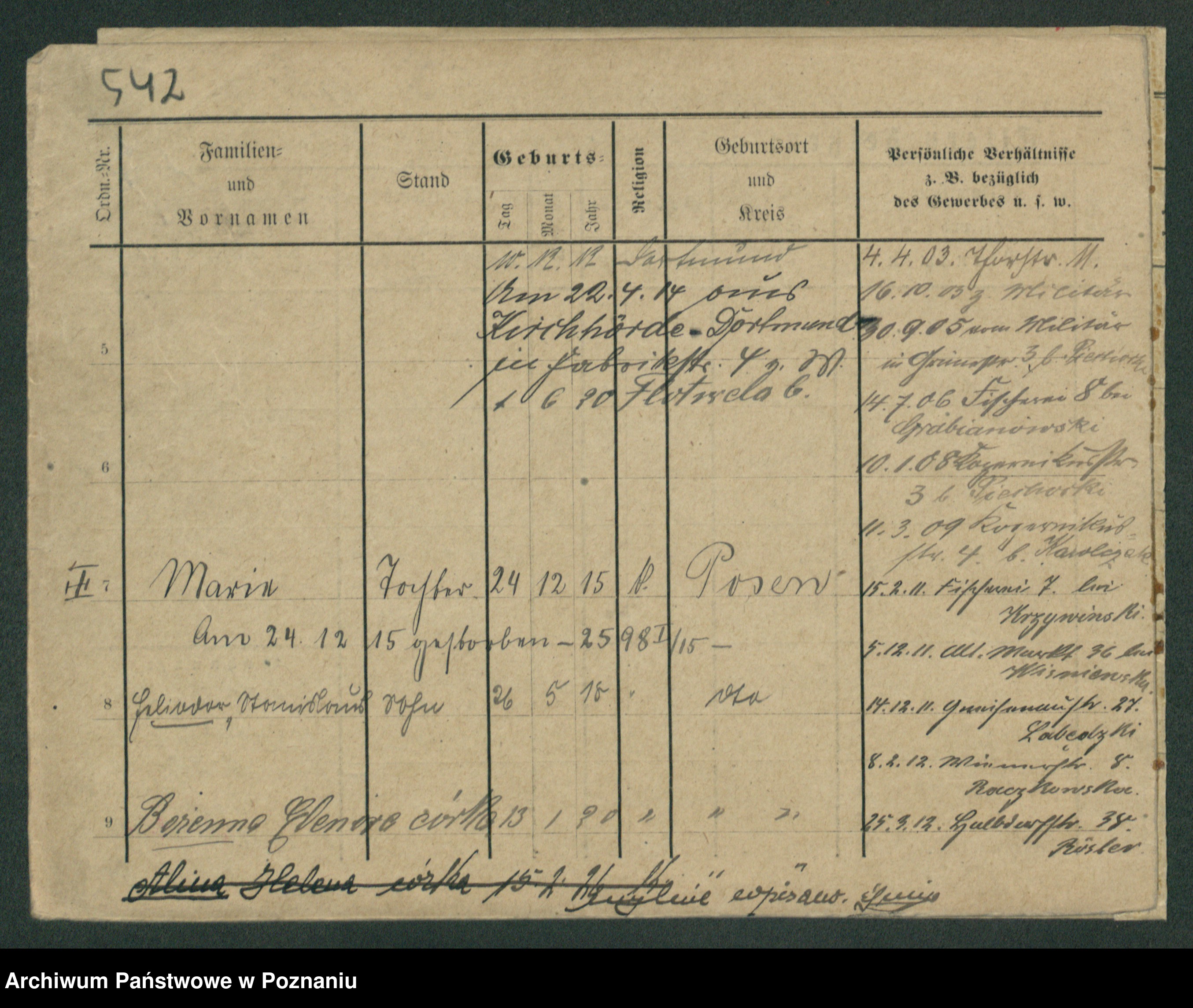 Podgląd karty osobowej dostępny jest po kliknięciu na nazwisko lub ikonkę karty. Można dokonywać powiększenia (ikony na górze) lub przechodzić między kolejnymi skanami (strzałki po bokach).