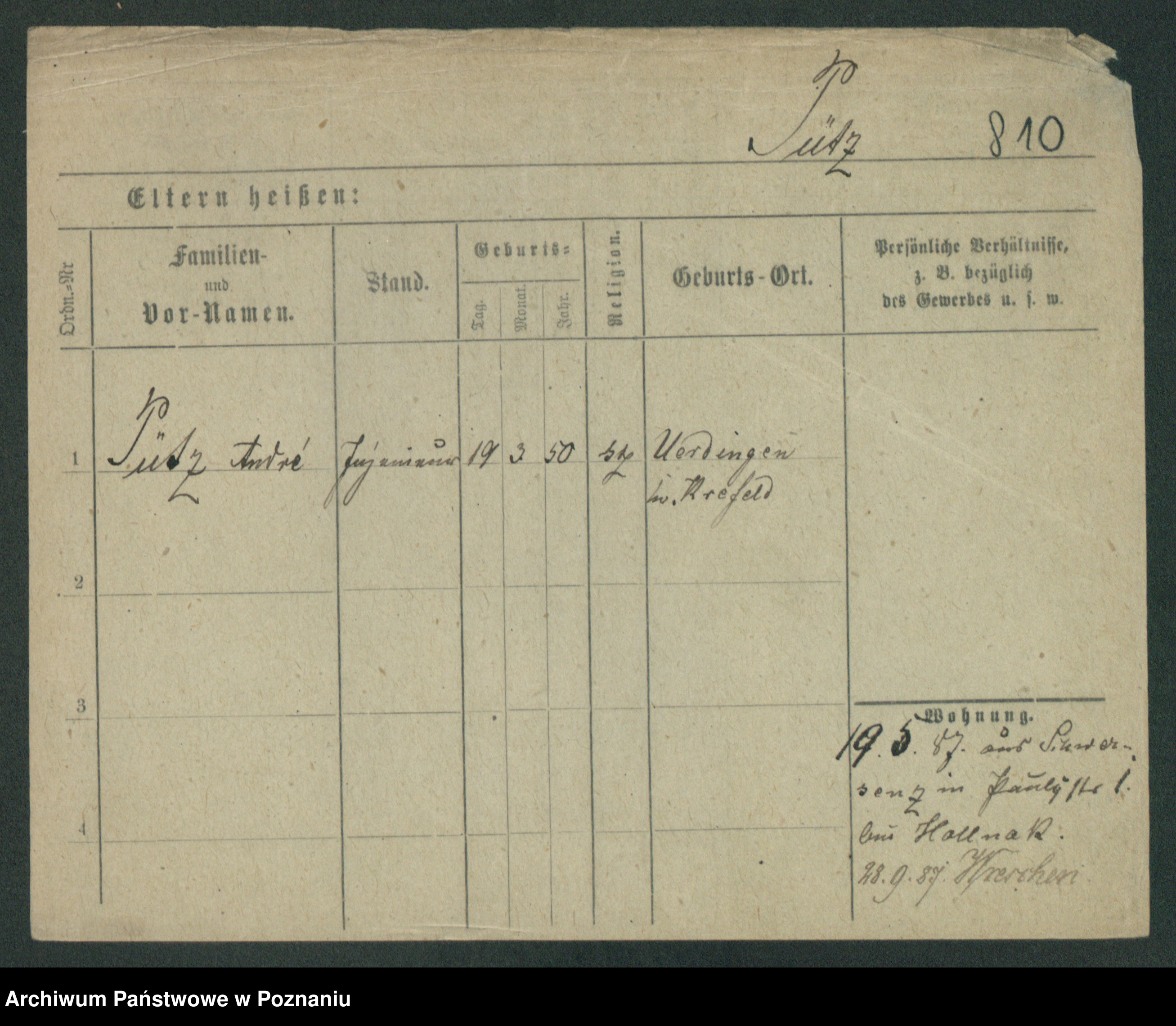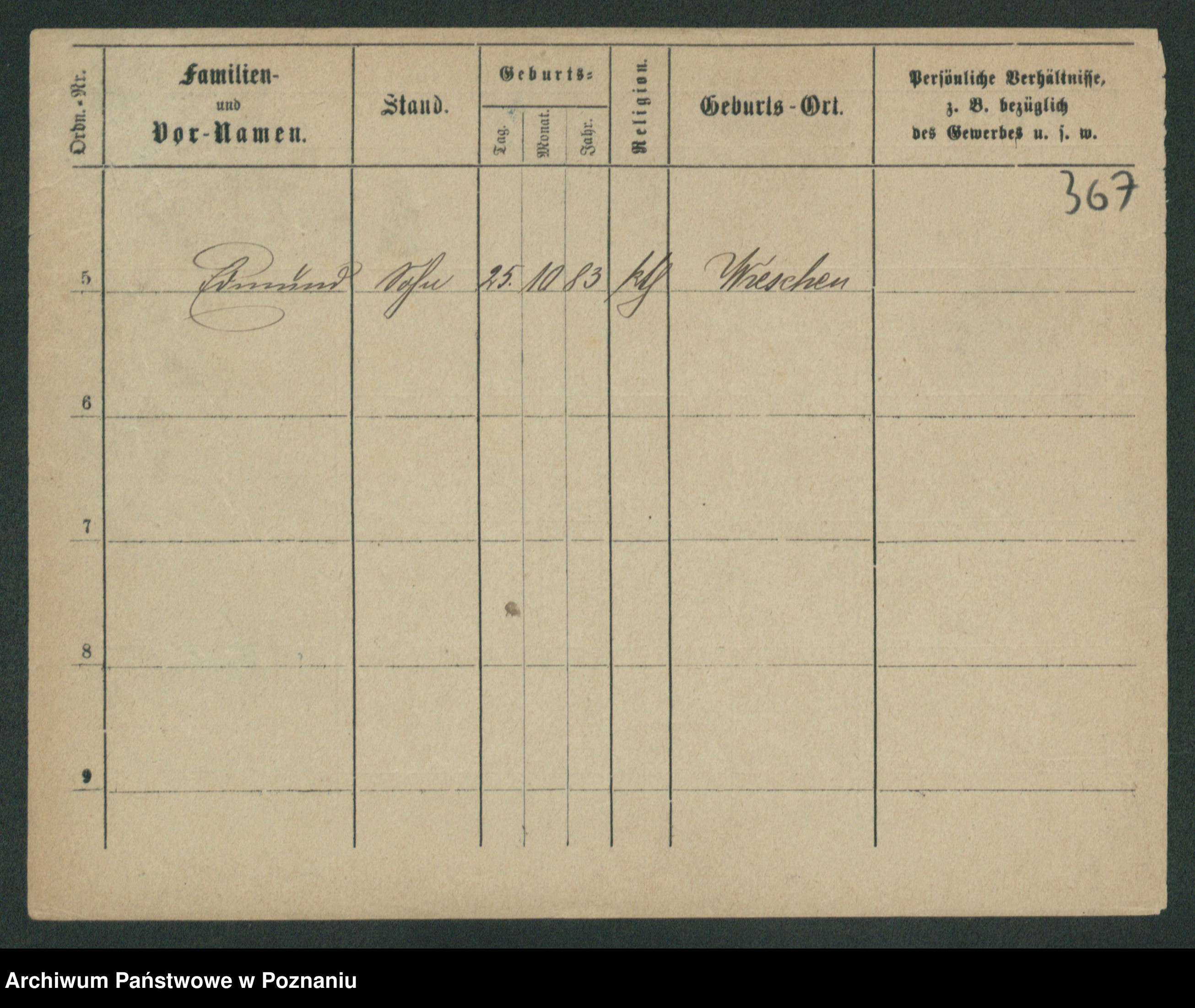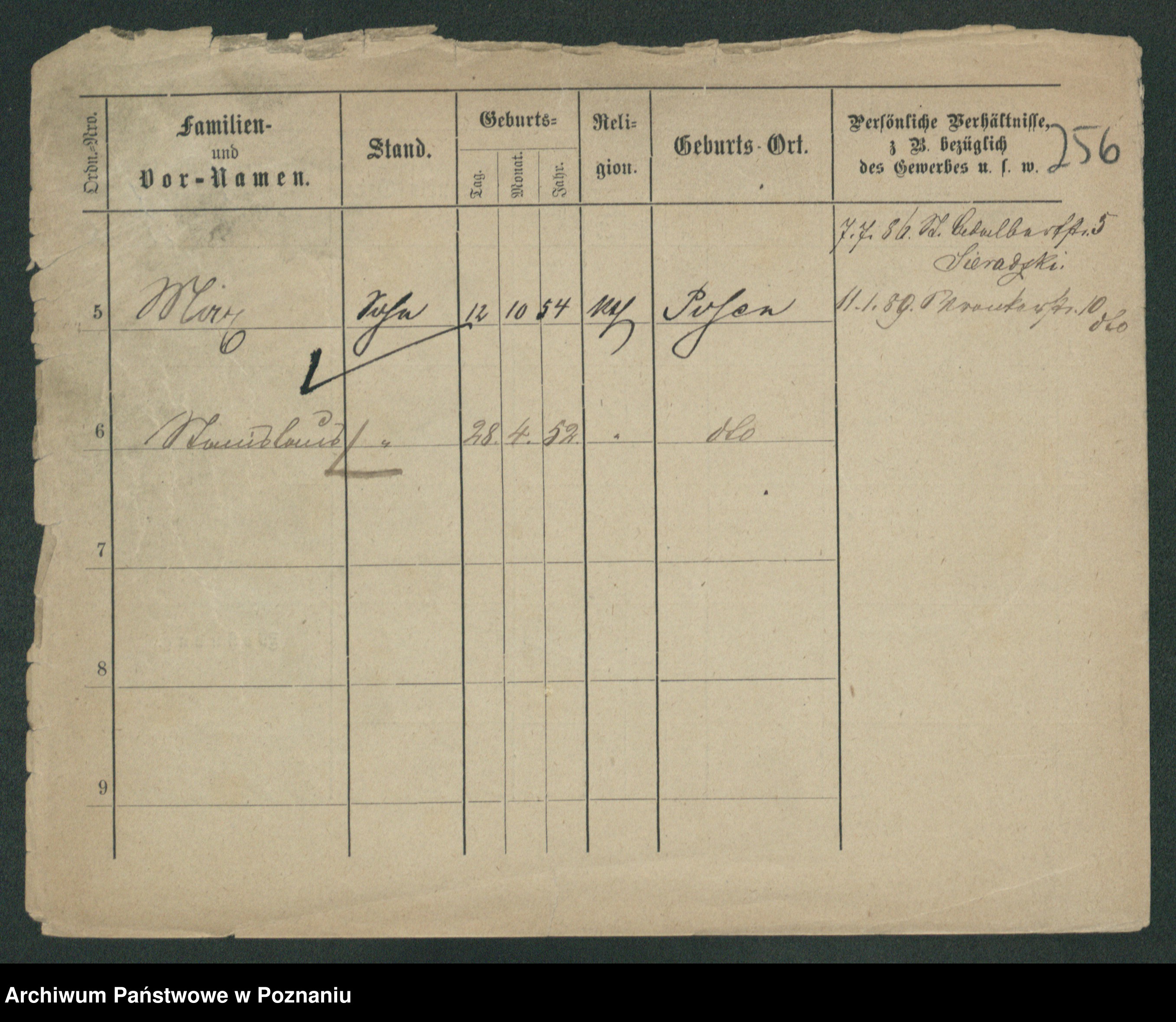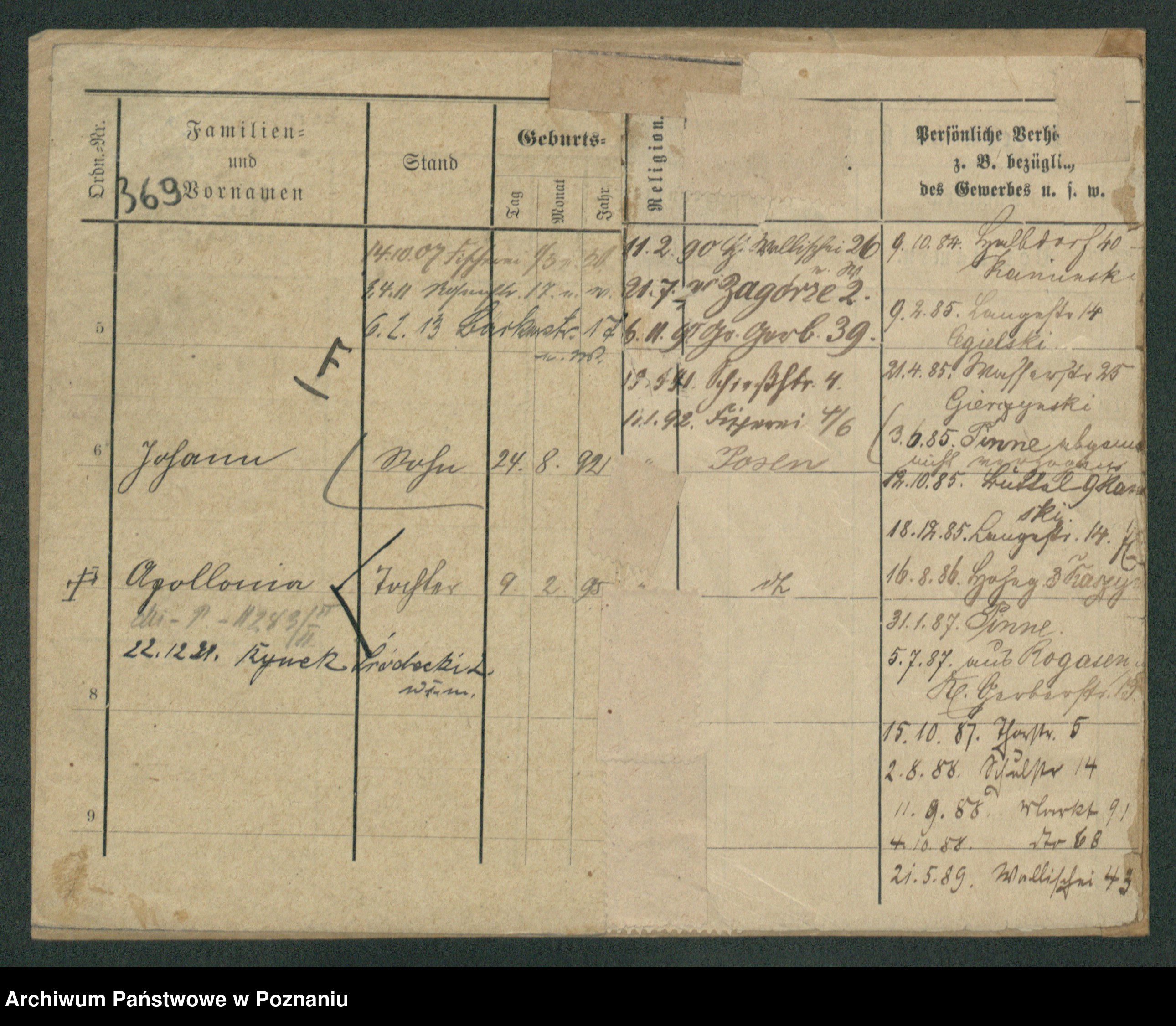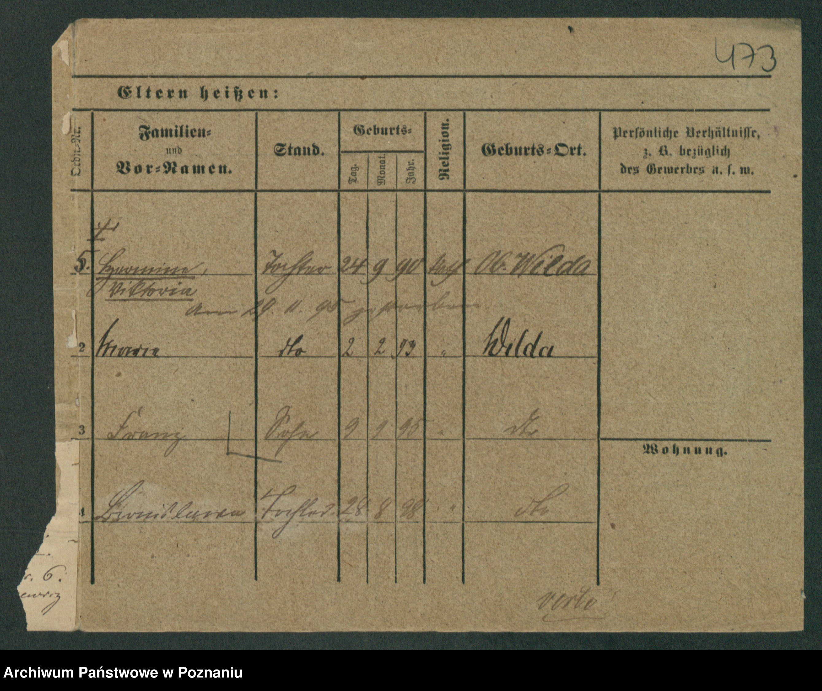 Podgląd karty osobowej dostępny jest po kliknięciu na nazwisko lub ikonkę karty. Można dokonywać powiększenia (ikony na górze) lub przechodzić między kolejnymi skanami (strzałki po bokach).