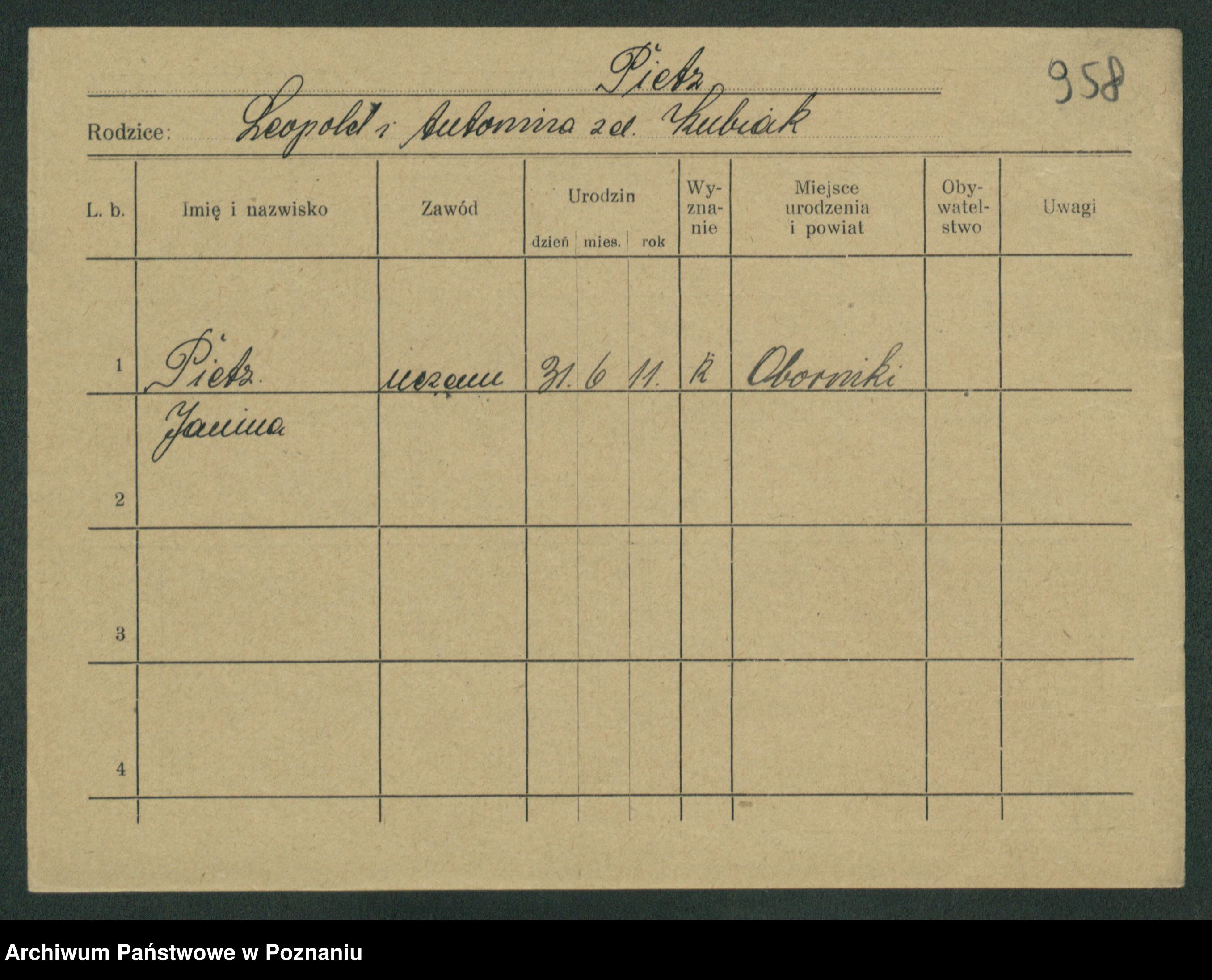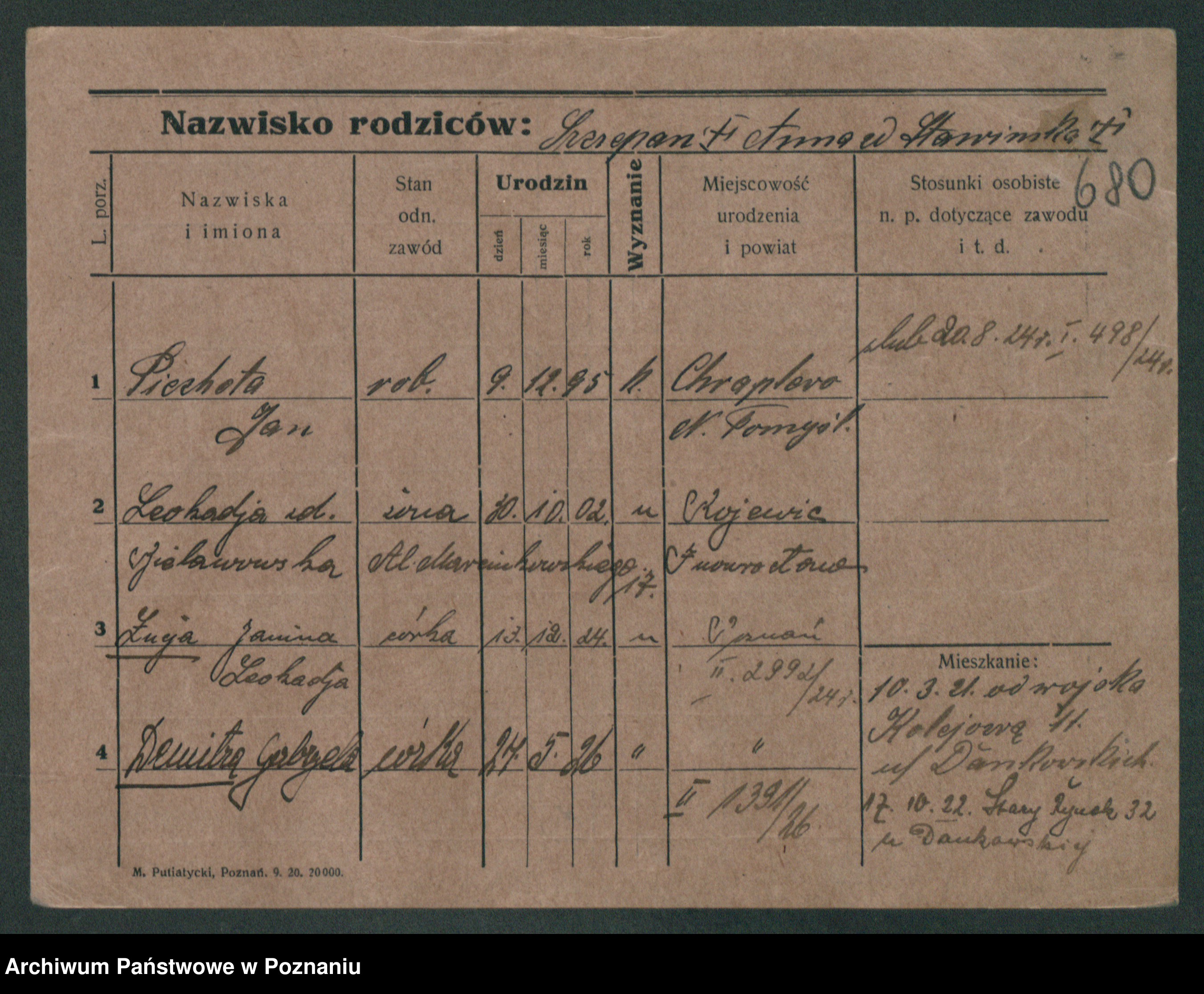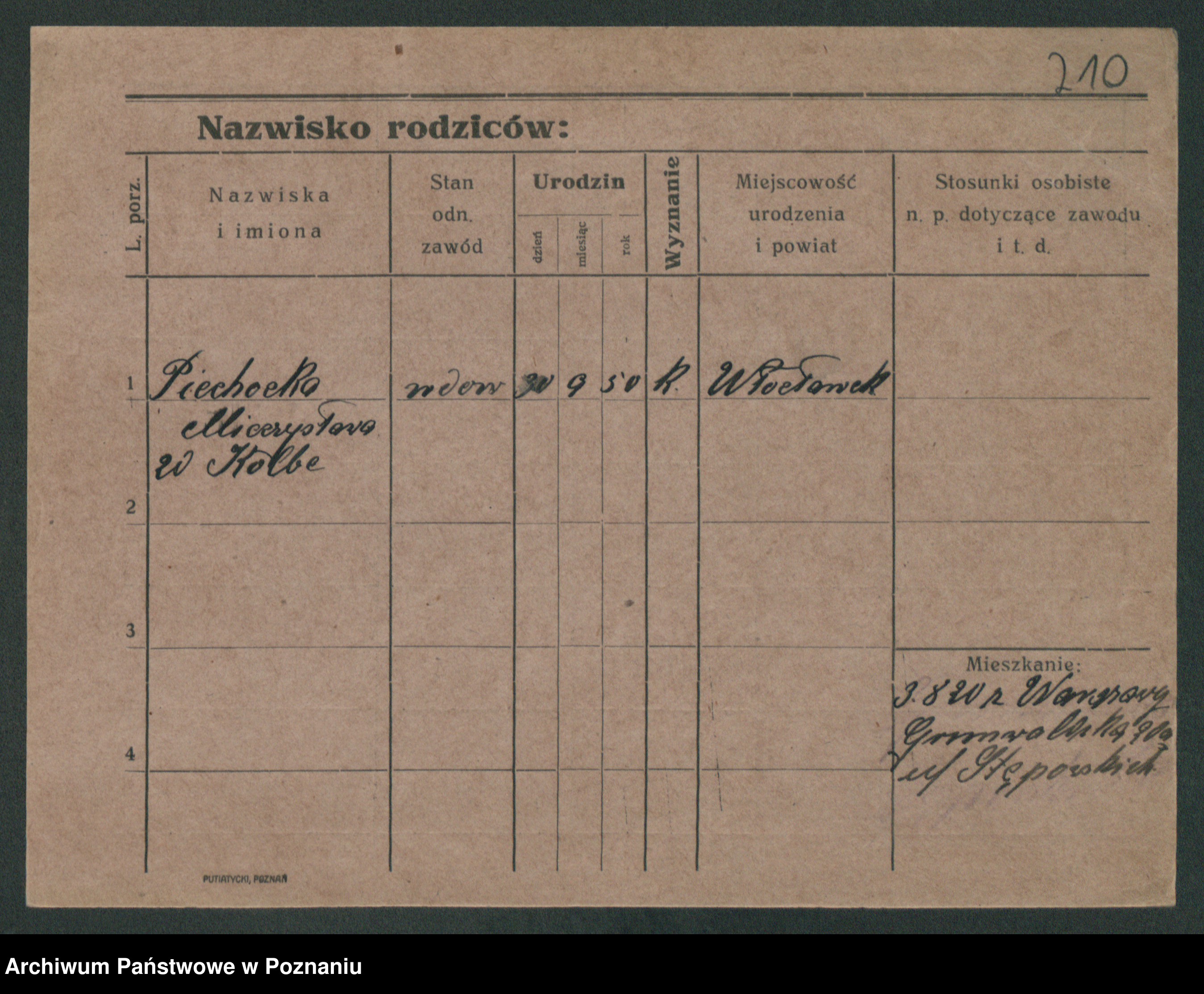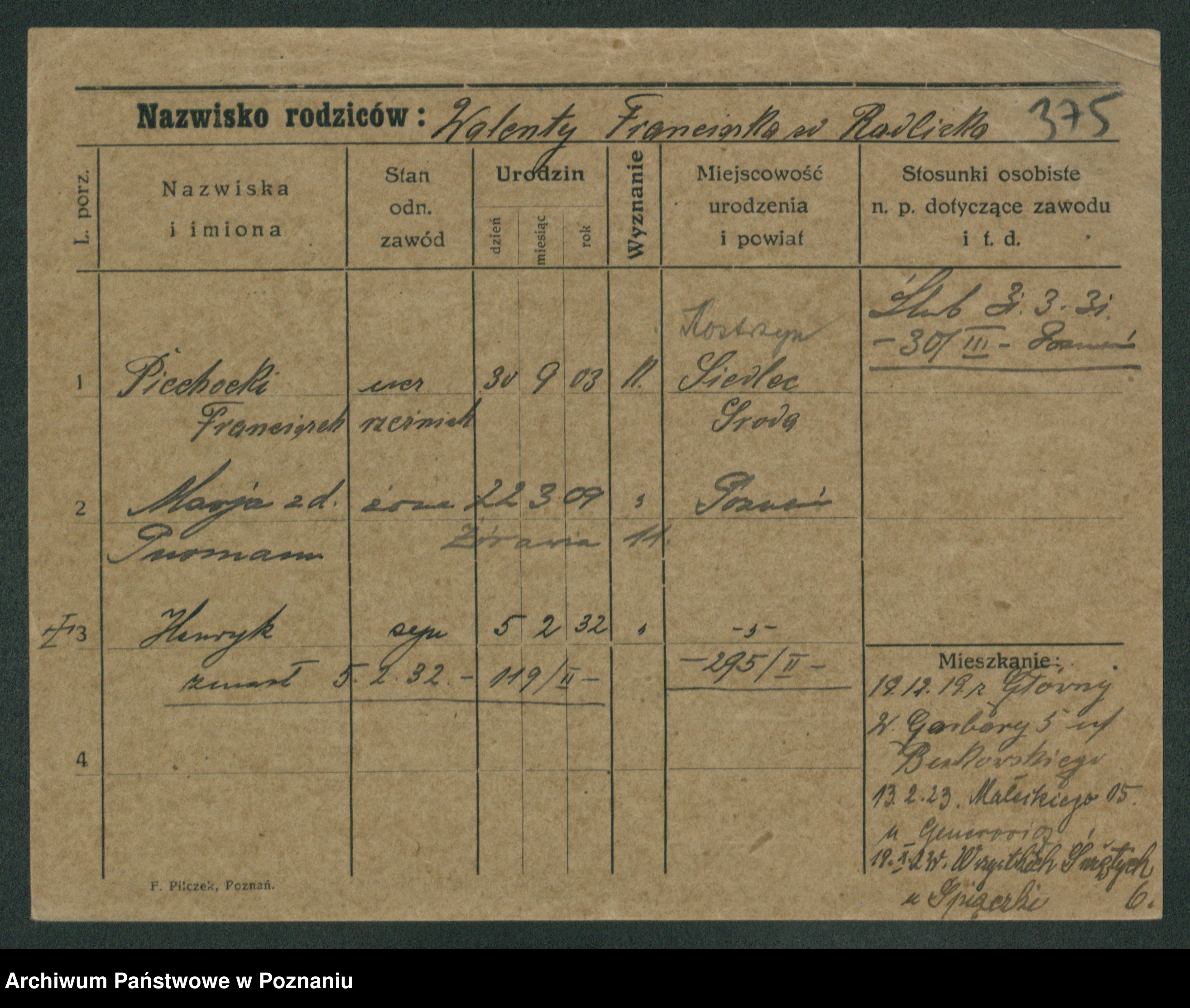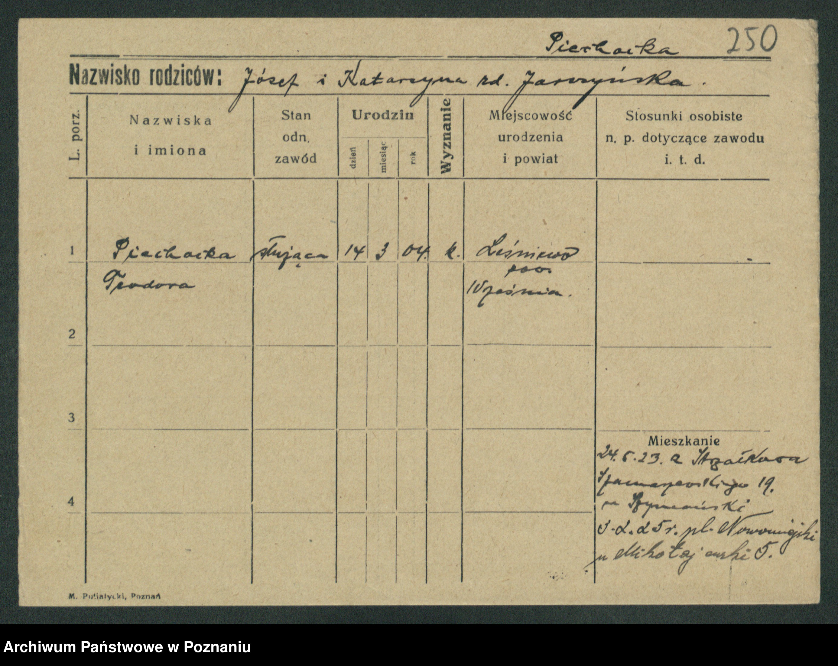 Piechocinski z.d. Jakób, Marja