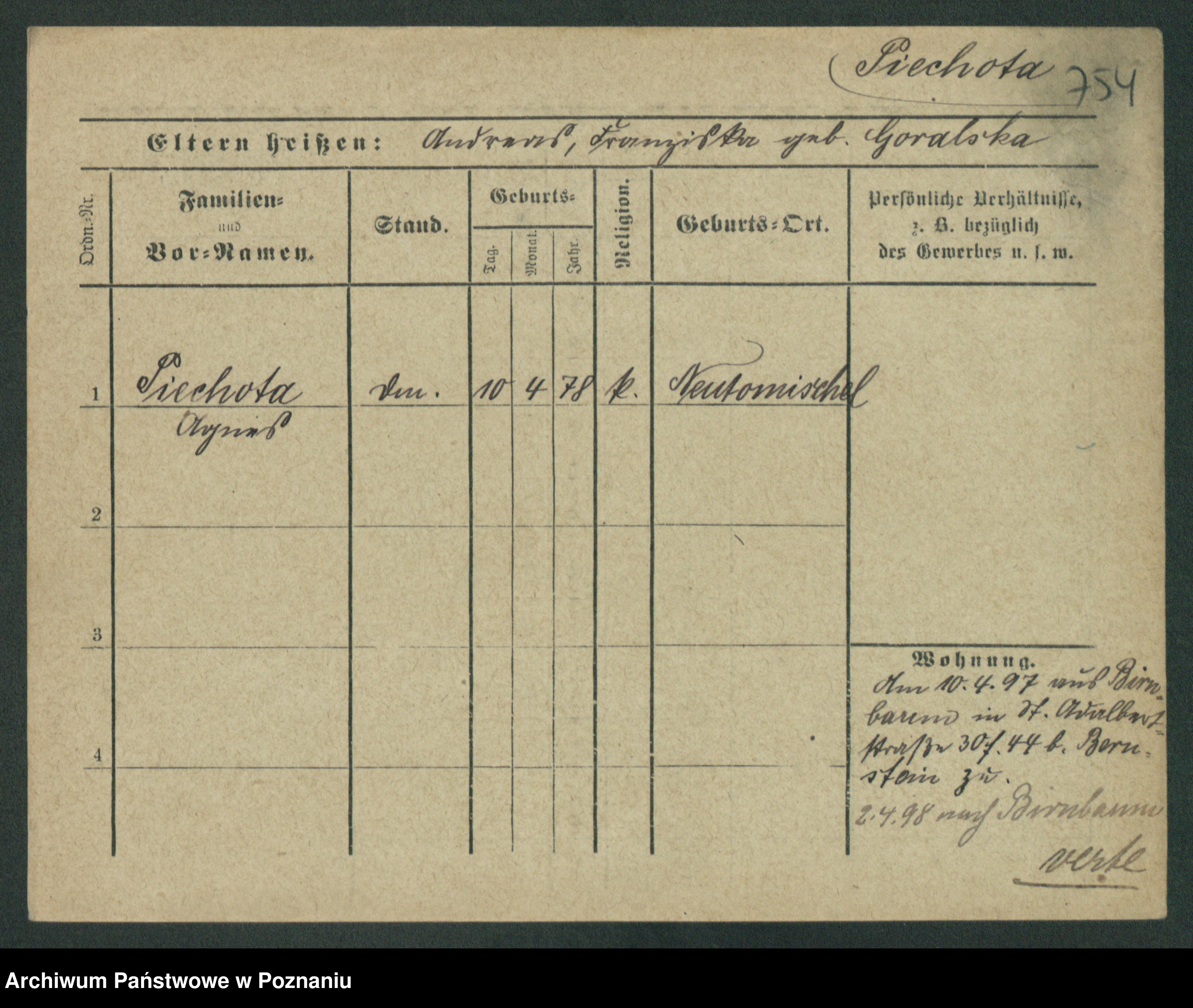 Piechocka, Johann
