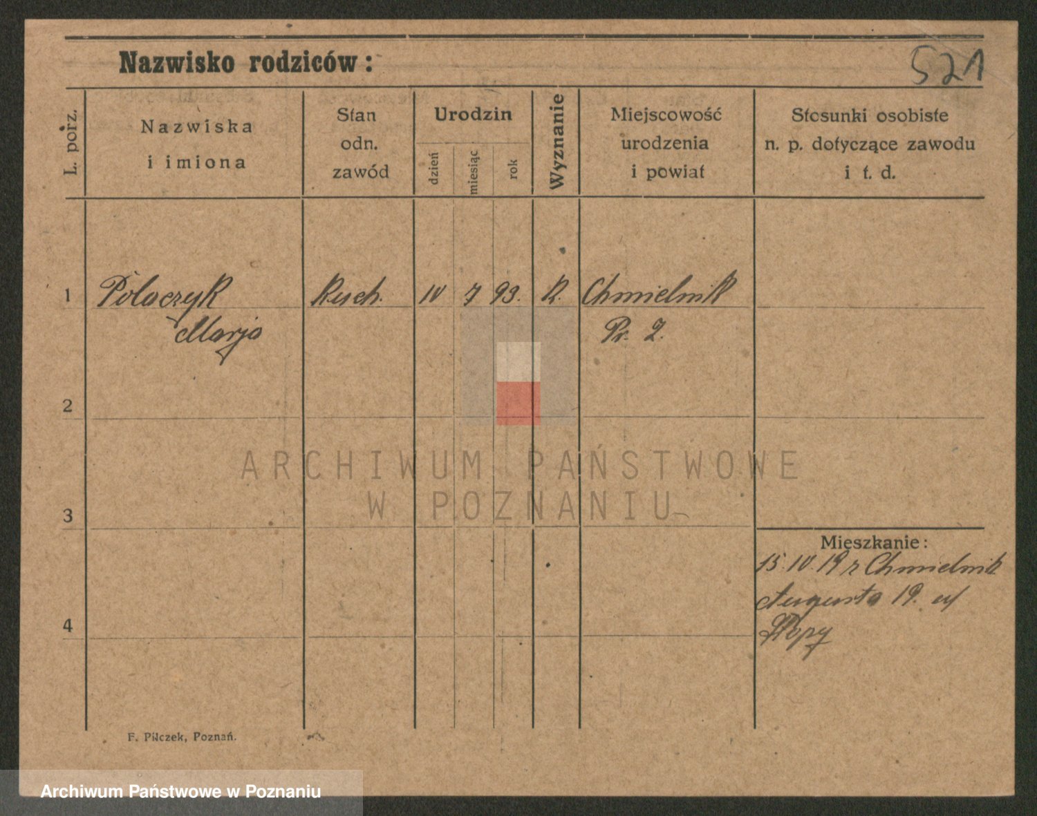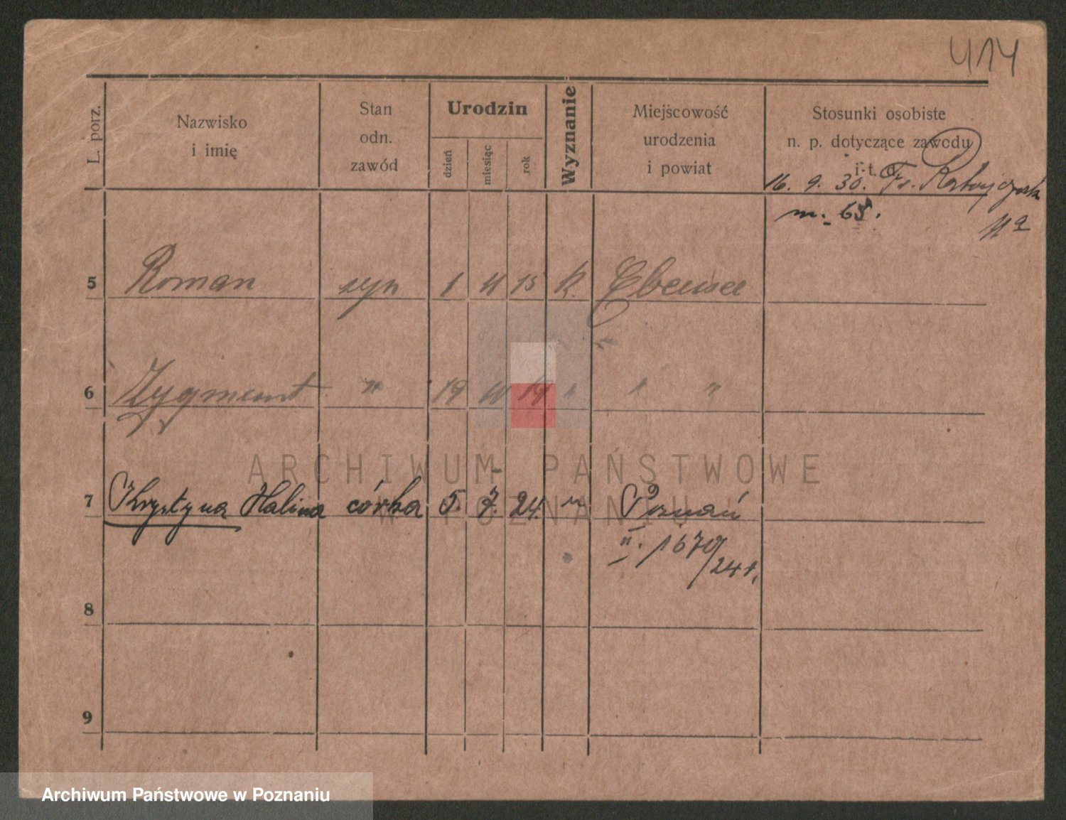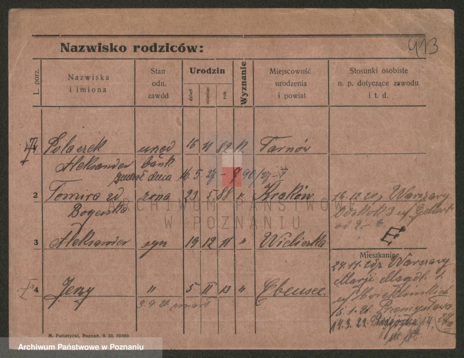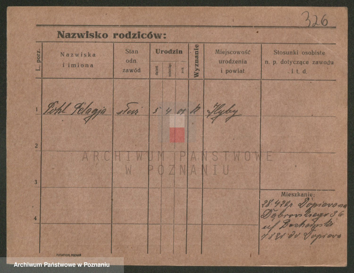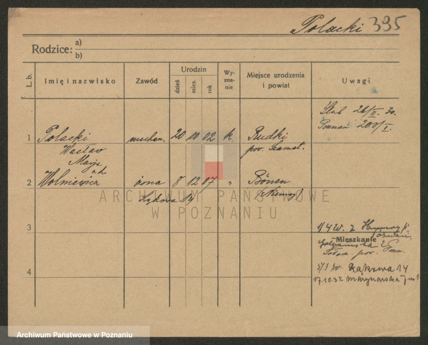 Podgląd karty osobowej dostępny jest po kliknięciu na nazwisko lub ikonkę karty. Można dokonywać powiększenia (ikony na górze) lub przechodzić między kolejnymi skanami (strzałki po bokach).