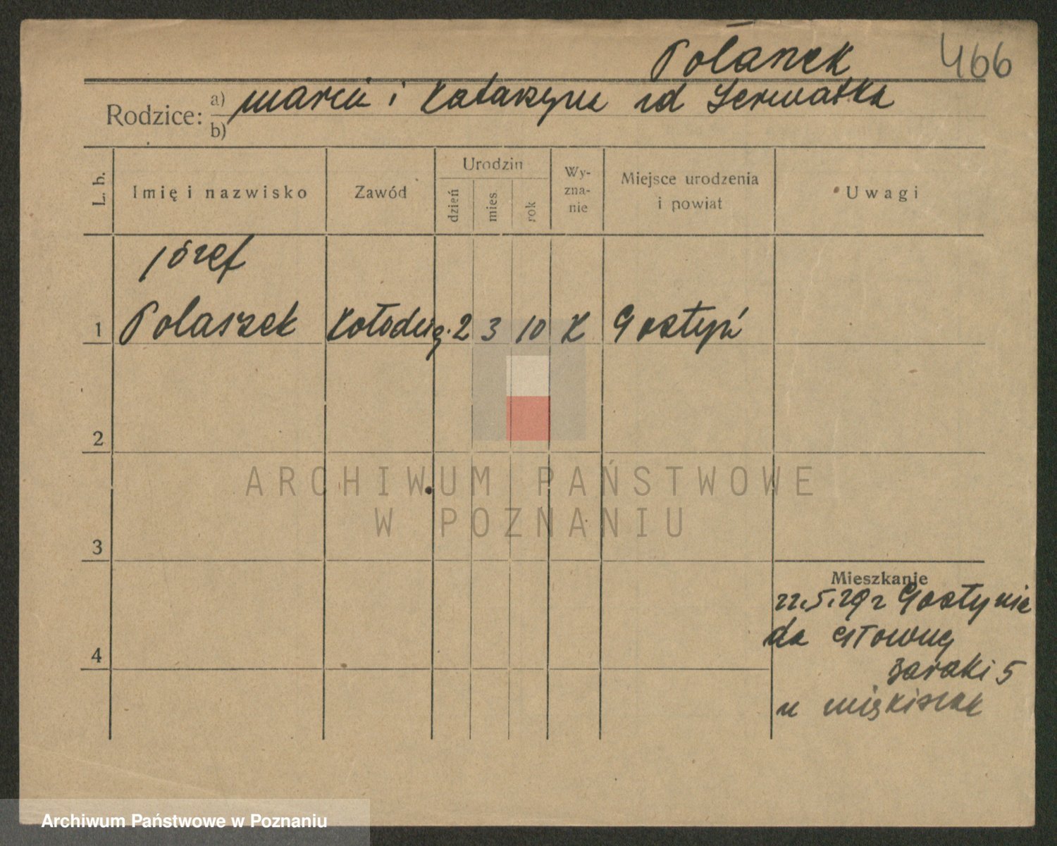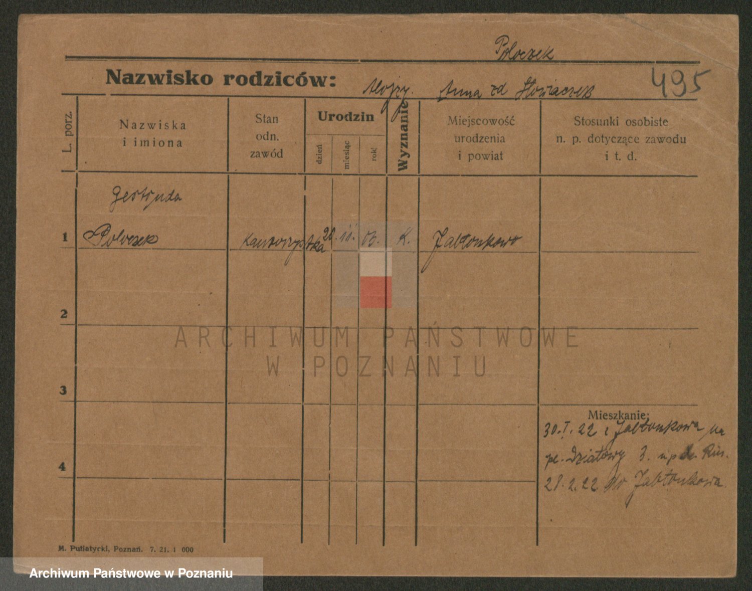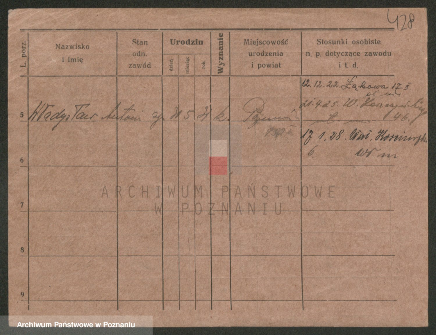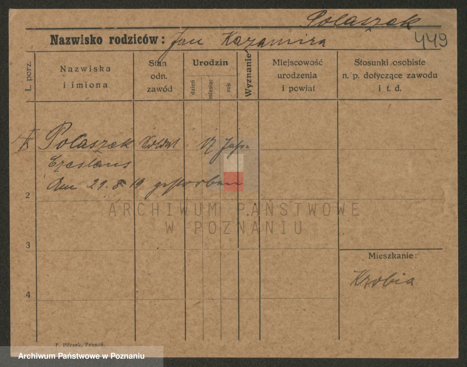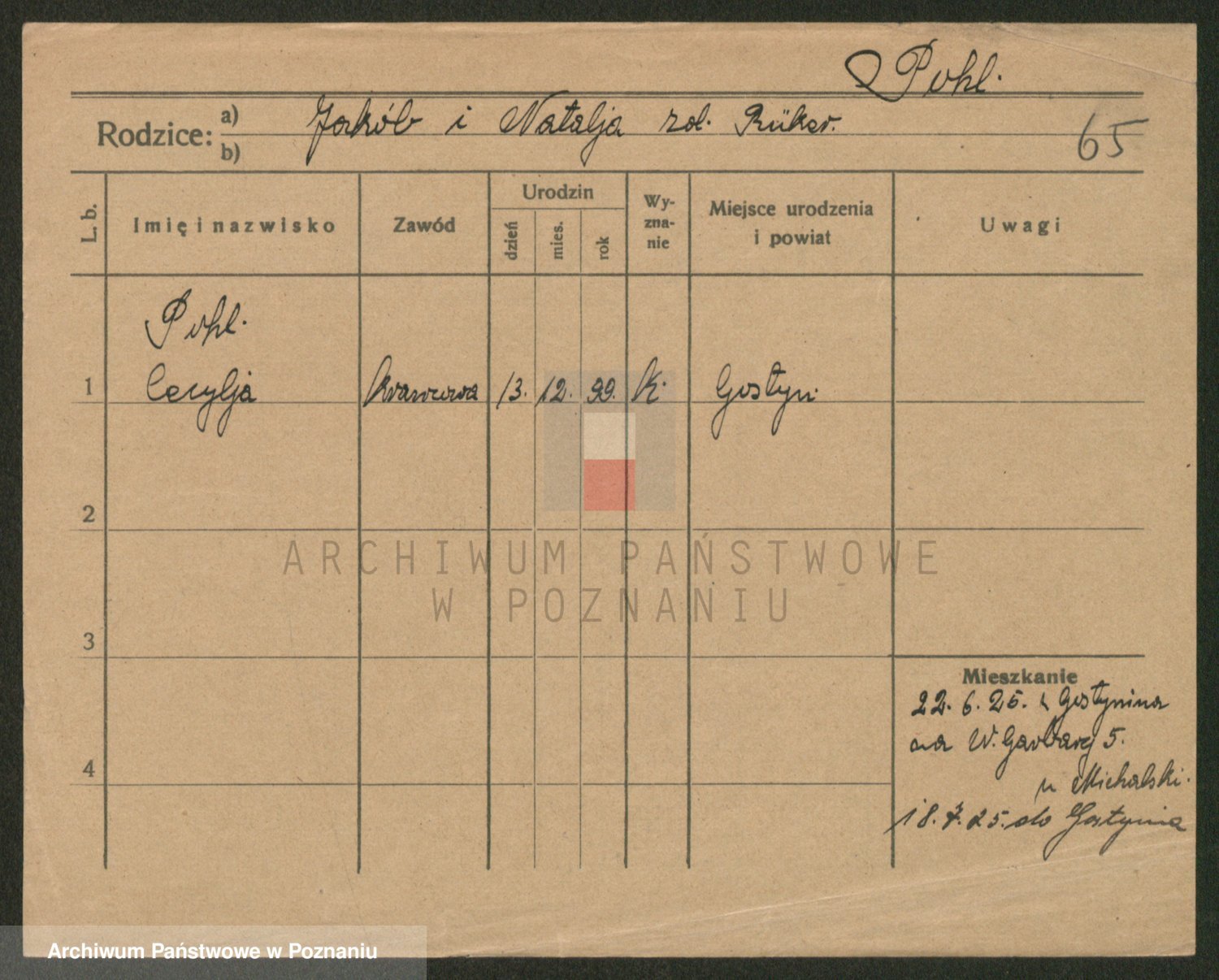 Podgląd karty osobowej dostępny jest po kliknięciu na nazwisko lub ikonkę karty. Można dokonywać powiększenia (ikony na górze) lub przechodzić między kolejnymi skanami (strzałki po bokach).