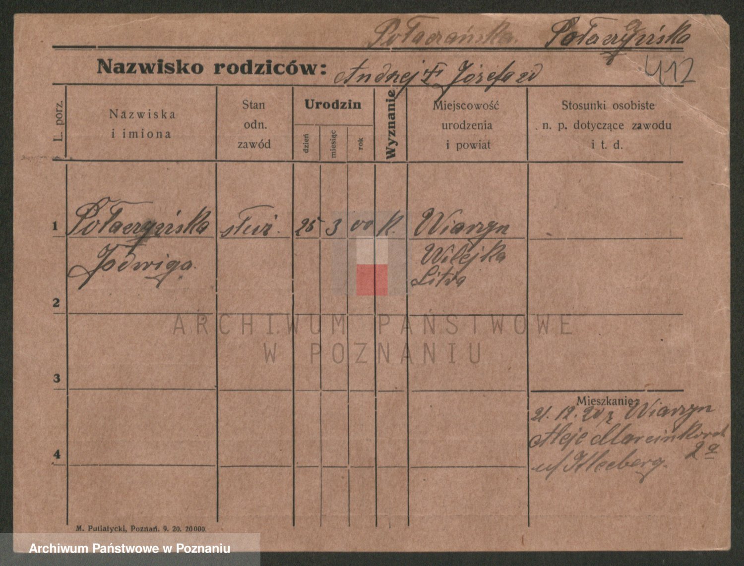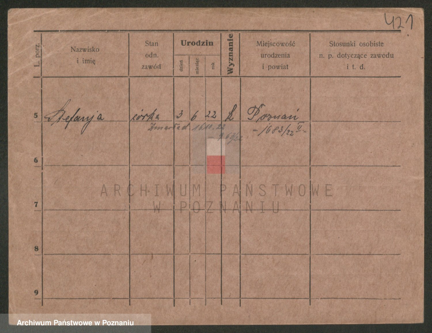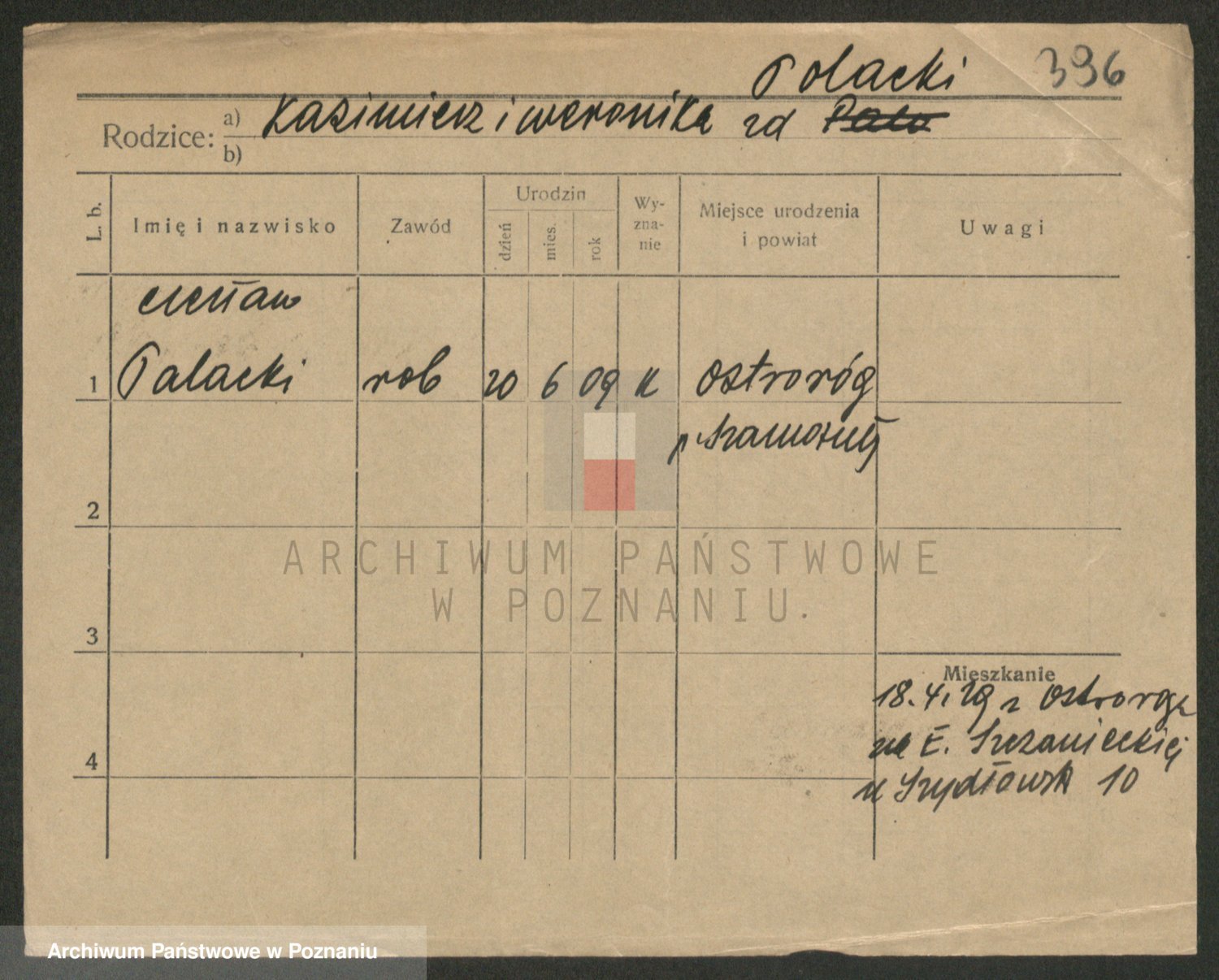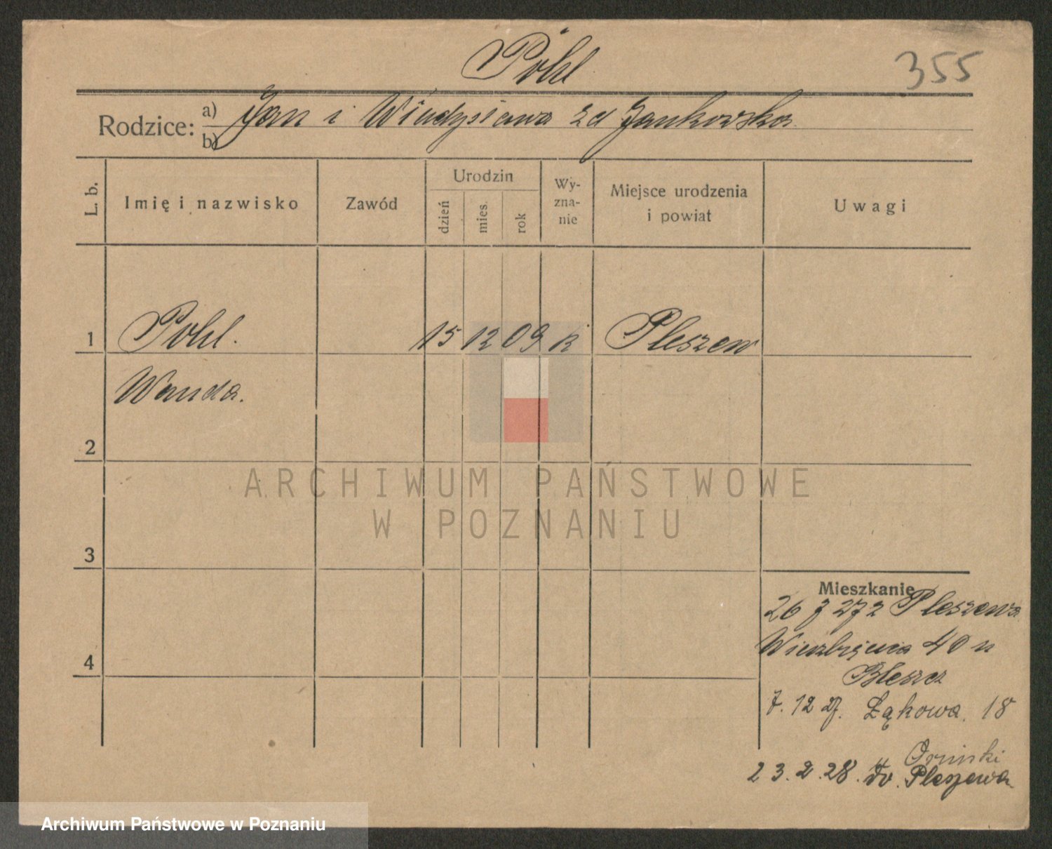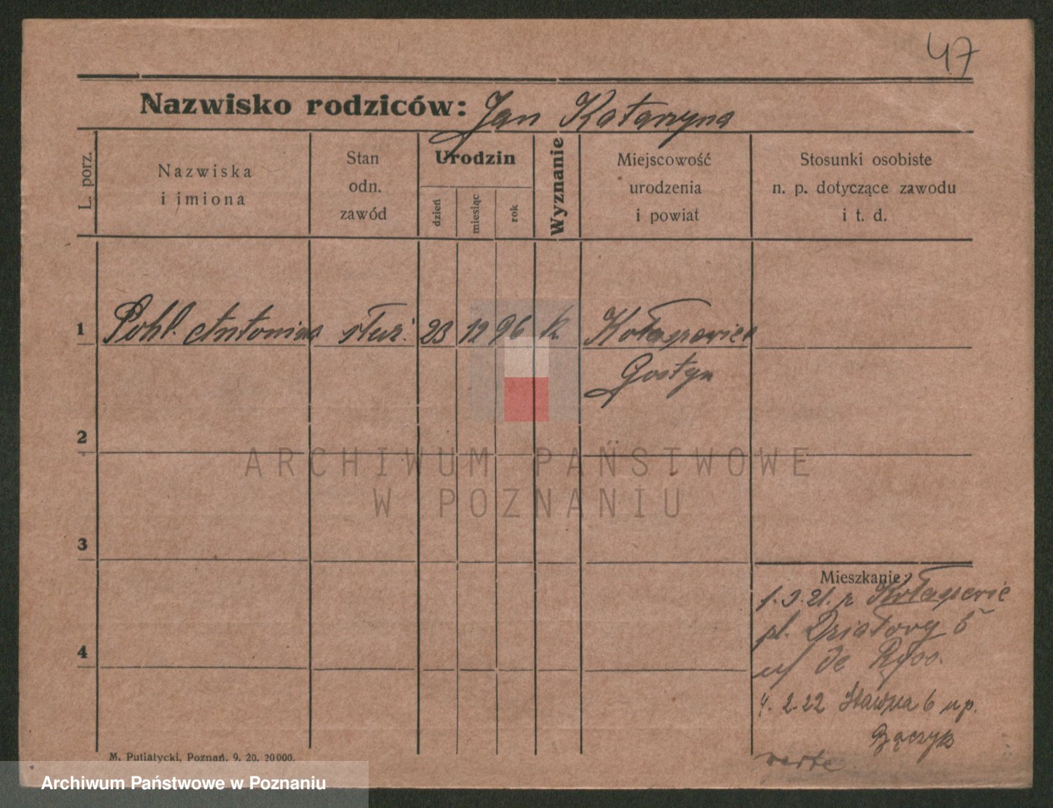 Podgląd karty osobowej dostępny jest po kliknięciu na nazwisko lub ikonkę karty. Można dokonywać powiększenia (ikony na górze) lub przechodzić między kolejnymi skanami (strzałki po bokach).