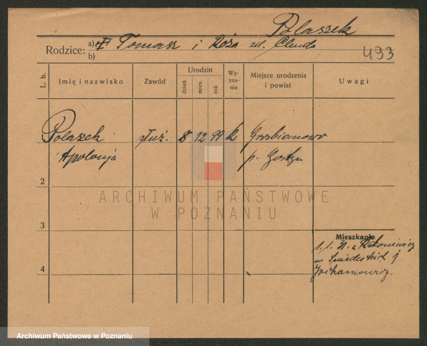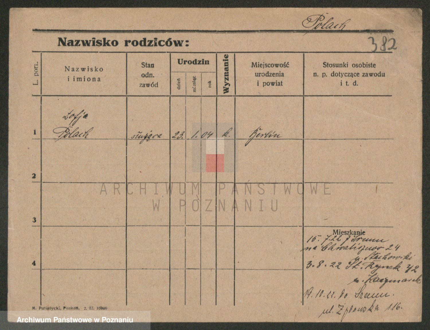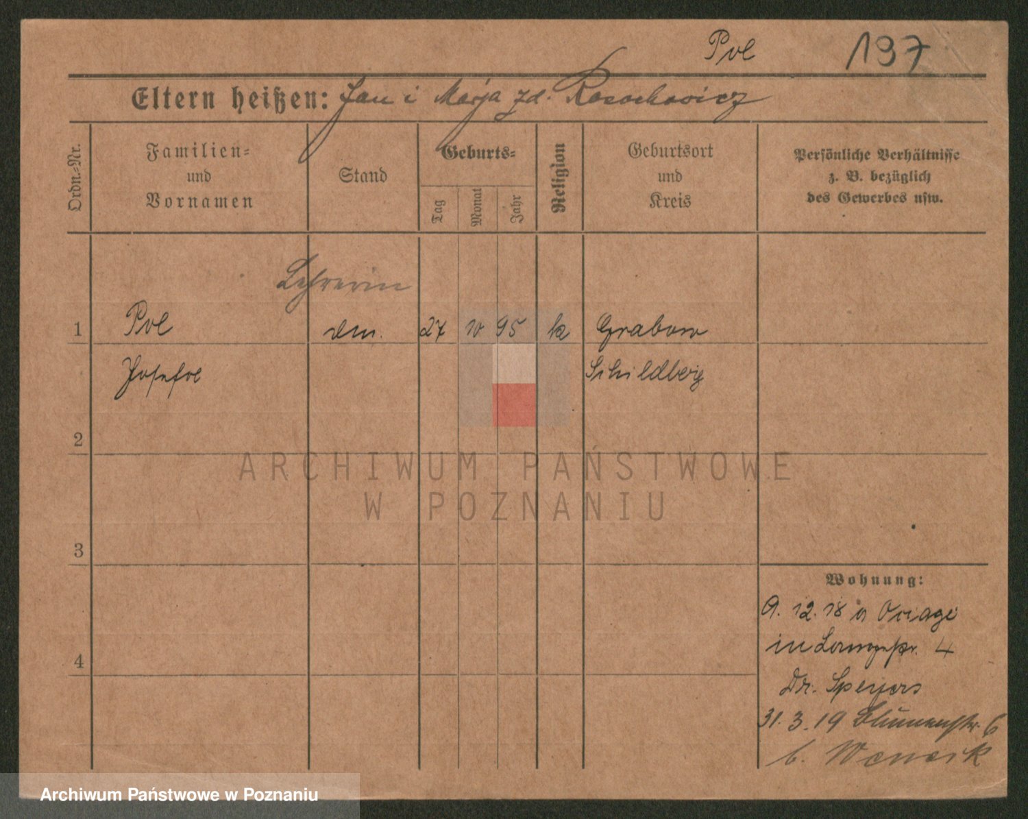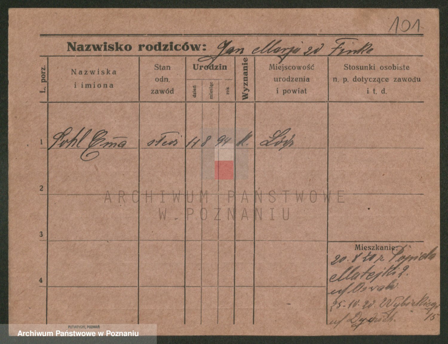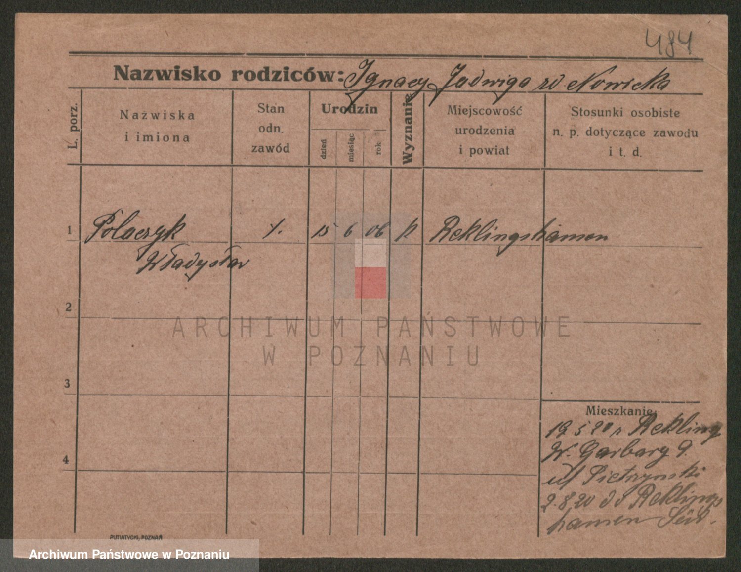 Podgląd karty osobowej dostępny jest po kliknięciu na nazwisko lub ikonkę karty. Można dokonywać powiększenia (ikony na górze) lub przechodzić między kolejnymi skanami (strzałki po bokach).