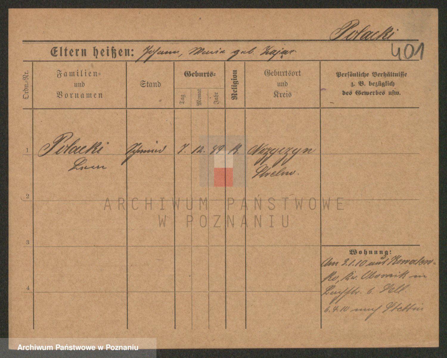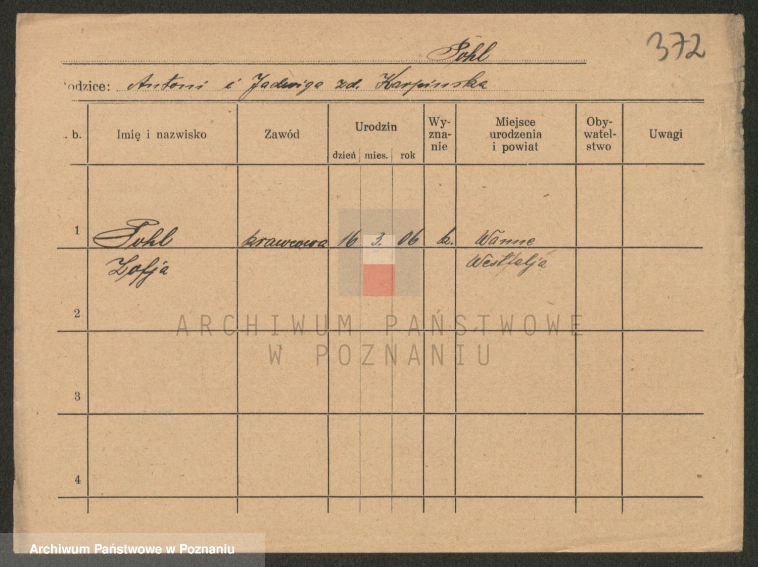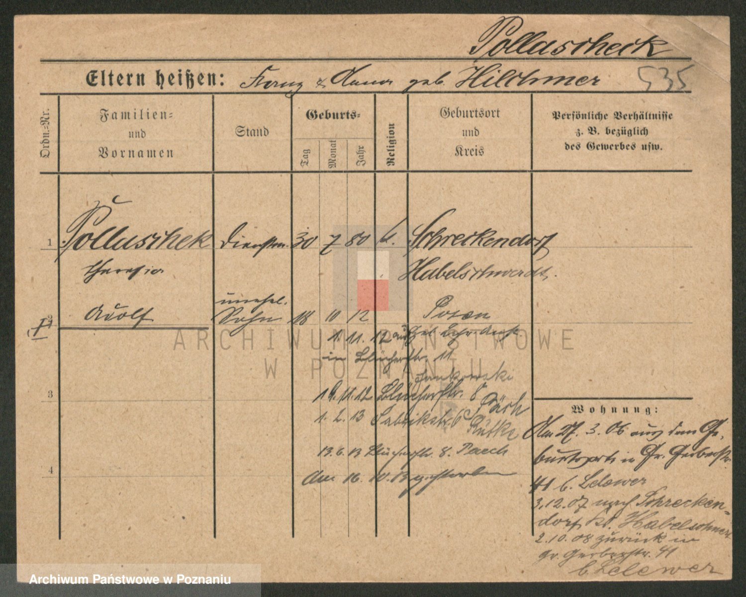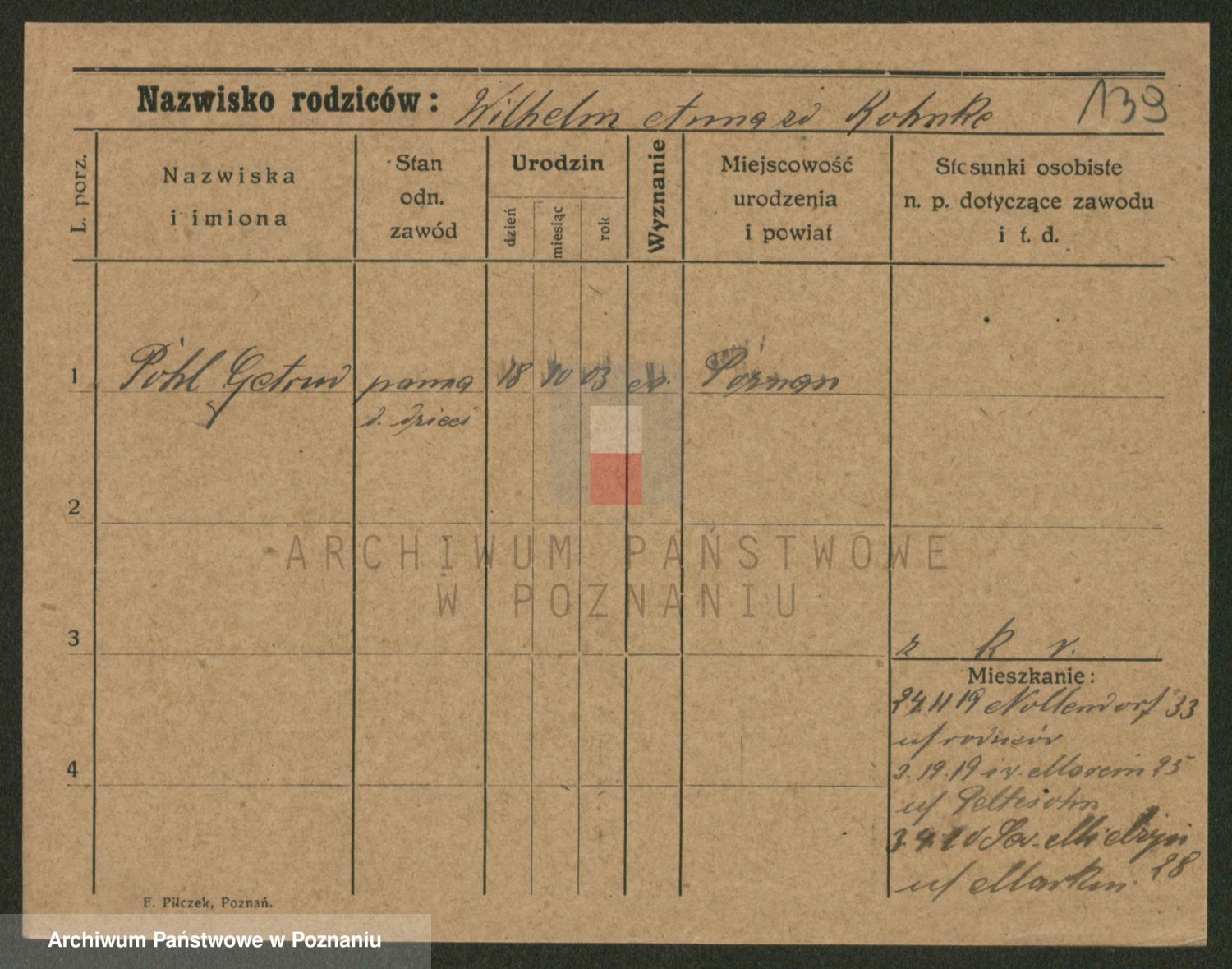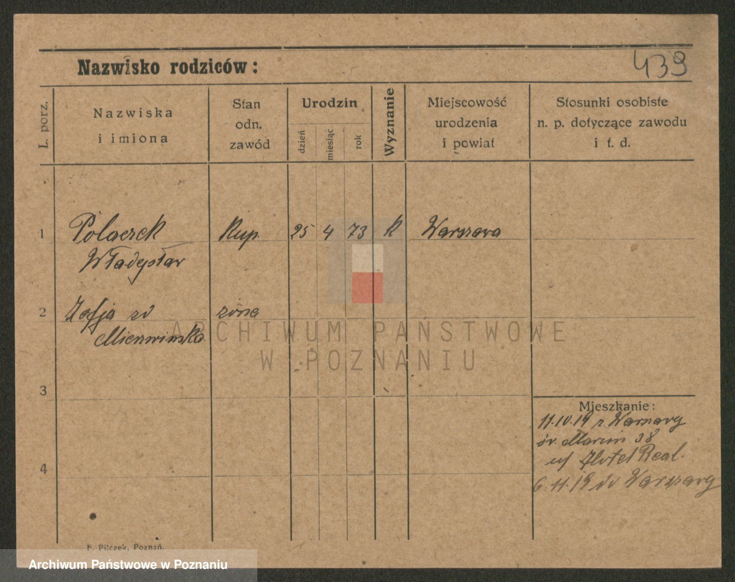 Podgląd karty osobowej dostępny jest po kliknięciu na nazwisko lub ikonkę karty. Można dokonywać powiększenia (ikony na górze) lub przechodzić między kolejnymi skanami (strzałki po bokach).