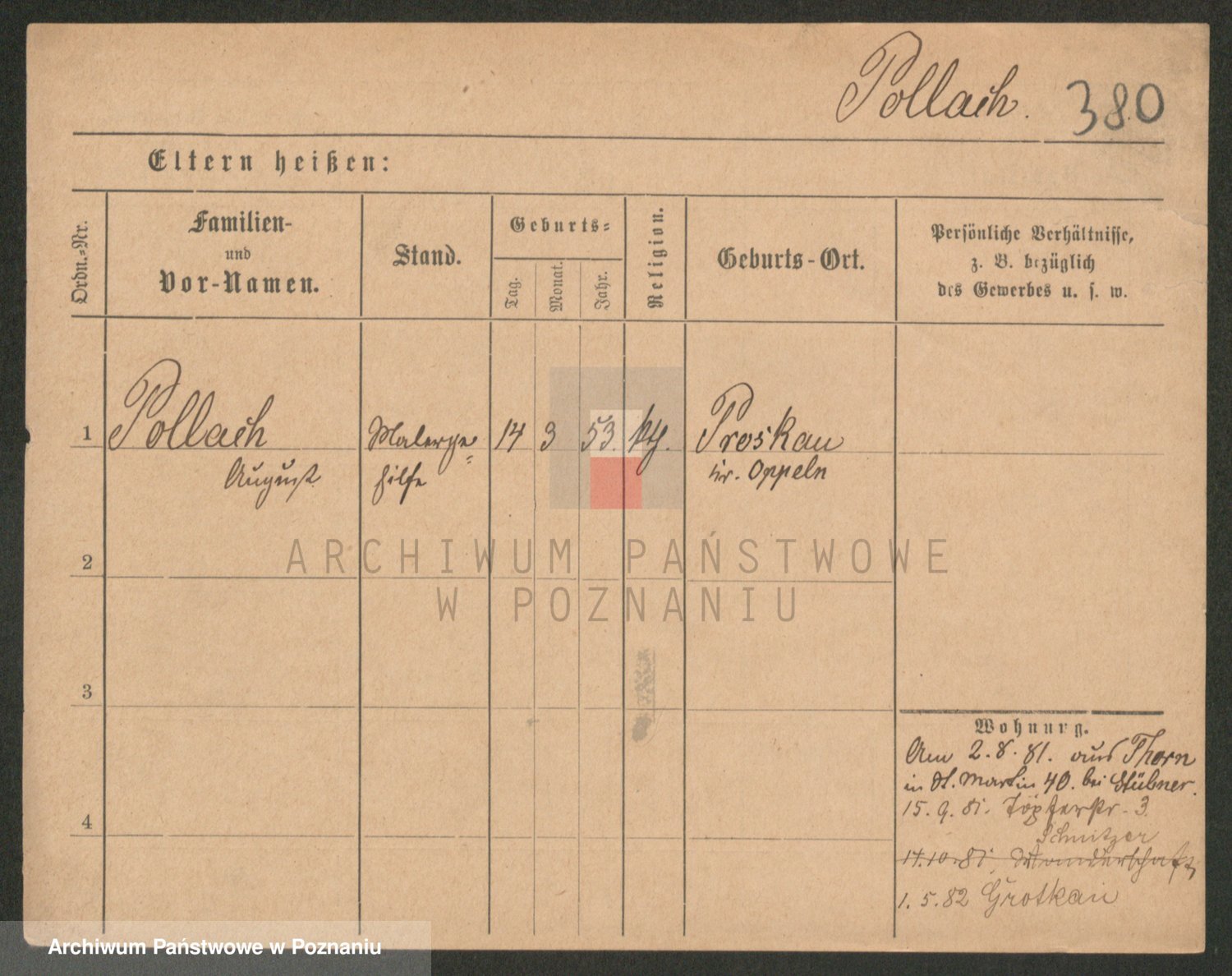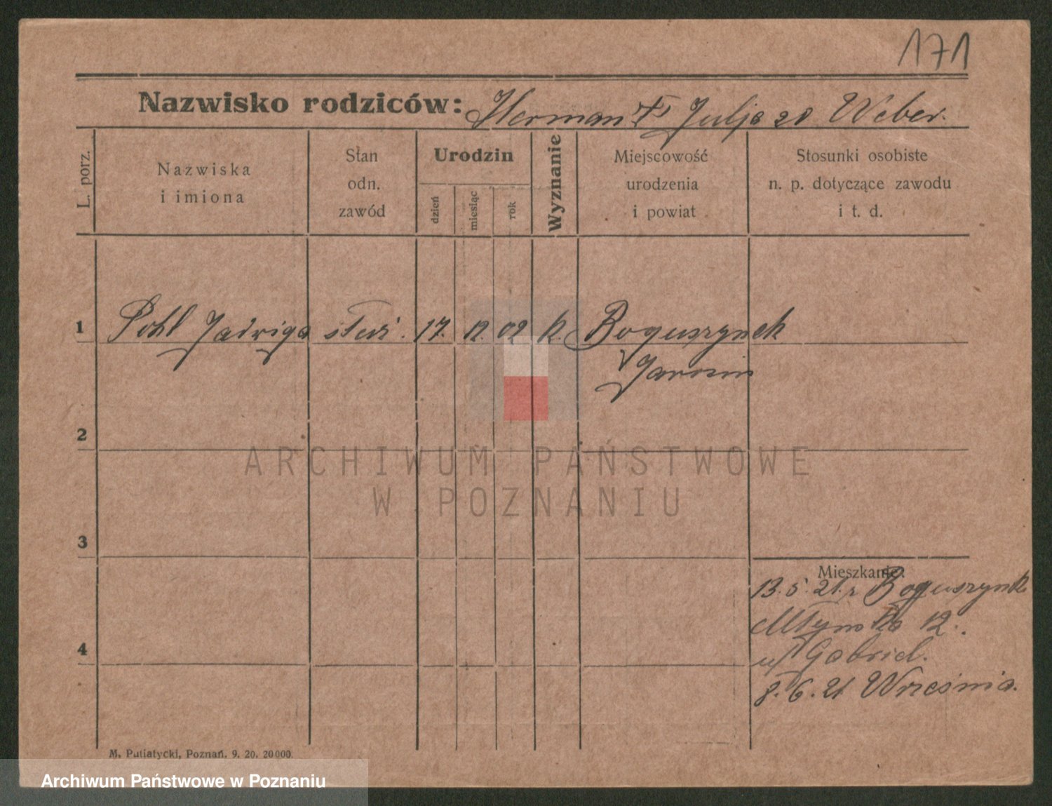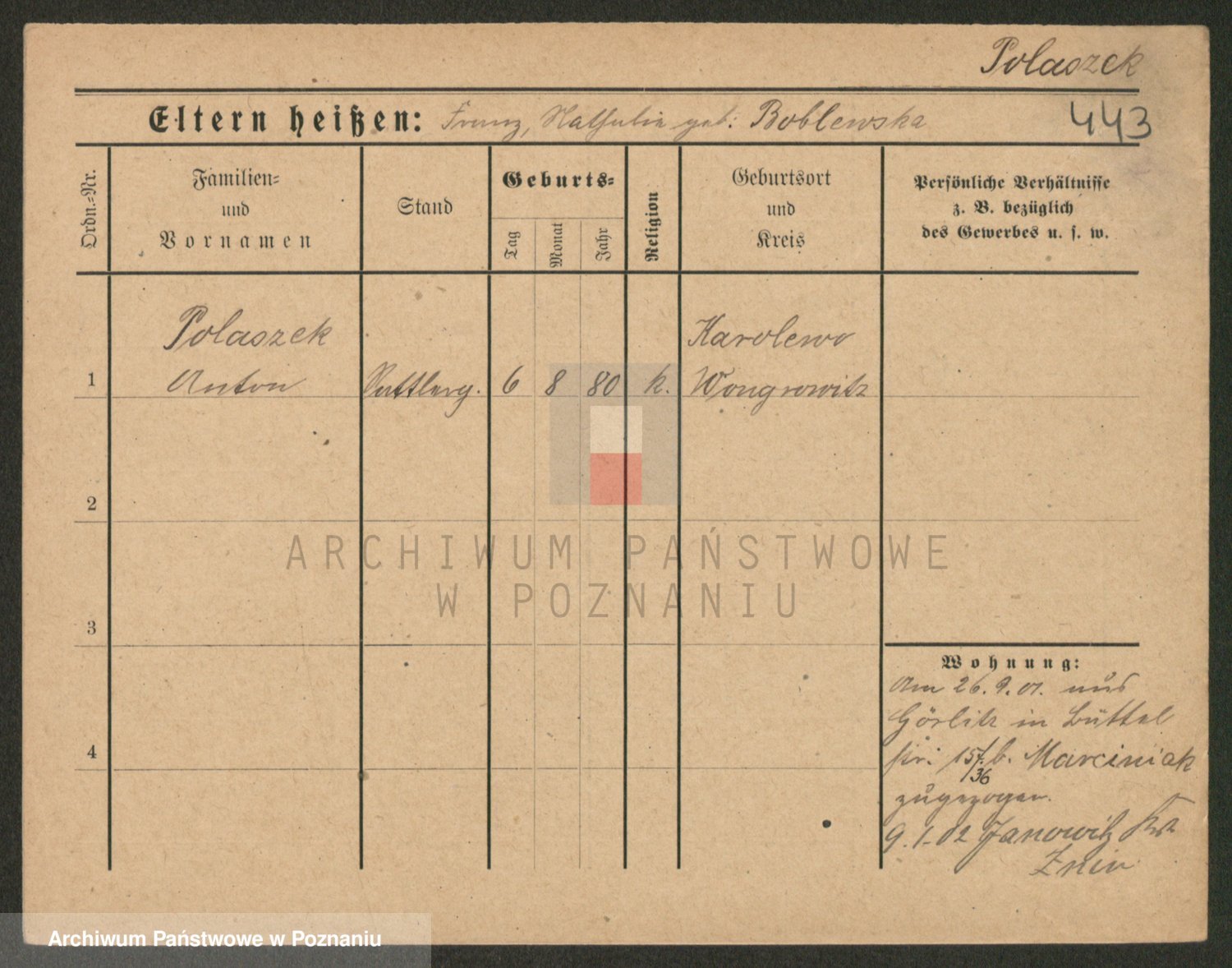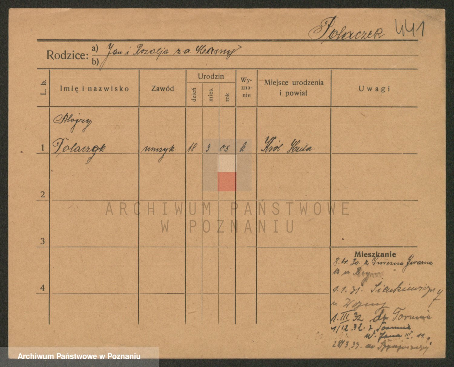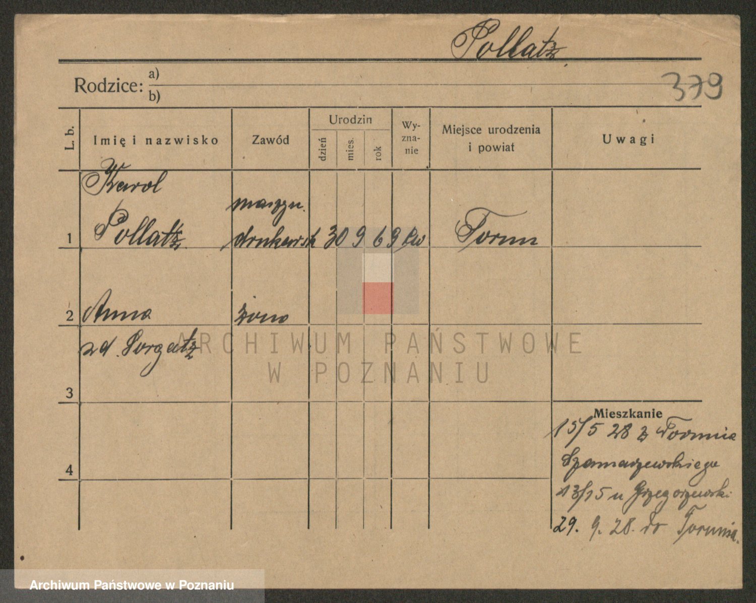 Podgląd karty osobowej dostępny jest po kliknięciu na nazwisko lub ikonkę karty. Można dokonywać powiększenia (ikony na górze) lub przechodzić między kolejnymi skanami (strzałki po bokach).