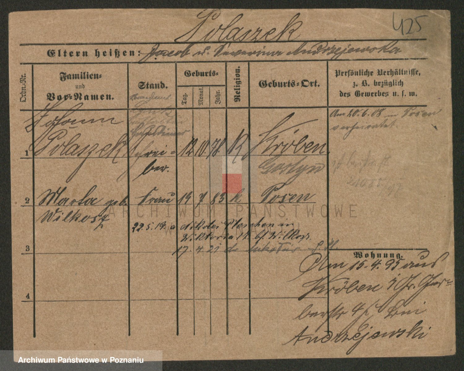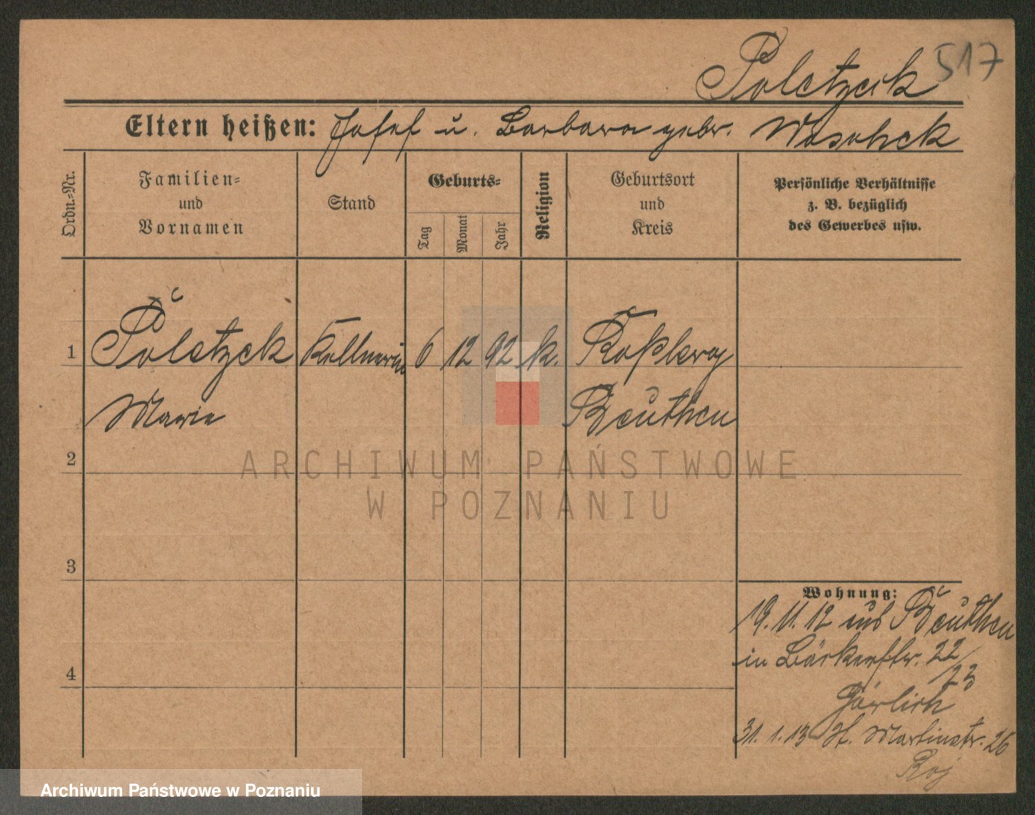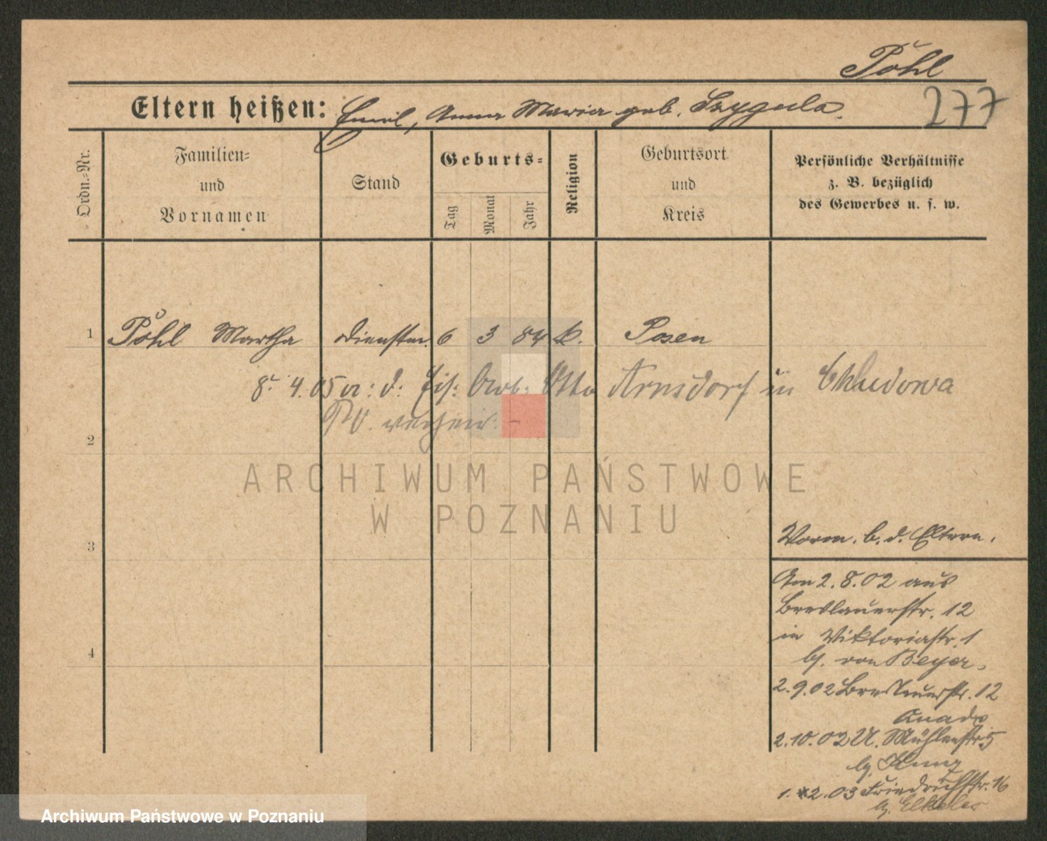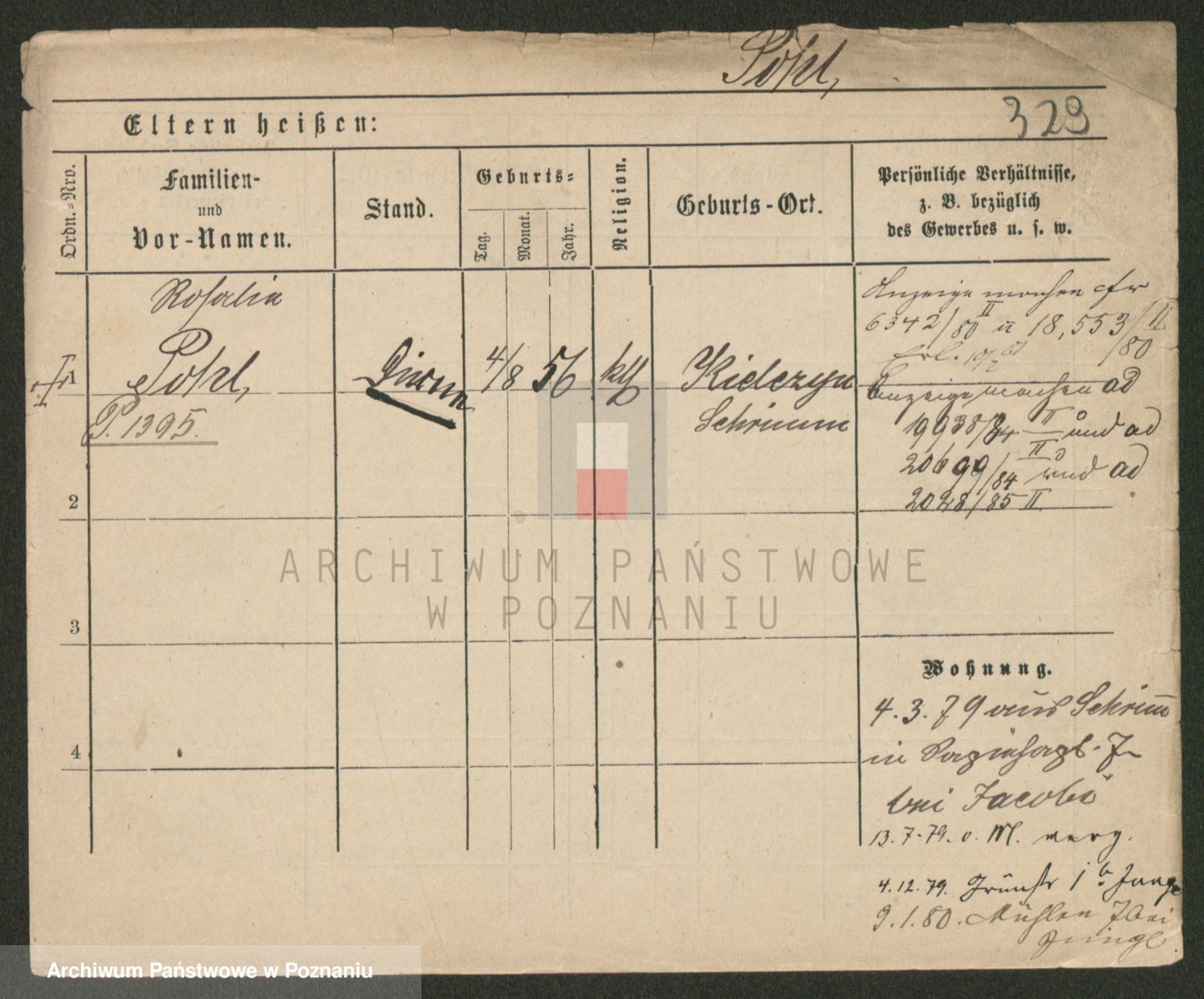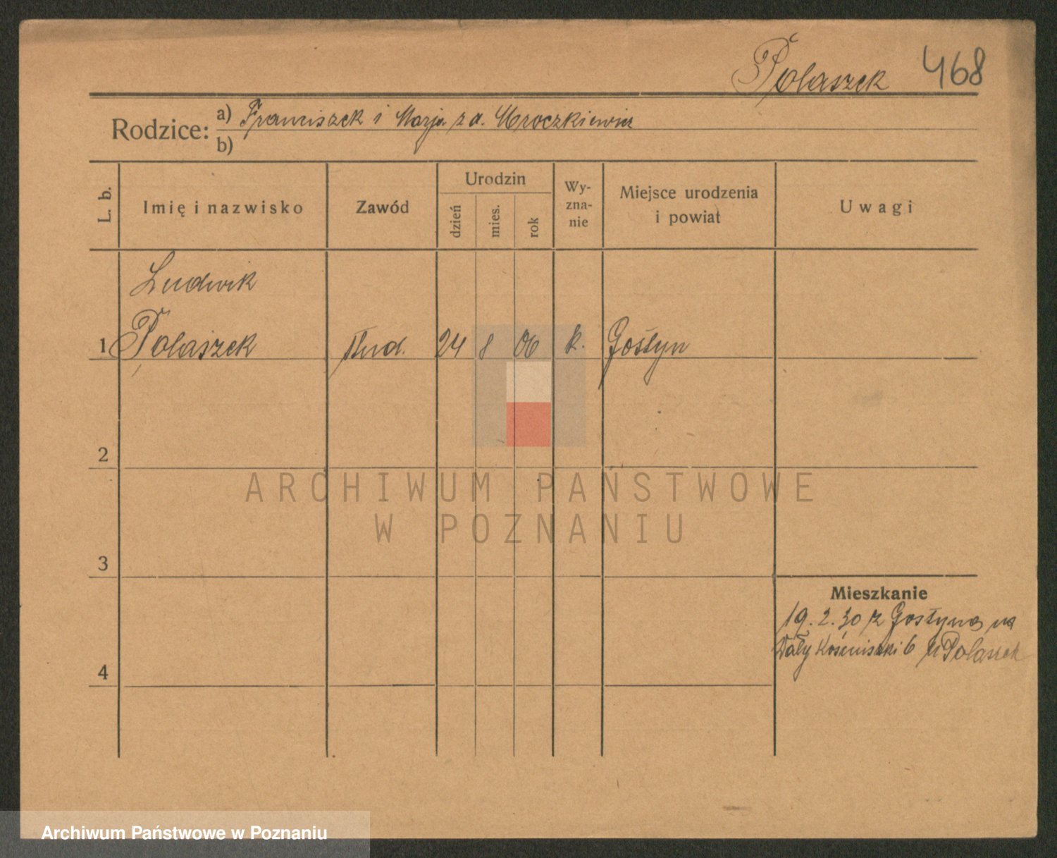 Podgląd karty osobowej dostępny jest po kliknięciu na nazwisko lub ikonkę karty. Można dokonywać powiększenia (ikony na górze) lub przechodzić między kolejnymi skanami (strzałki po bokach).