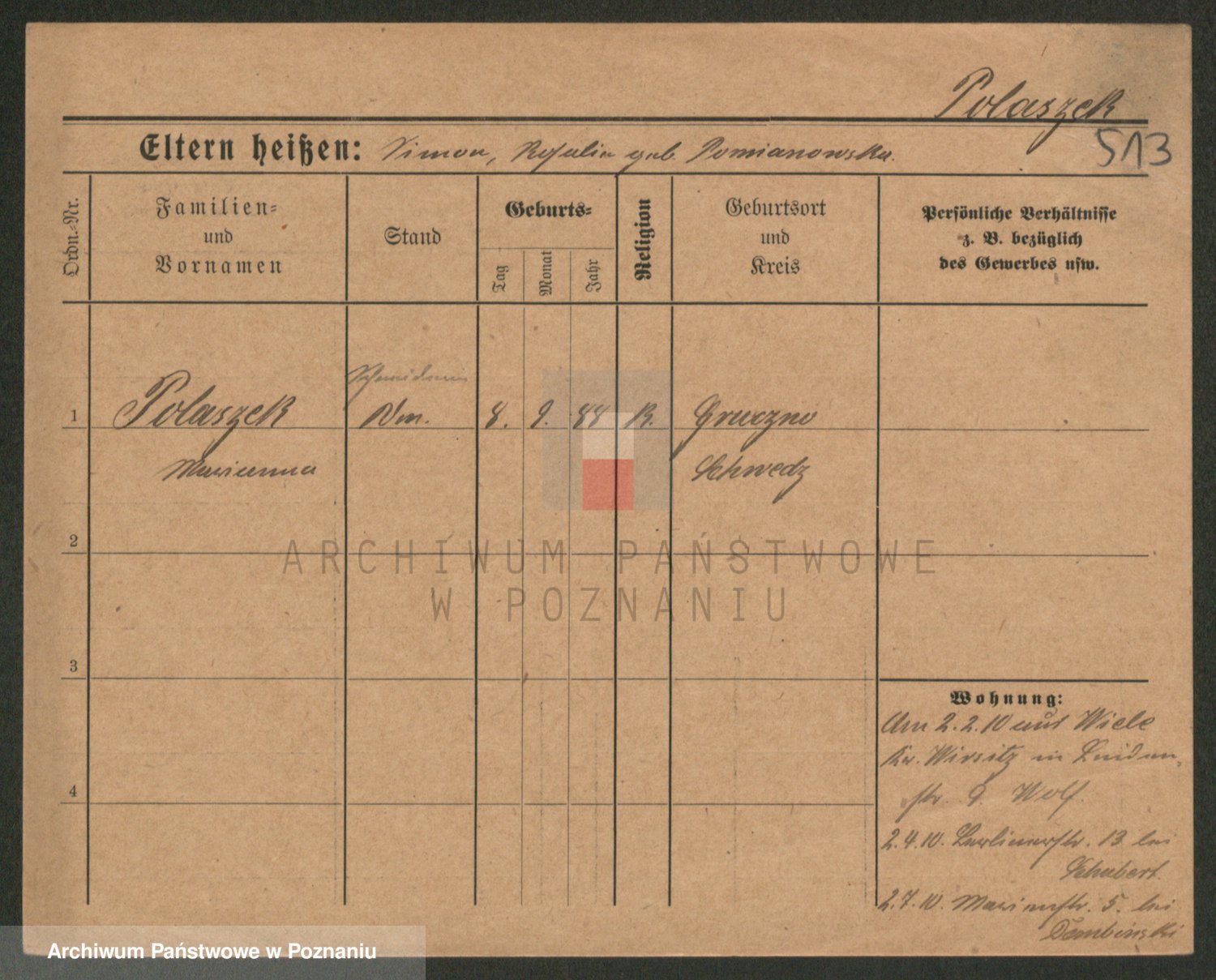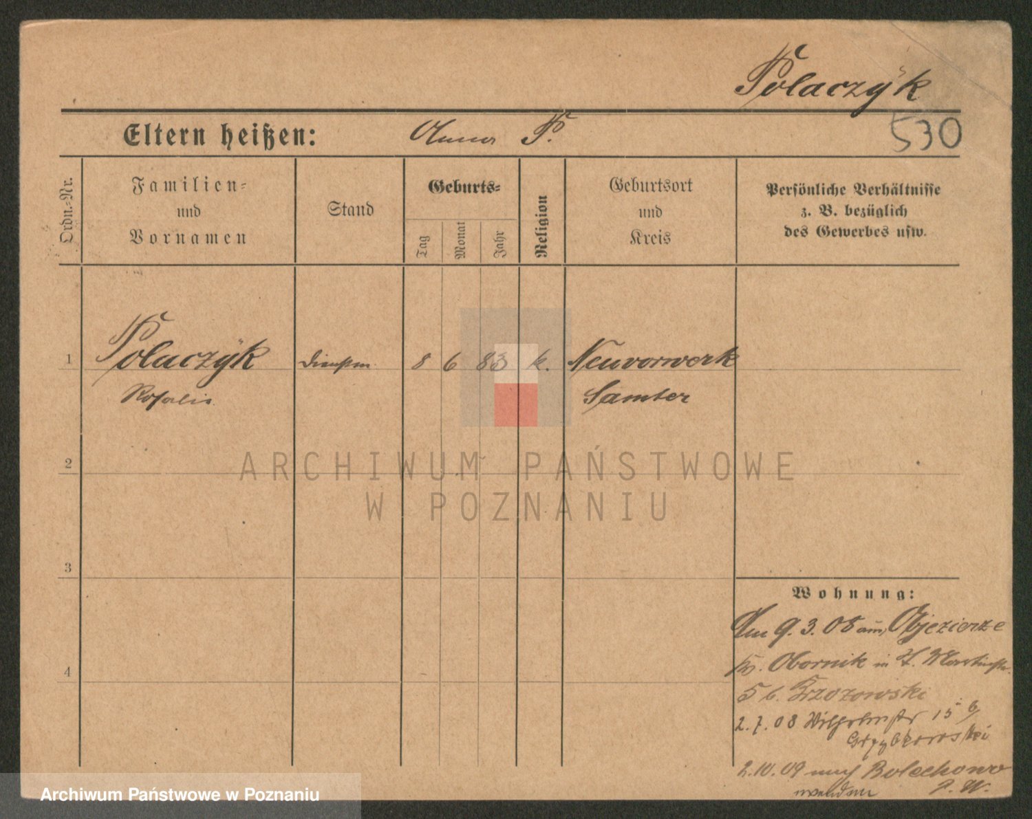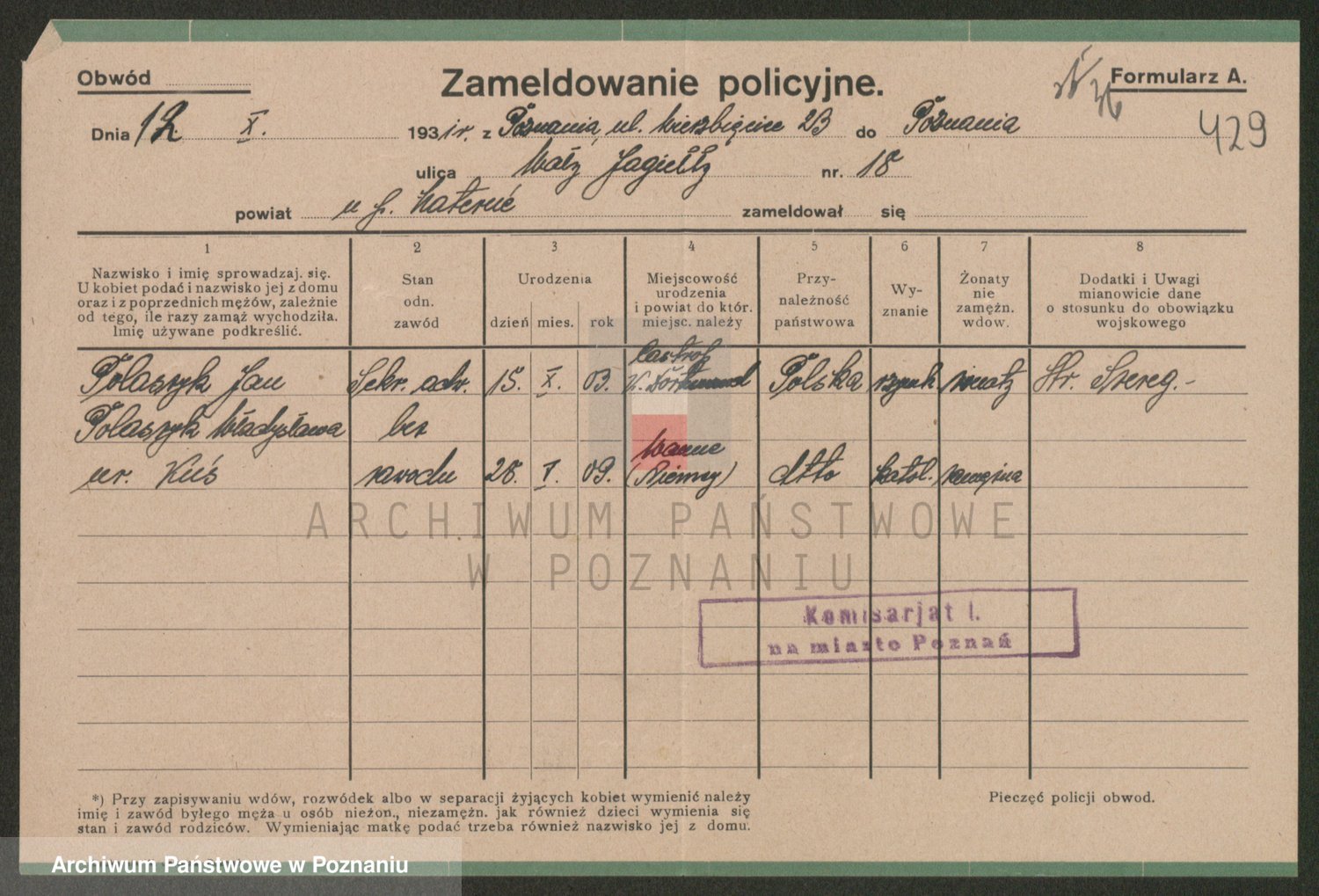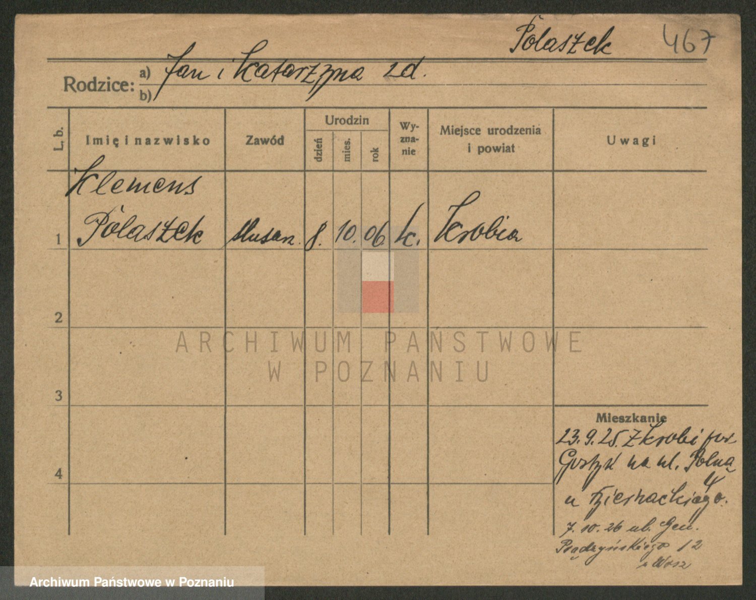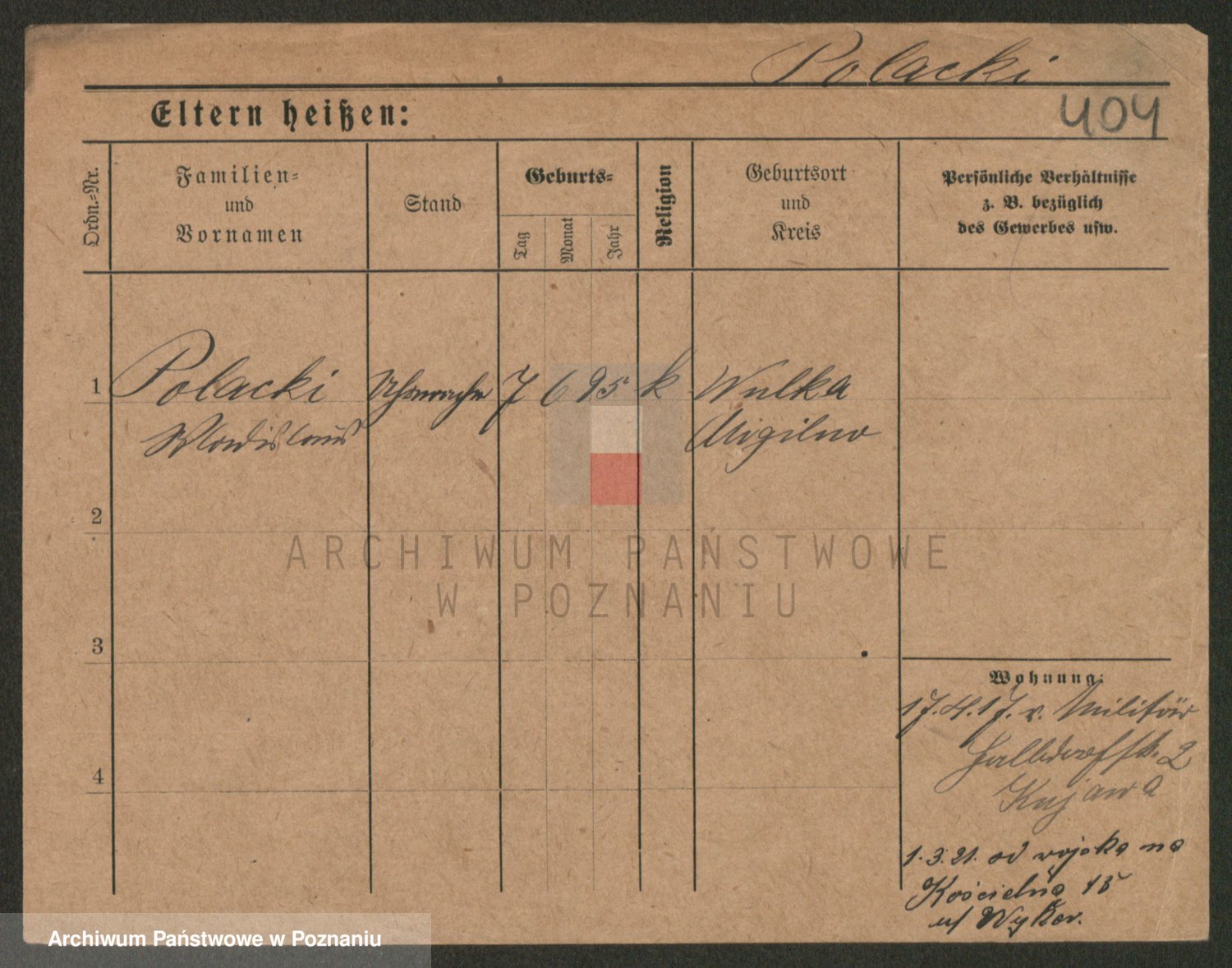 Podgląd karty osobowej dostępny jest po kliknięciu na nazwisko lub ikonkę karty. Można dokonywać powiększenia (ikony na górze) lub przechodzić między kolejnymi skanami (strzałki po bokach).