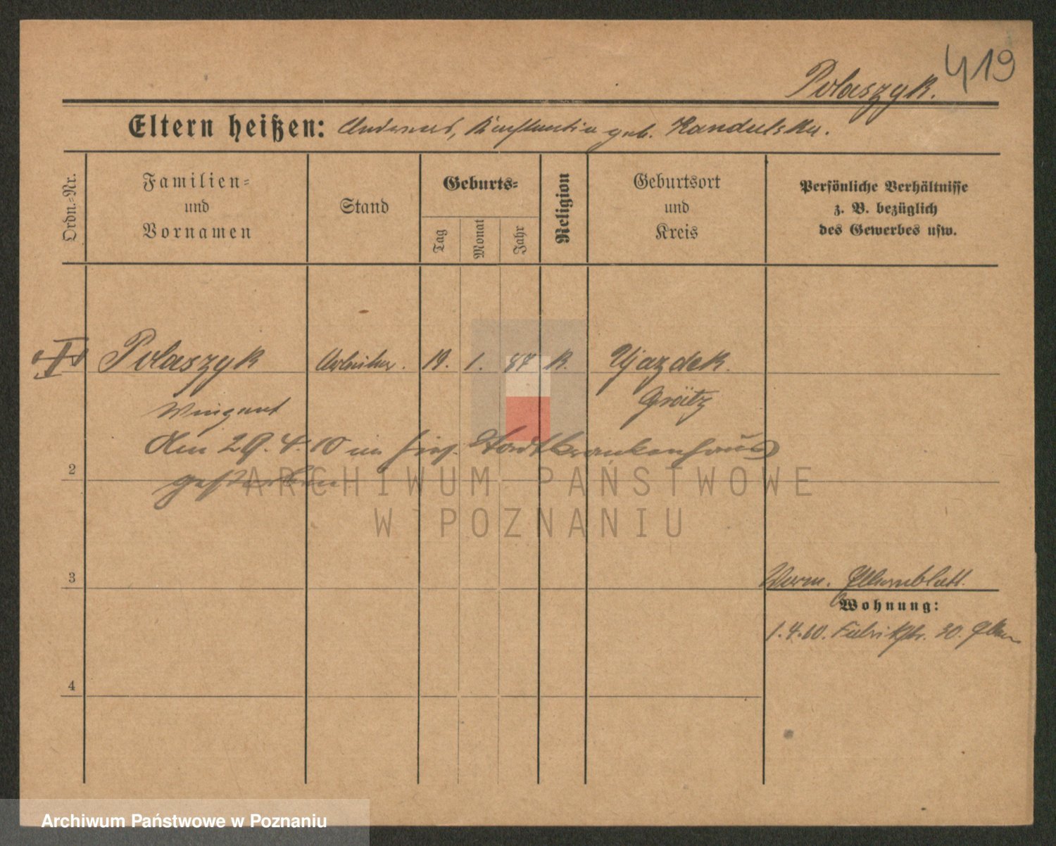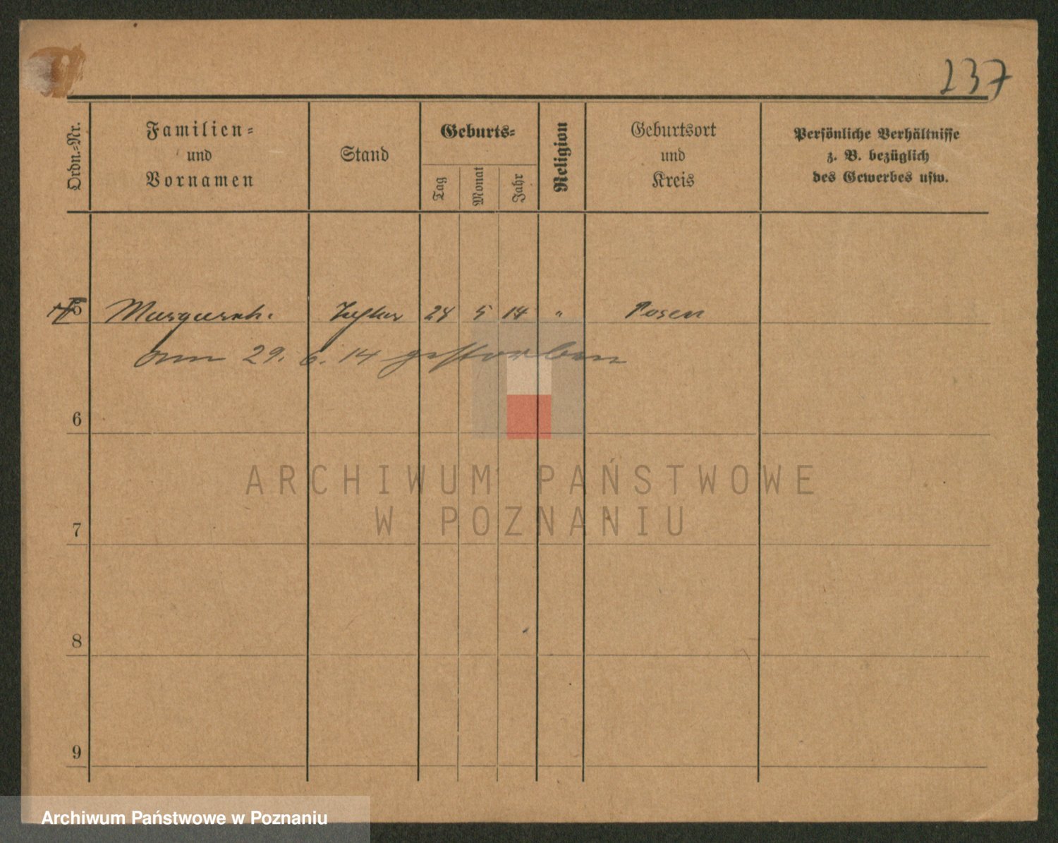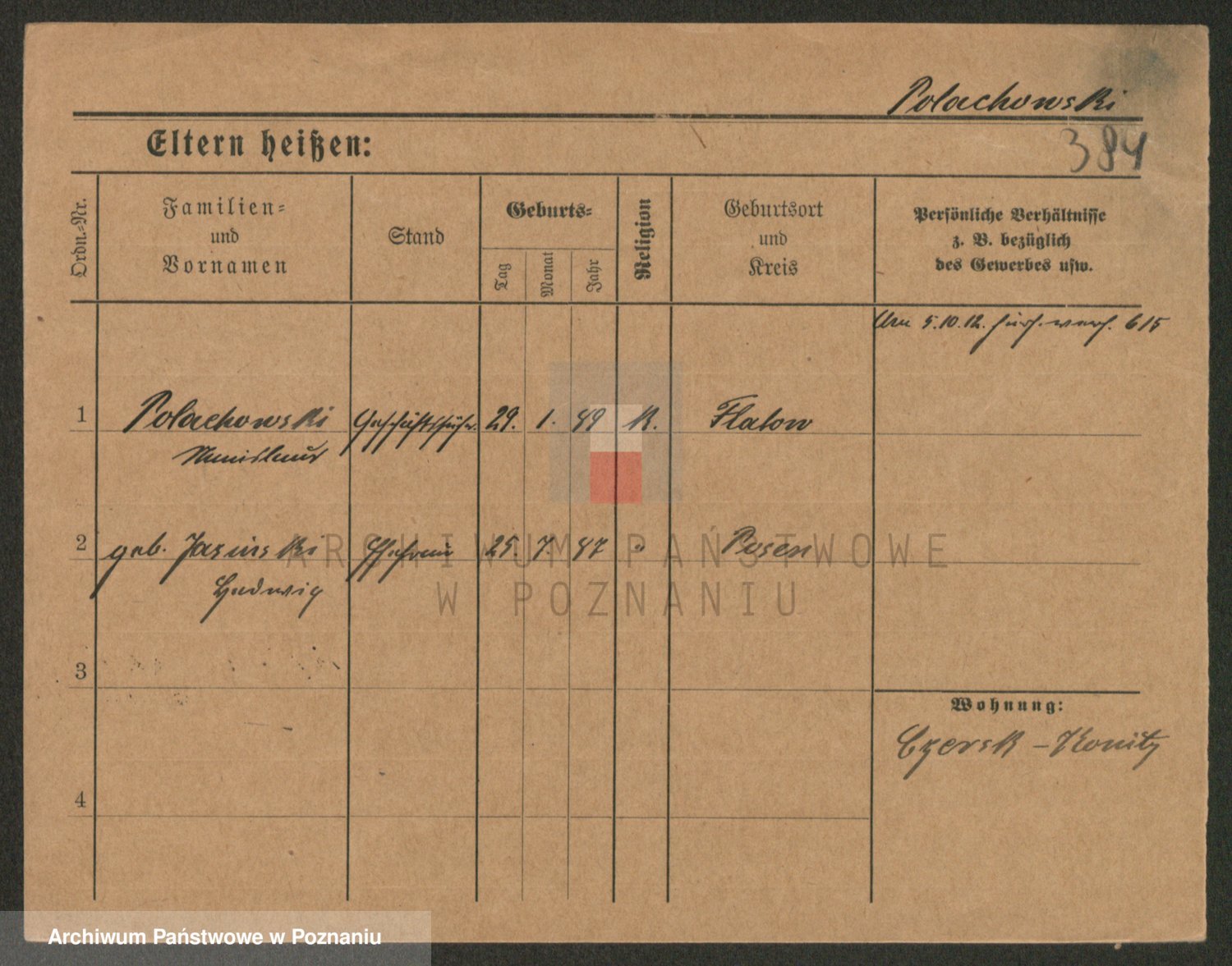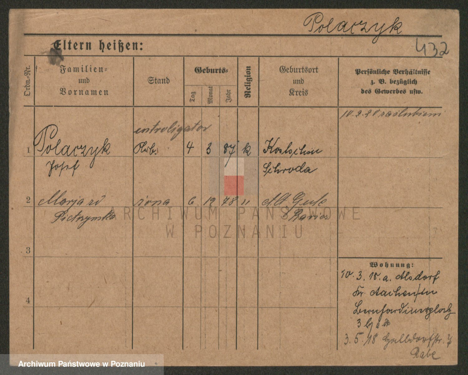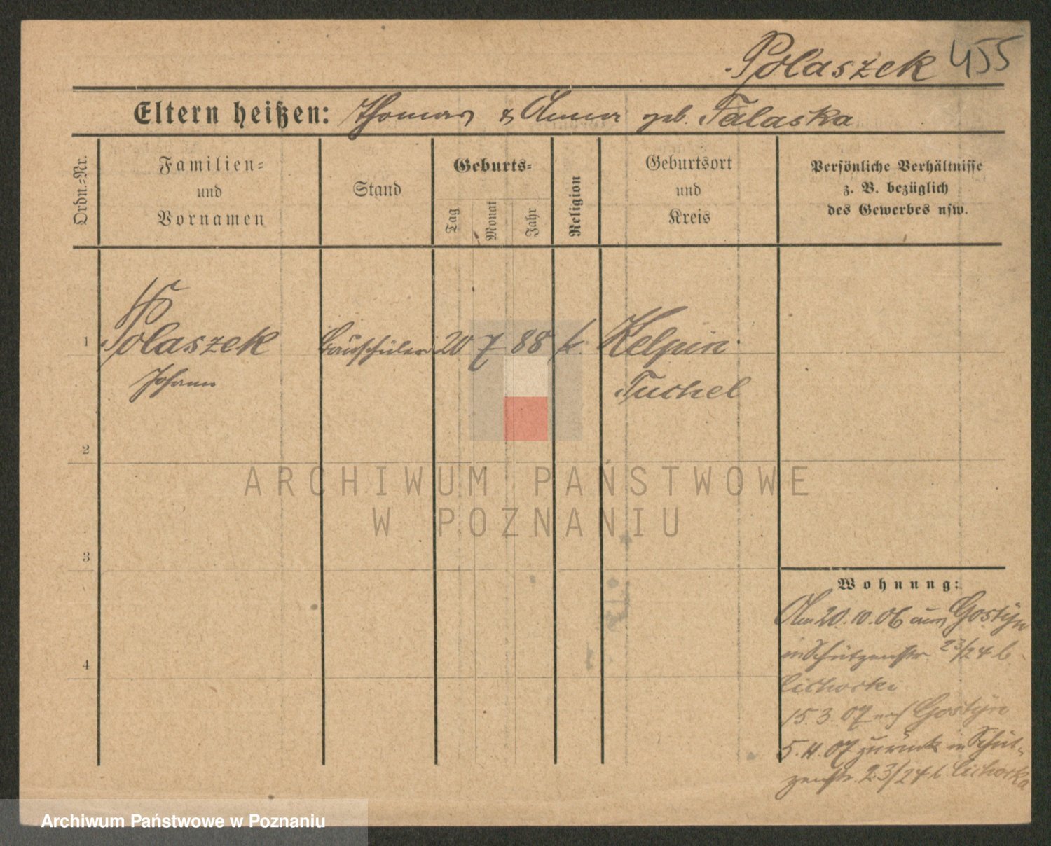 Podgląd karty osobowej dostępny jest po kliknięciu na nazwisko lub ikonkę karty. Można dokonywać powiększenia (ikony na górze) lub przechodzić między kolejnymi skanami (strzałki po bokach).