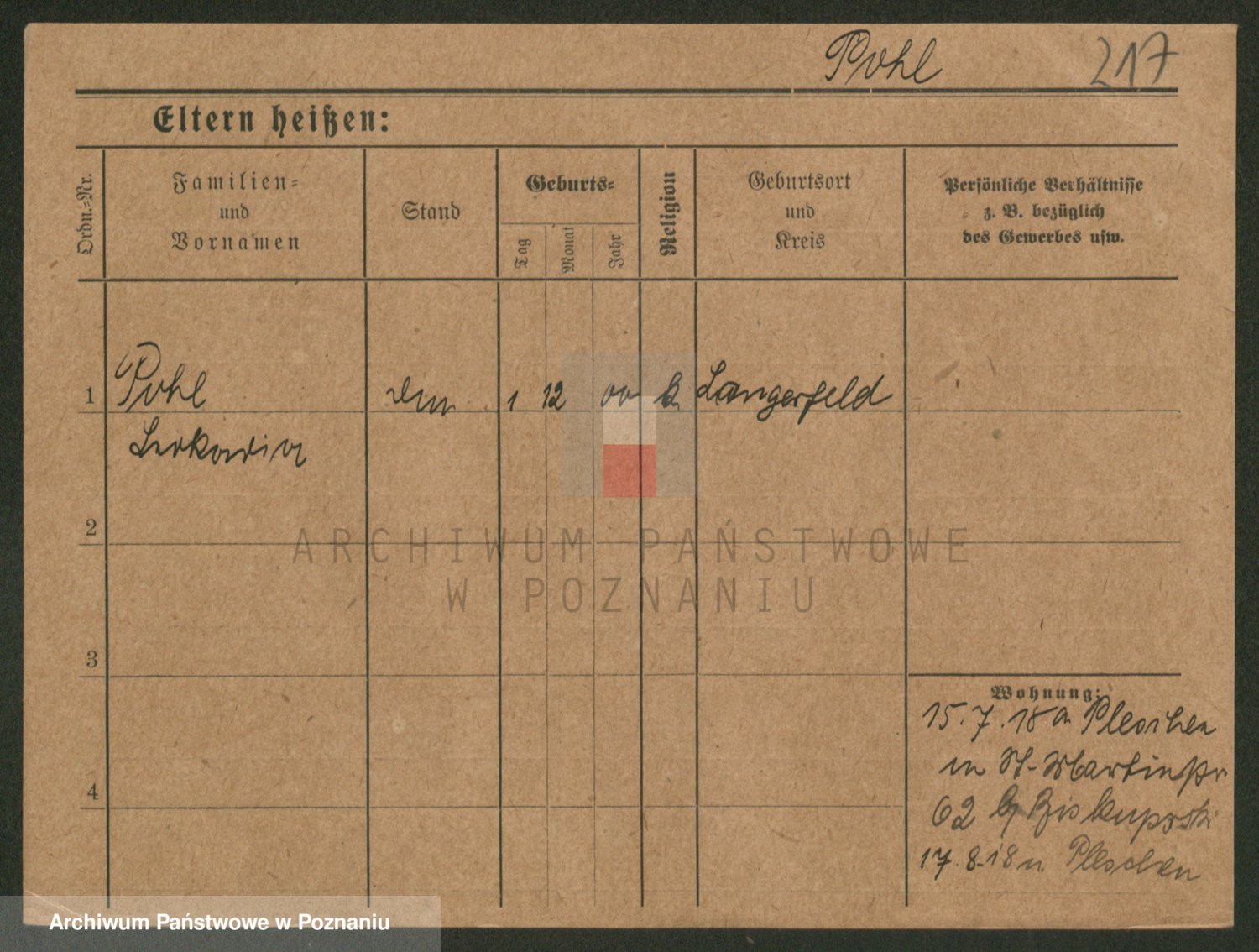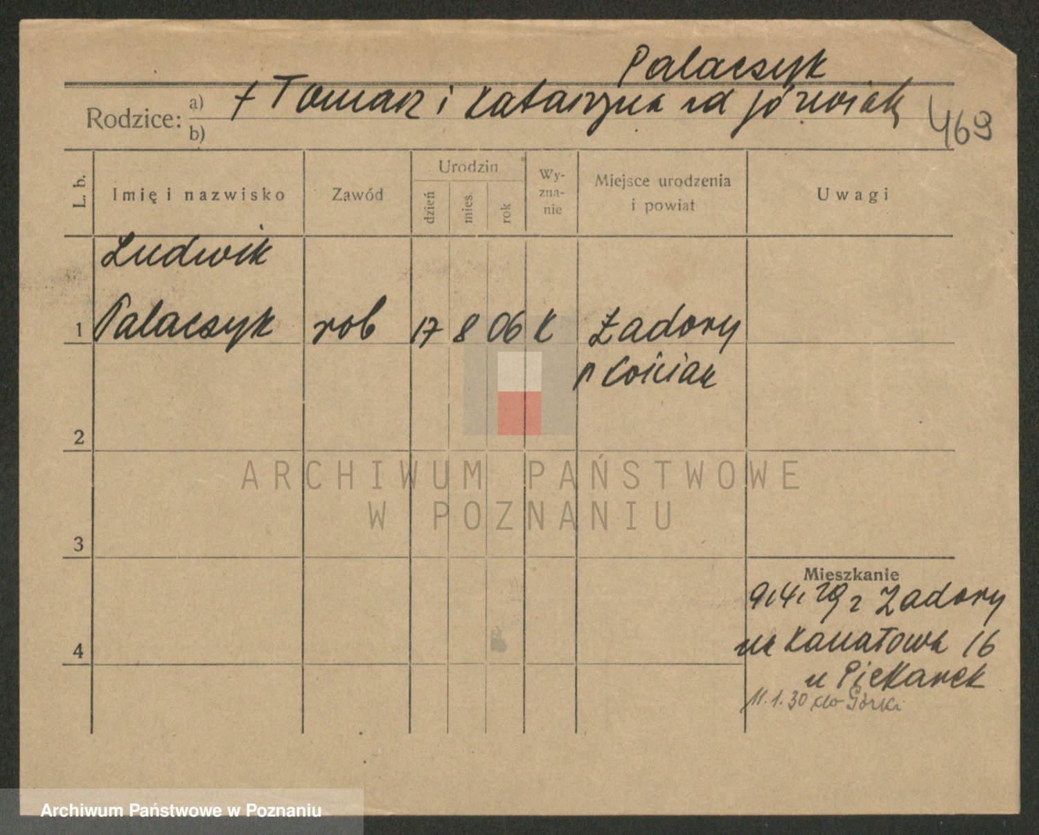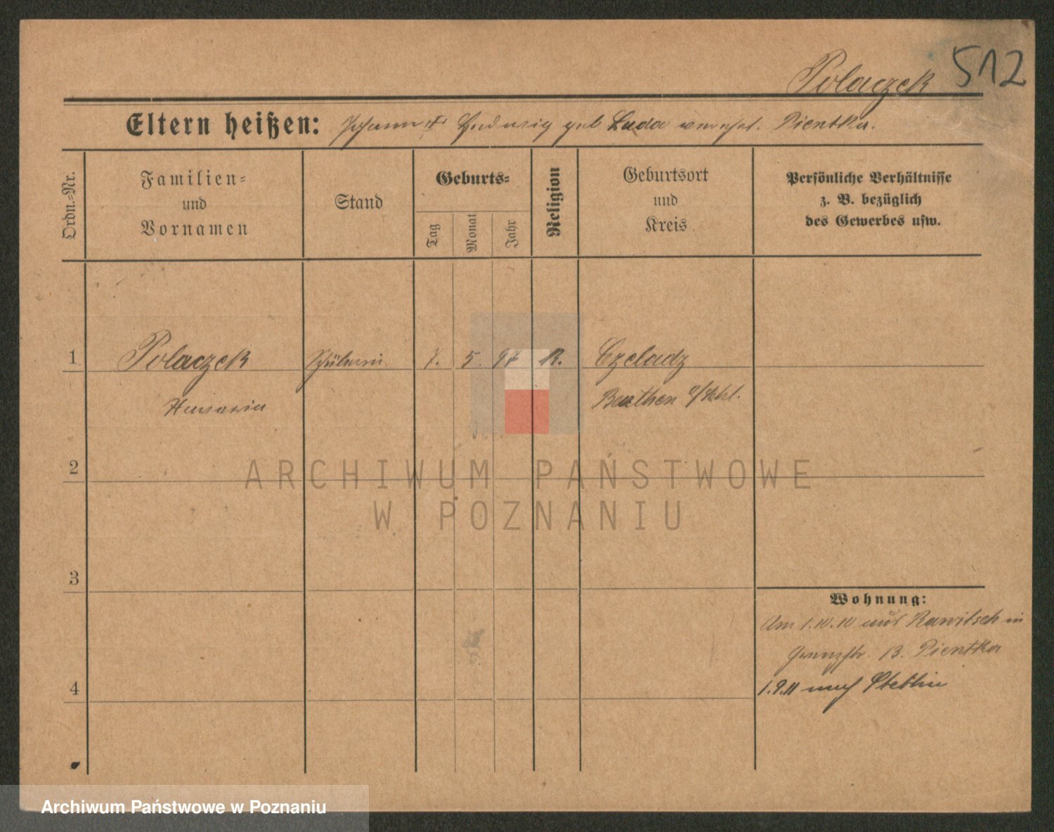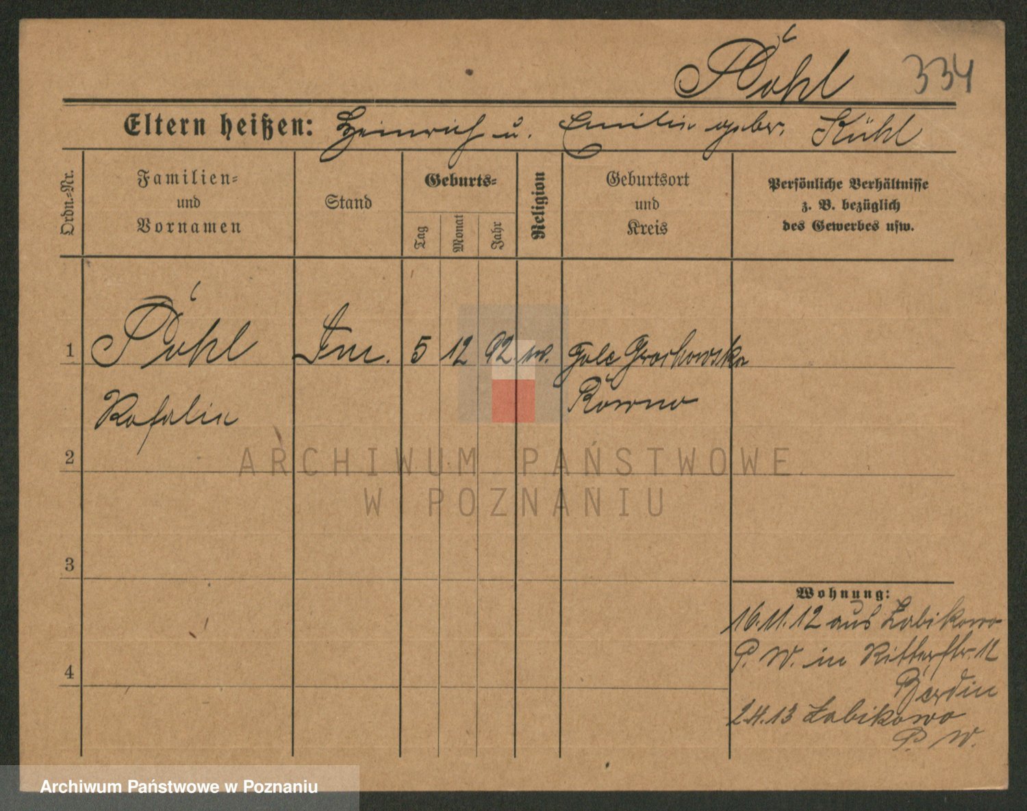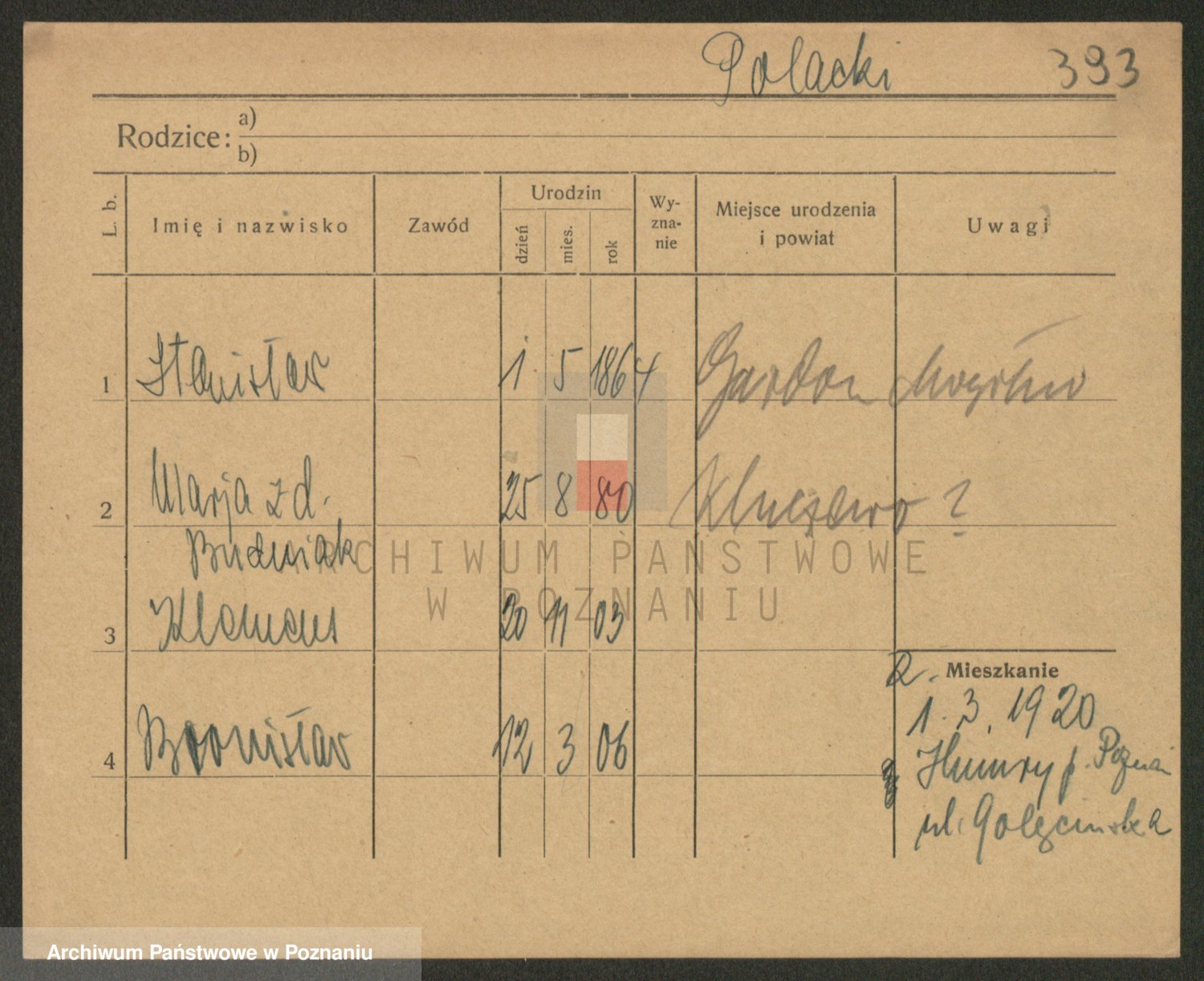 Podgląd karty osobowej dostępny jest po kliknięciu na nazwisko lub ikonkę karty. Można dokonywać powiększenia (ikony na górze) lub przechodzić między kolejnymi skanami (strzałki po bokach).