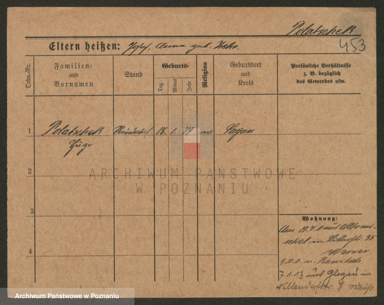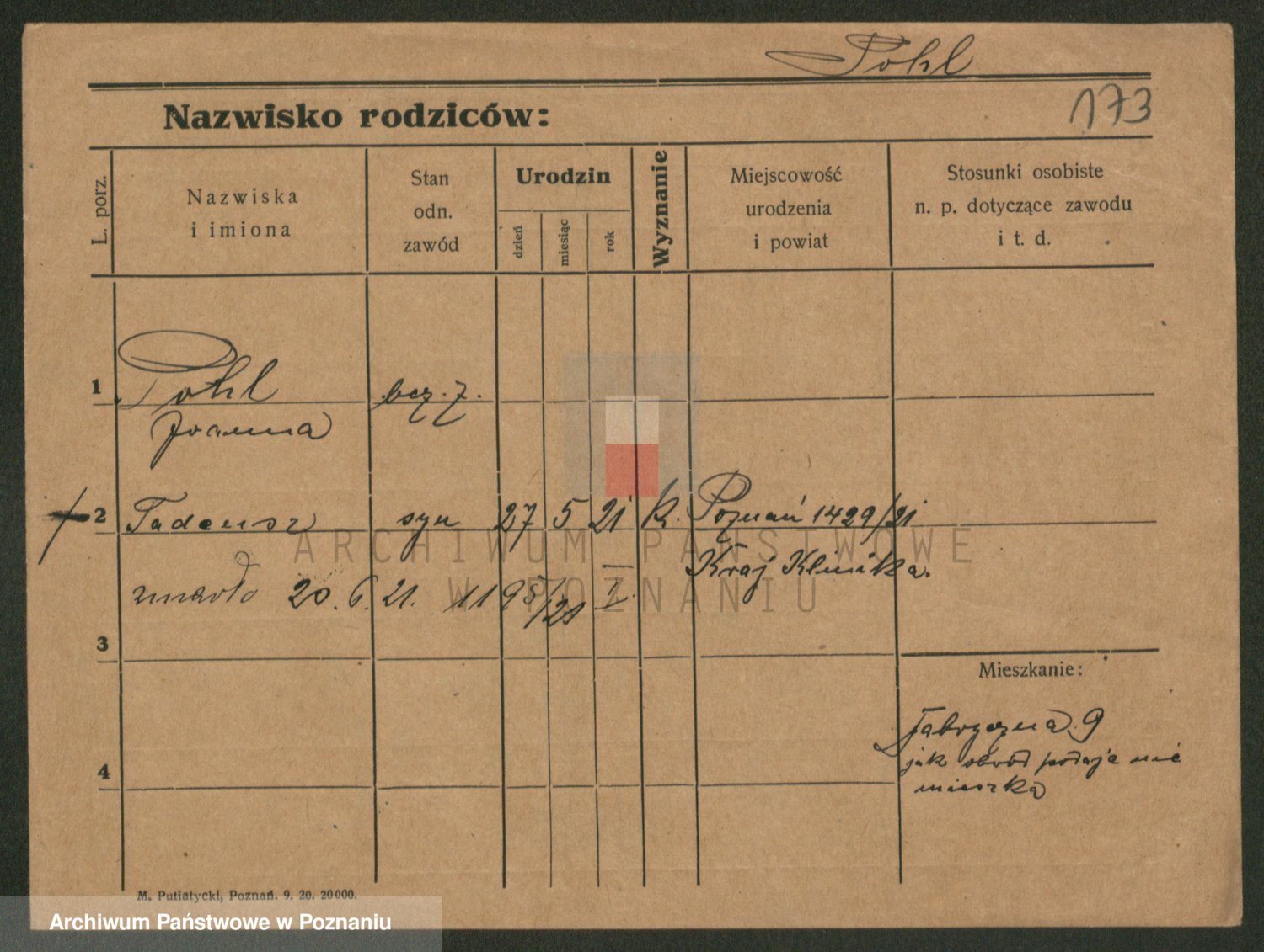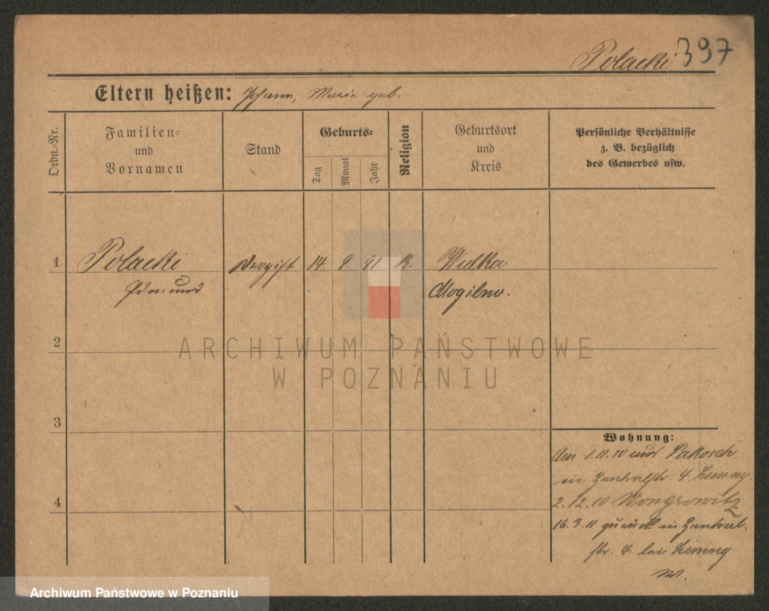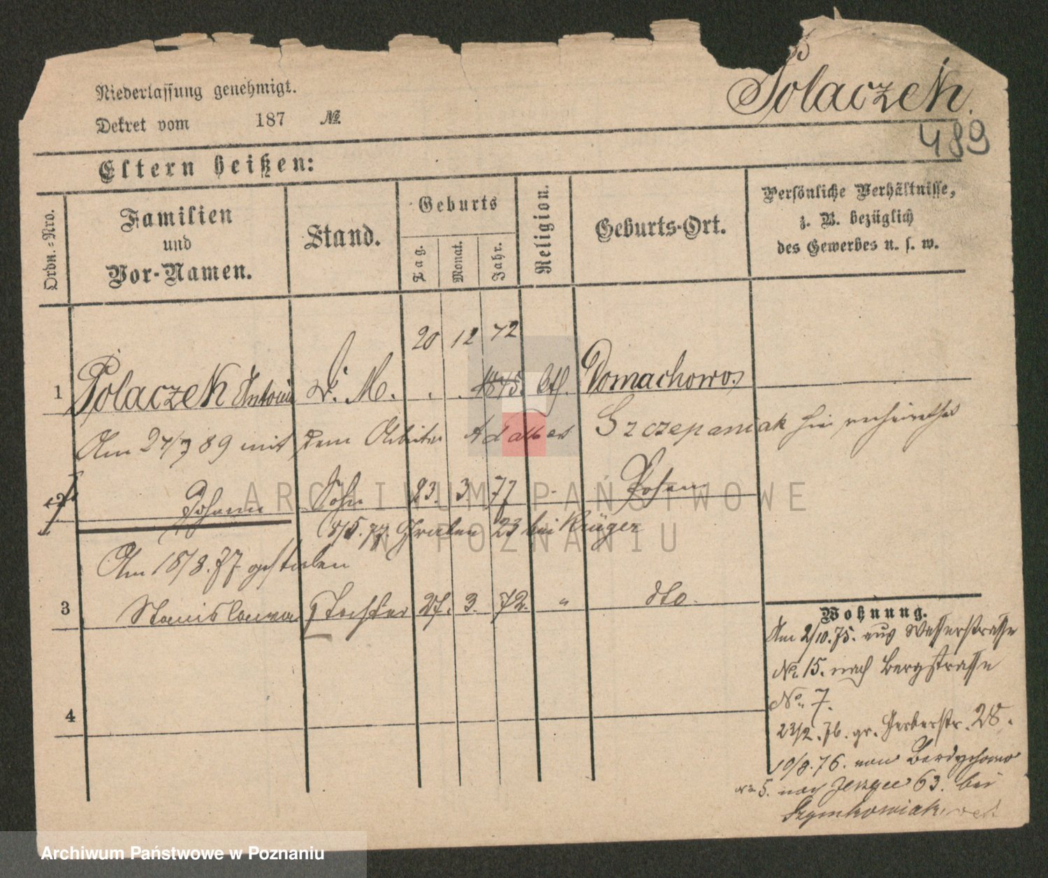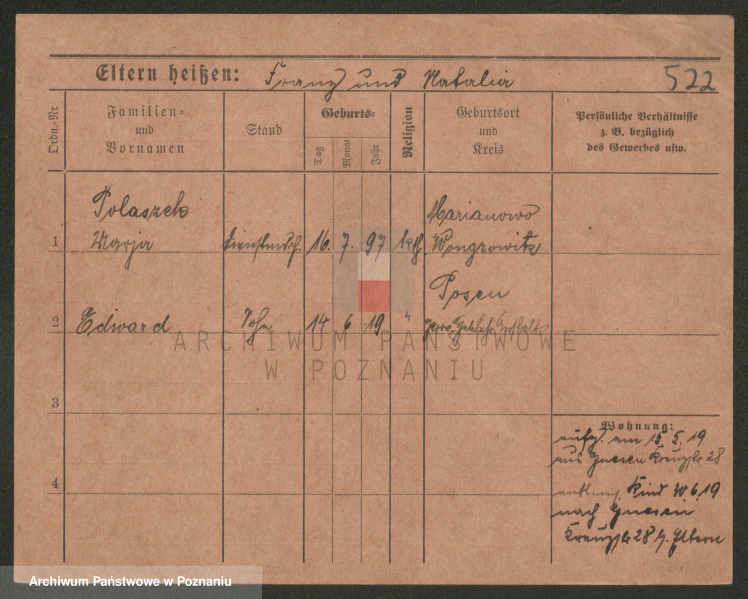 Podgląd karty osobowej dostępny jest po kliknięciu na nazwisko lub ikonkę karty. Można dokonywać powiększenia (ikony na górze) lub przechodzić między kolejnymi skanami (strzałki po bokach).