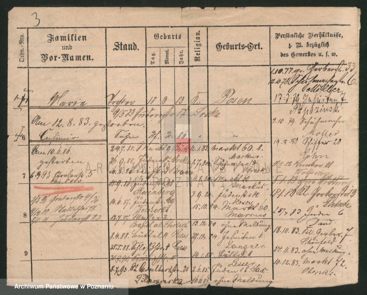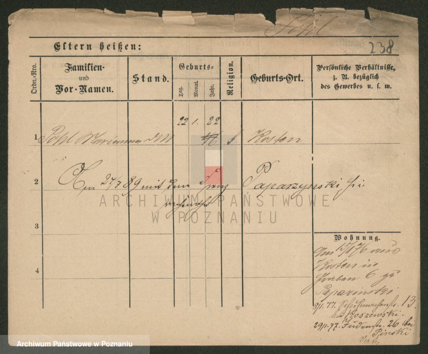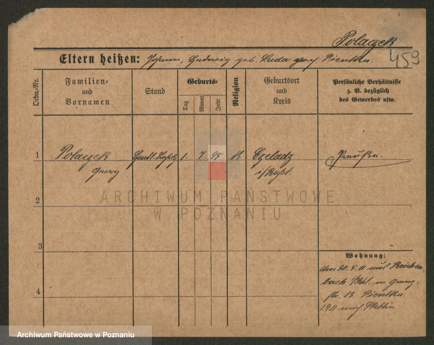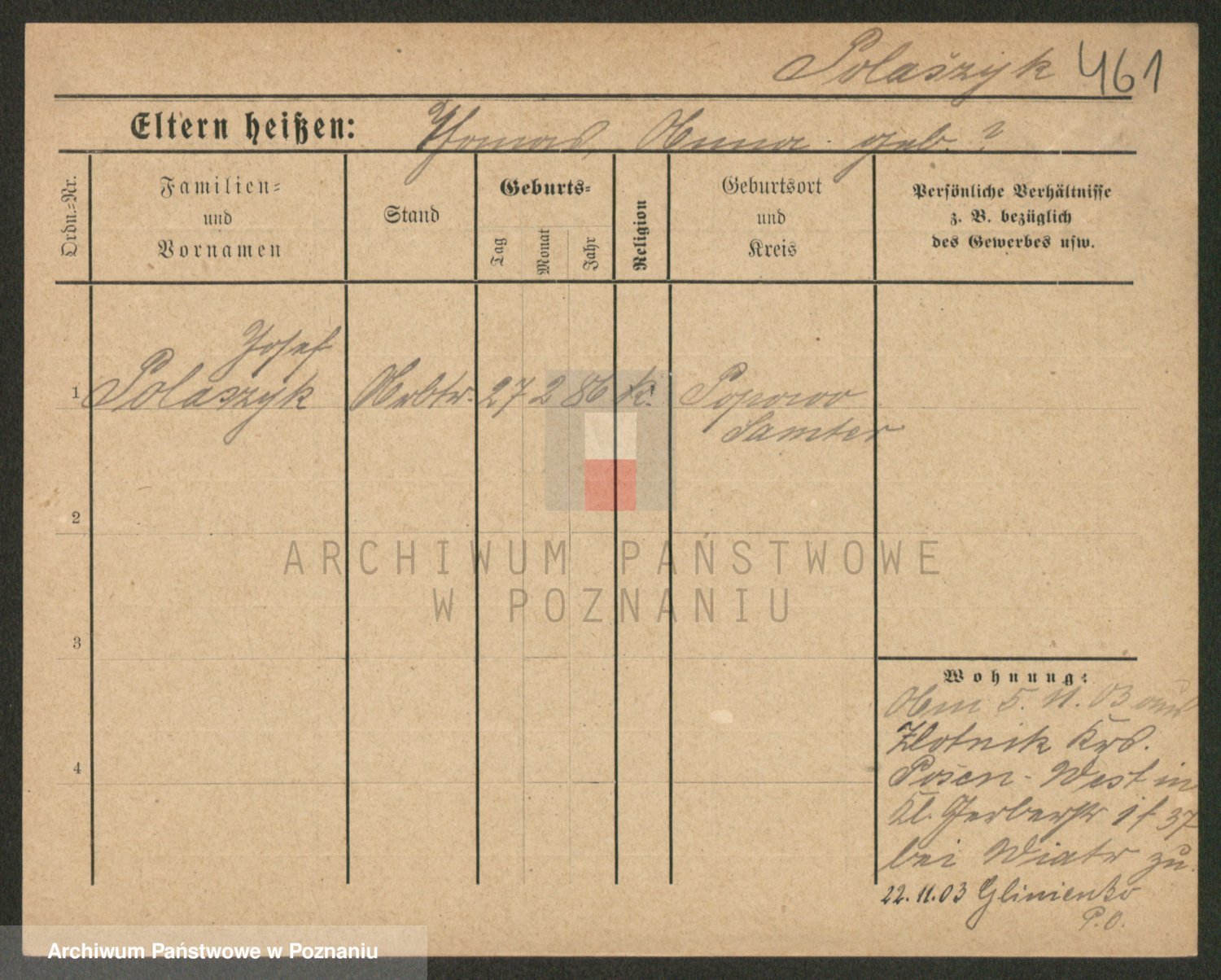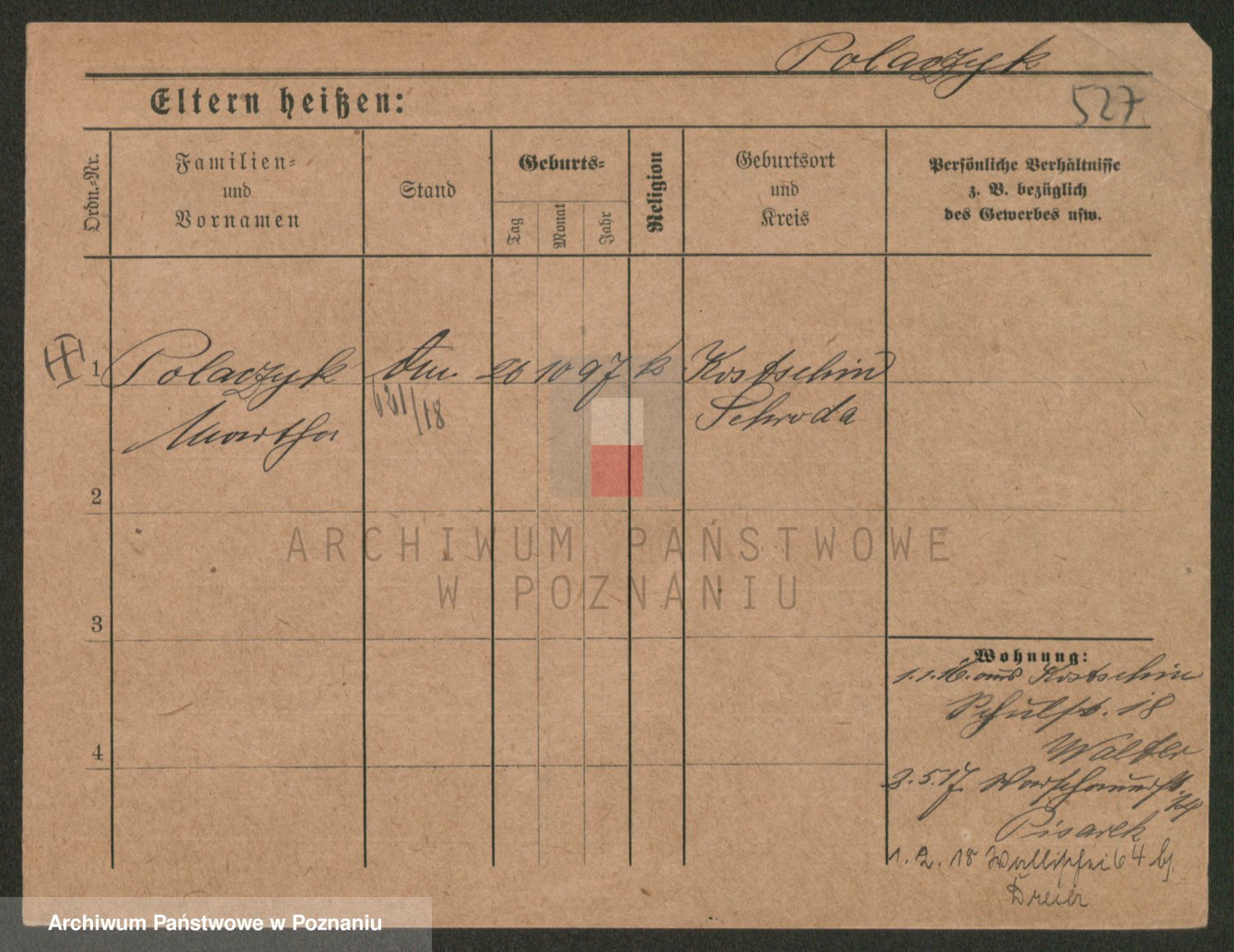 Podgląd karty osobowej dostępny jest po kliknięciu na nazwisko lub ikonkę karty. Można dokonywać powiększenia (ikony na górze) lub przechodzić między kolejnymi skanami (strzałki po bokach).