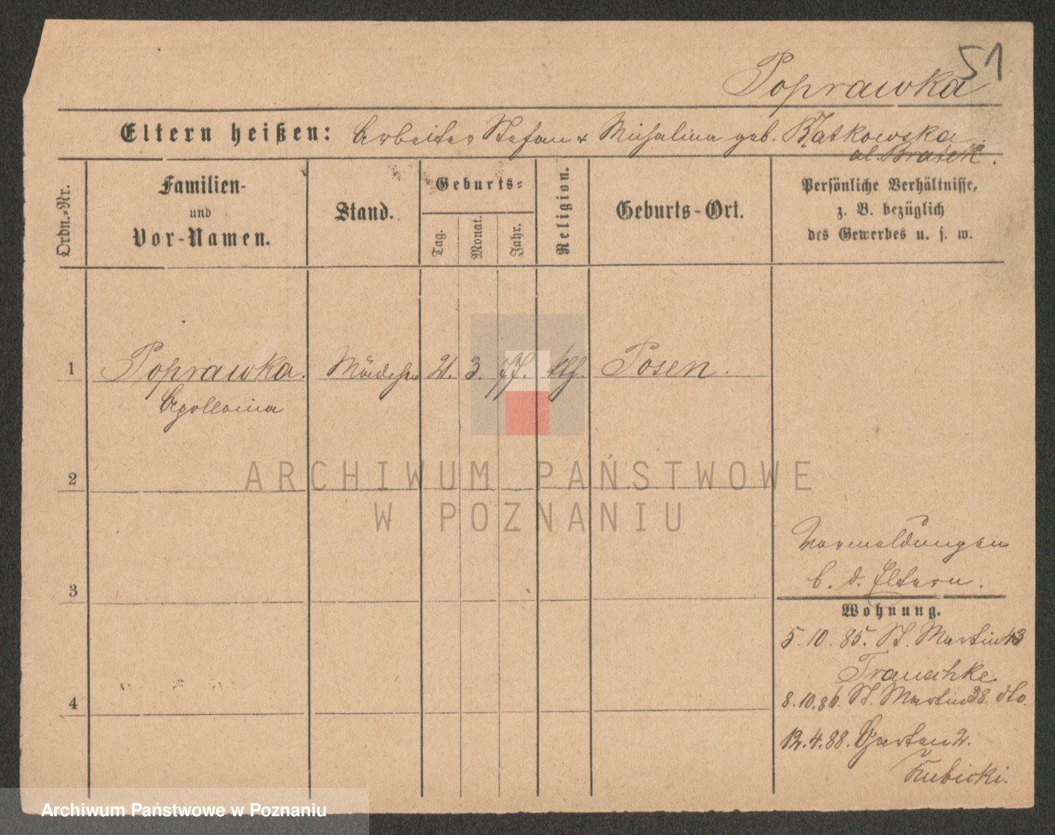 Poprawka z d. Batkowska alias Bratek, Michalina
