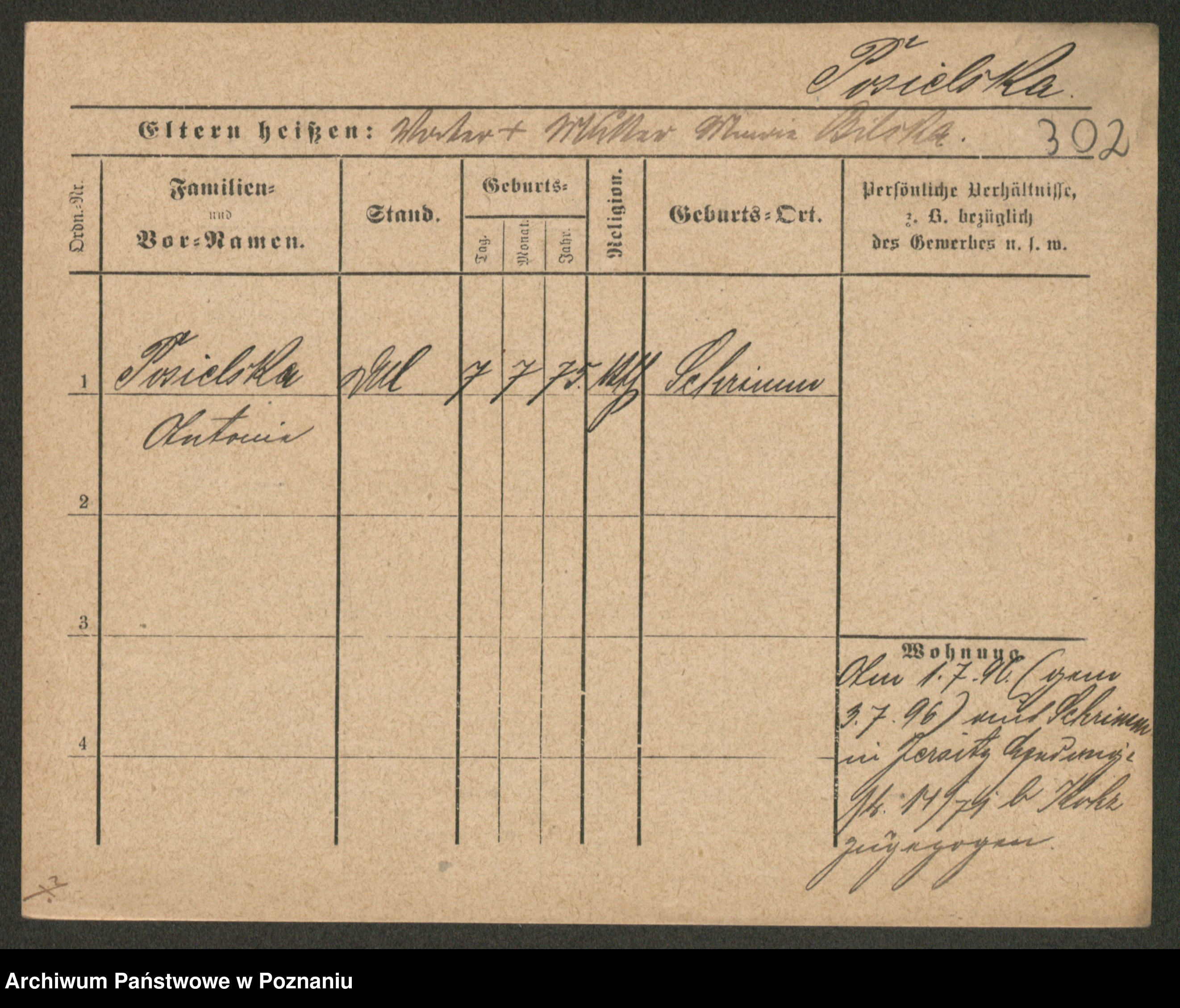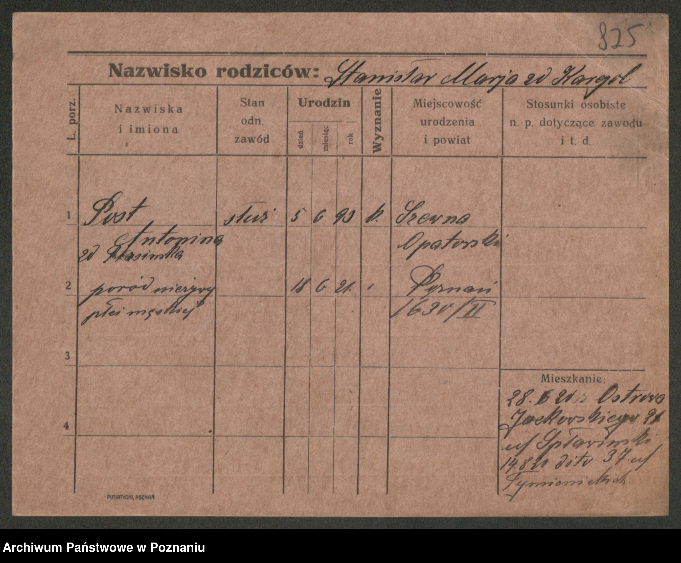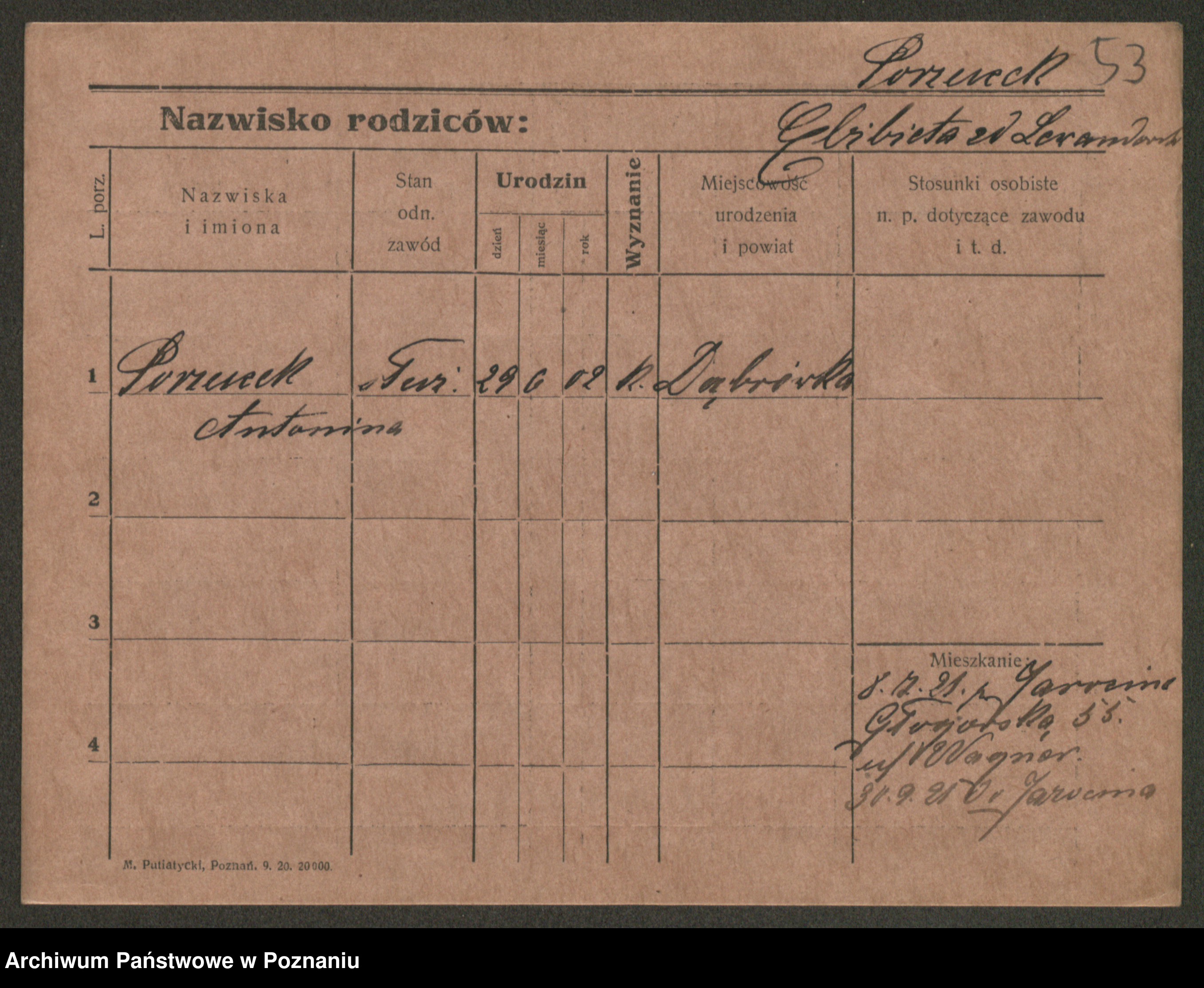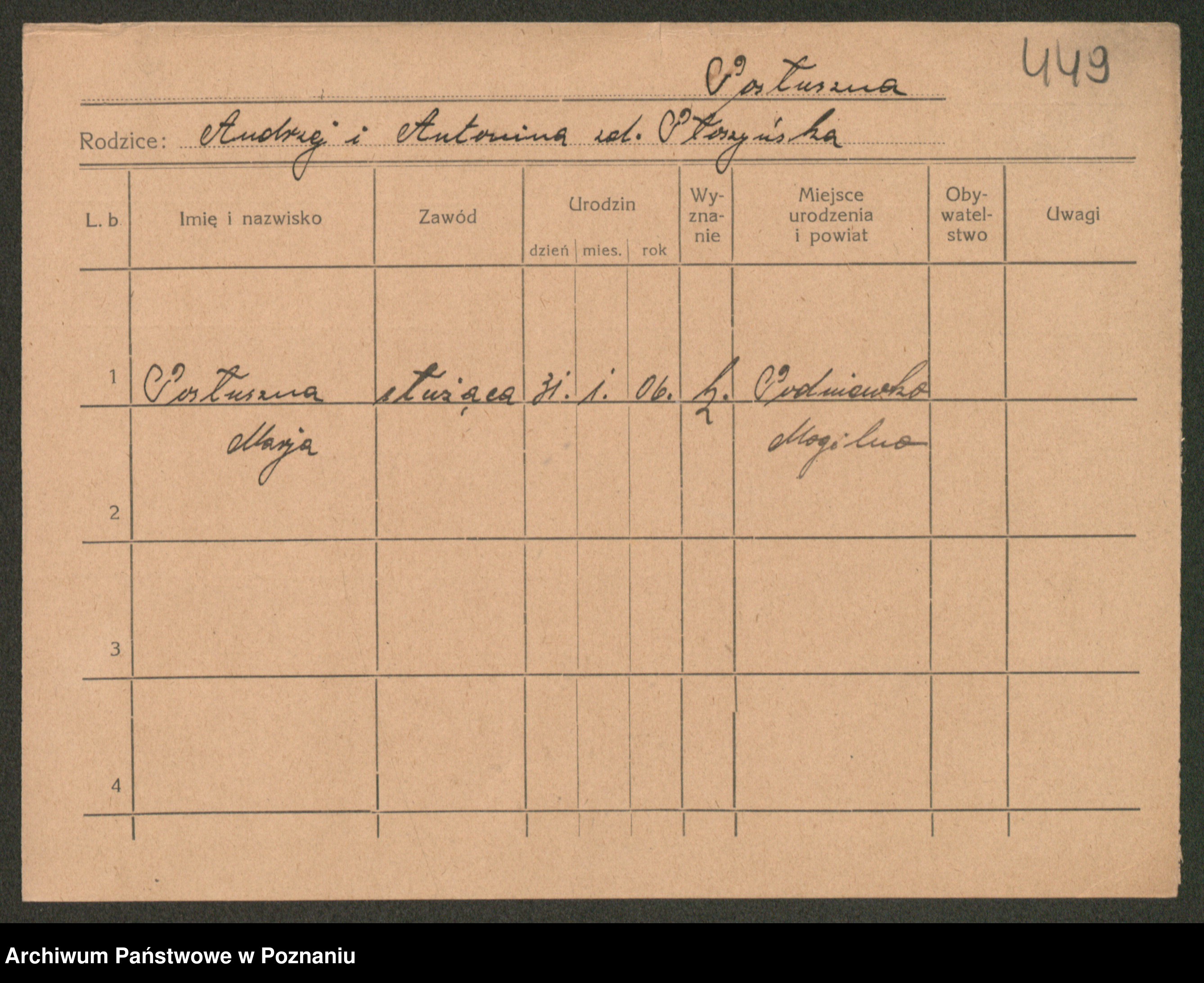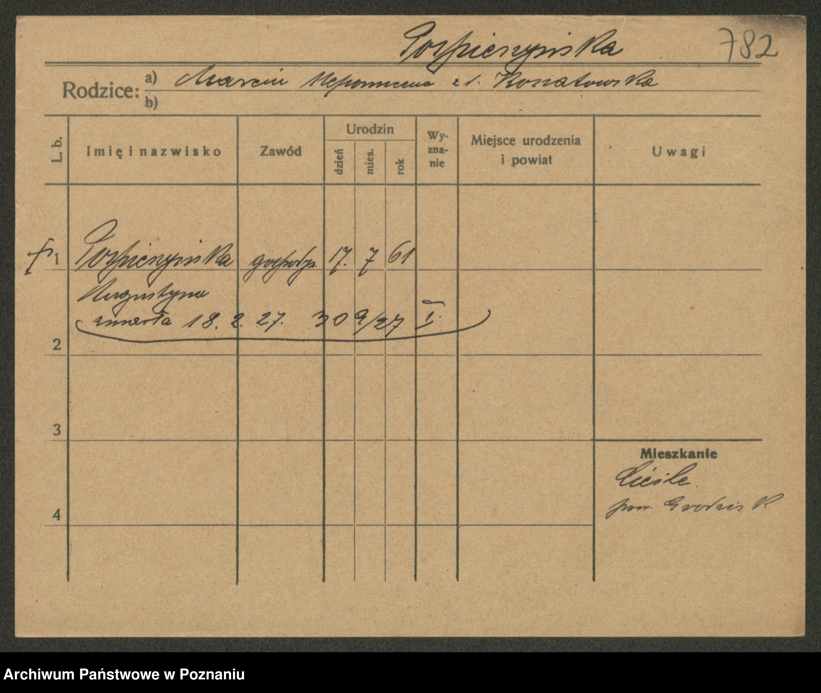 Post z d. Ptasinska, Antonina