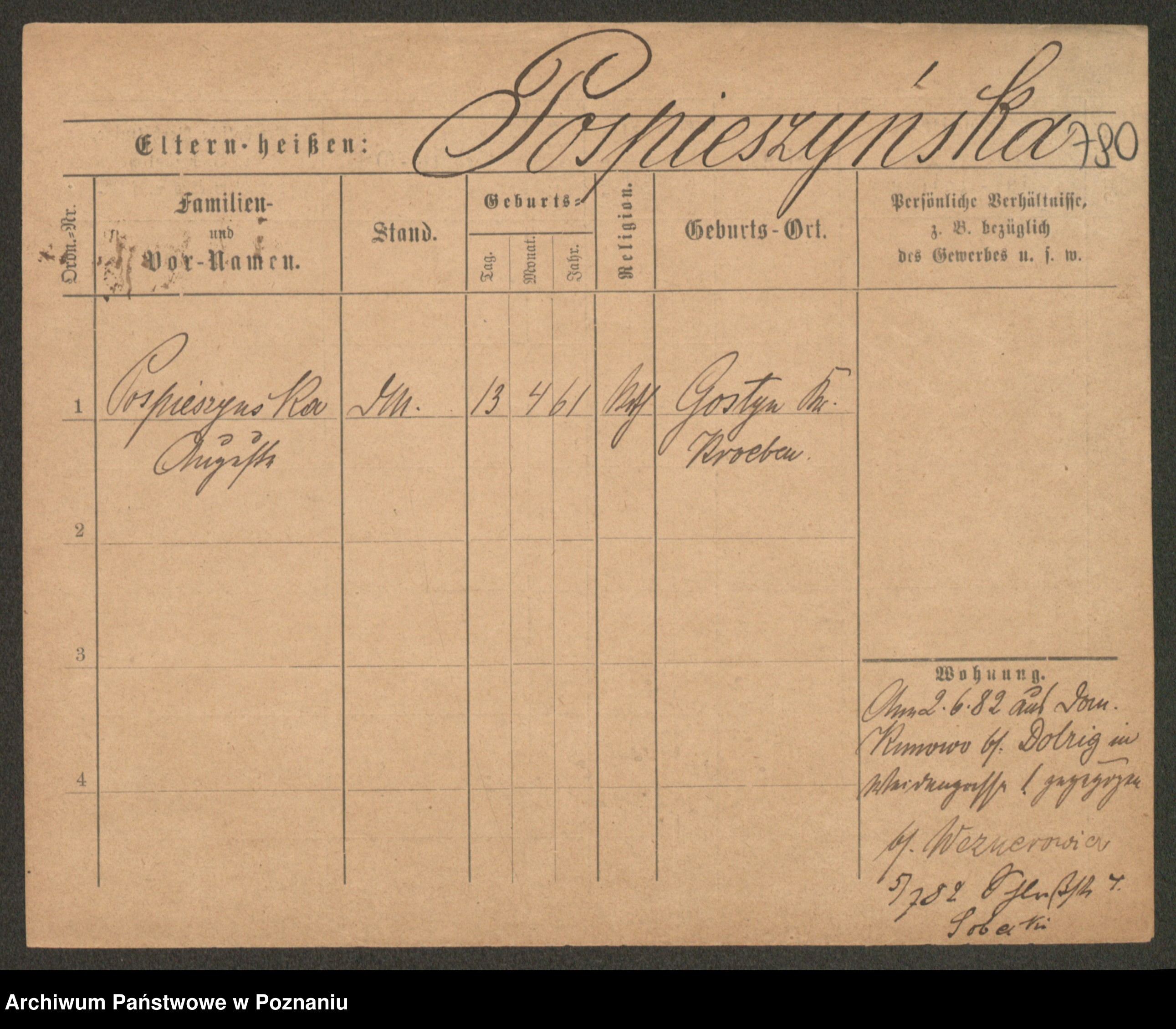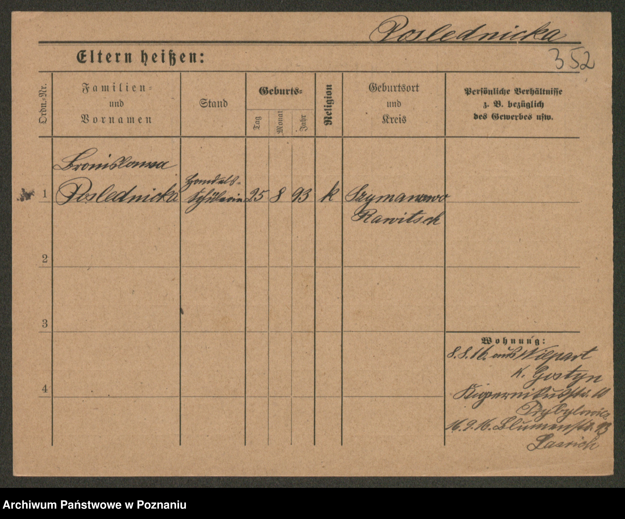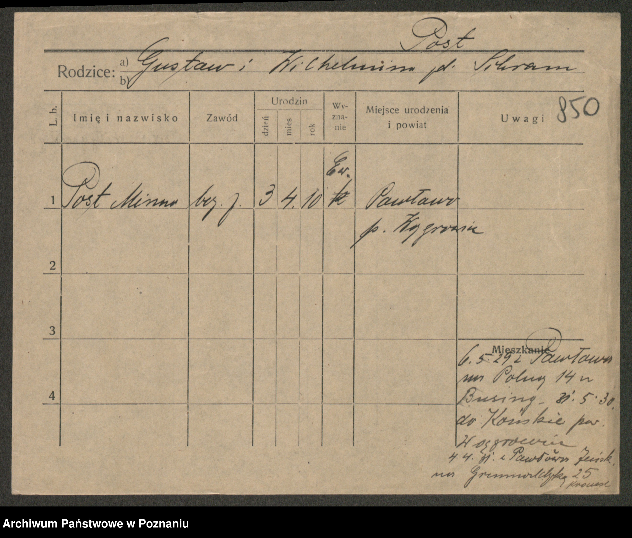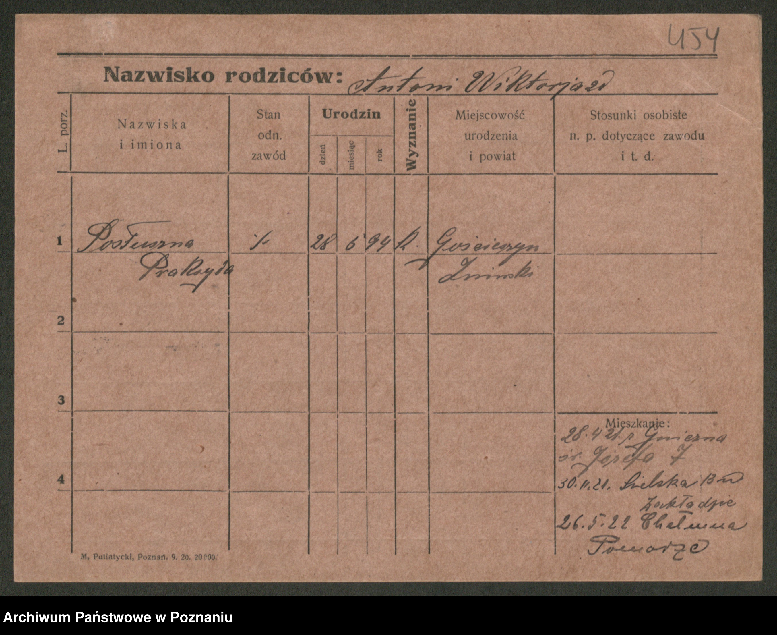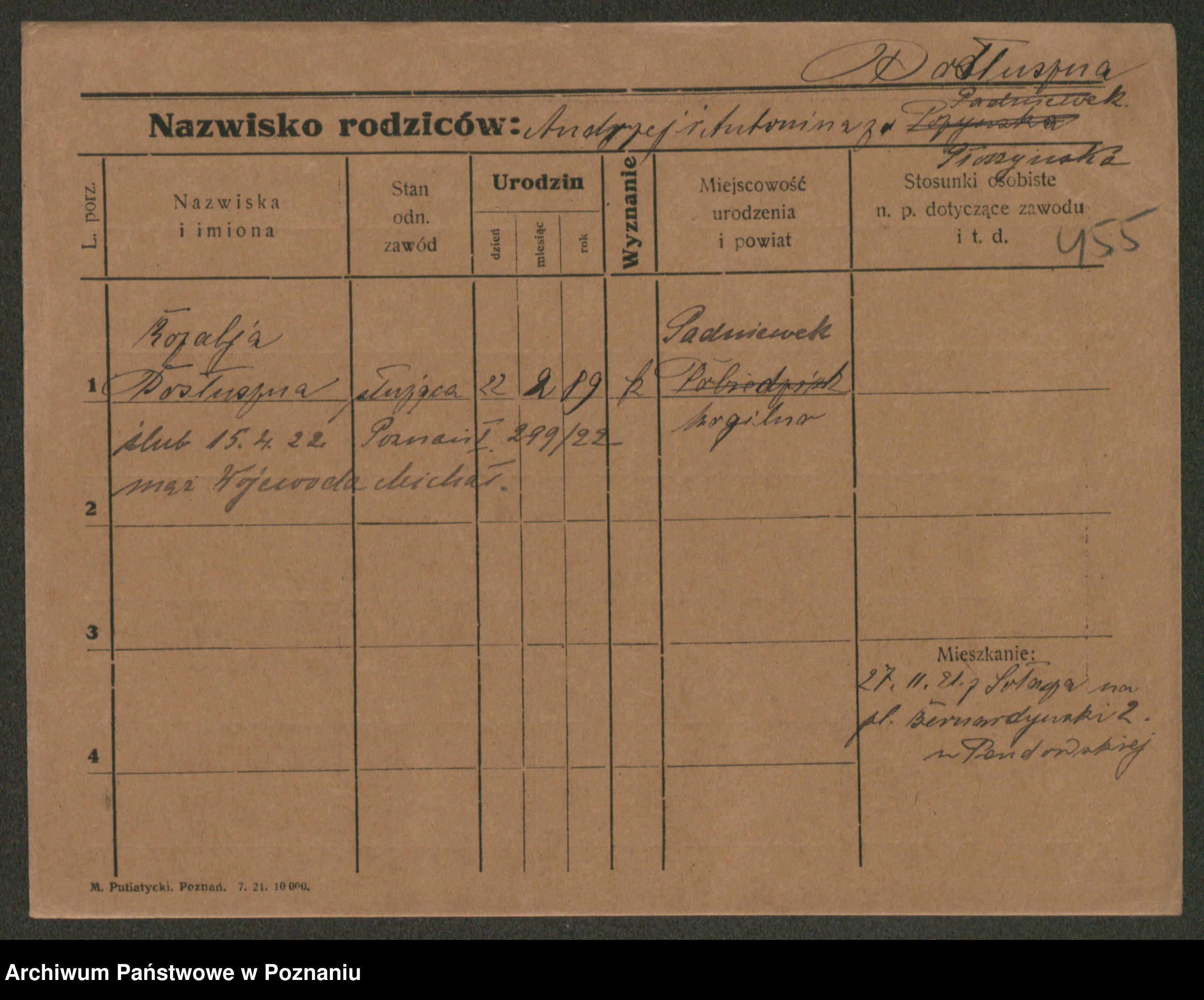 Post z d. Ptasinska, Antonina