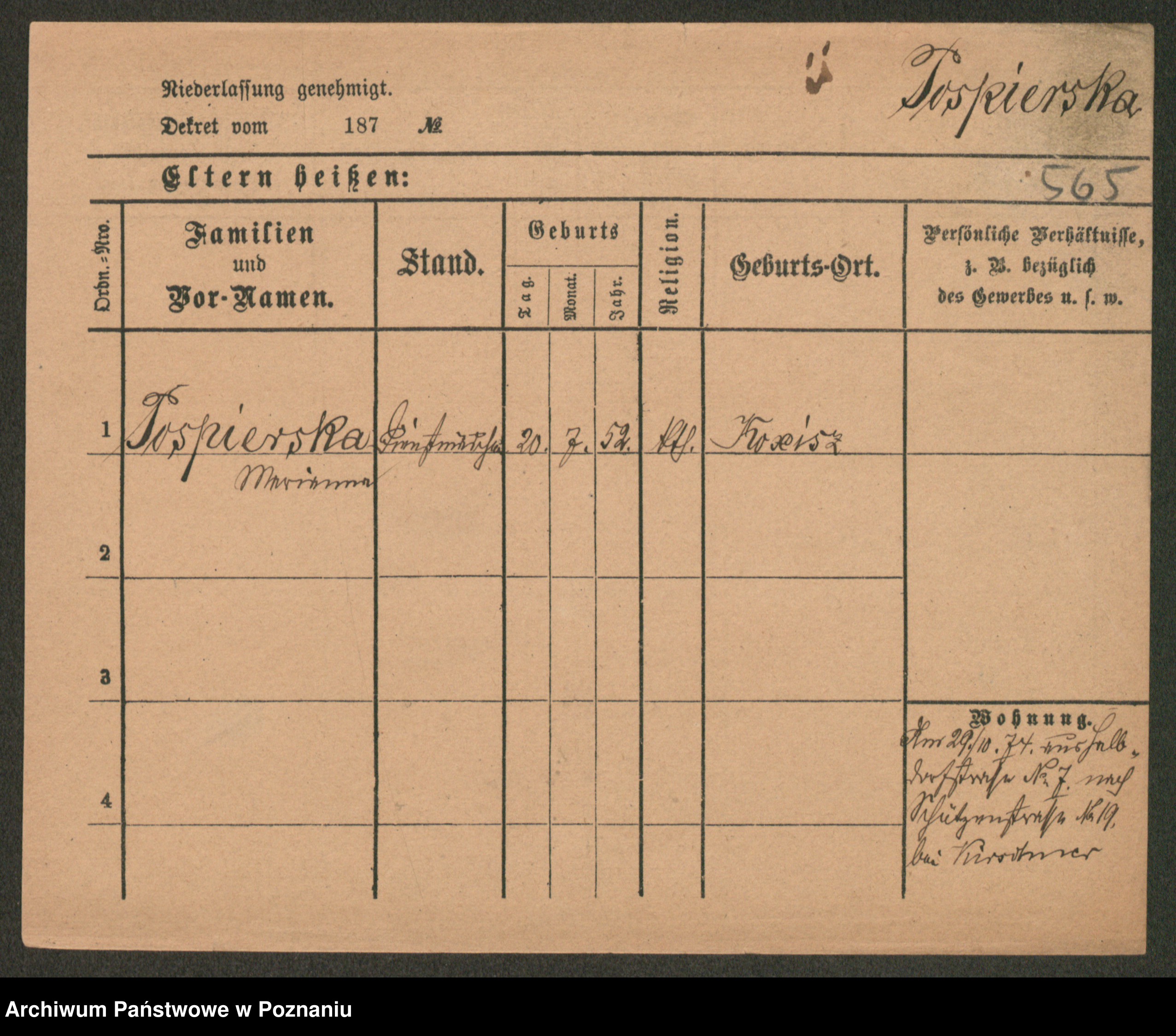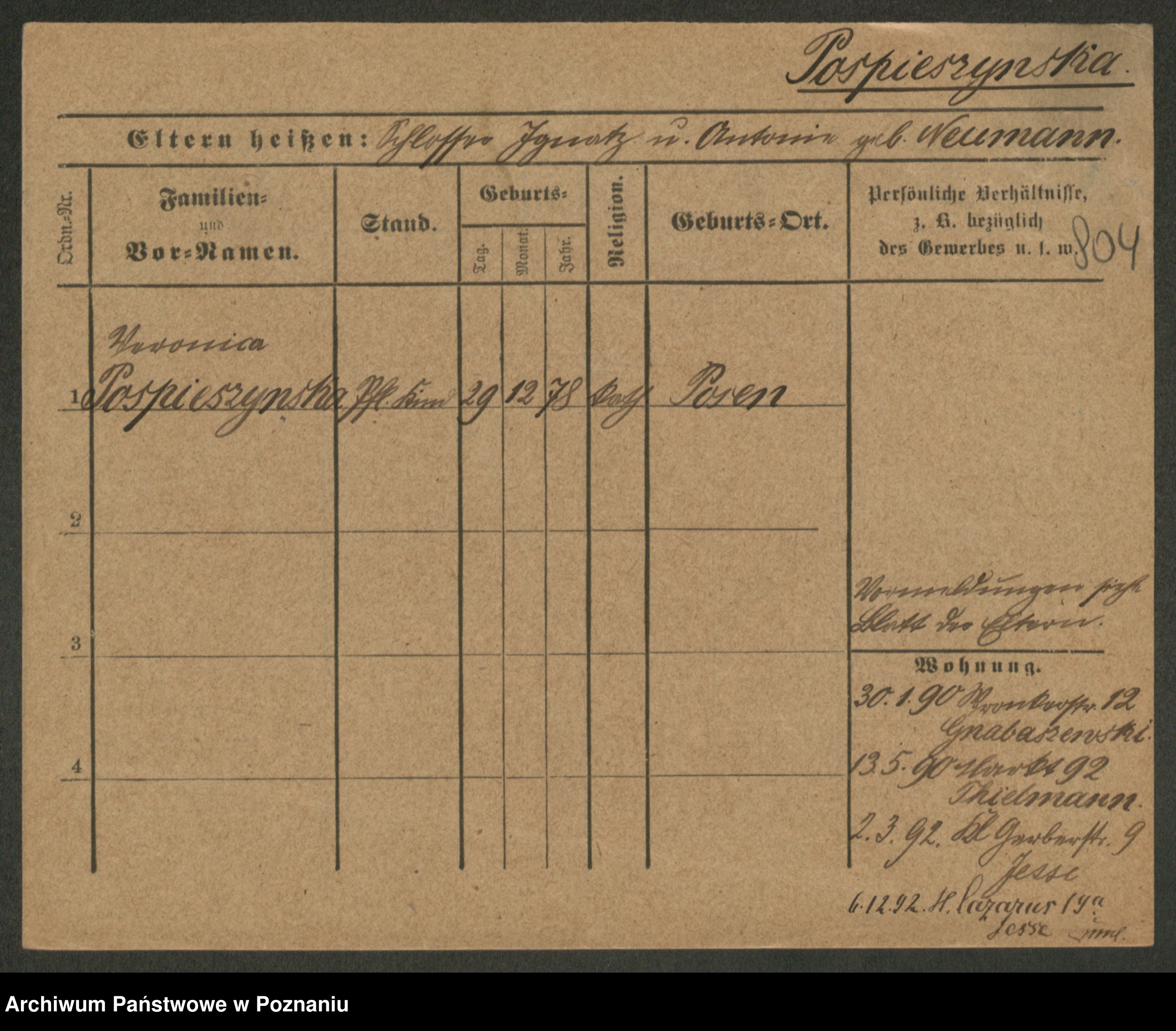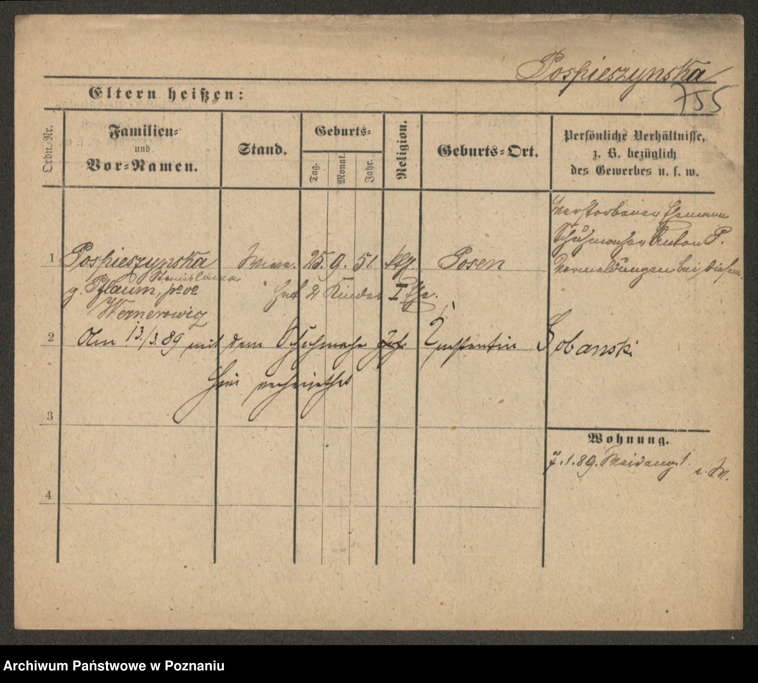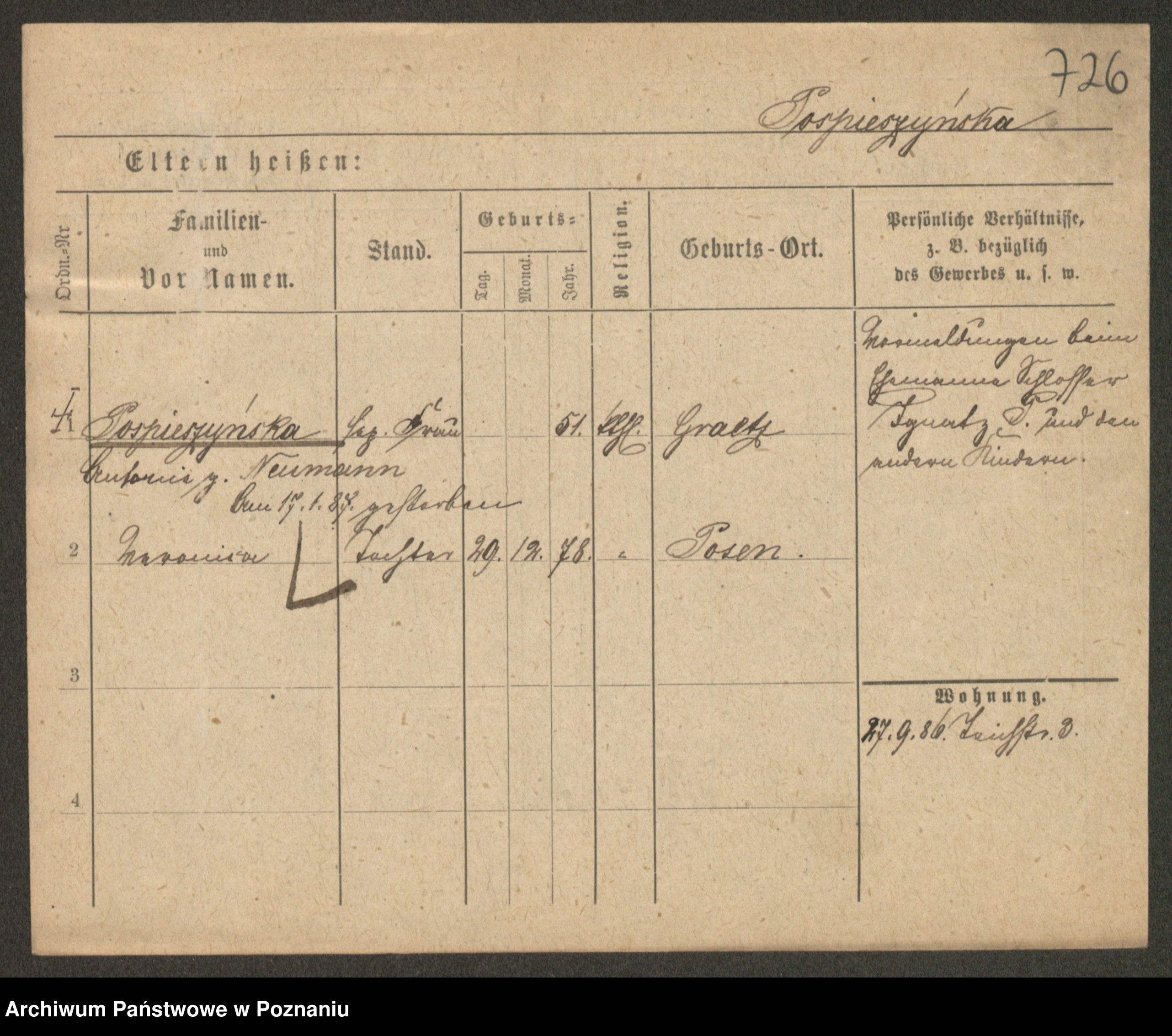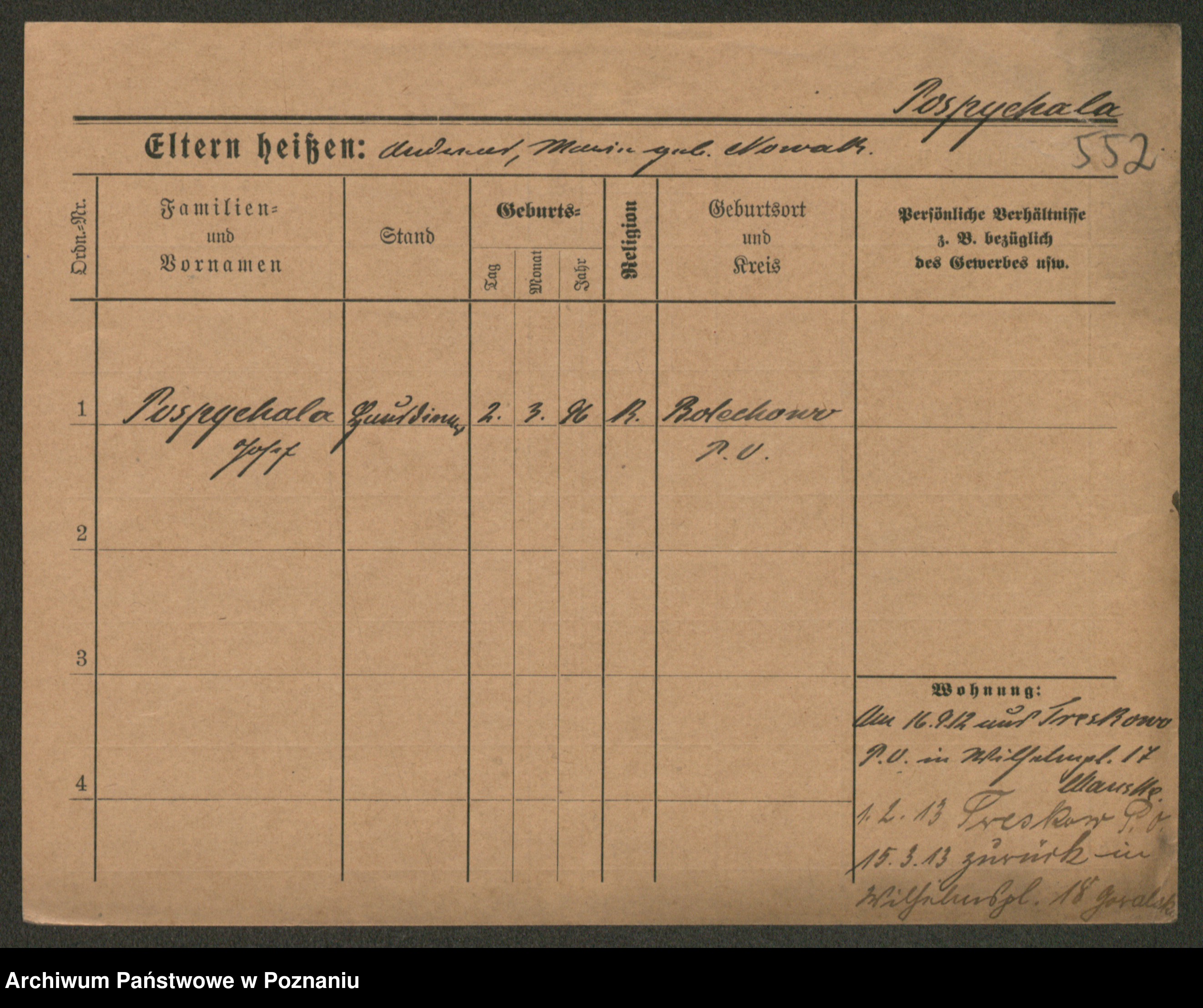 Post z d. Ptasinska, Antonina