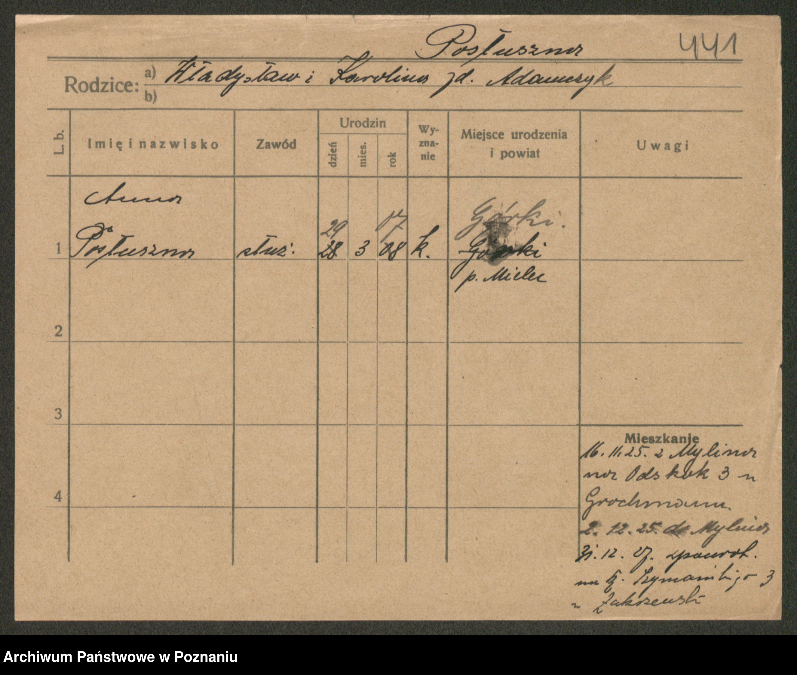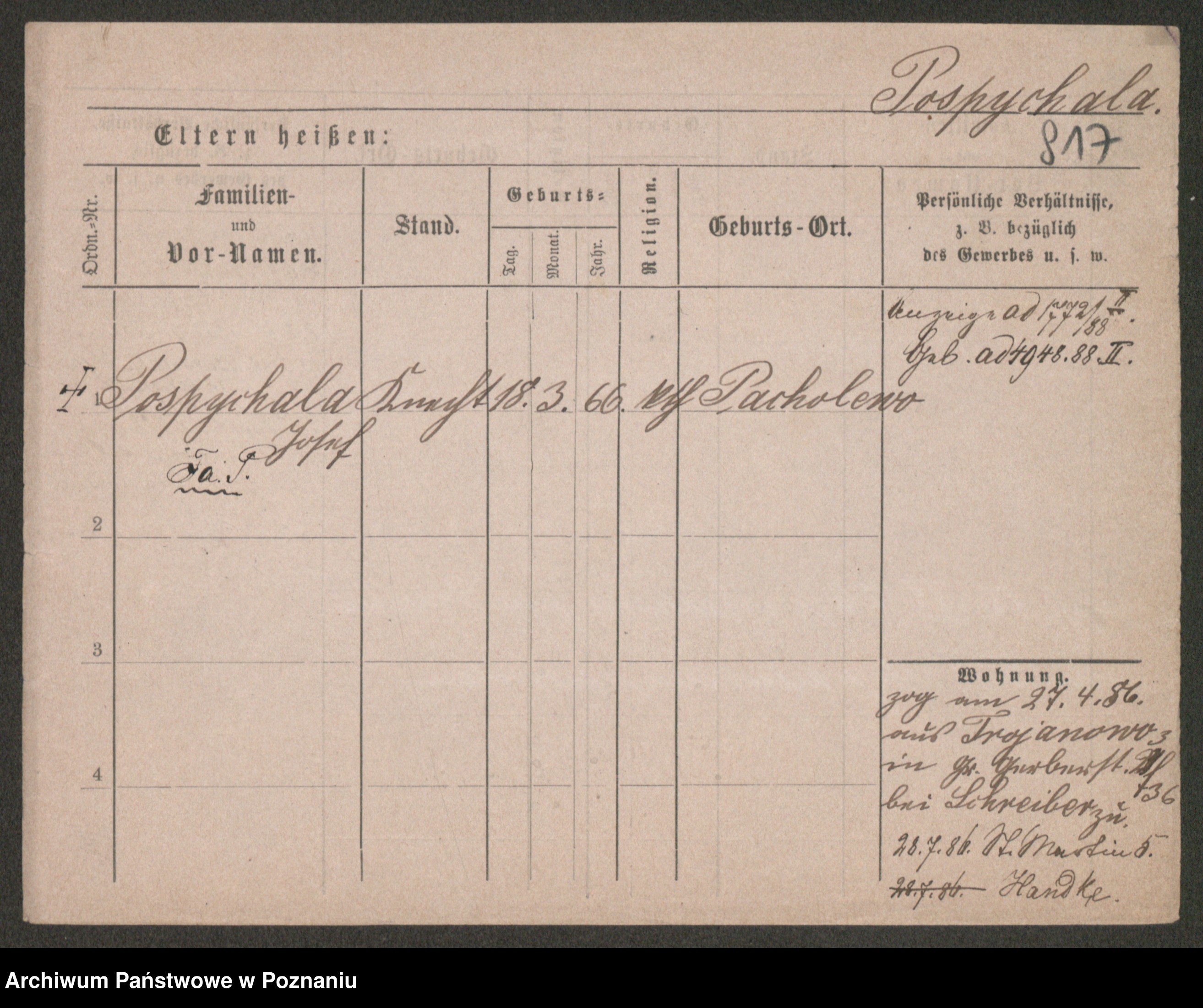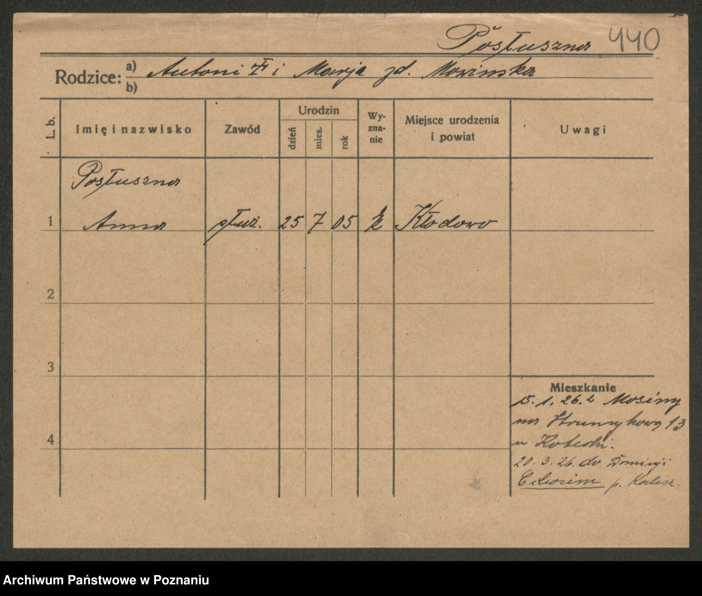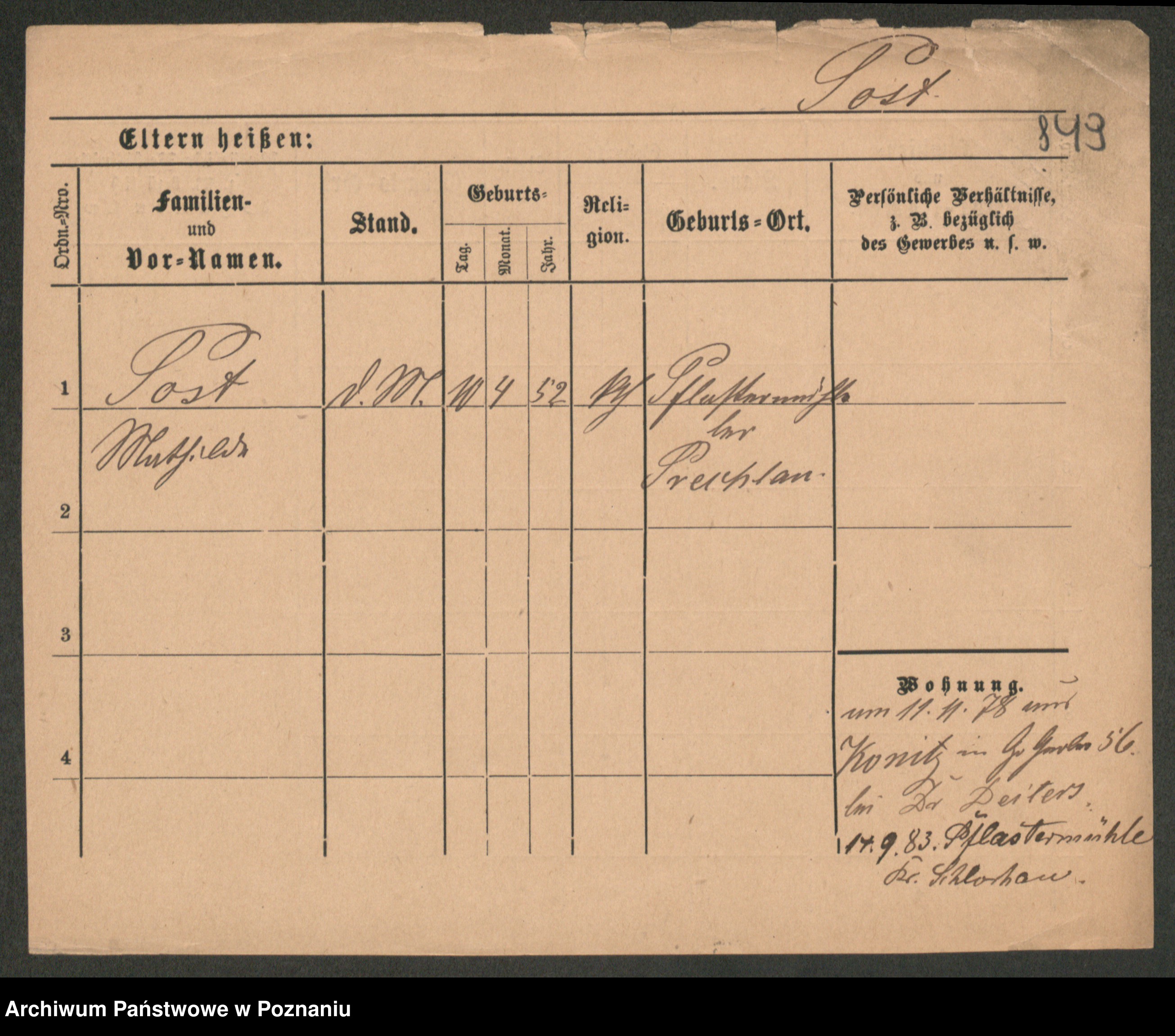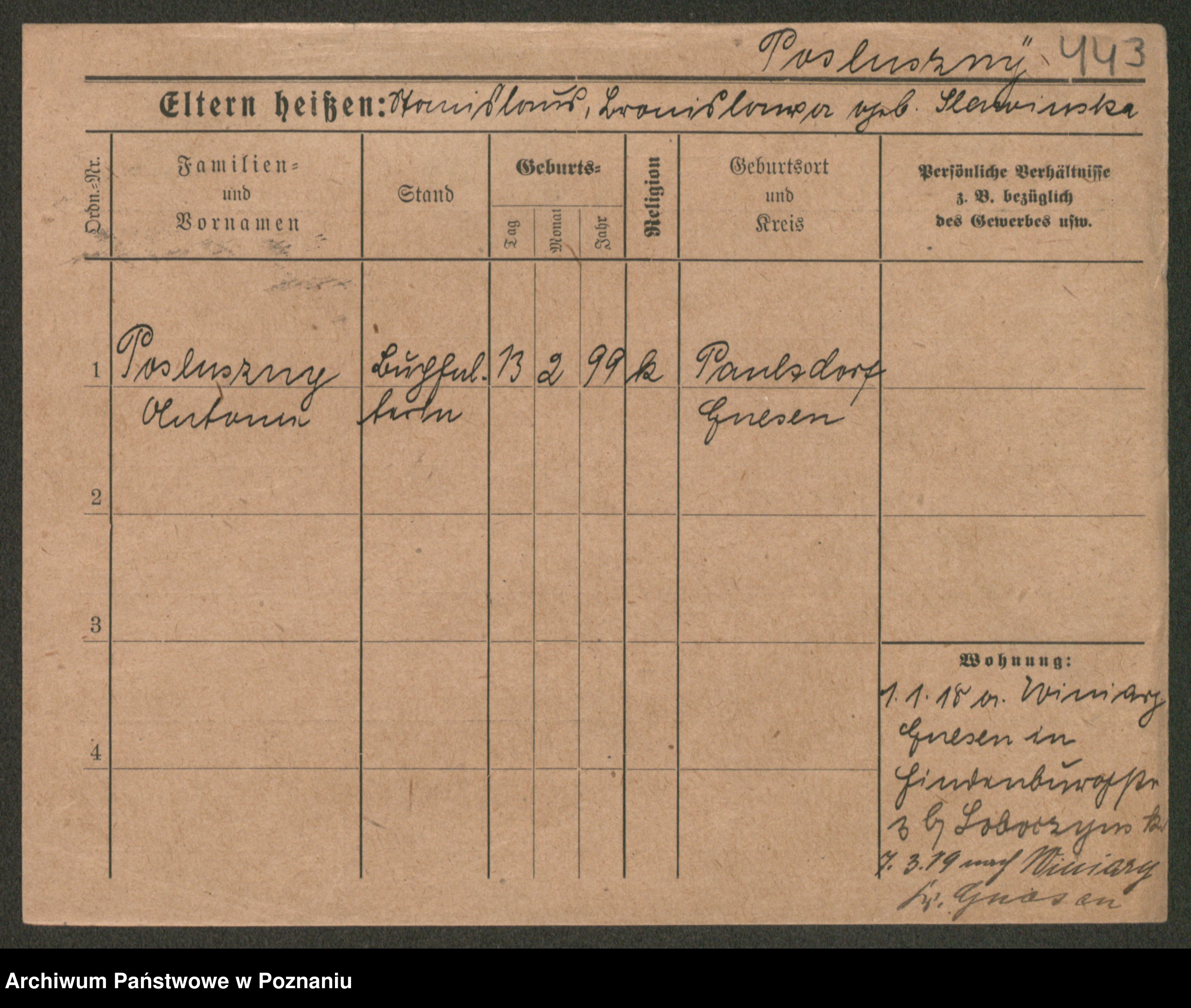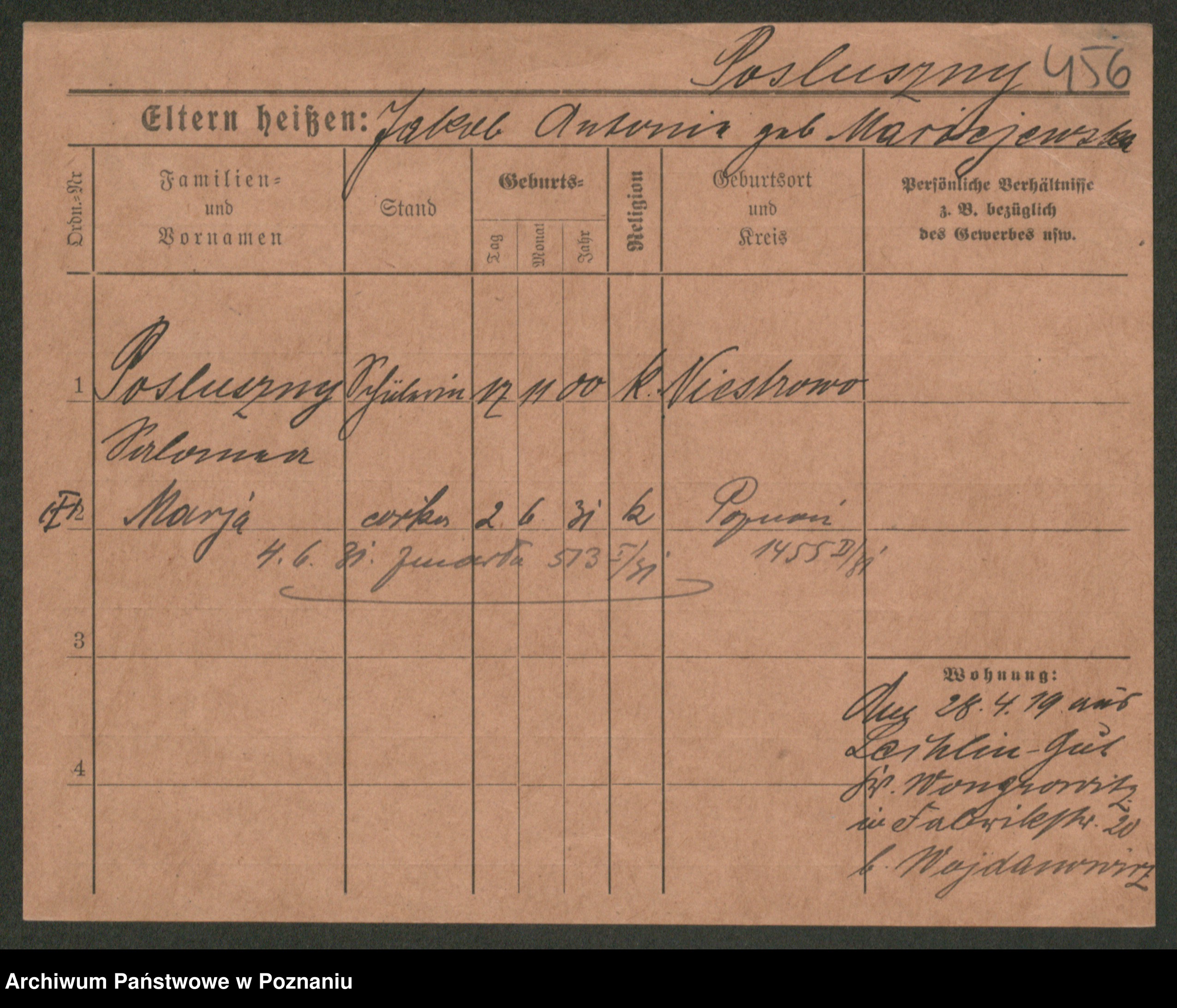 Post z d. Ptasinska, Antonina