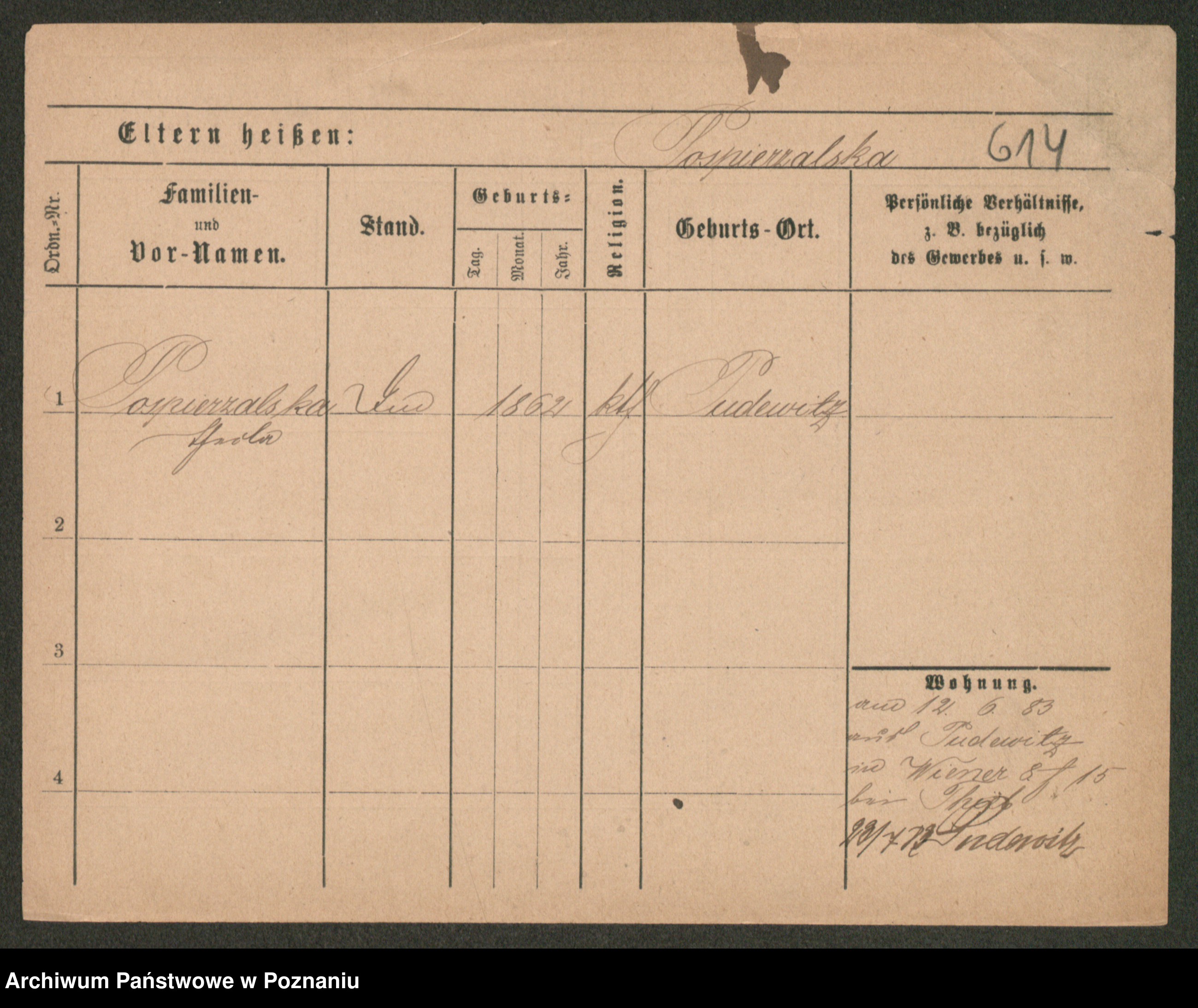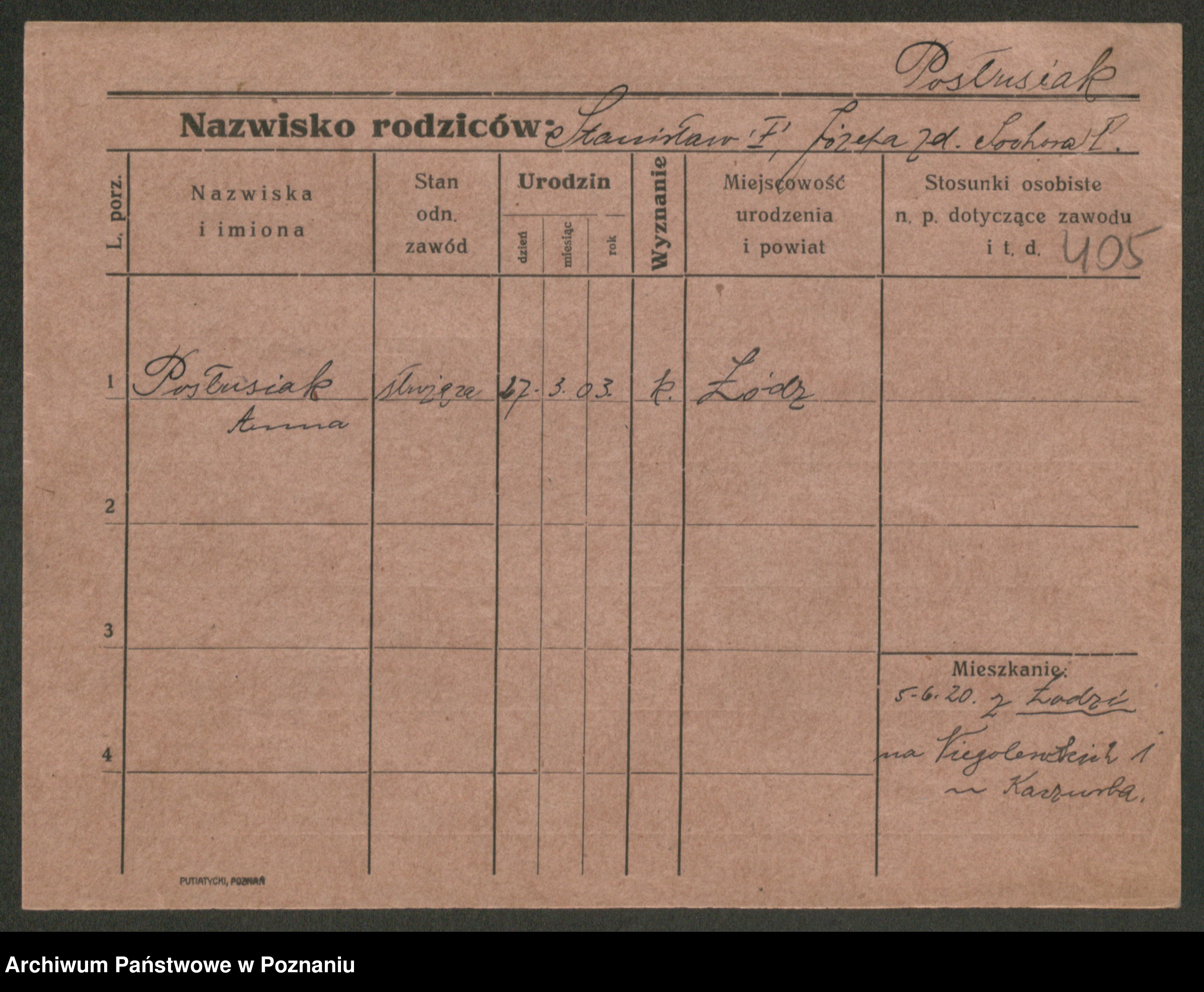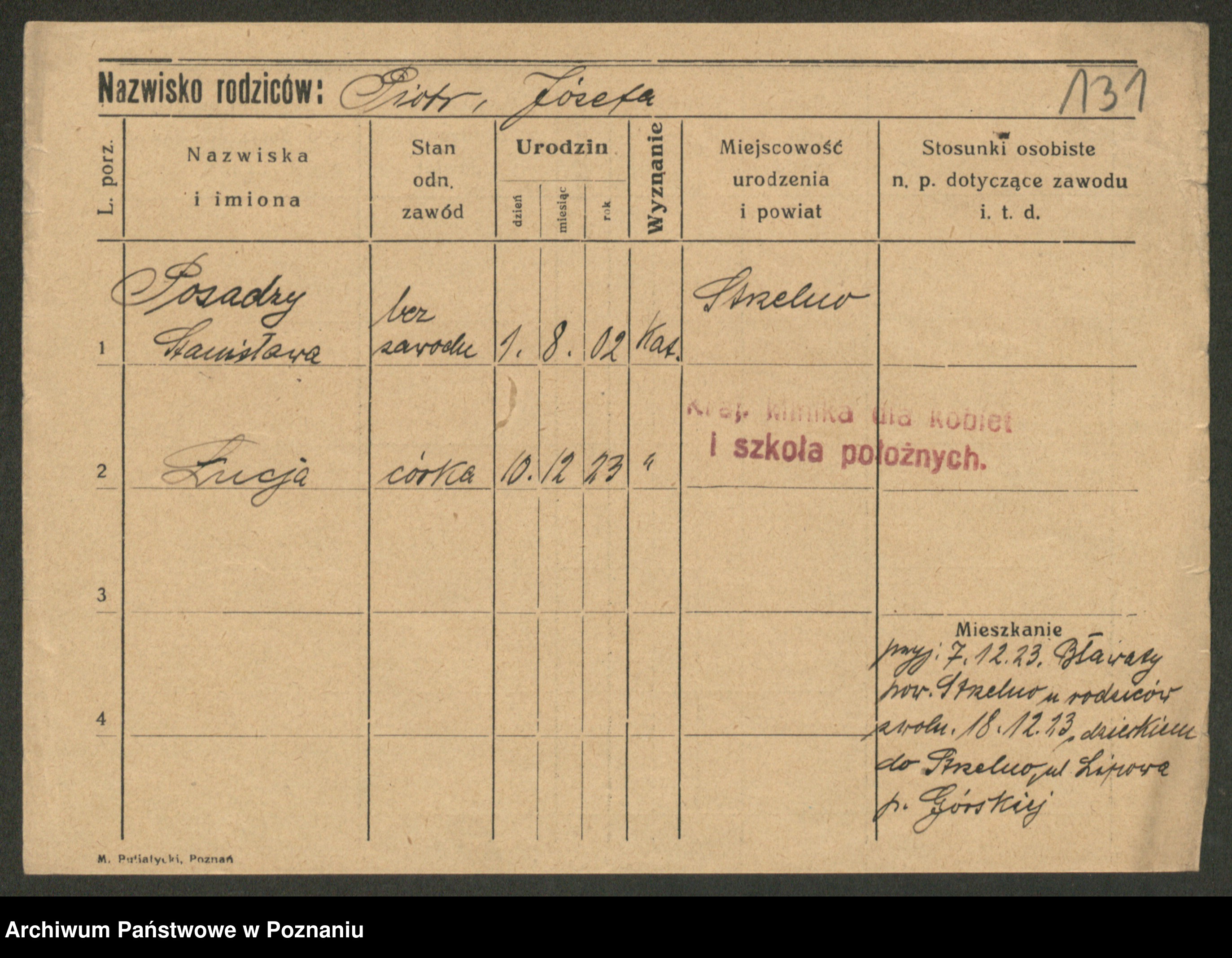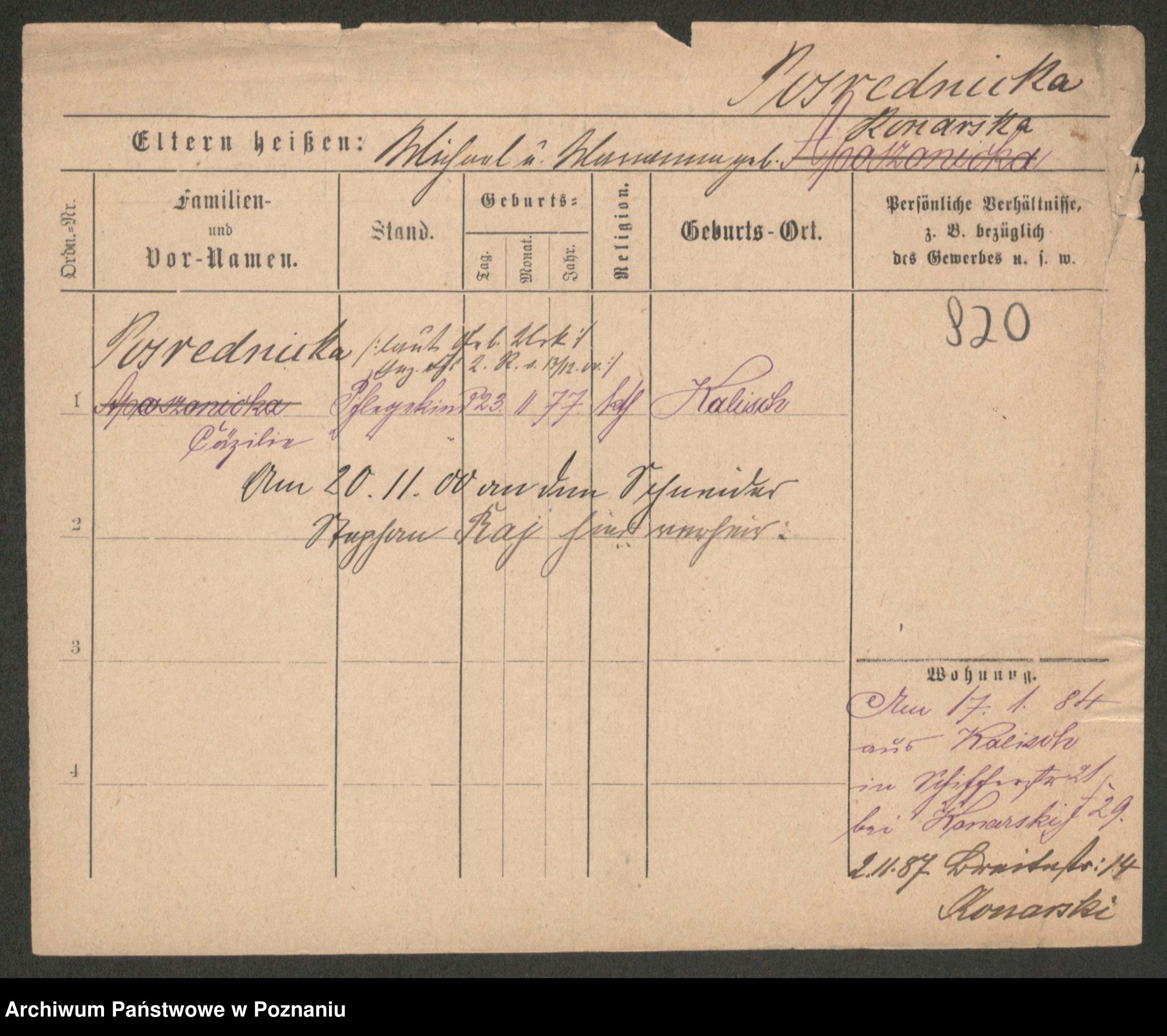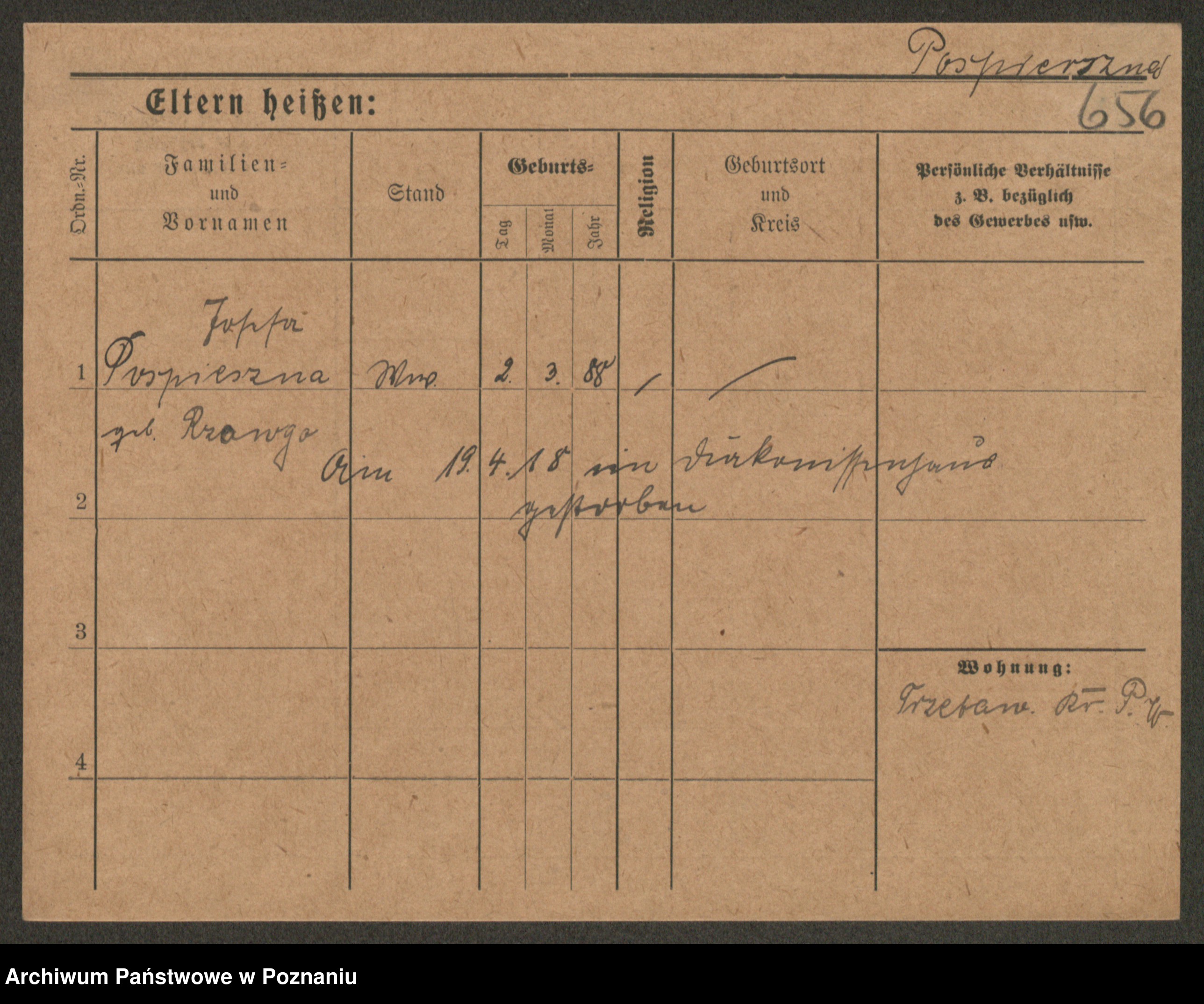 Post z d. Ptasinska, Antonina