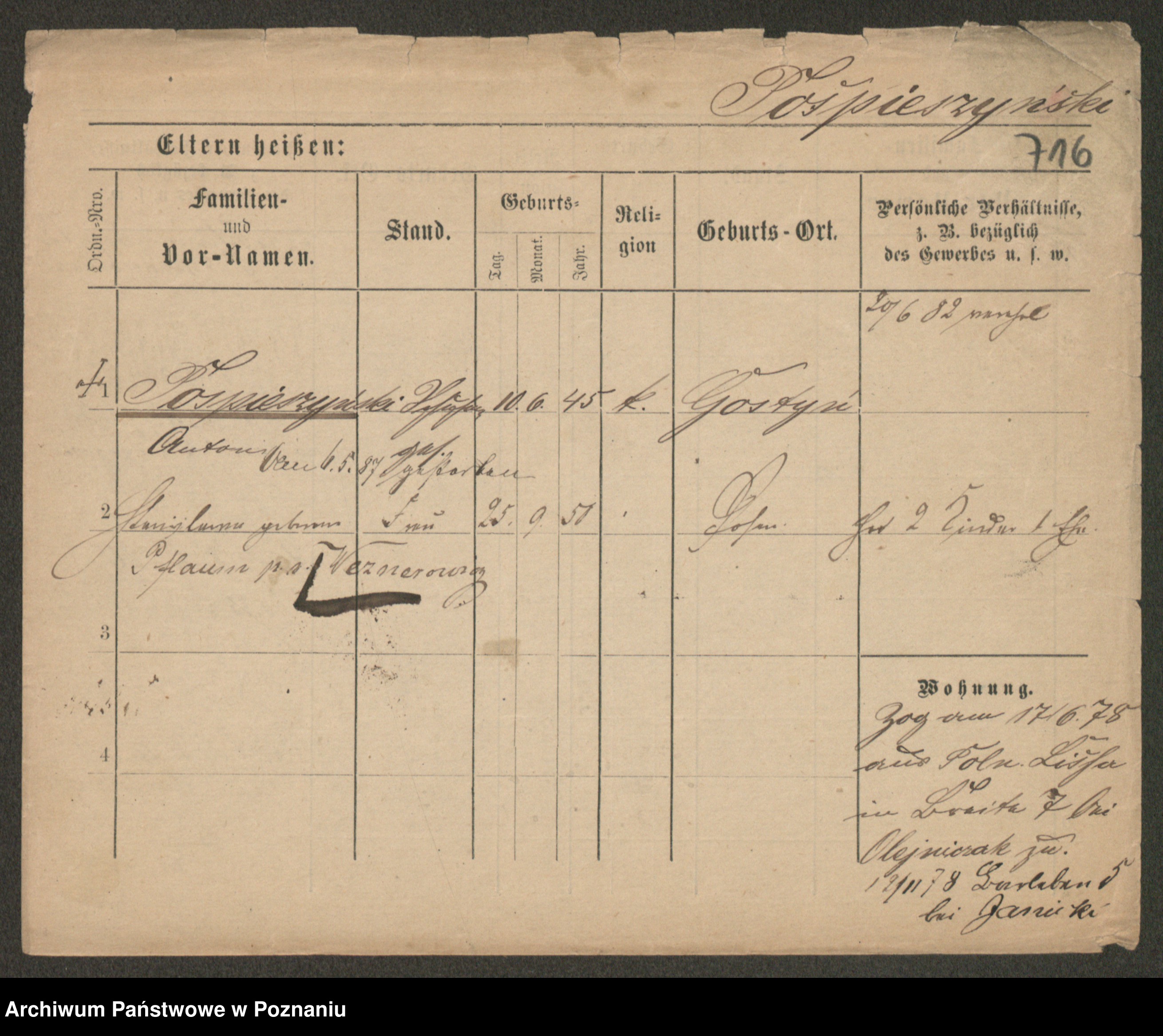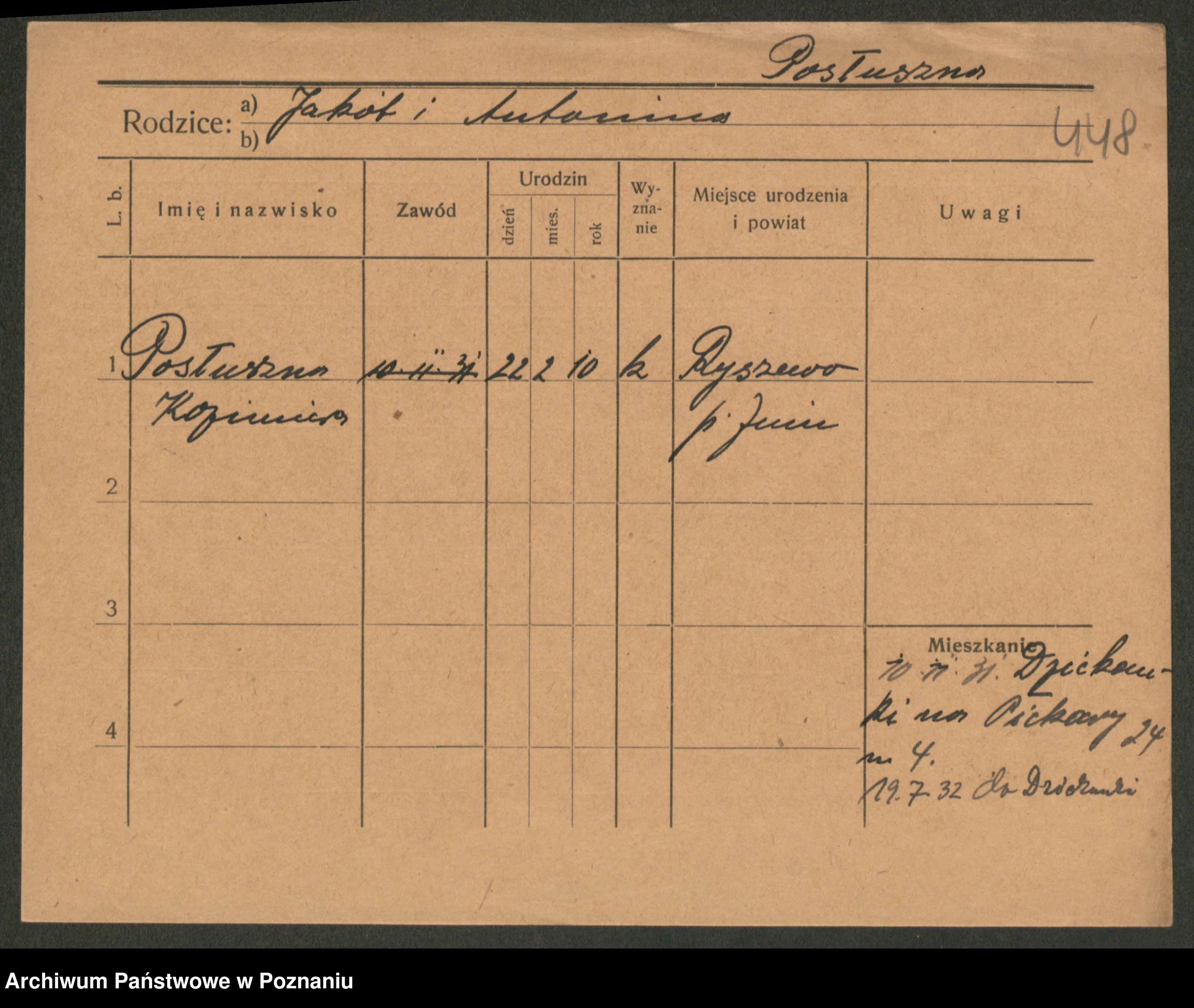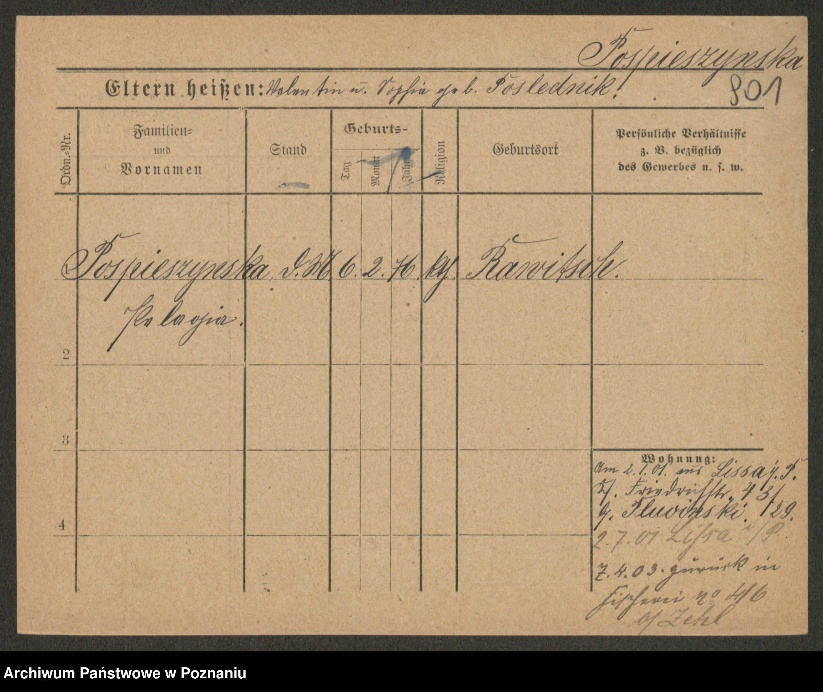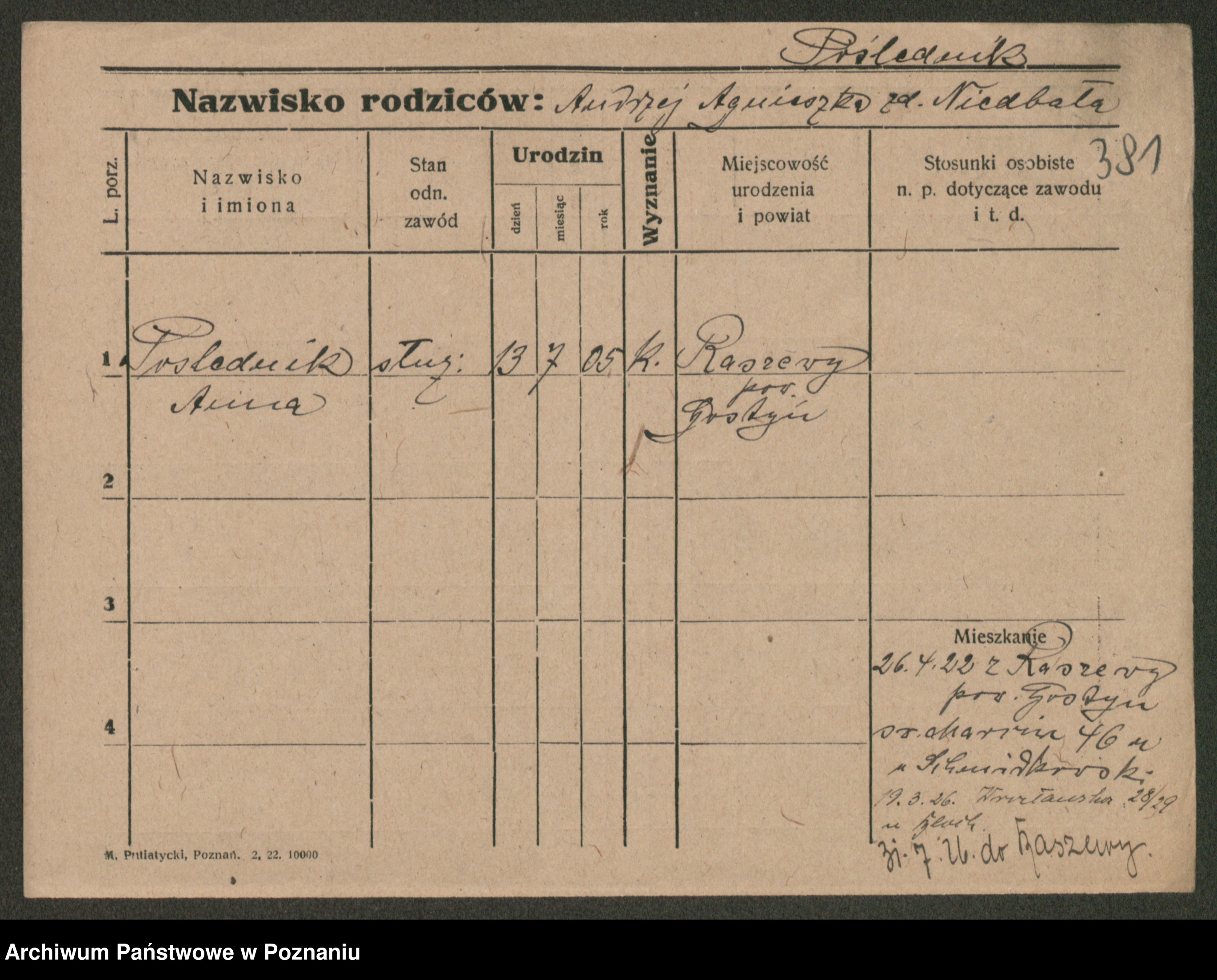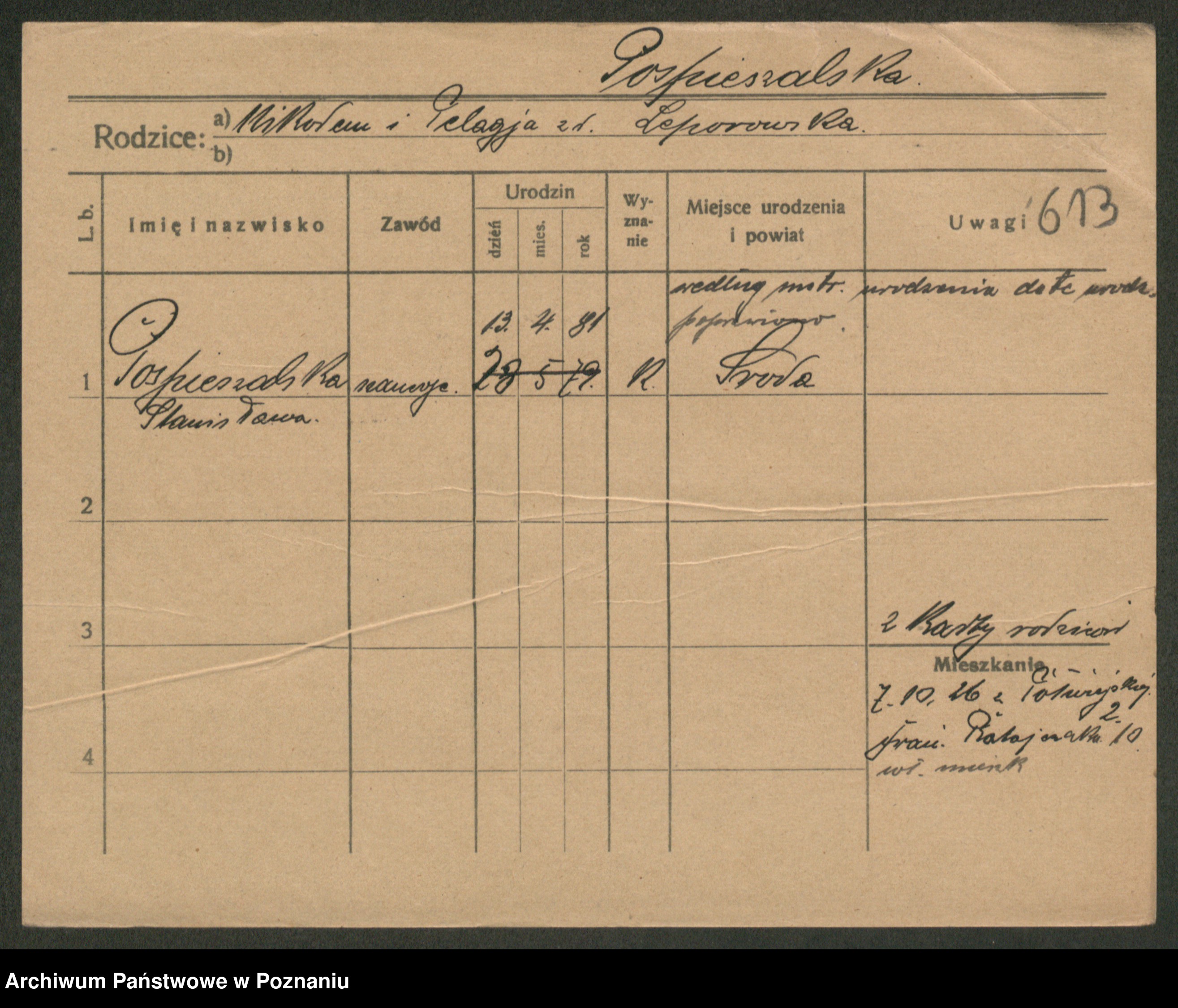 Post z d. Ptasinska, Antonina
