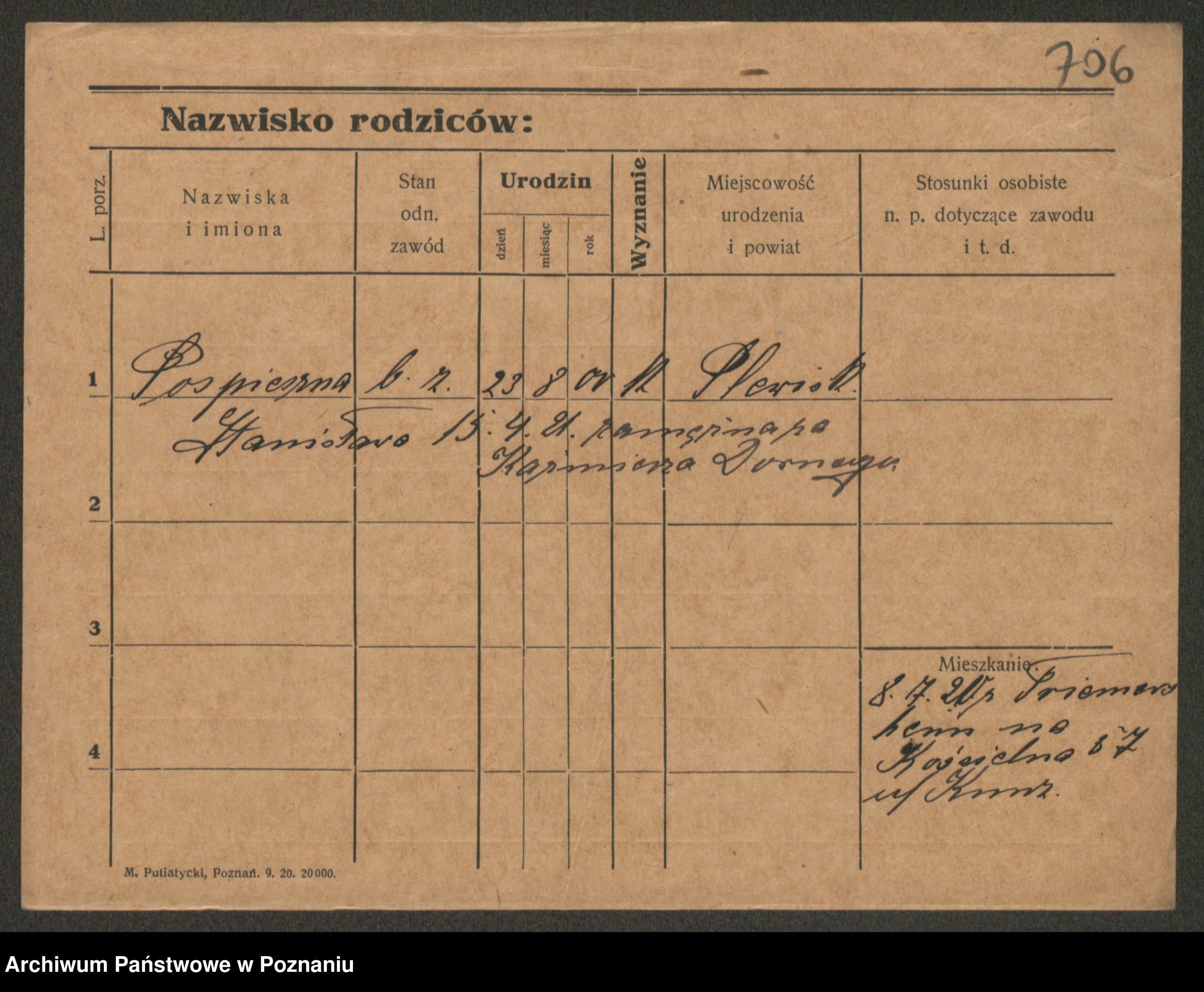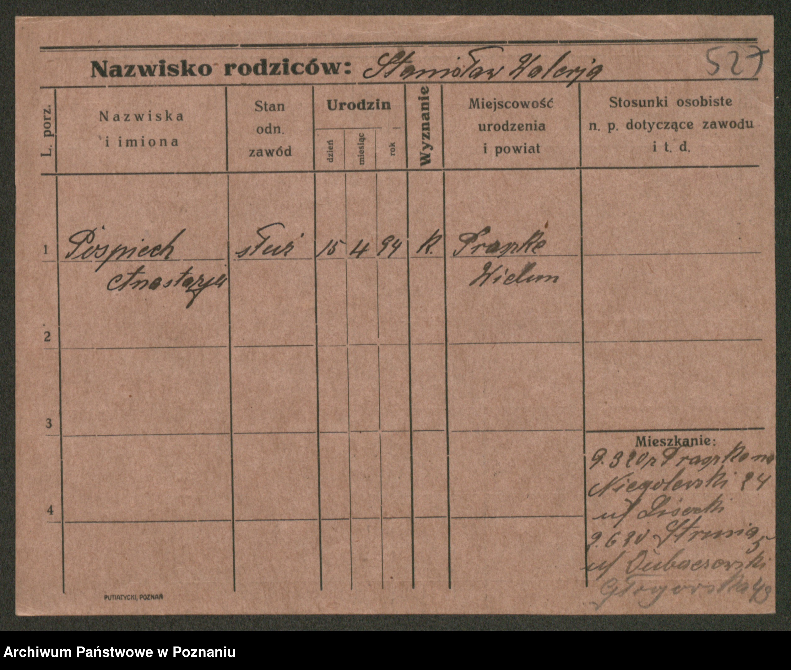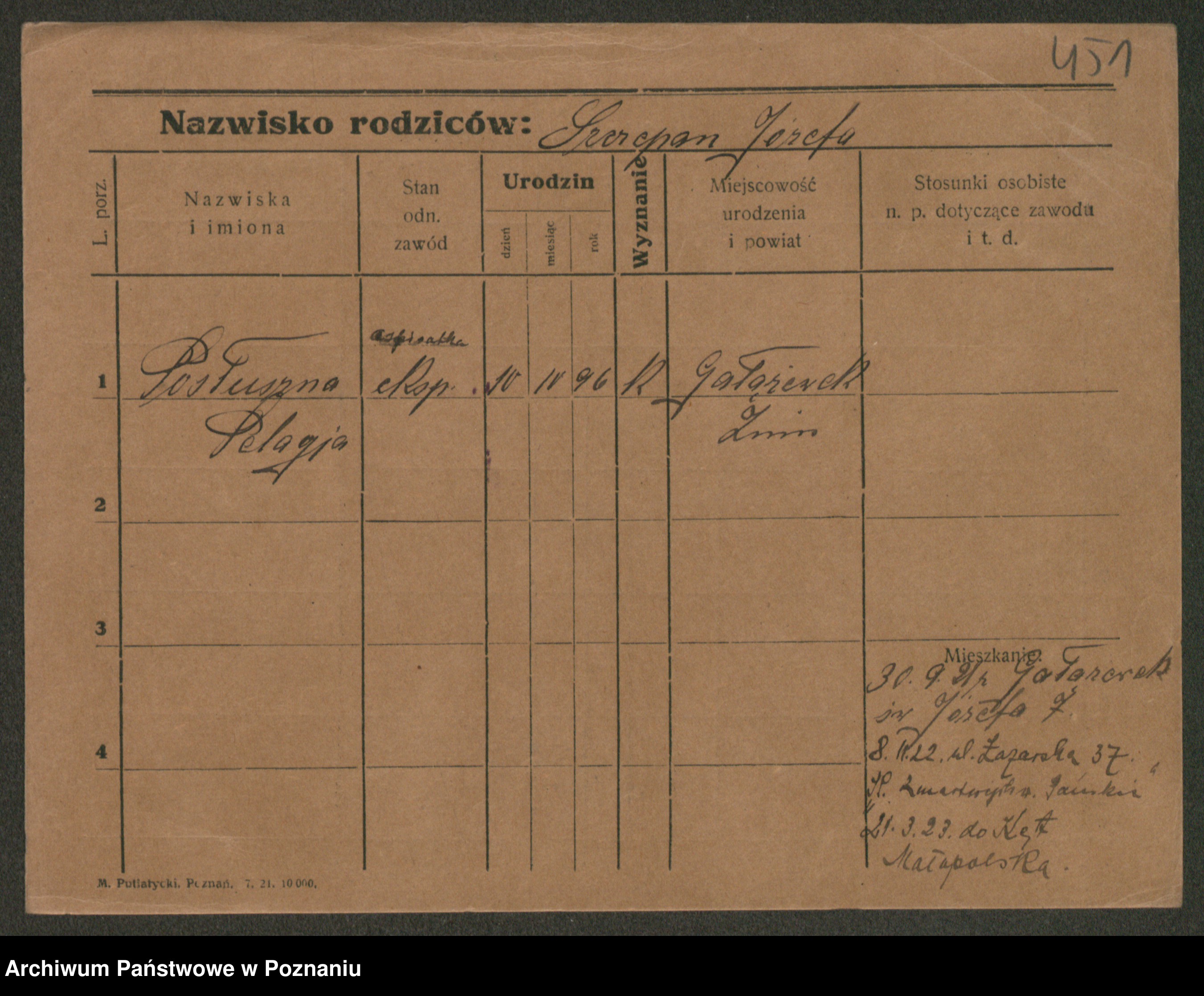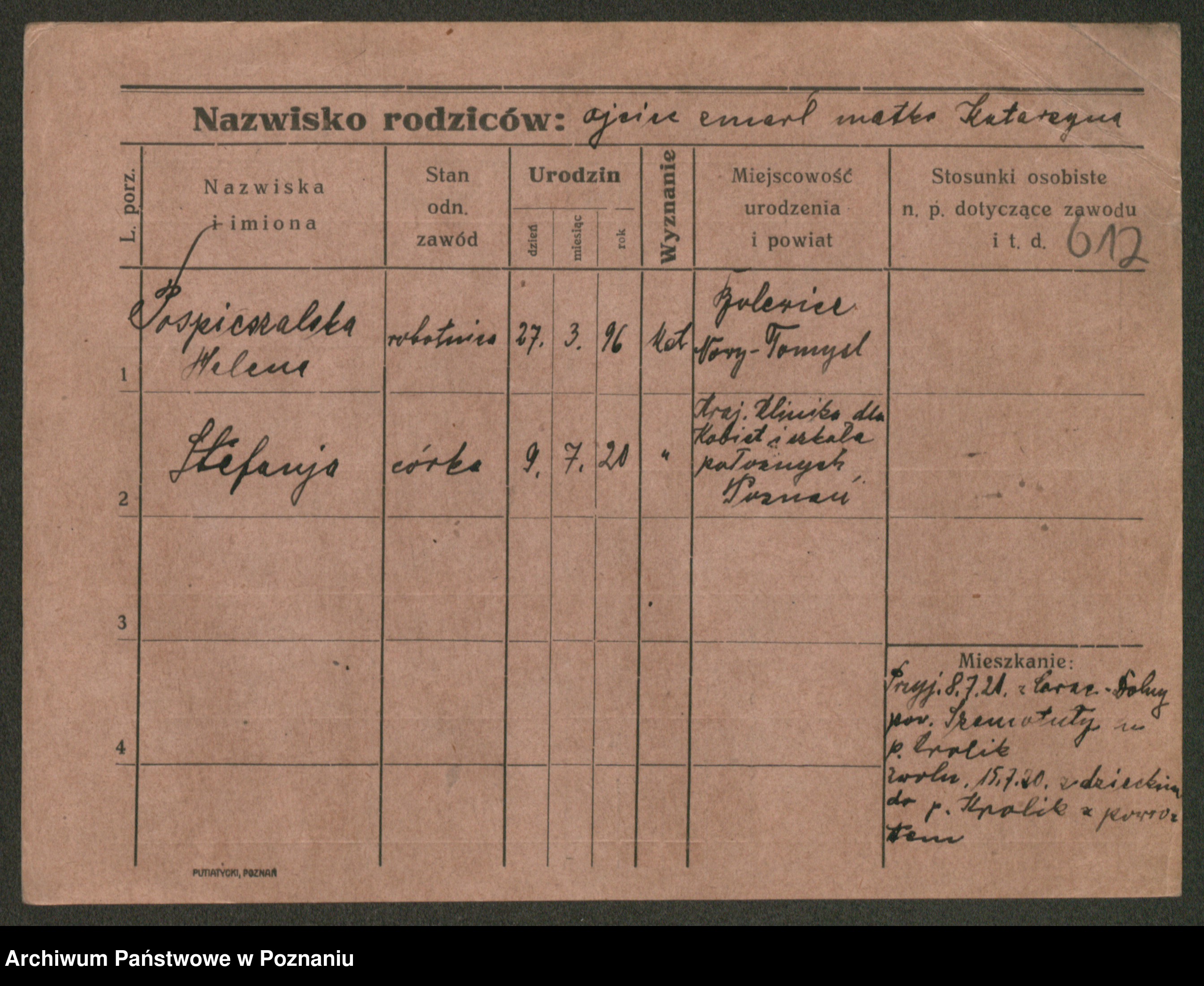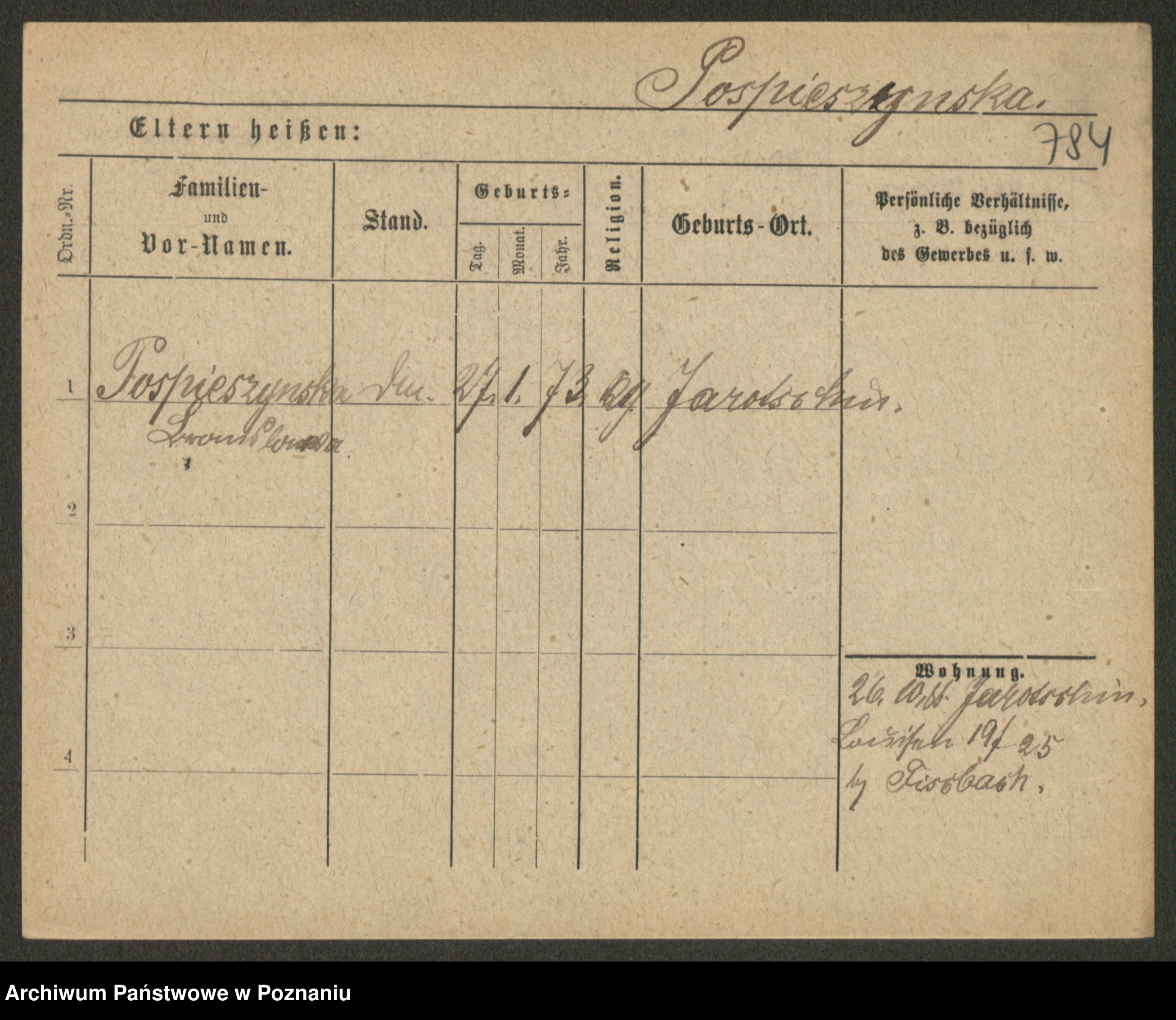 Post z d. Ptasinska, Antonina