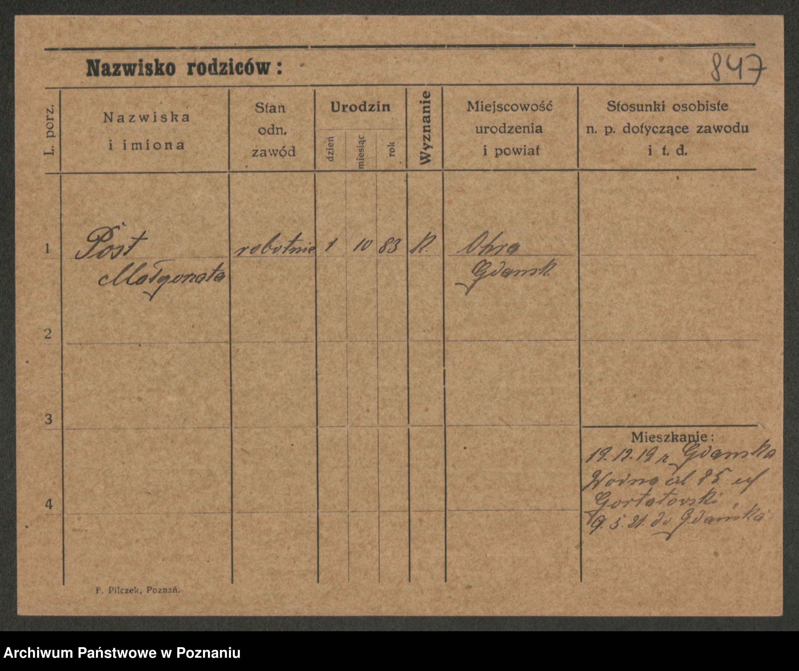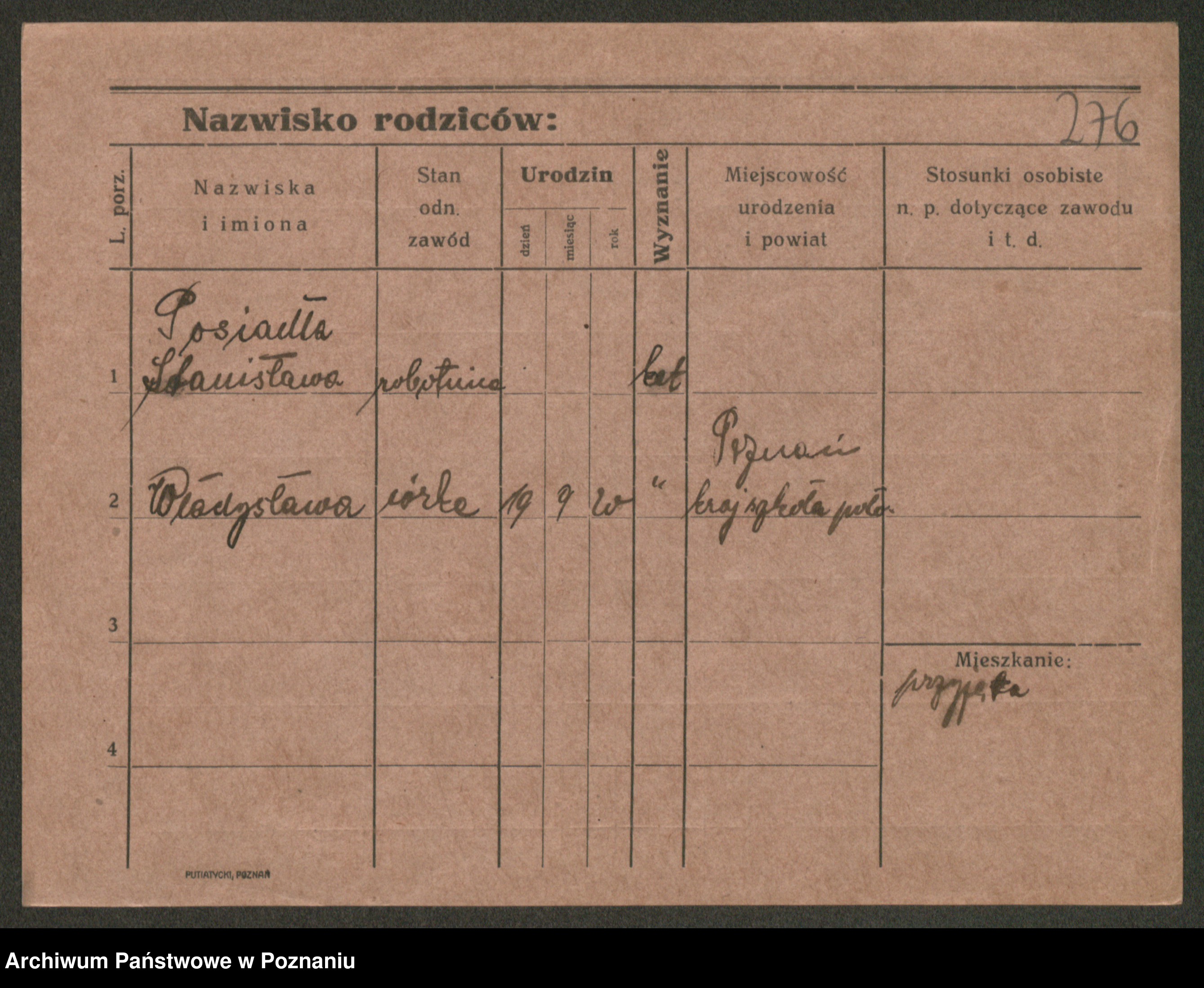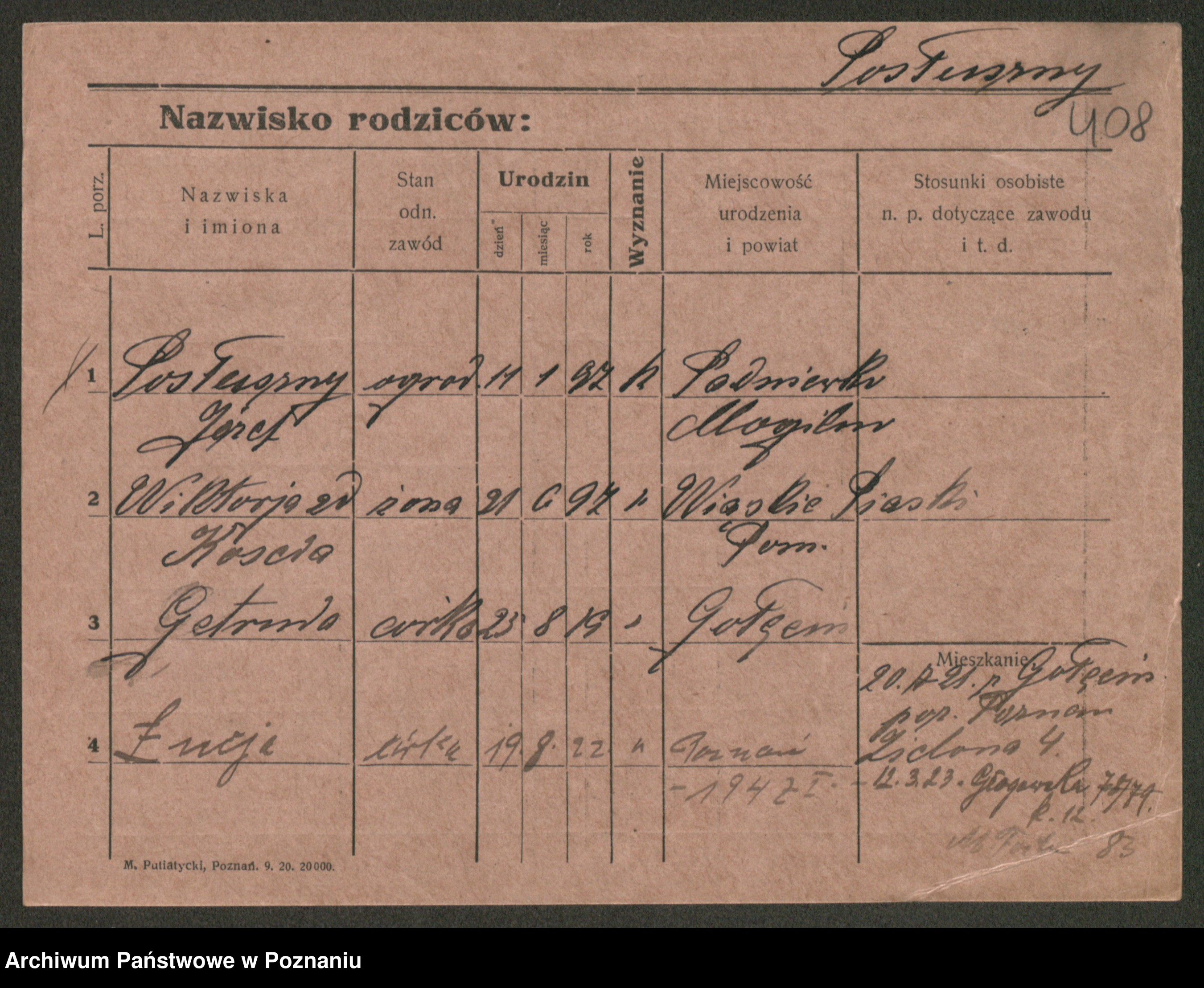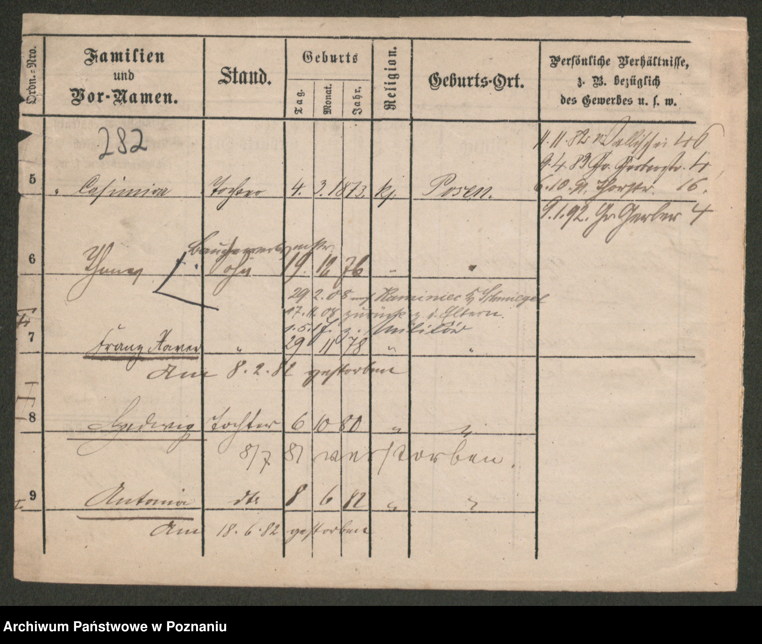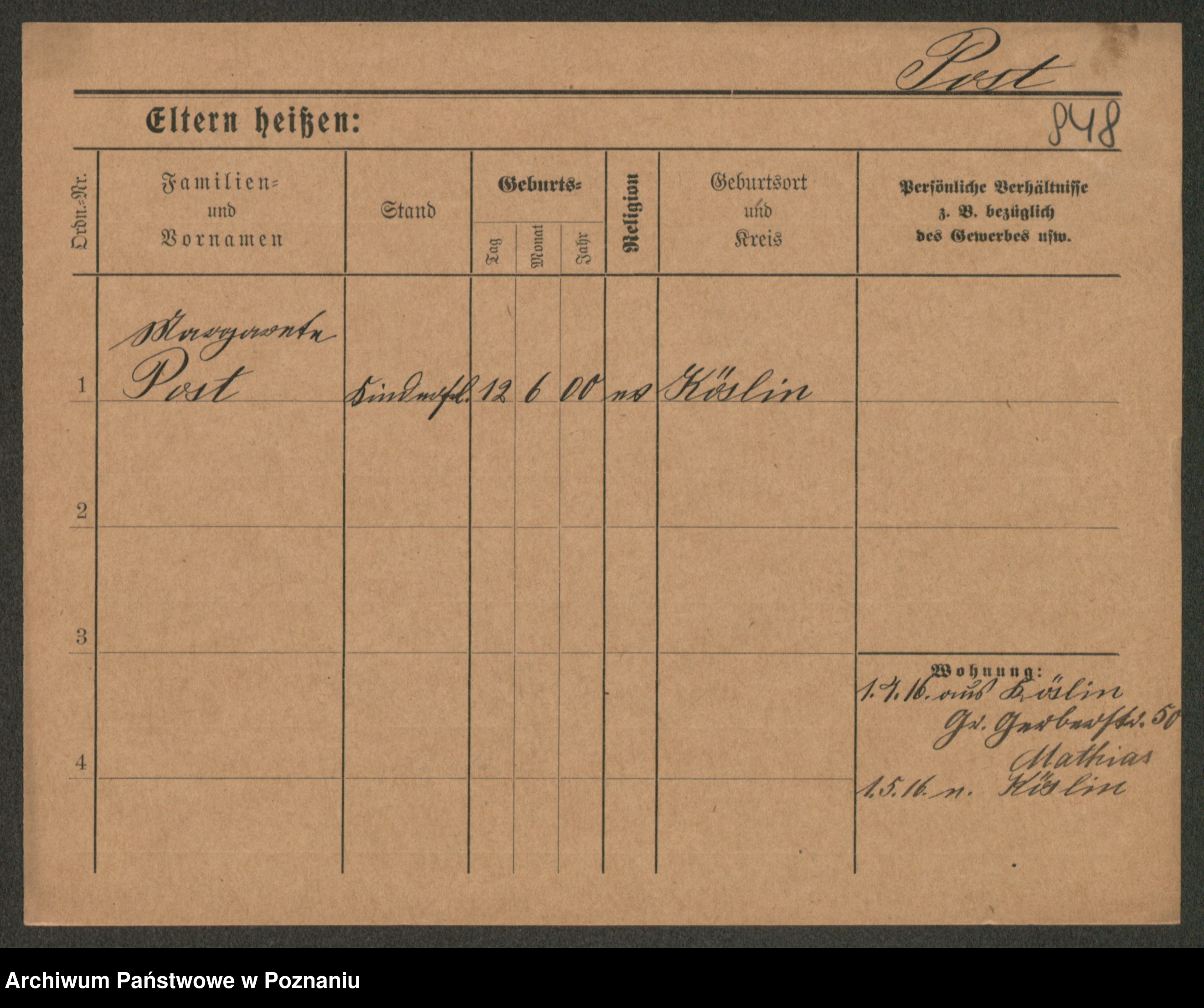 Post z d. Ptasinska, Antonina