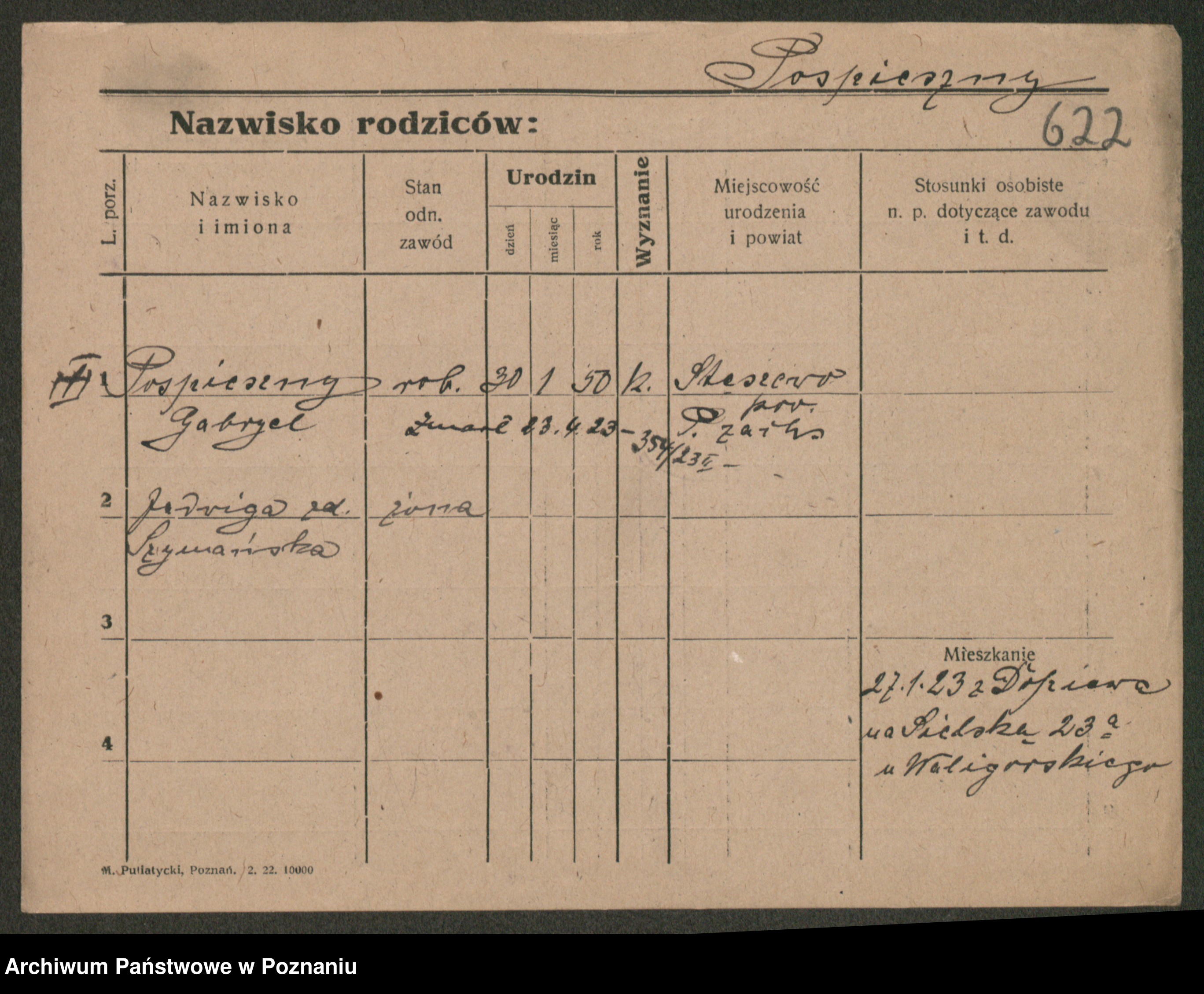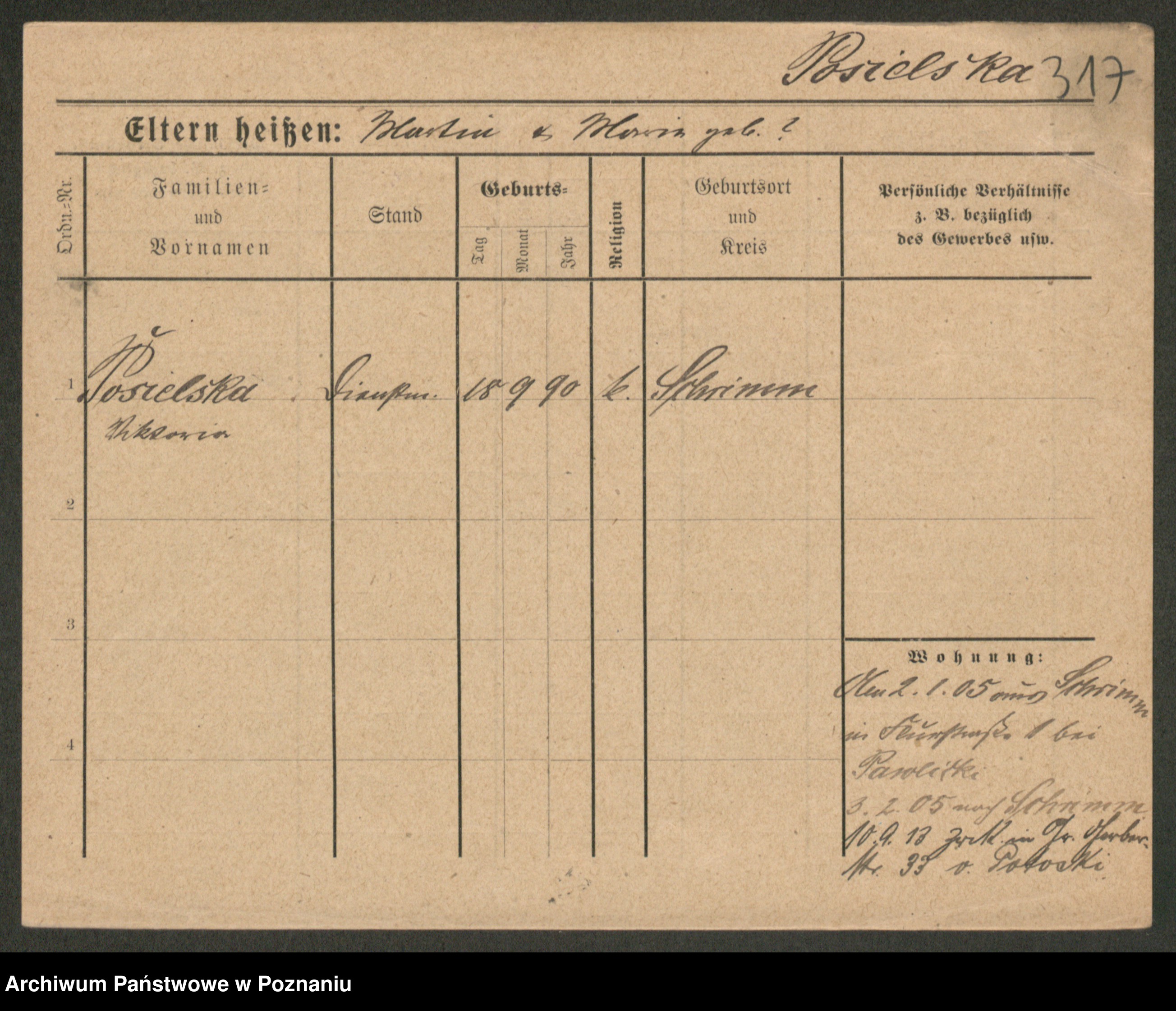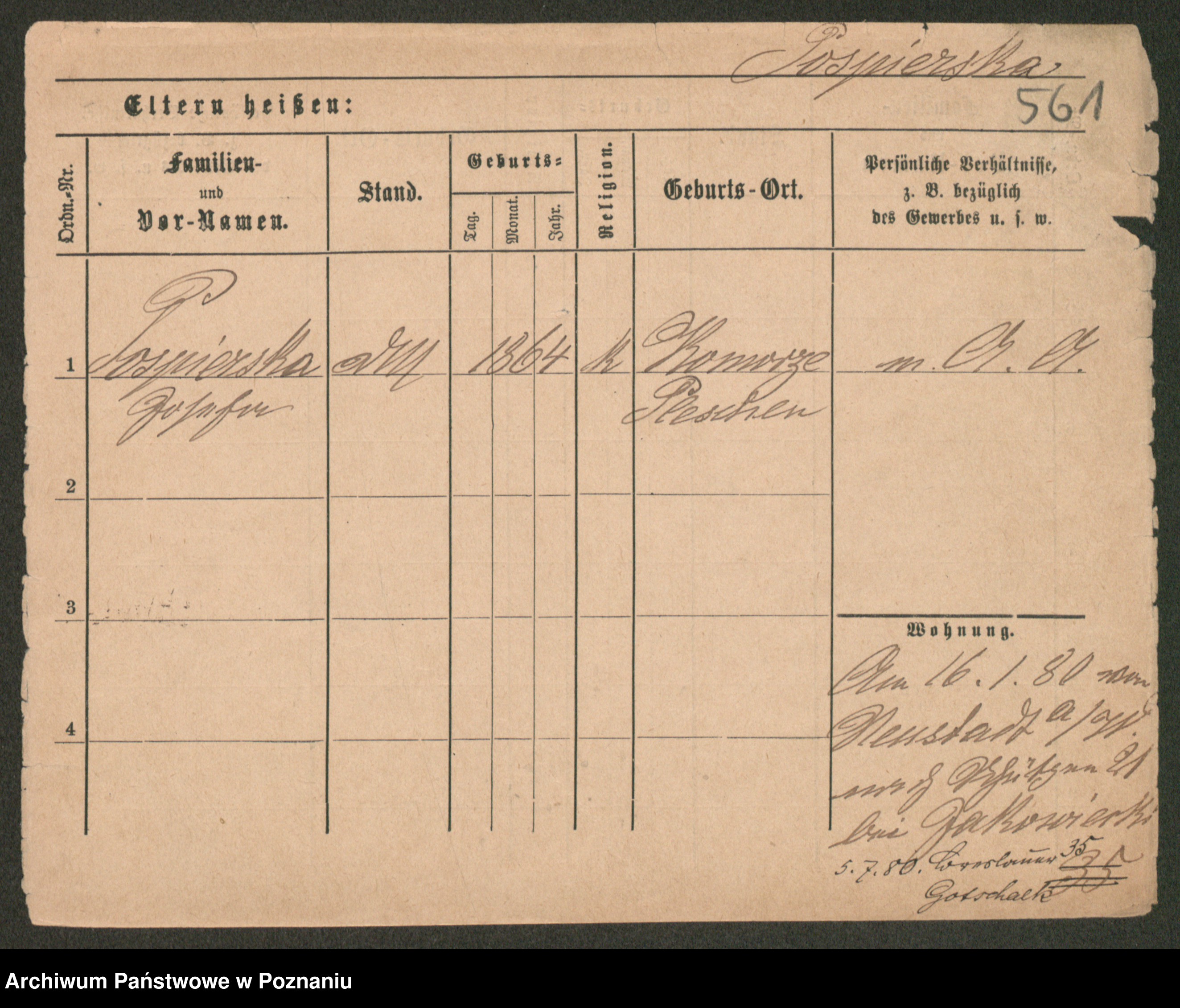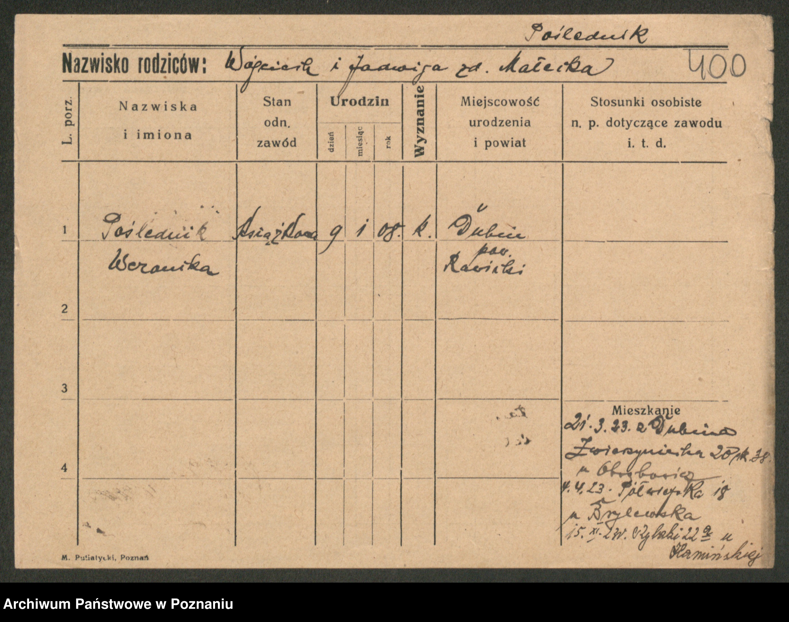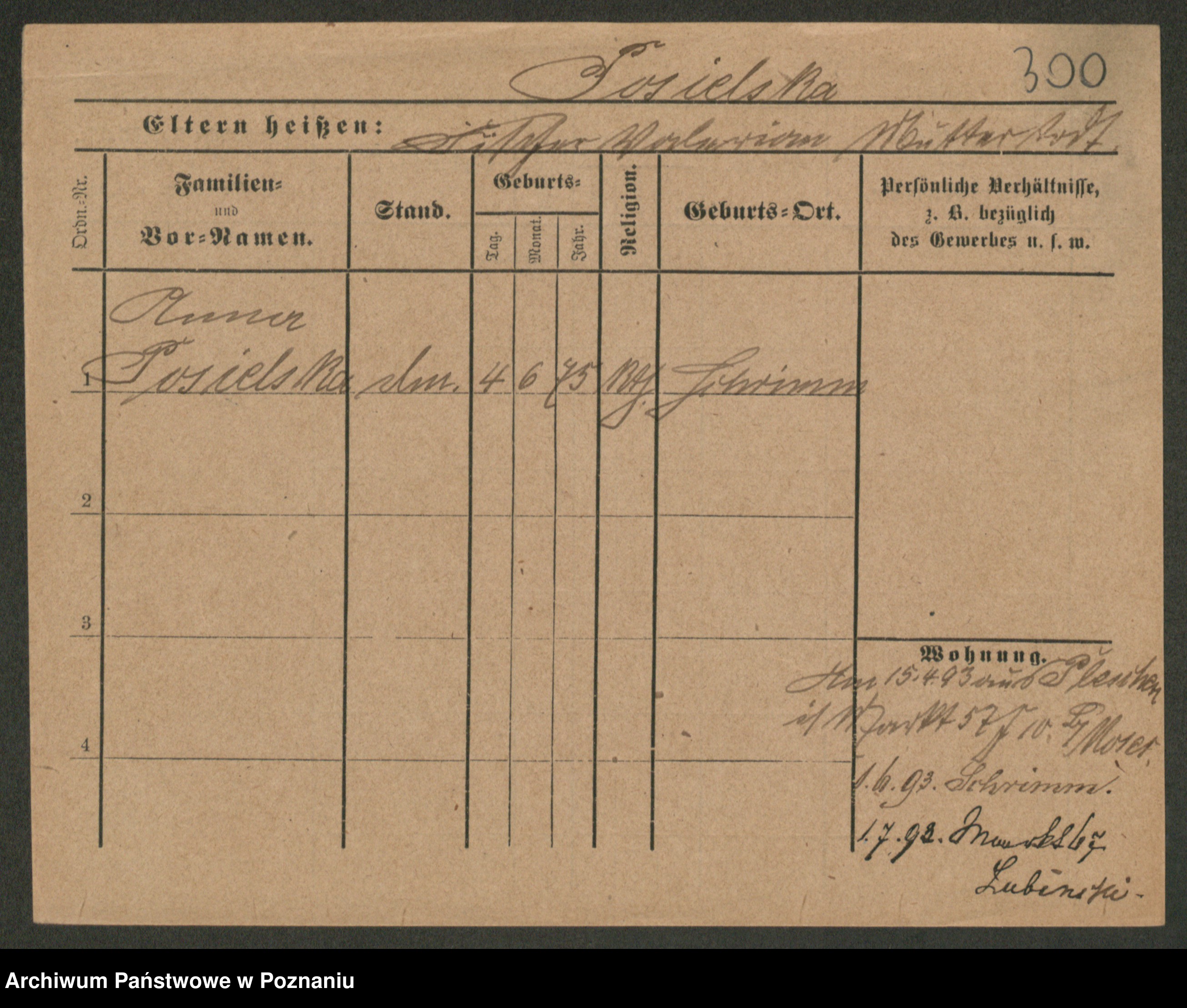 Post z d. Ptasinska, Antonina