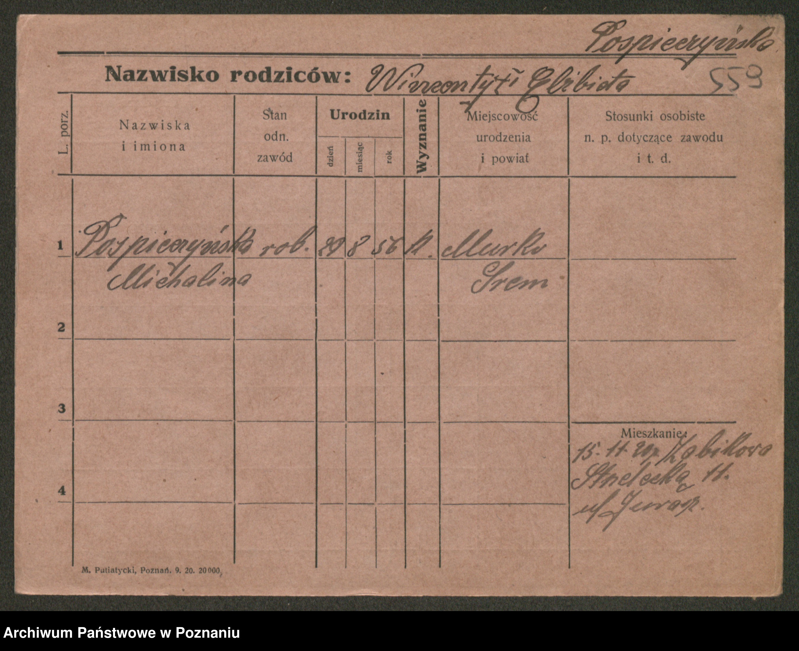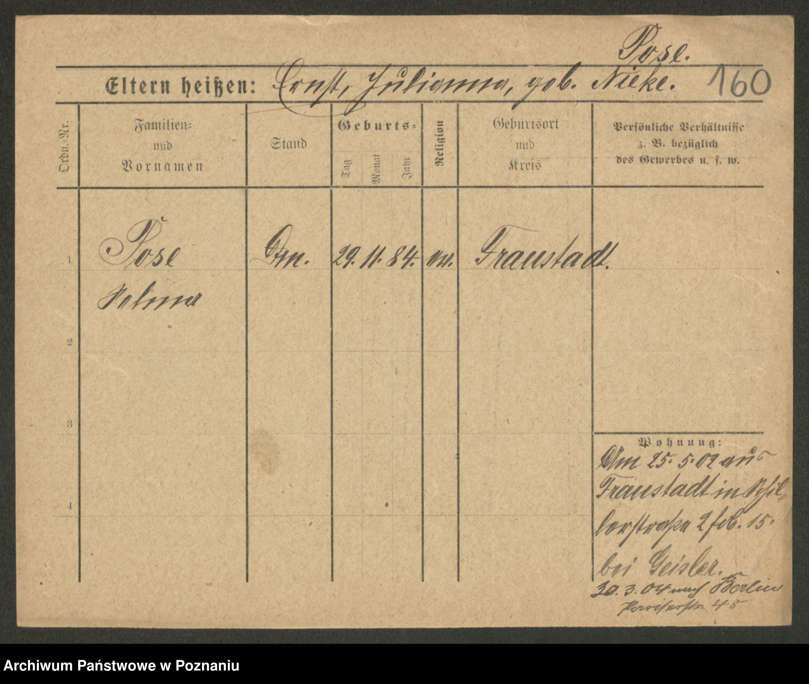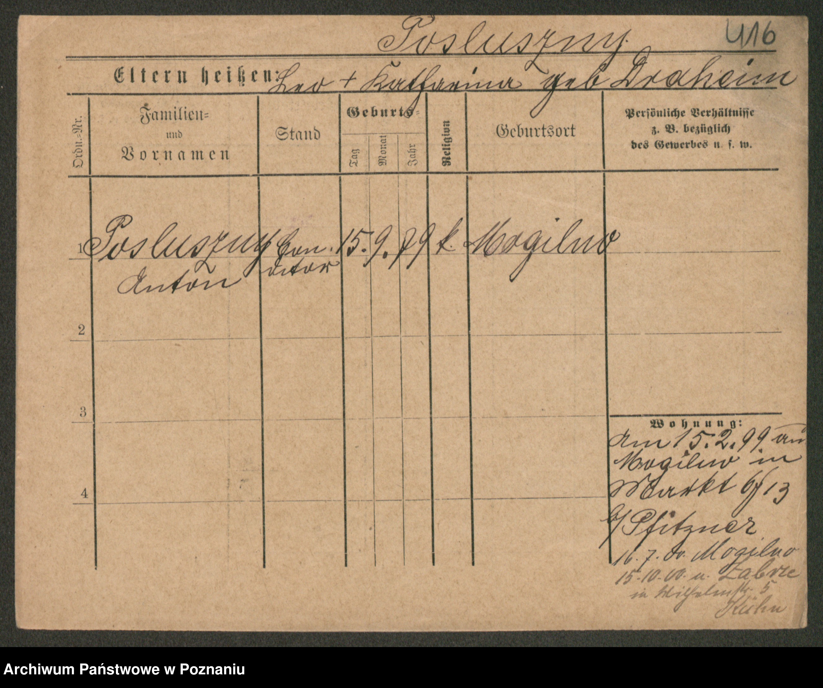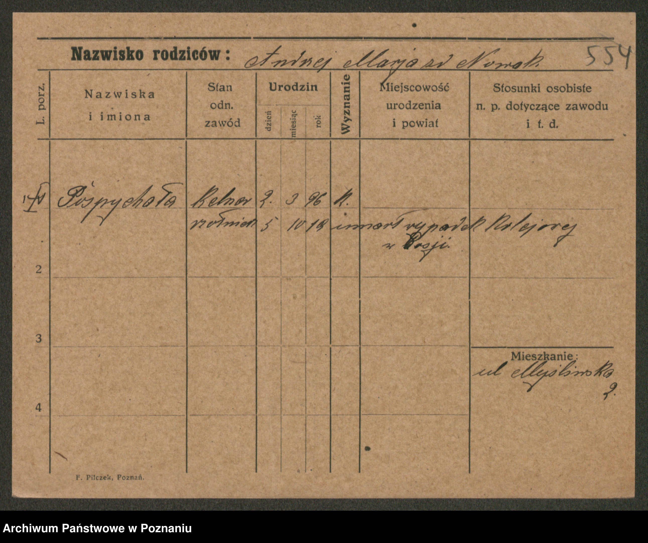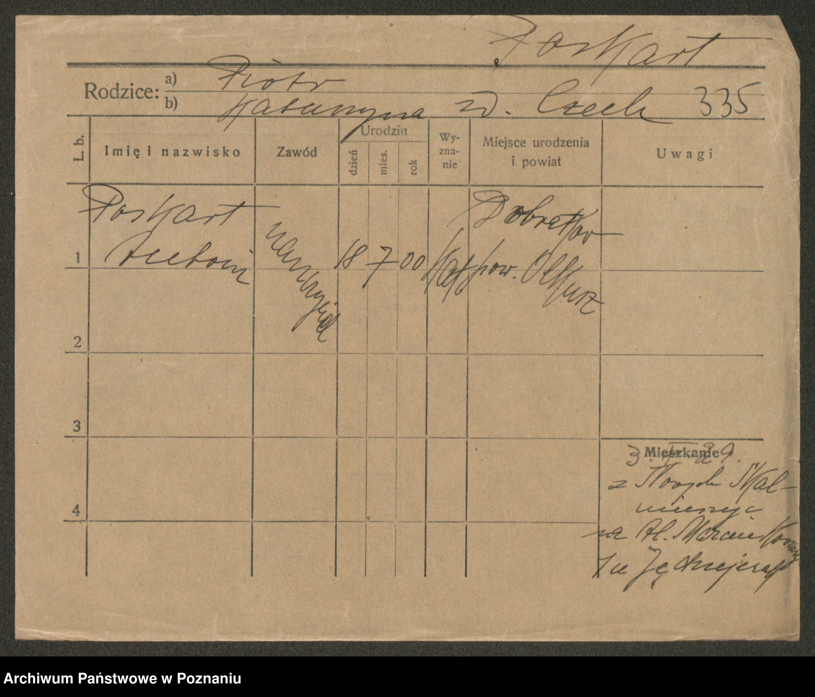 Post z d. Ptasinska, Antonina