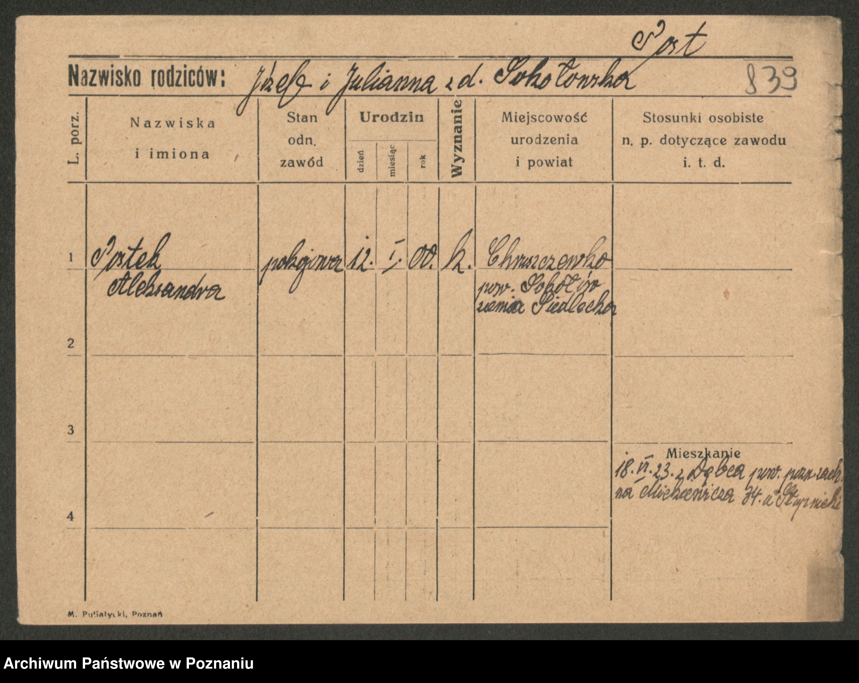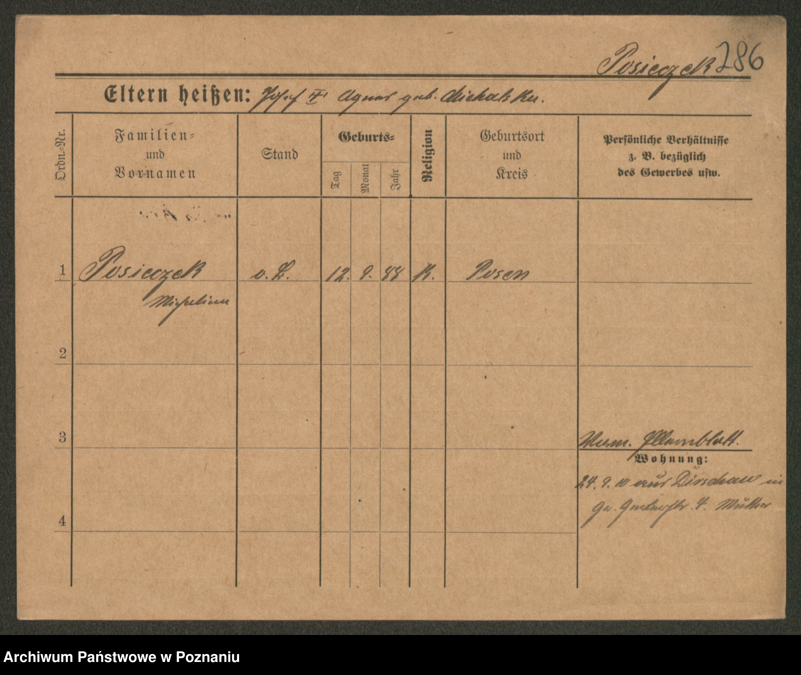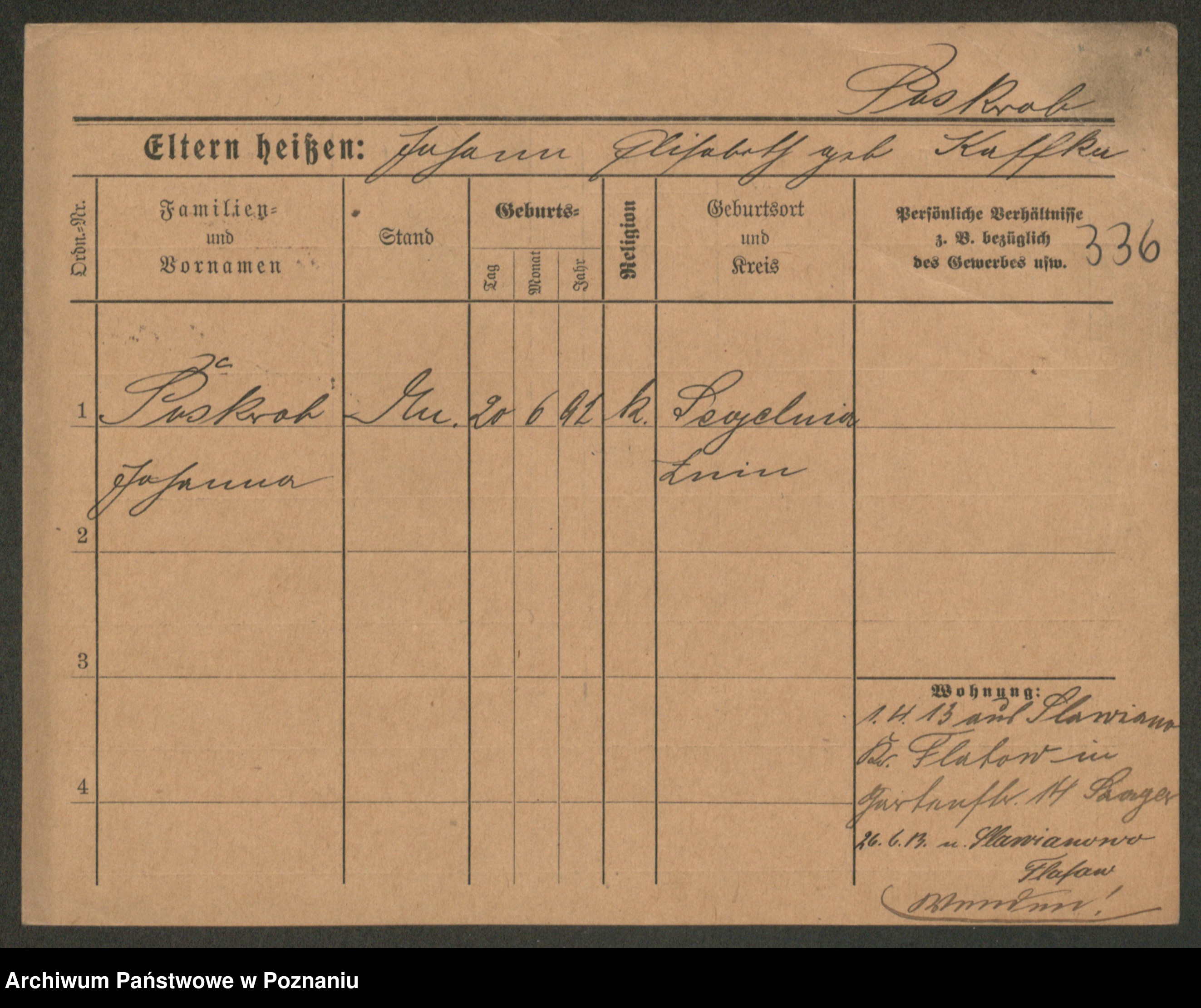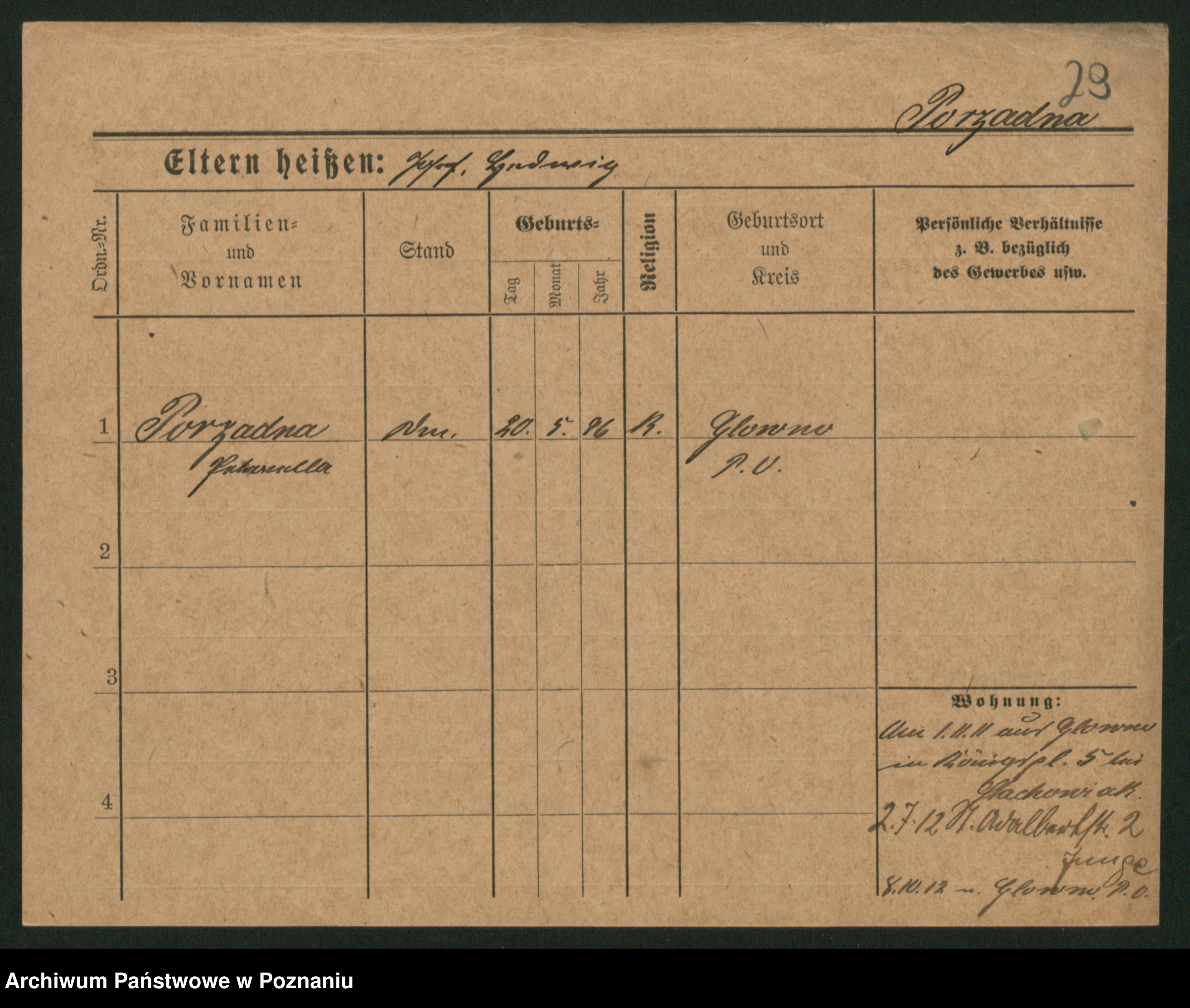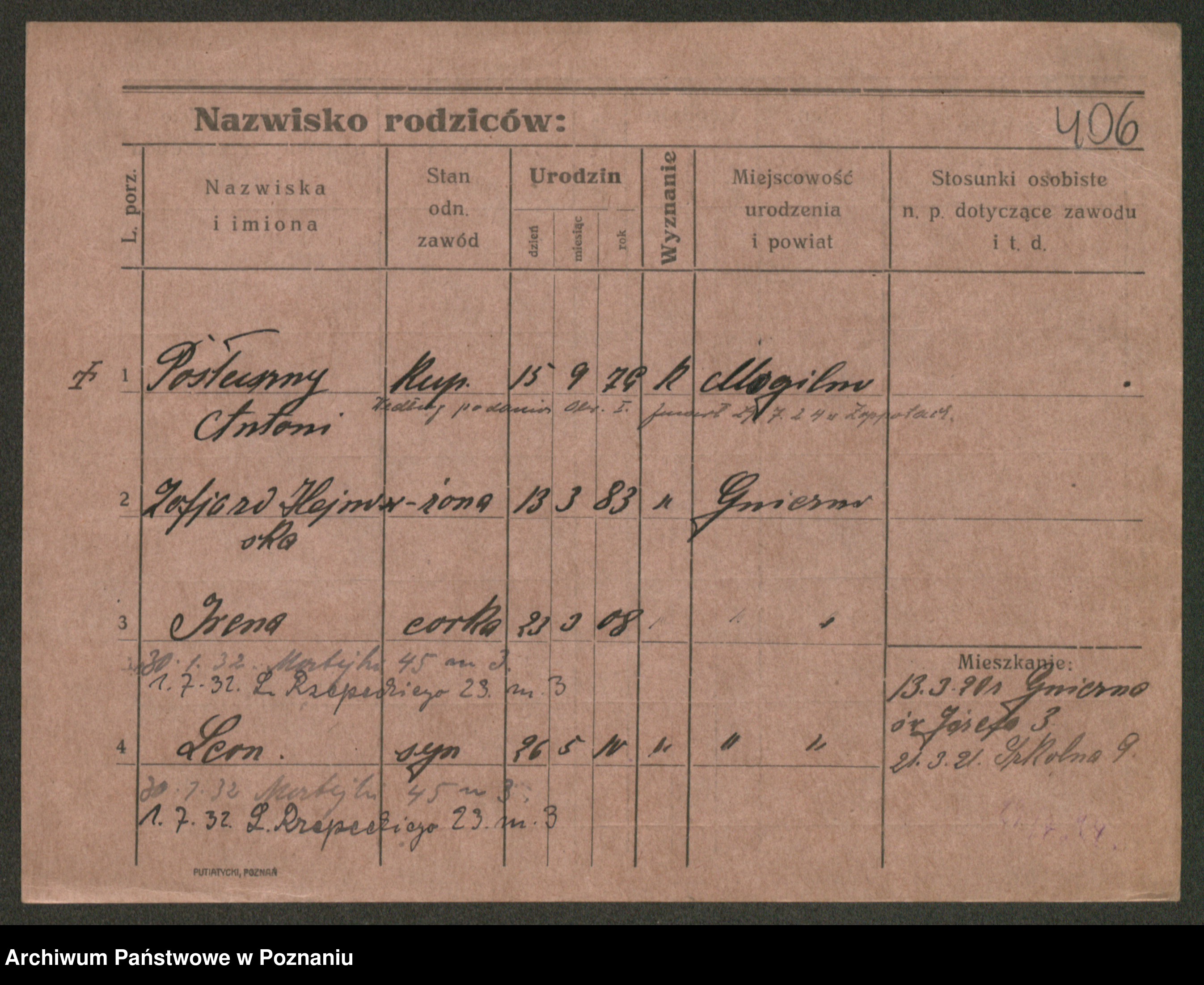 Post z d. Ptasinska, Antonina