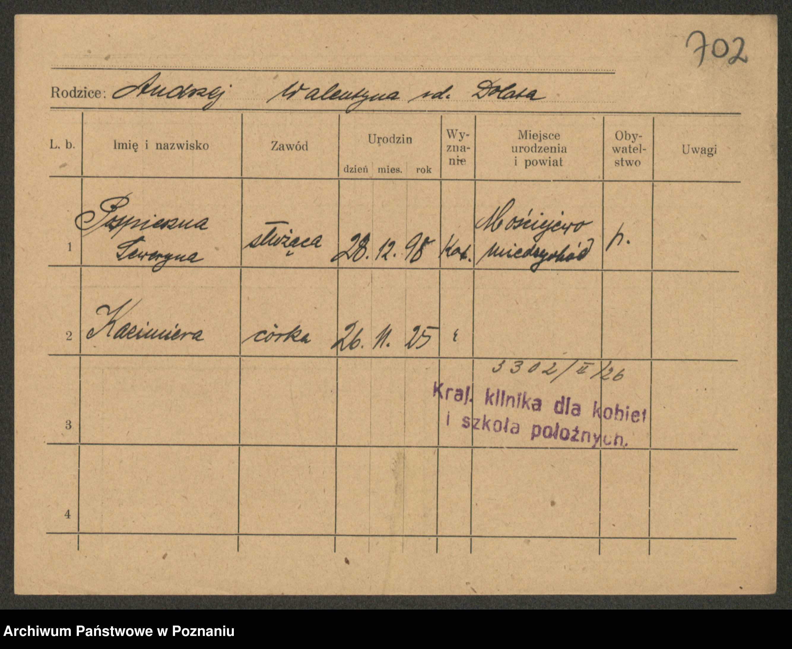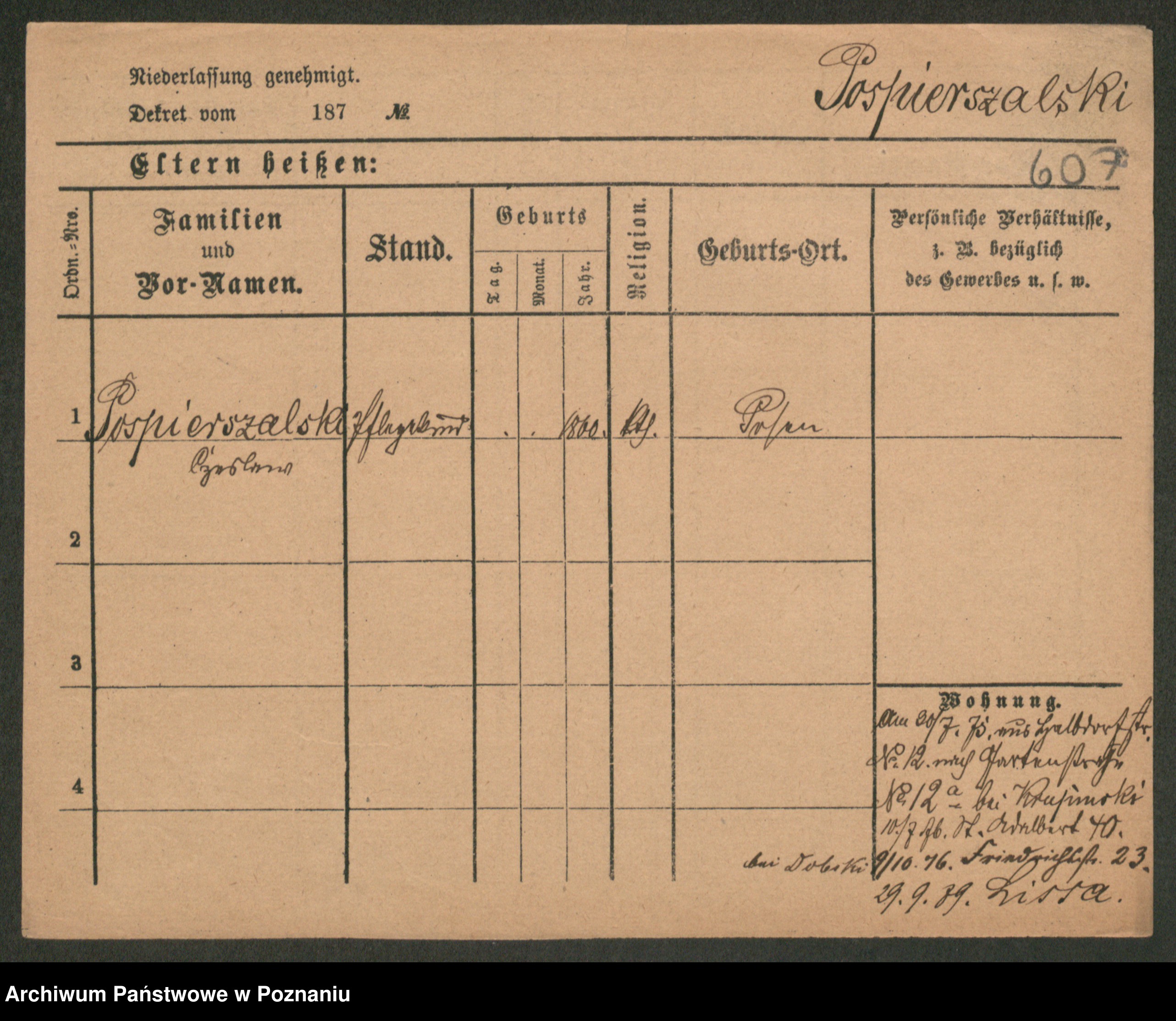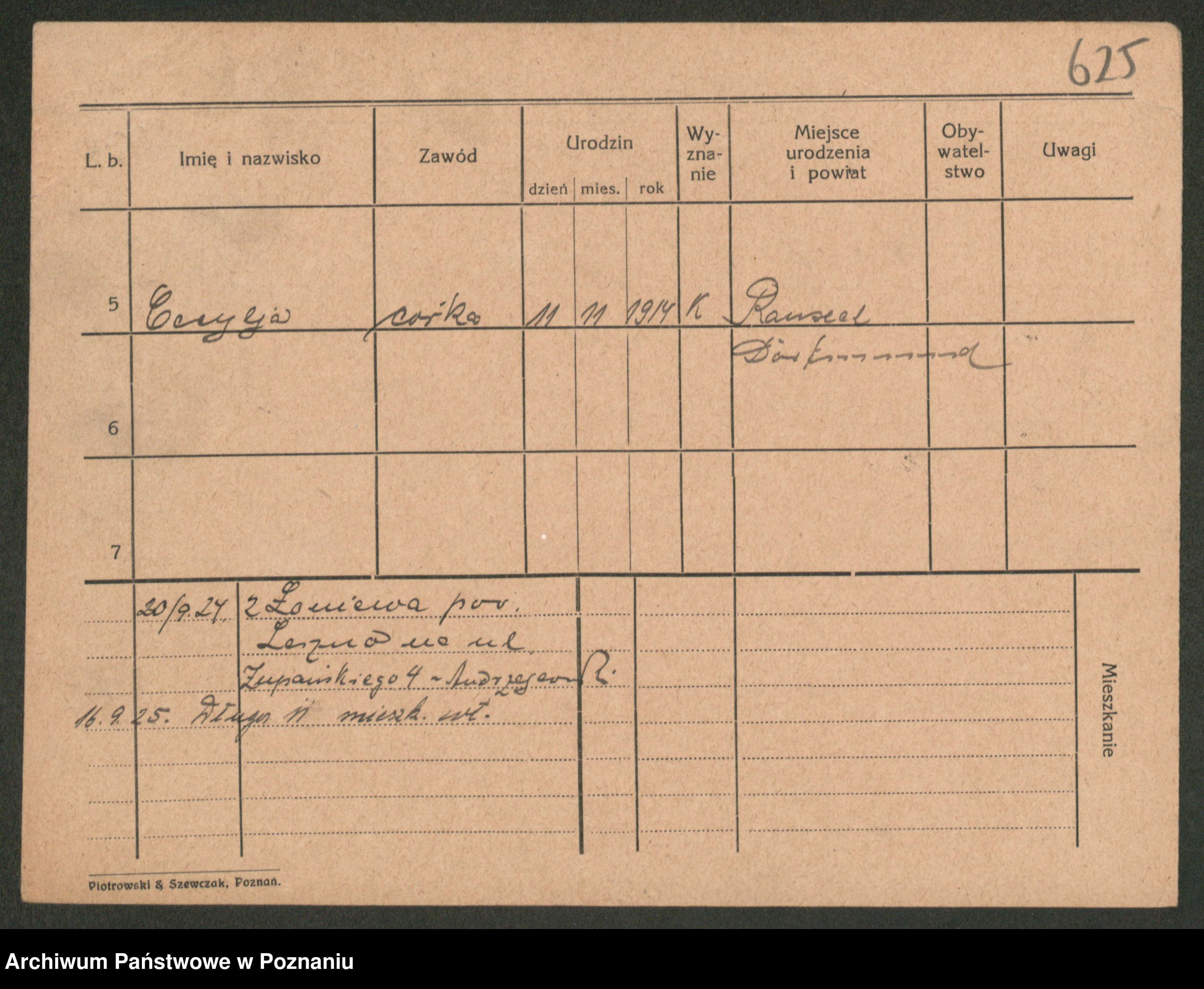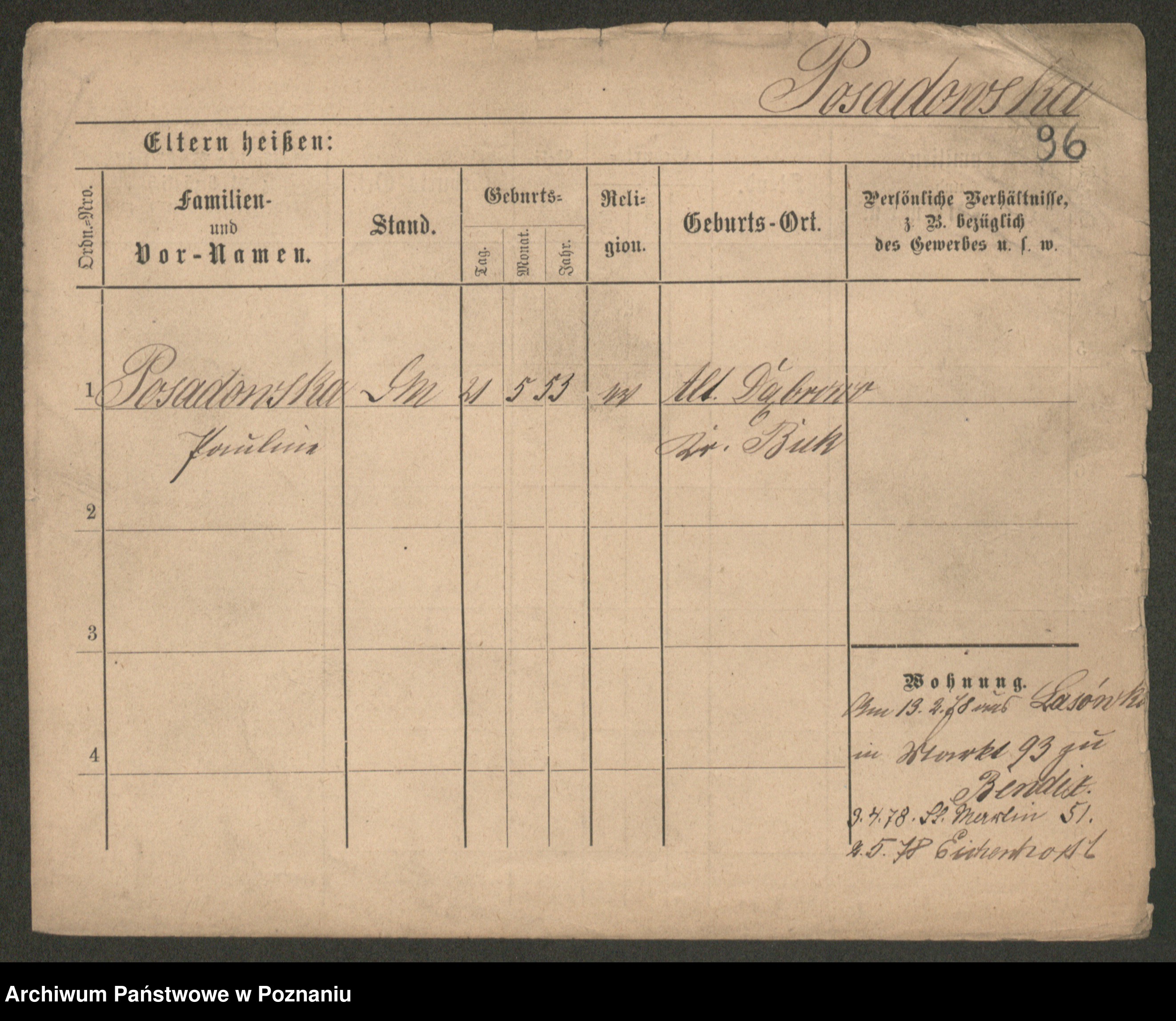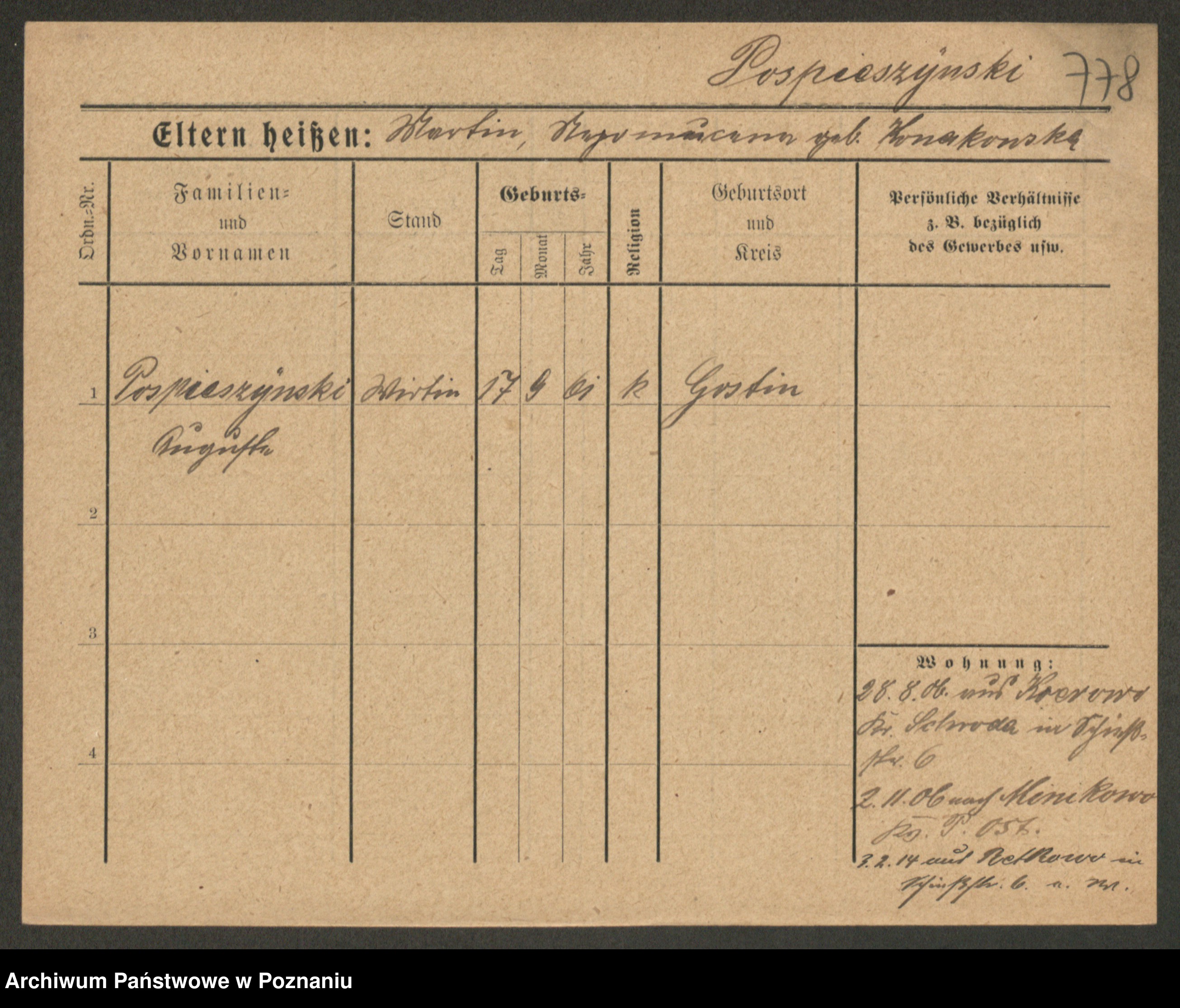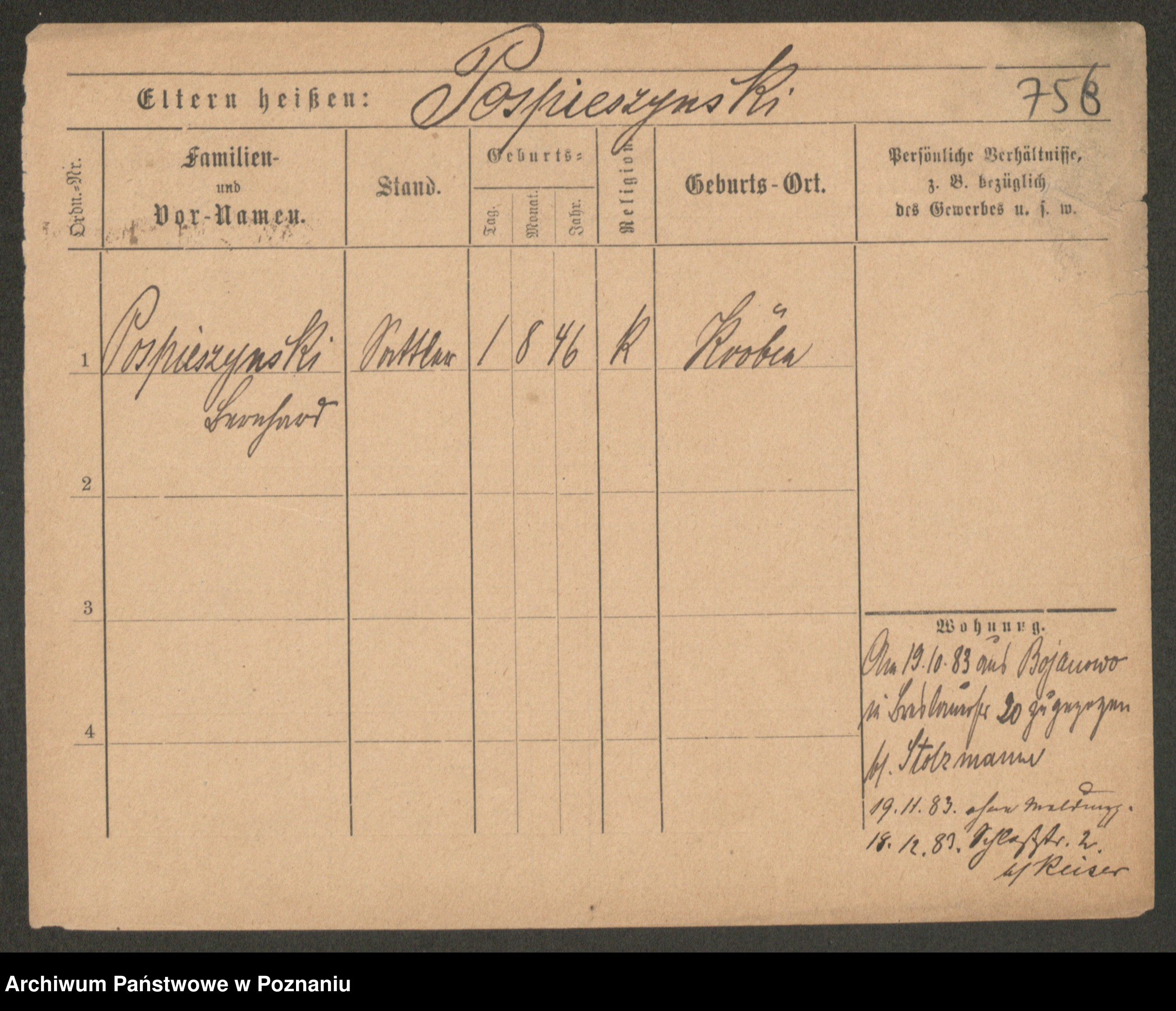 Post z d. Ptasinska, Antonina
