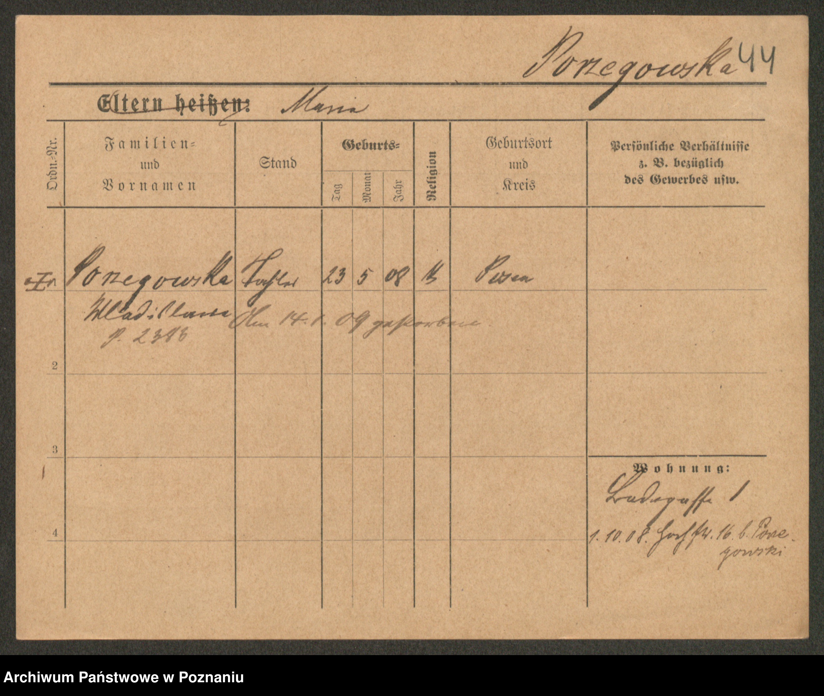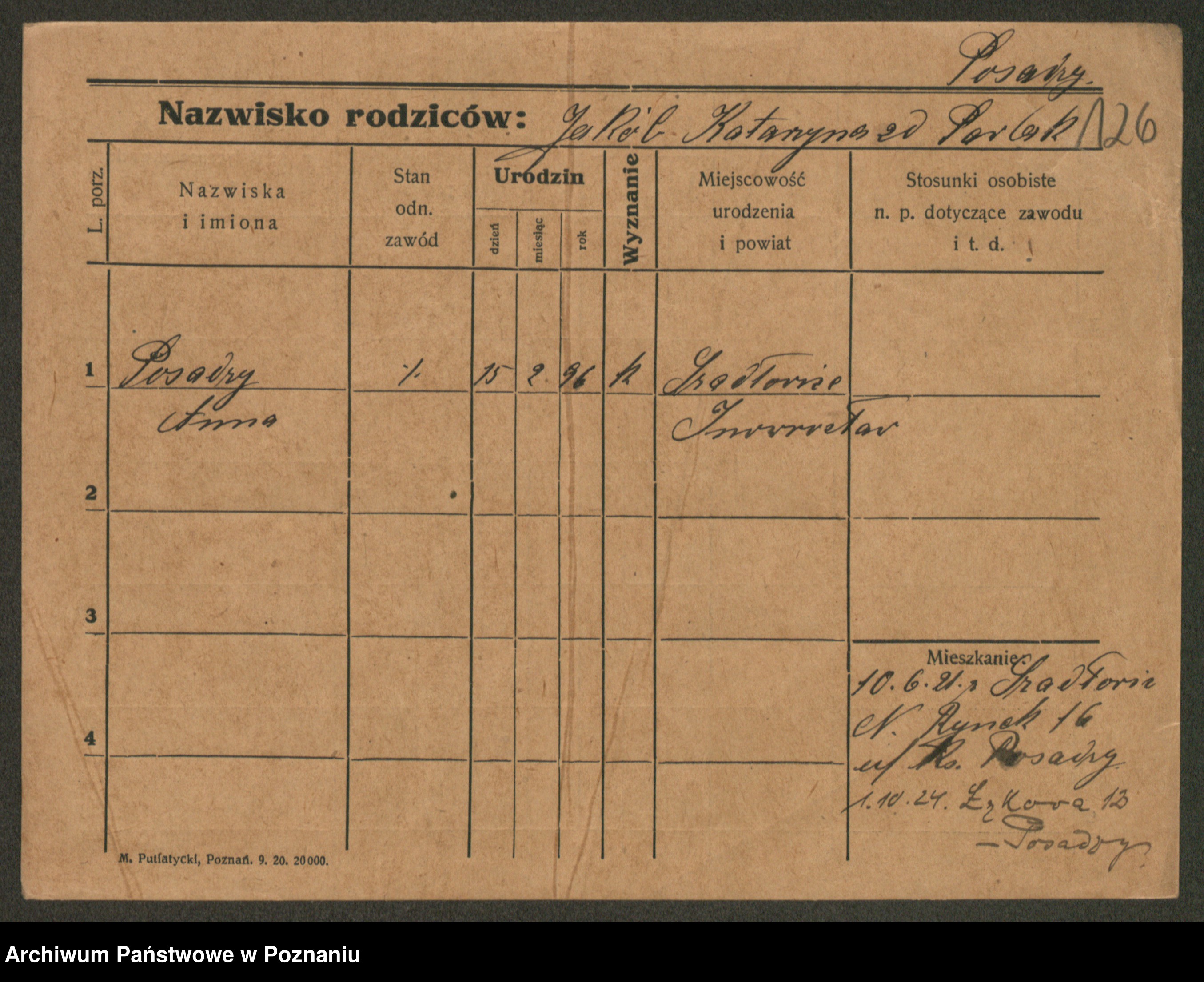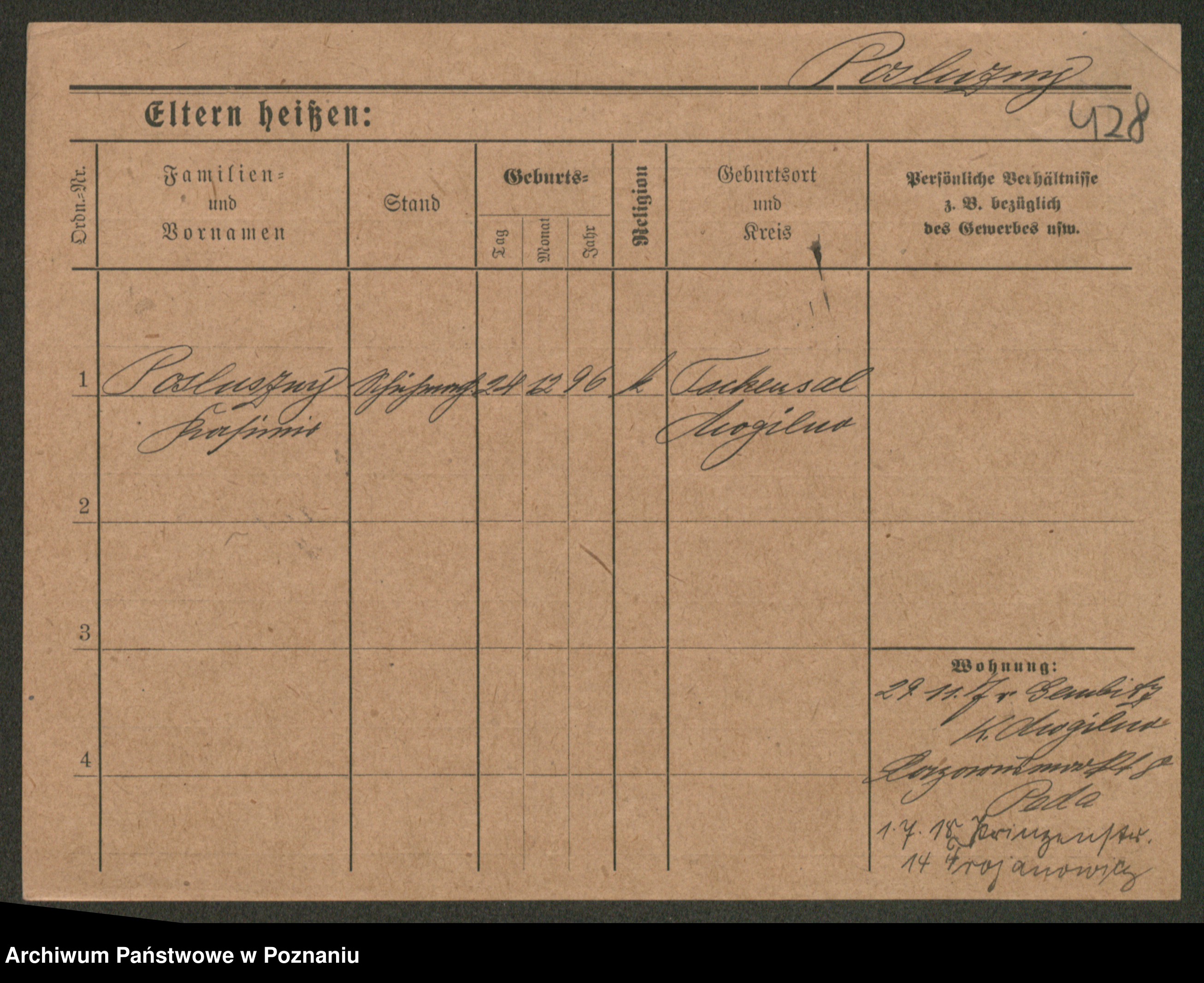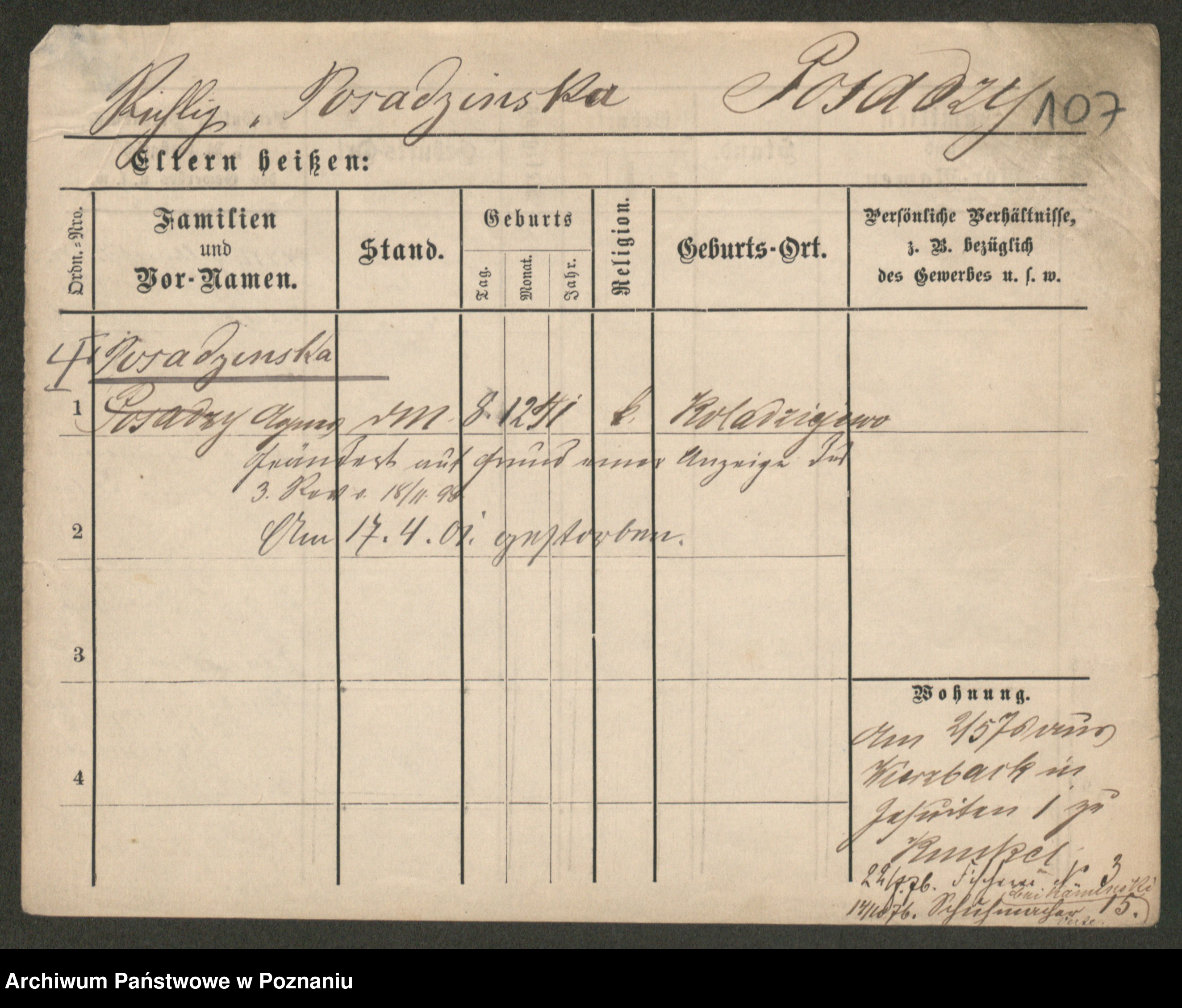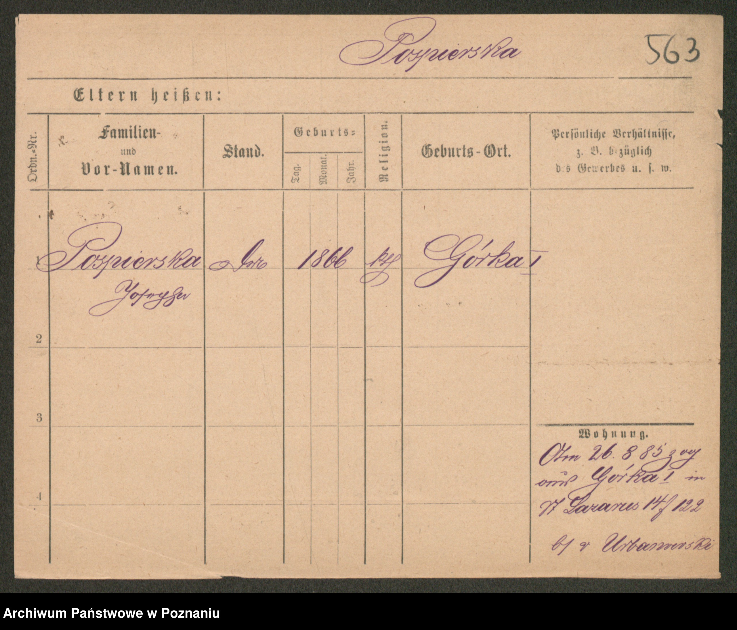 Post z d. Ptasinska, Antonina